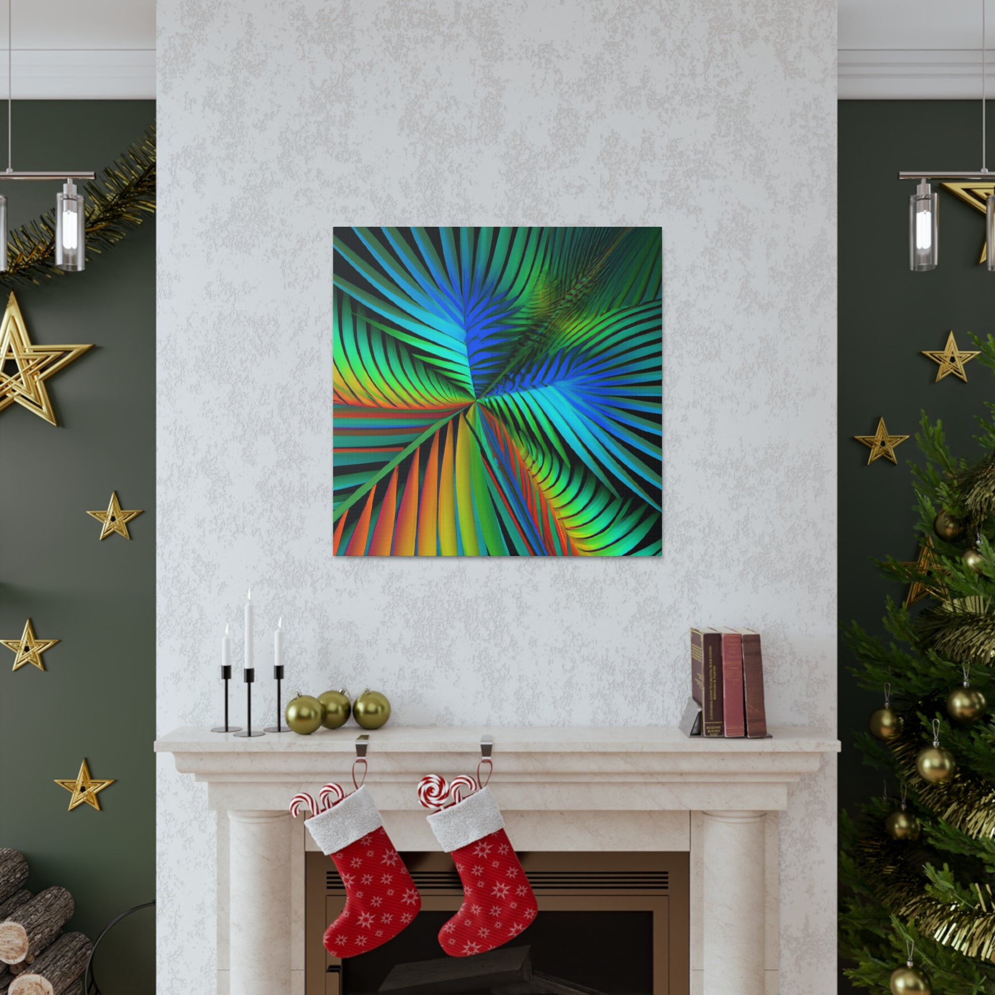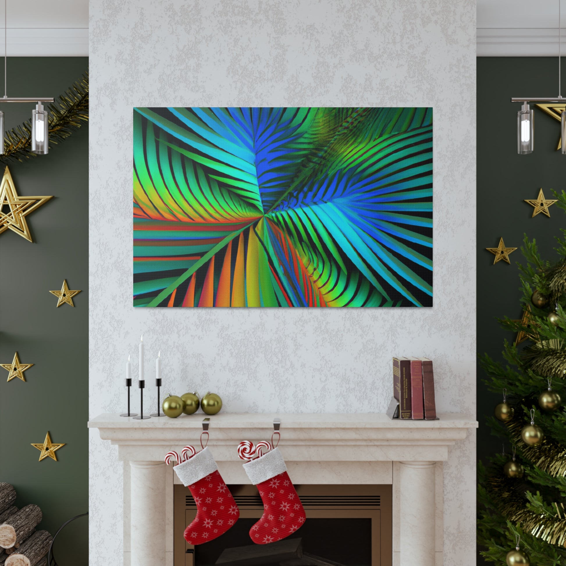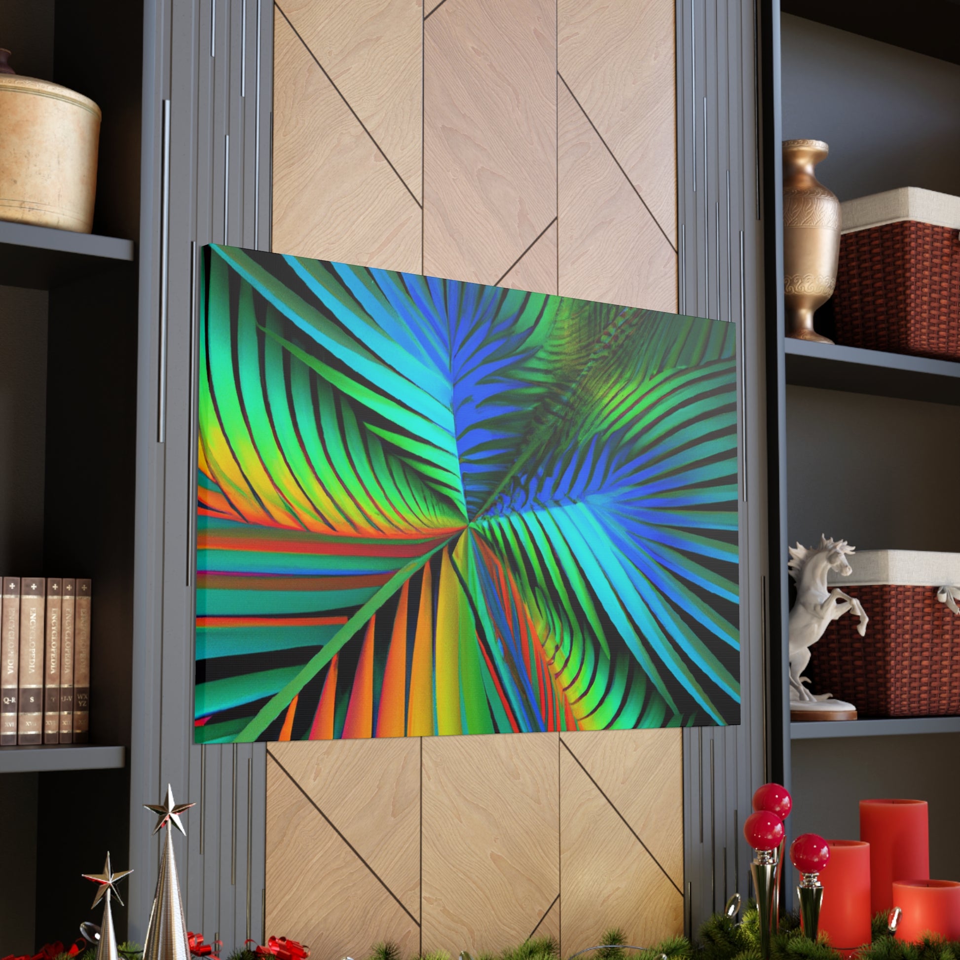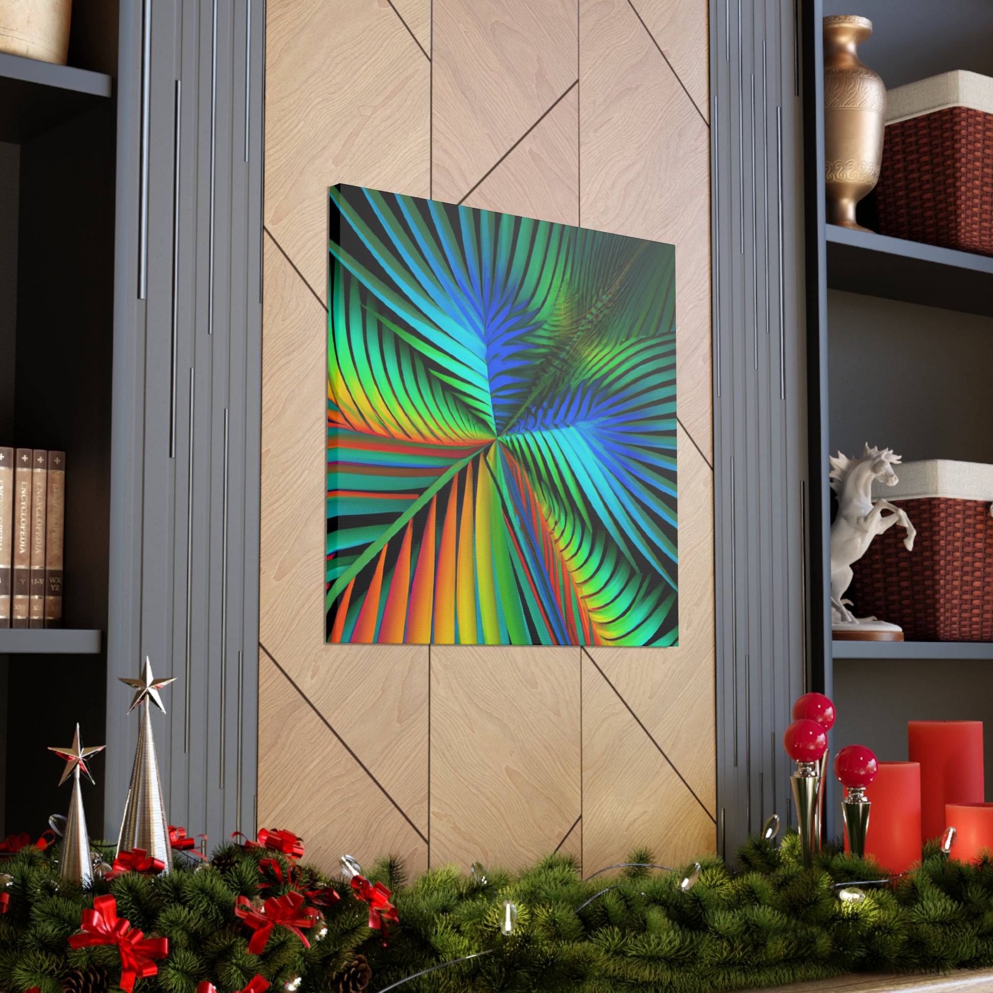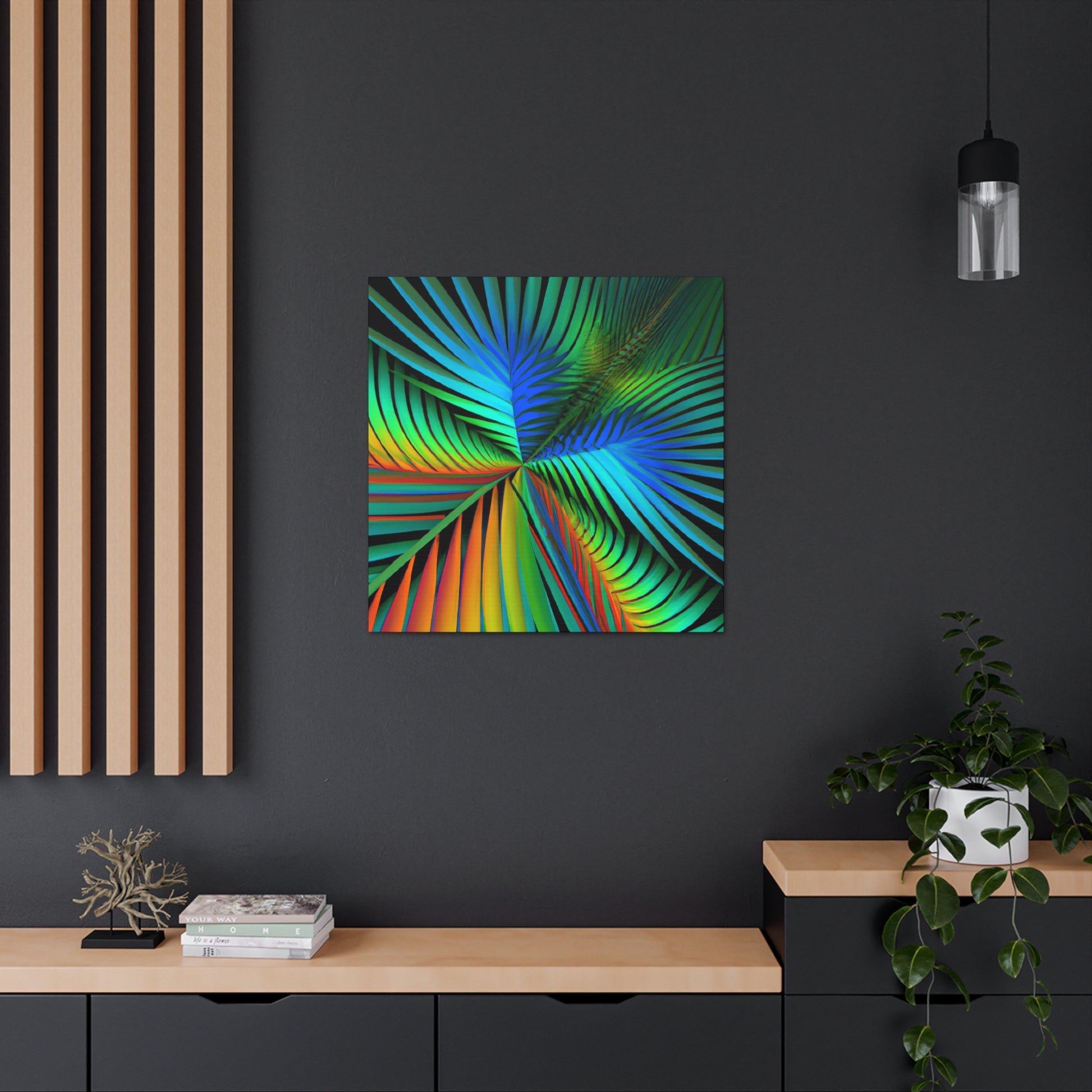 Unlock an eye-catching piece of art for your home with this vivid canvas of trippy geometric palm leaves, kaleidoscope, abstract, digital art, and vibrant colors with 3D lines and fractal patterns. All colors pop out of the canvas with a mesmerizing effect. Elevate the design of your space with this stunning work of art! #art #fractal #abstractart #palmleaves #kaleidoscope #3dlines #vibrantcolors #decor #digitalart #geometricart #homedecor