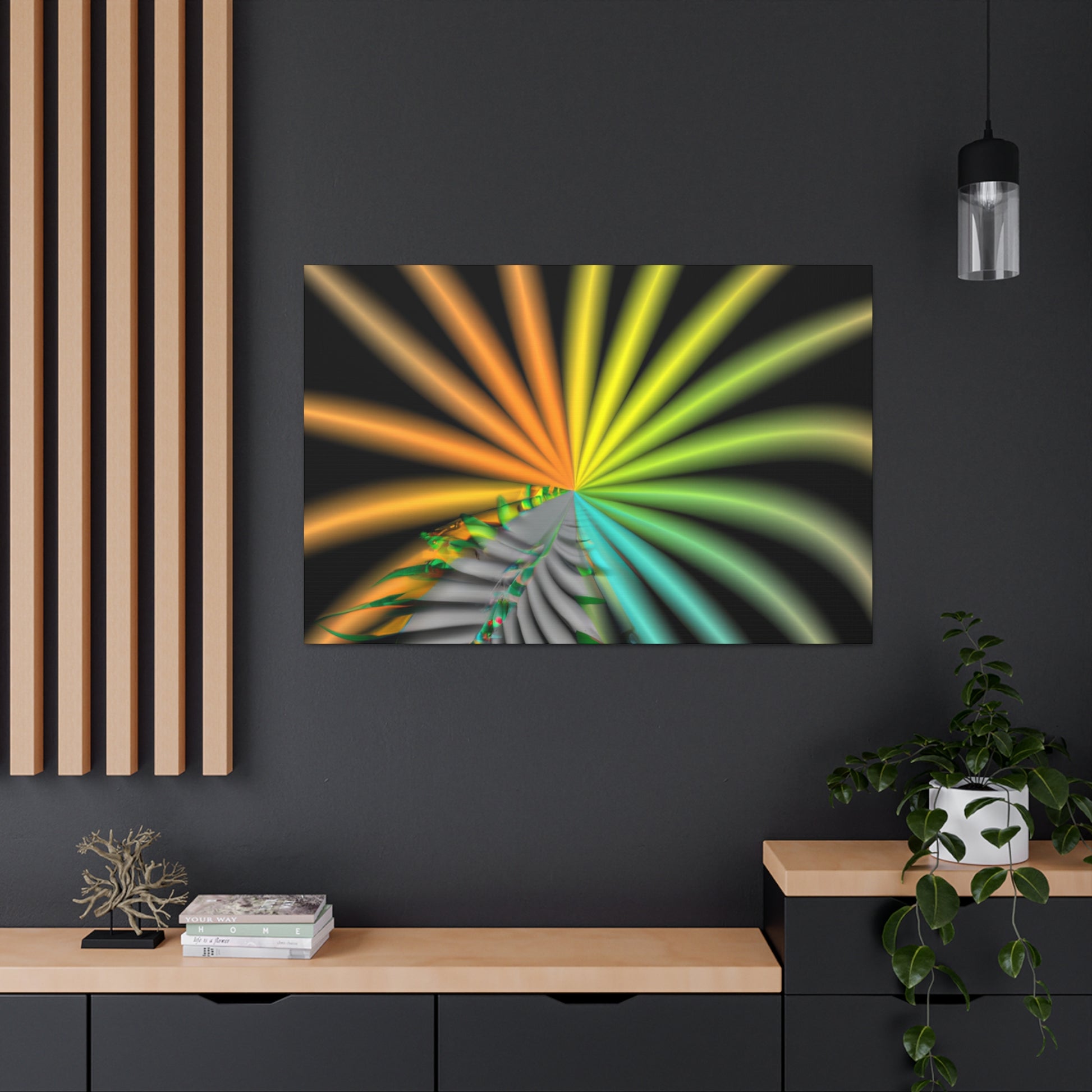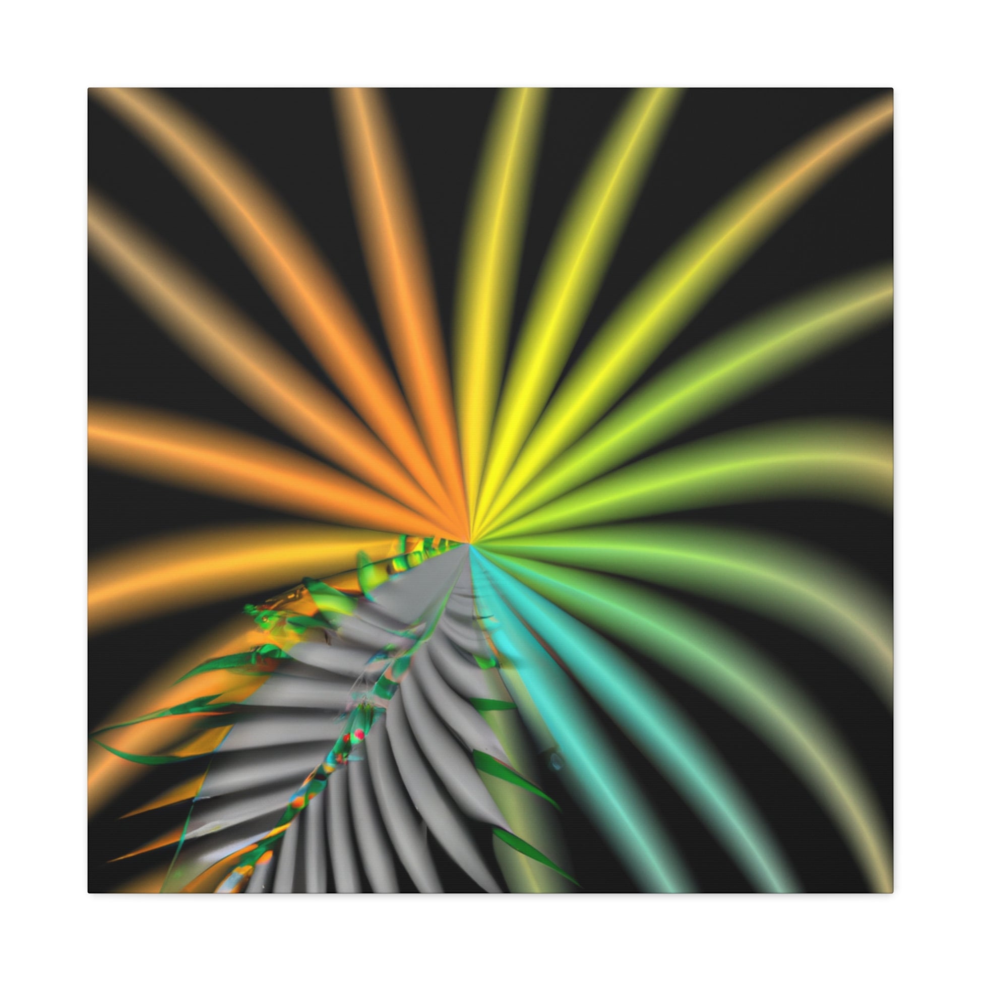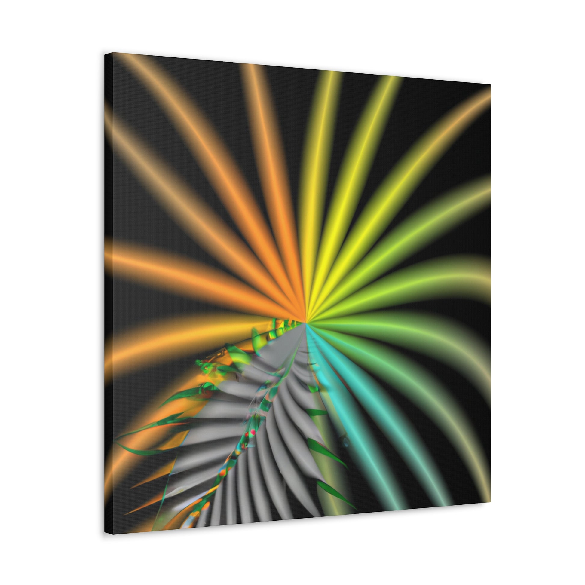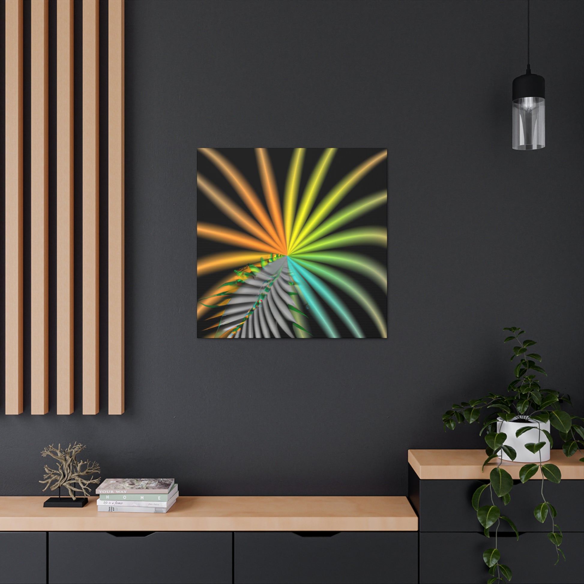 This digital art canvas is like an eye-catching adventure unlike any other. With it's trippy geometric palm leaves, kaleidoscope, abstract, and vibrant colors, it captivates and invites you in with its 3D lines, and fractal designs. Hang it up anywhere in your home or office for an instantly uplifting atmosphere. #digitalart #kaleidoscope #abstractart #geometricart #palmleaves #fractalart #vibrantcolors #3Dlines #trippyart #CanvasArt #HomeDecor