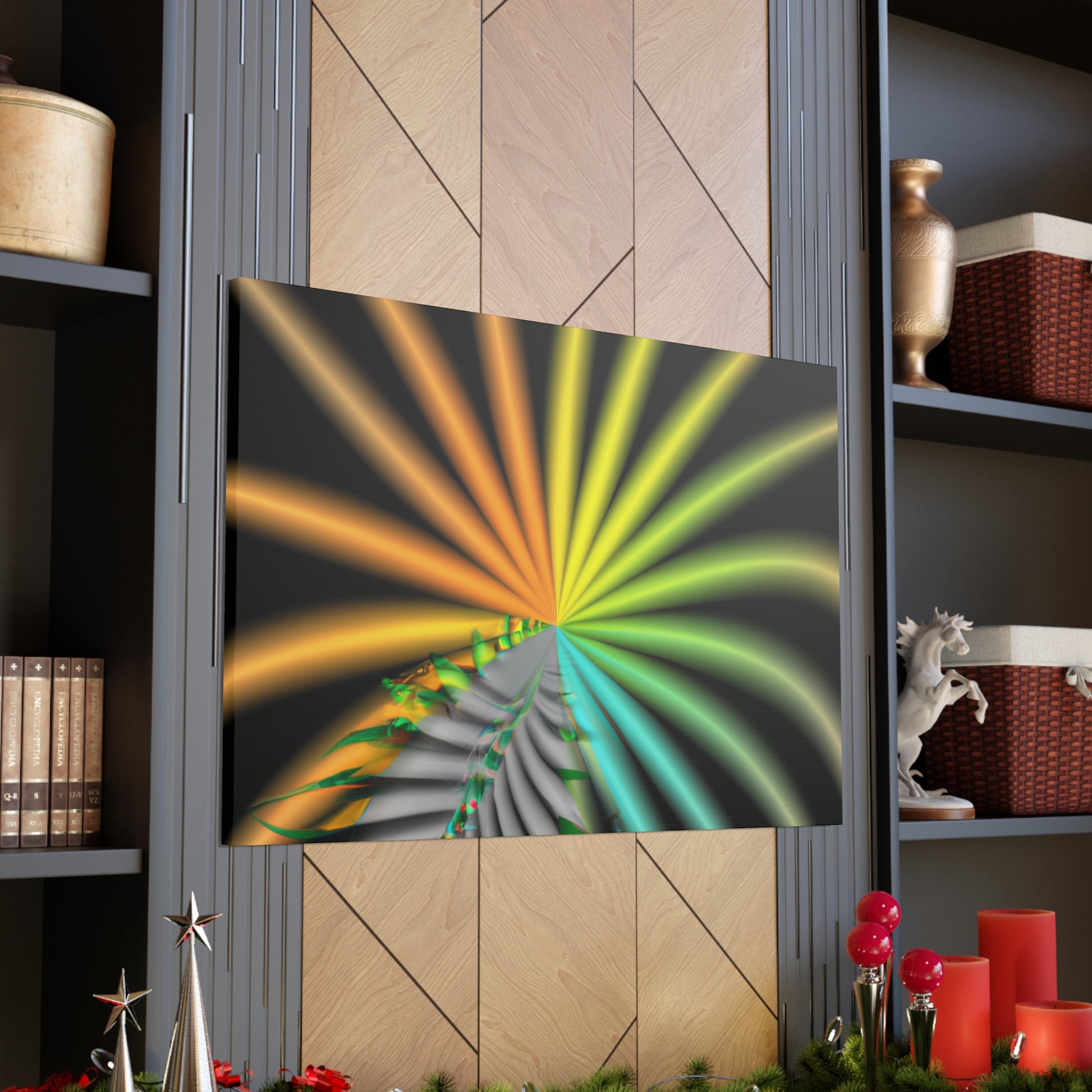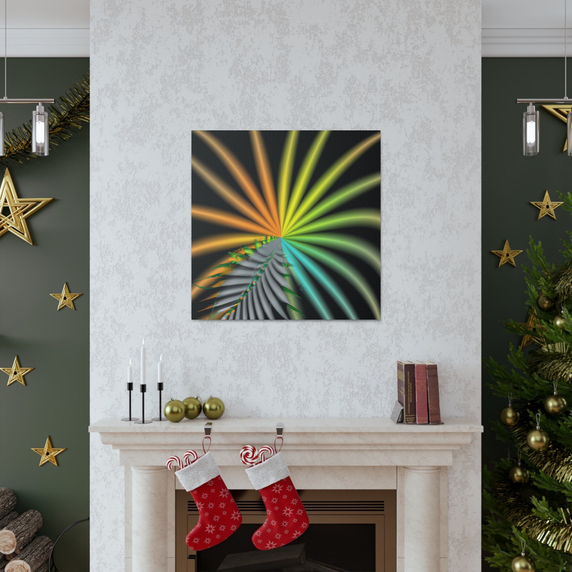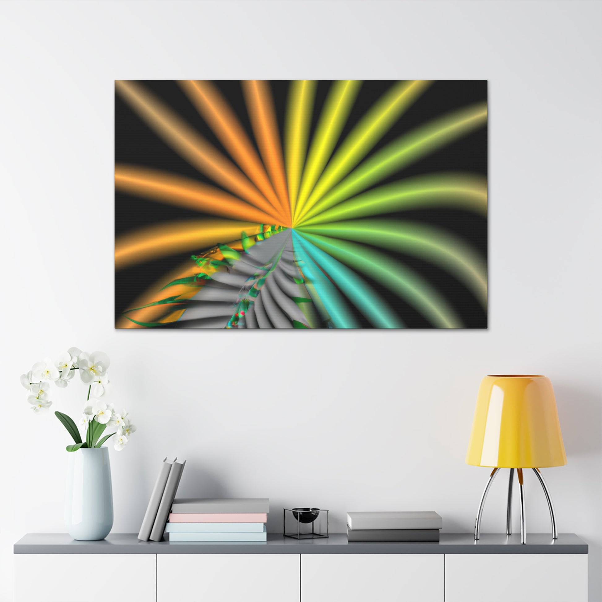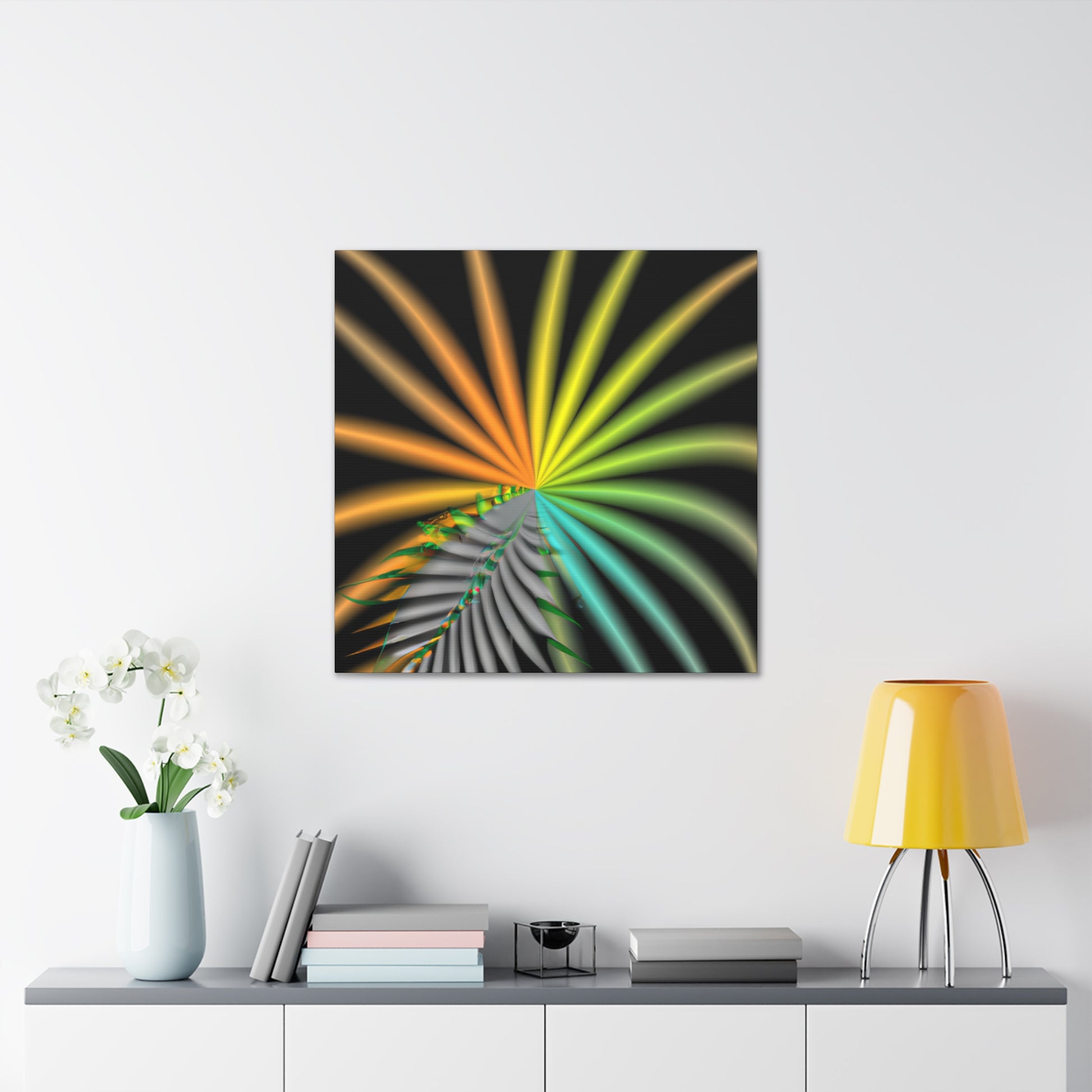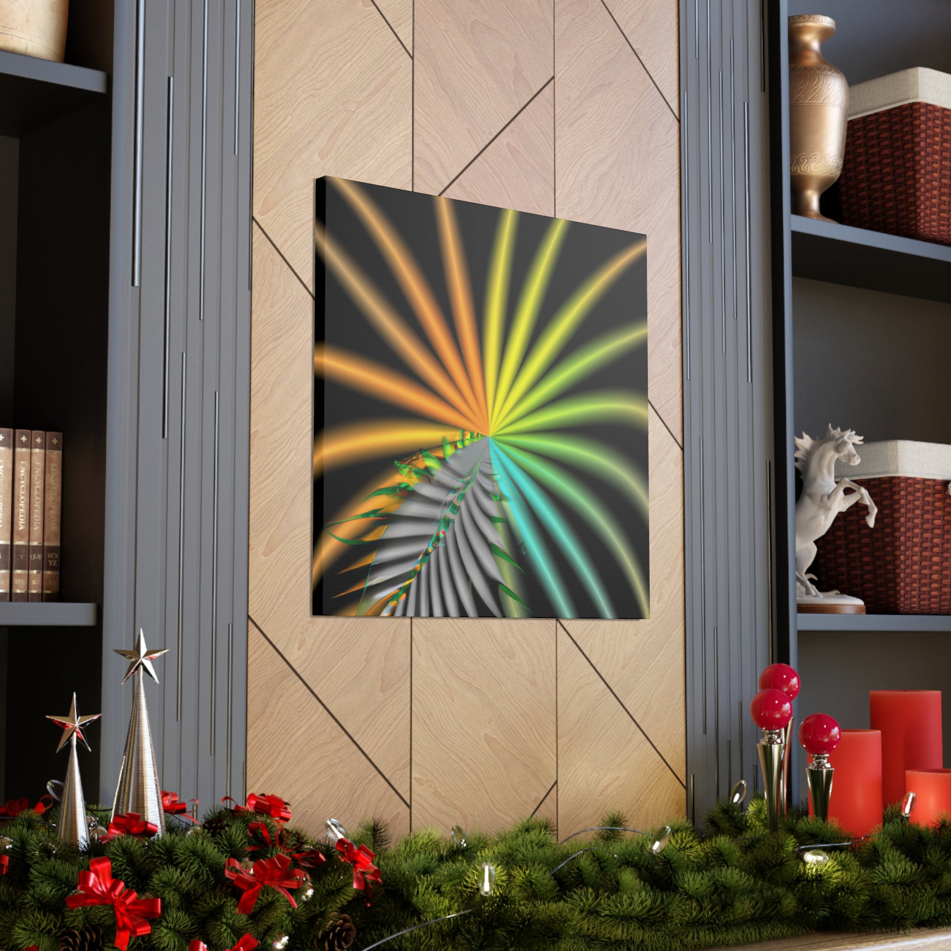 This digital art canvas is like an eye-catching adventure unlike any other. With it's trippy geometric palm leaves, kaleidoscope, abstract, and vibrant colors, it captivates and invites you in with its 3D lines, and fractal designs. Hang it up anywhere in your home or office for an instantly uplifting atmosphere. #digitalart #kaleidoscope #abstractart #geometricart #palmleaves #fractalart #vibrantcolors #3Dlines #trippyart #CanvasArt #HomeDecor
