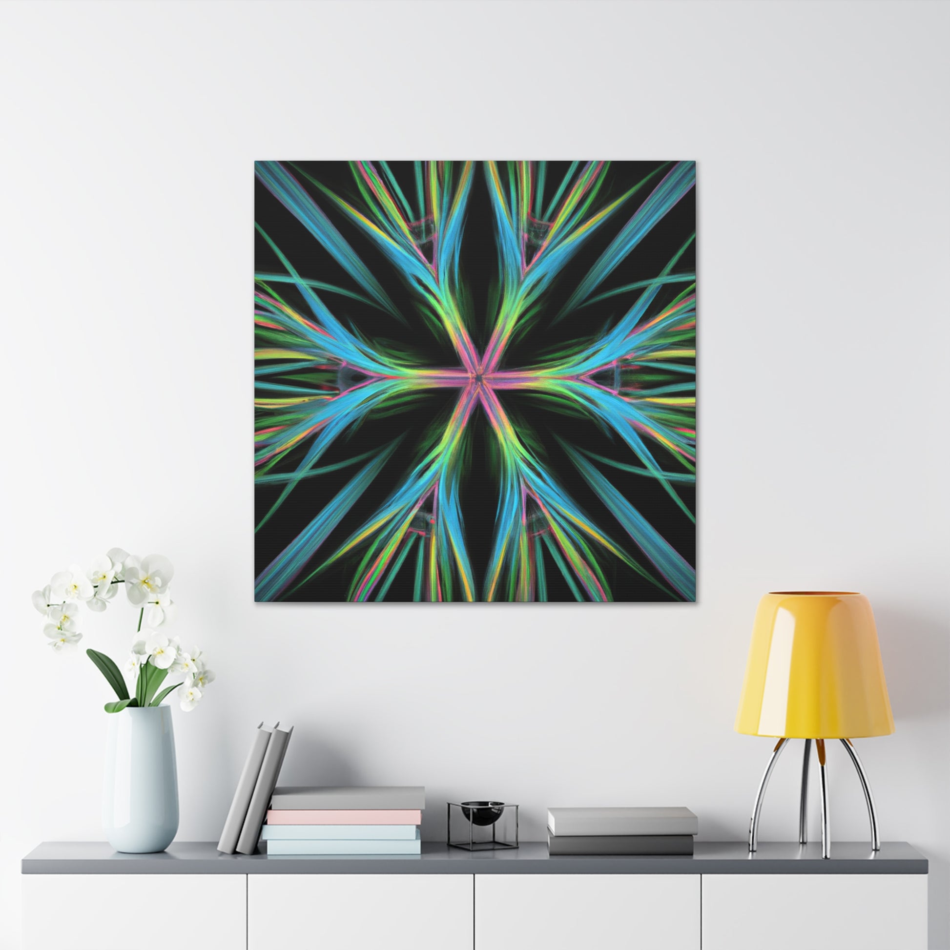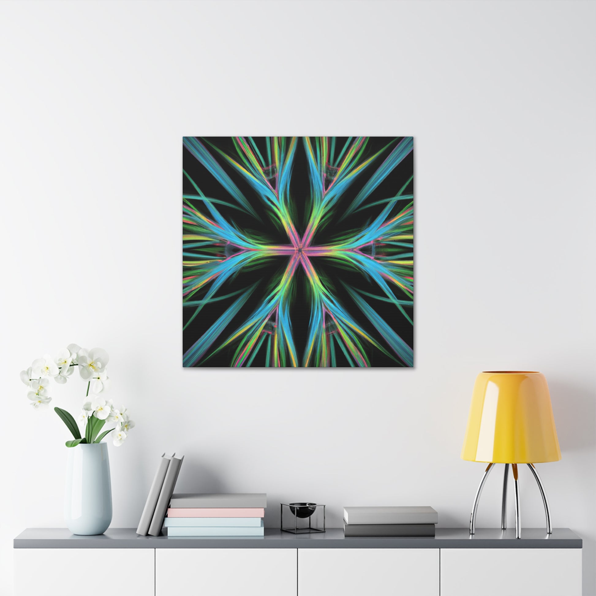 This vibrant canvas unleashes an explosion of colors and geometric shapes! Trippy palm leaves, artful lines and a surreal kaleidoscope combine to create a stunning 3D fractal. Crafted with digitally rendered colors and intricate abstract details, this art piece is a showstopper! #art #canvas #geometric #kaleidoscope #palm leaves #trippy #colors #3D #fractal #vibrant #digital #abstract #surreal #lines #explosion #showstopper #modern #beautiful #bright #decor #statement #eye-catching #visual #unique #artpiece #impactful #dynamic #mural #wallart #interior #design