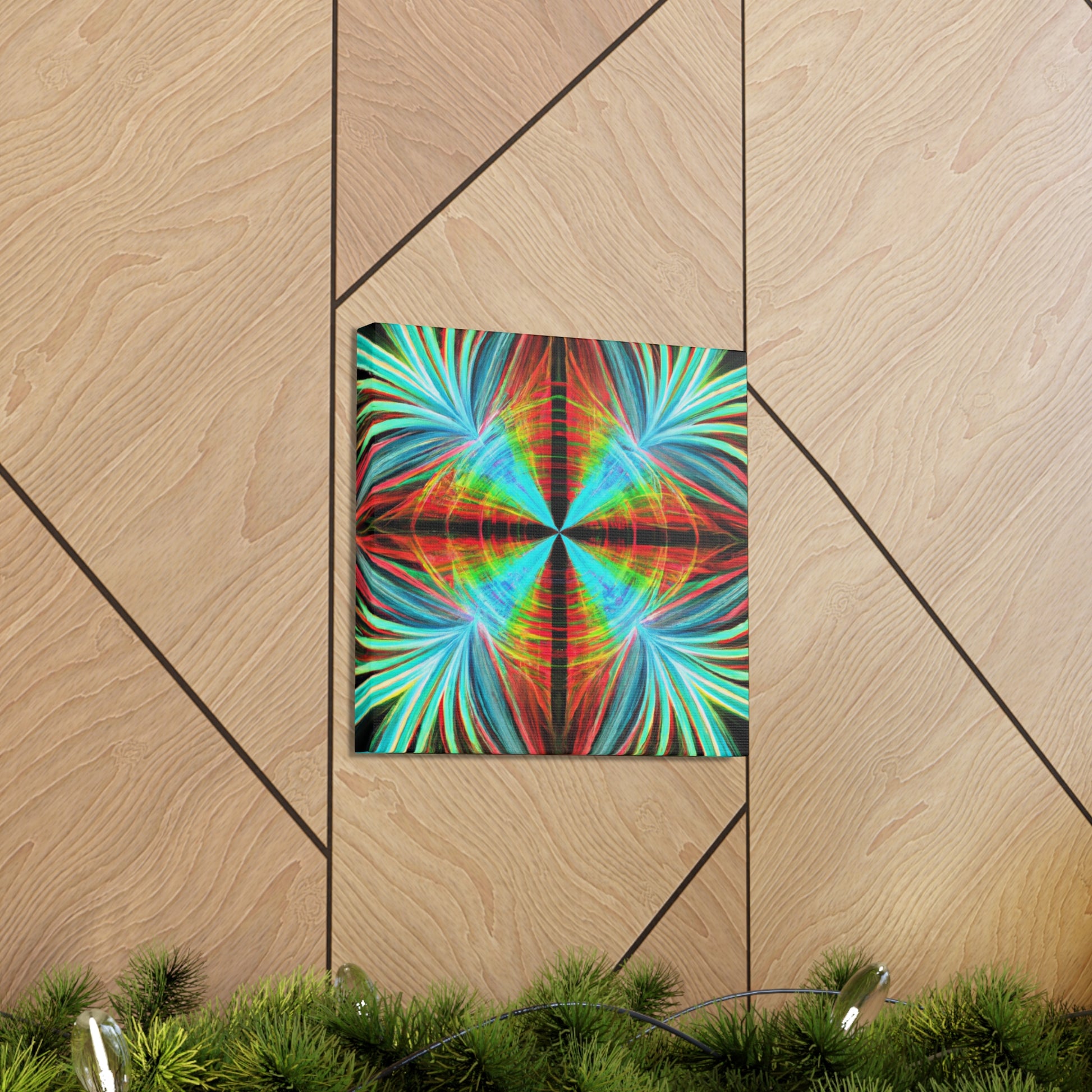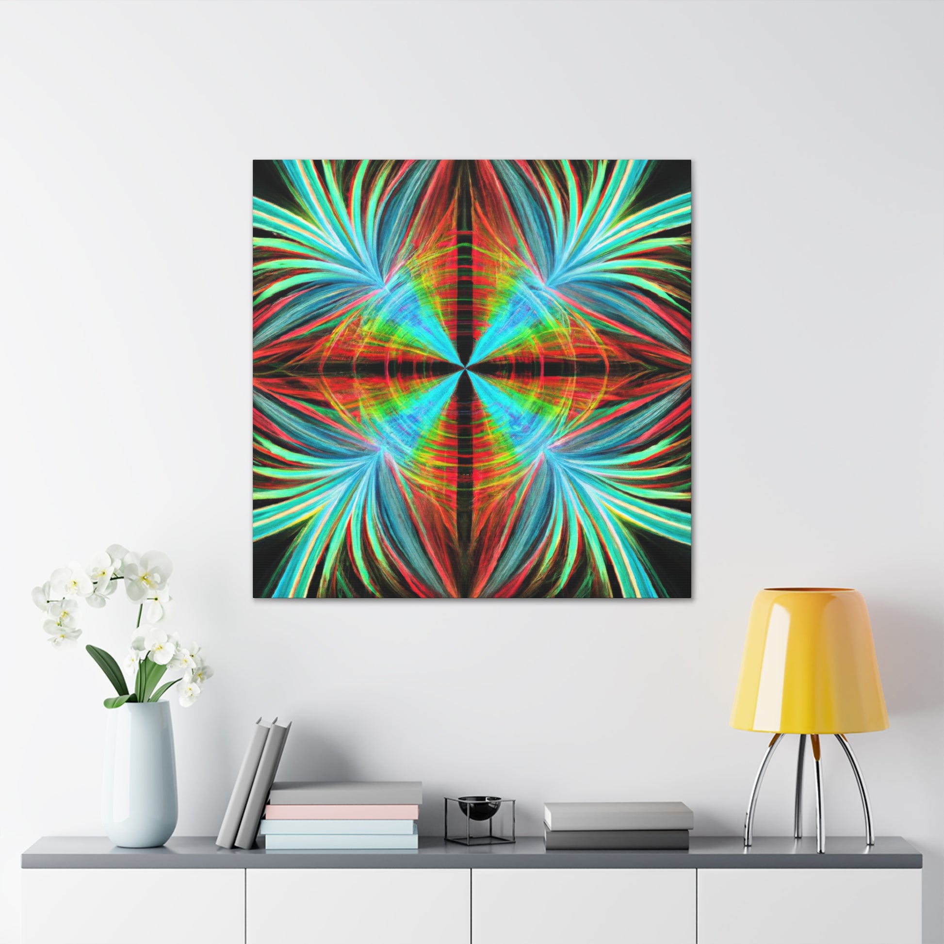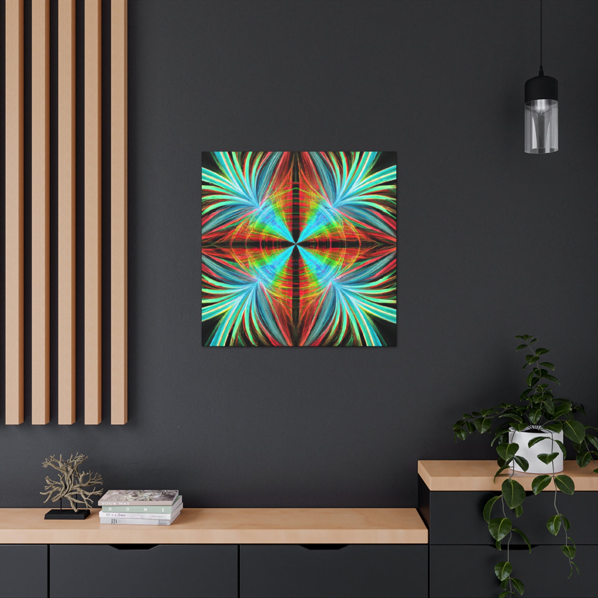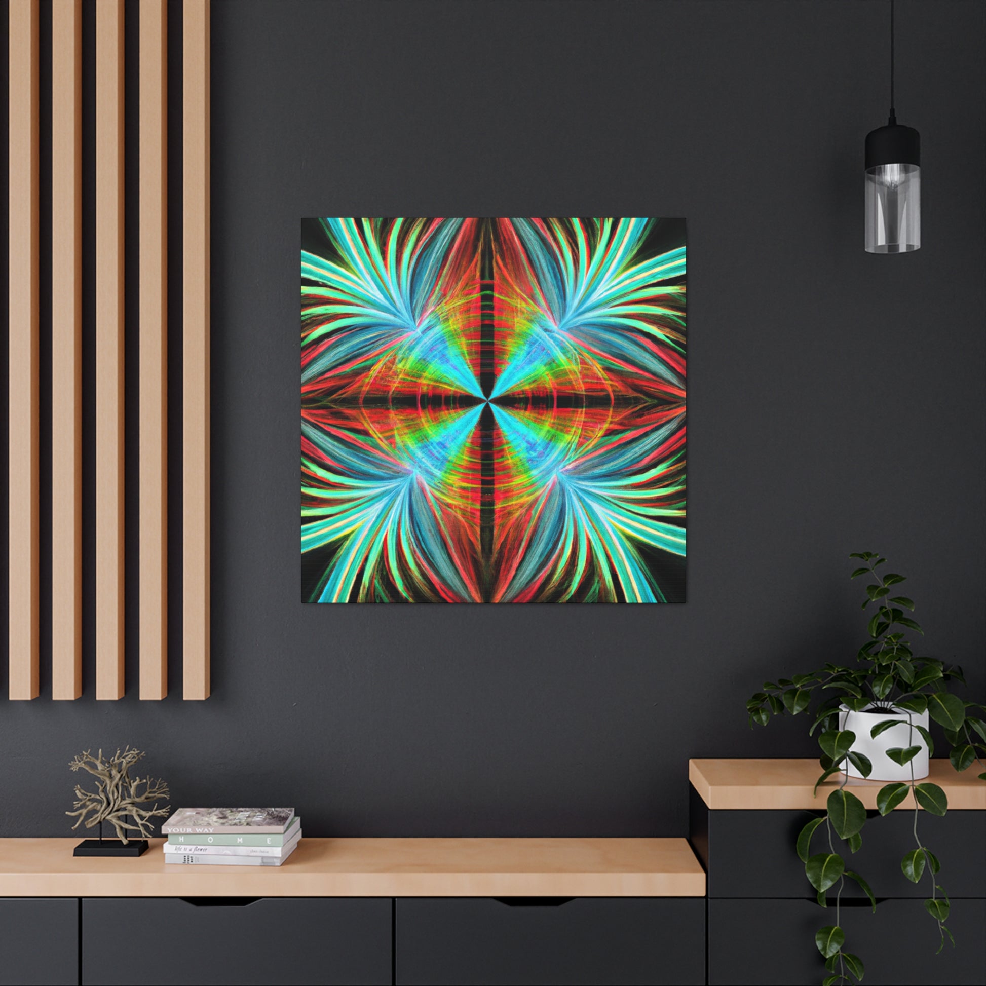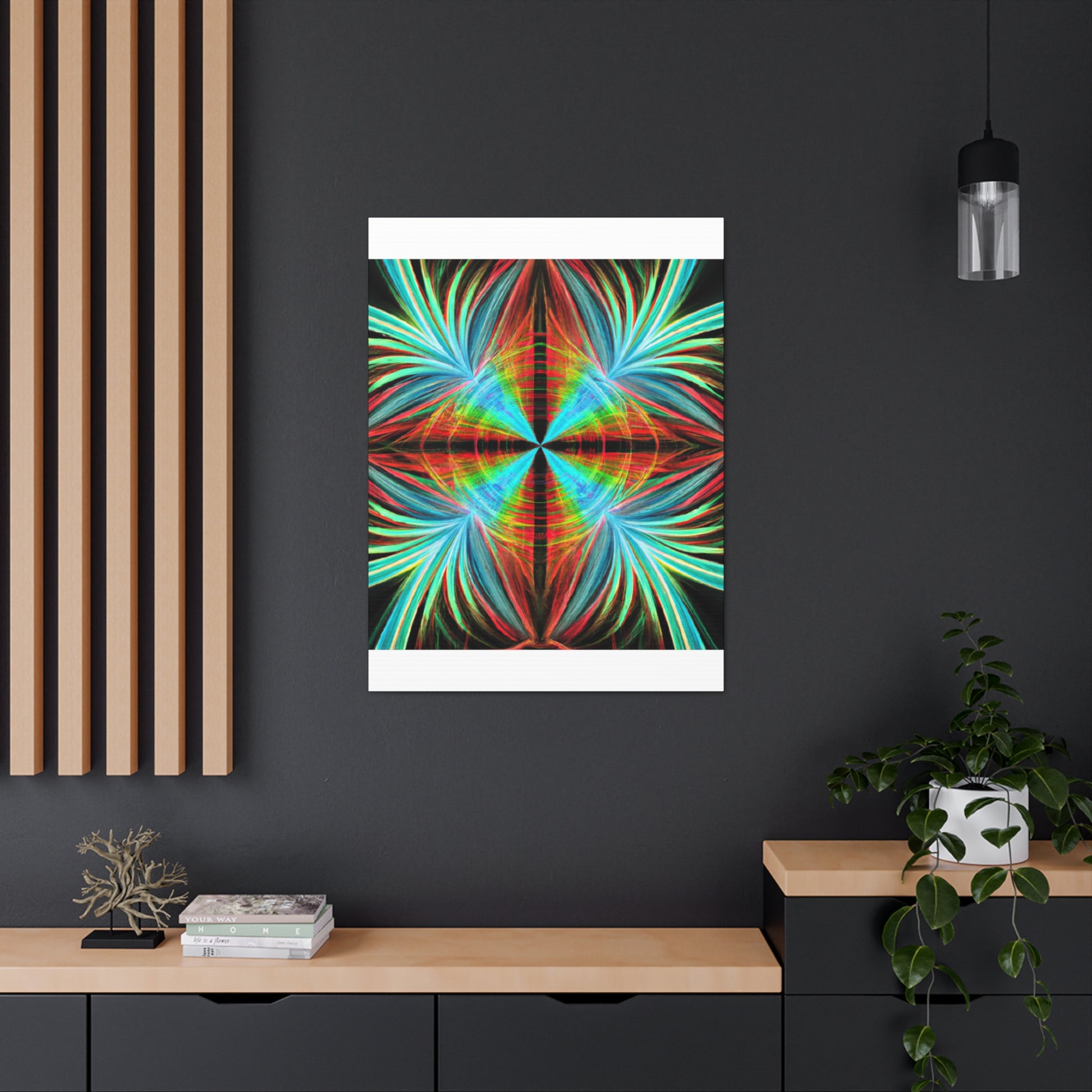 This vibrantly stunning wall art canvas showcases a mesmerizing array of multicoloured abstracted shapes and lines. From 3D spirals to kaleidoscopic palm leaves, this digital artwork features psychedelic trippy geometric elements and bold, colourful fractals. Featuring vivid digital art and a captivatingly vibrant colour palette, this art piece is sure to bring life to any room. #AbstractArt #DigitalArt #FocusFractal #CanvasArt #3DFractal #Colorful #Kaleidoscope #PalmLeaves #MoodInspiration #VividColors #Psychedelic #FractalDesign #Trippy #Geometric #Mesmerizing #Modern #Vibrant #WallArt #ArtisticDesign #Decoration #GraphicDesign #VisualSensation #FractalVibes #PsychedelicVisuals #Mystical #Aesthetic #PalettePainting #RoomDecor #LuxuryArt #HomeDecor and #ModernArt
