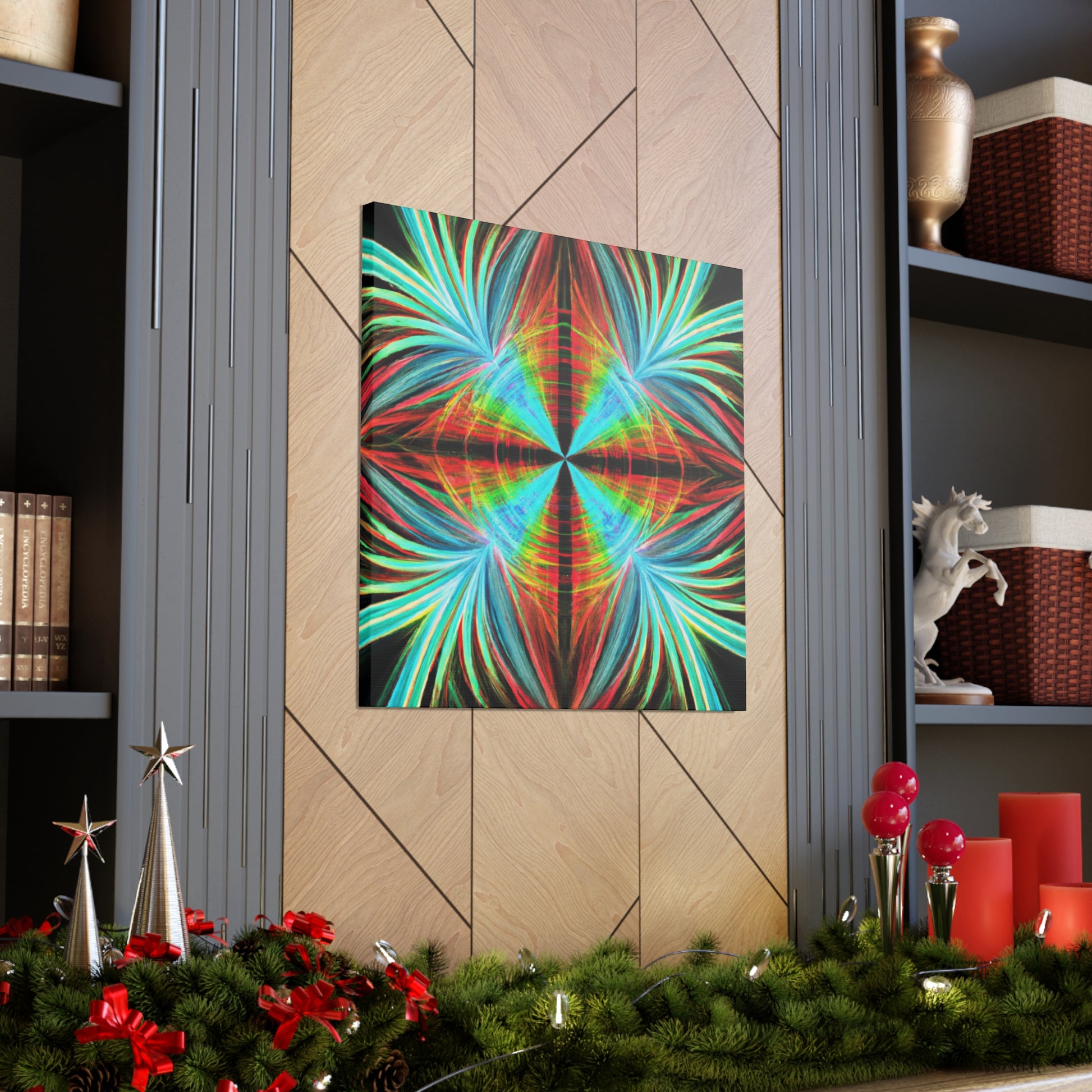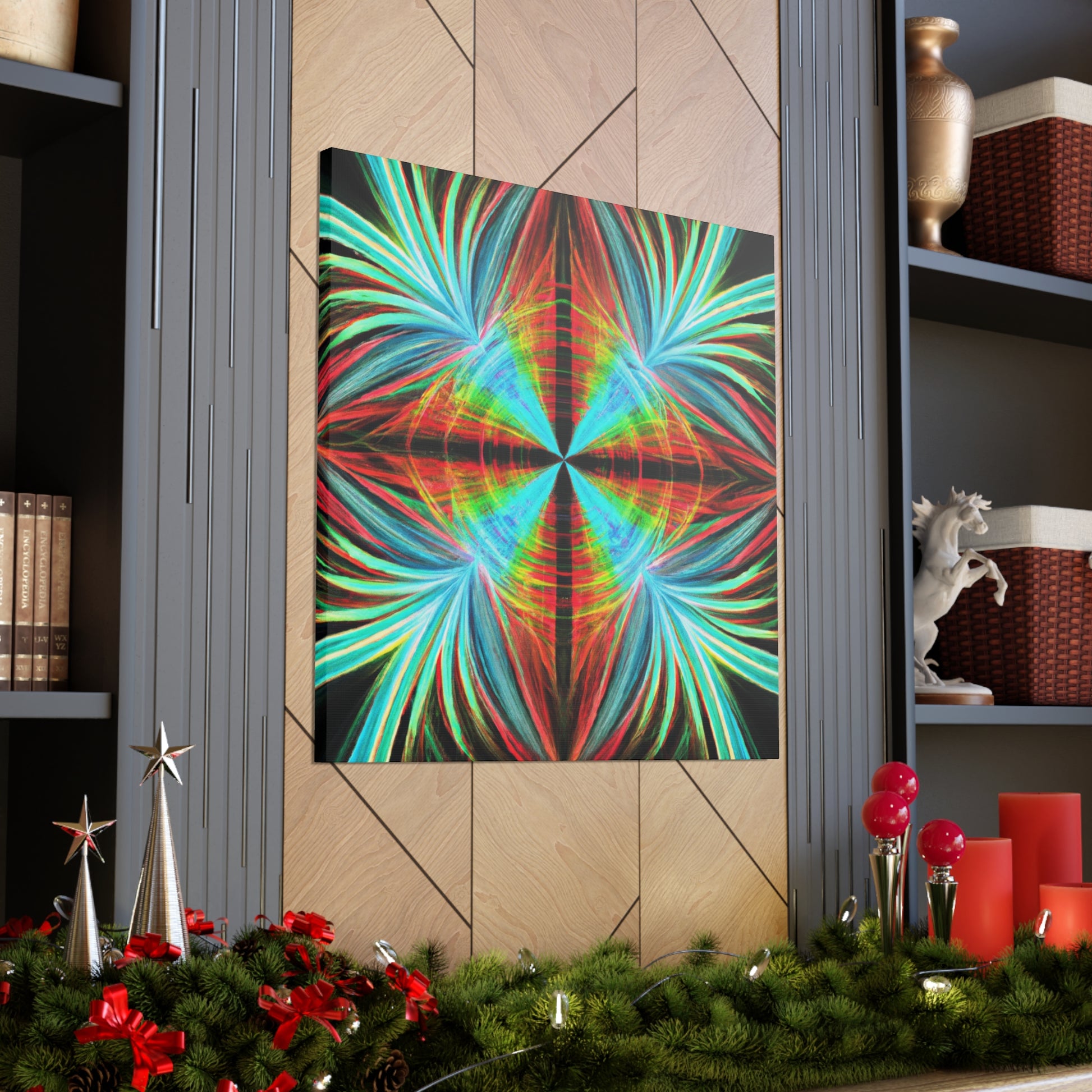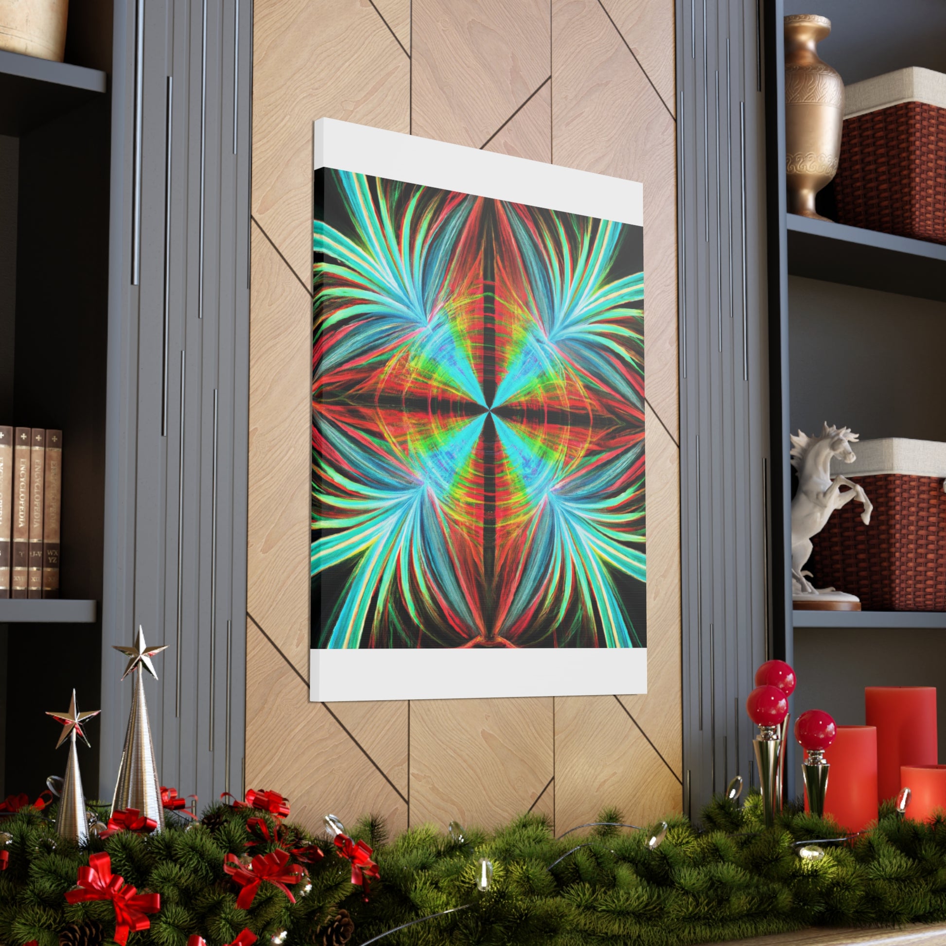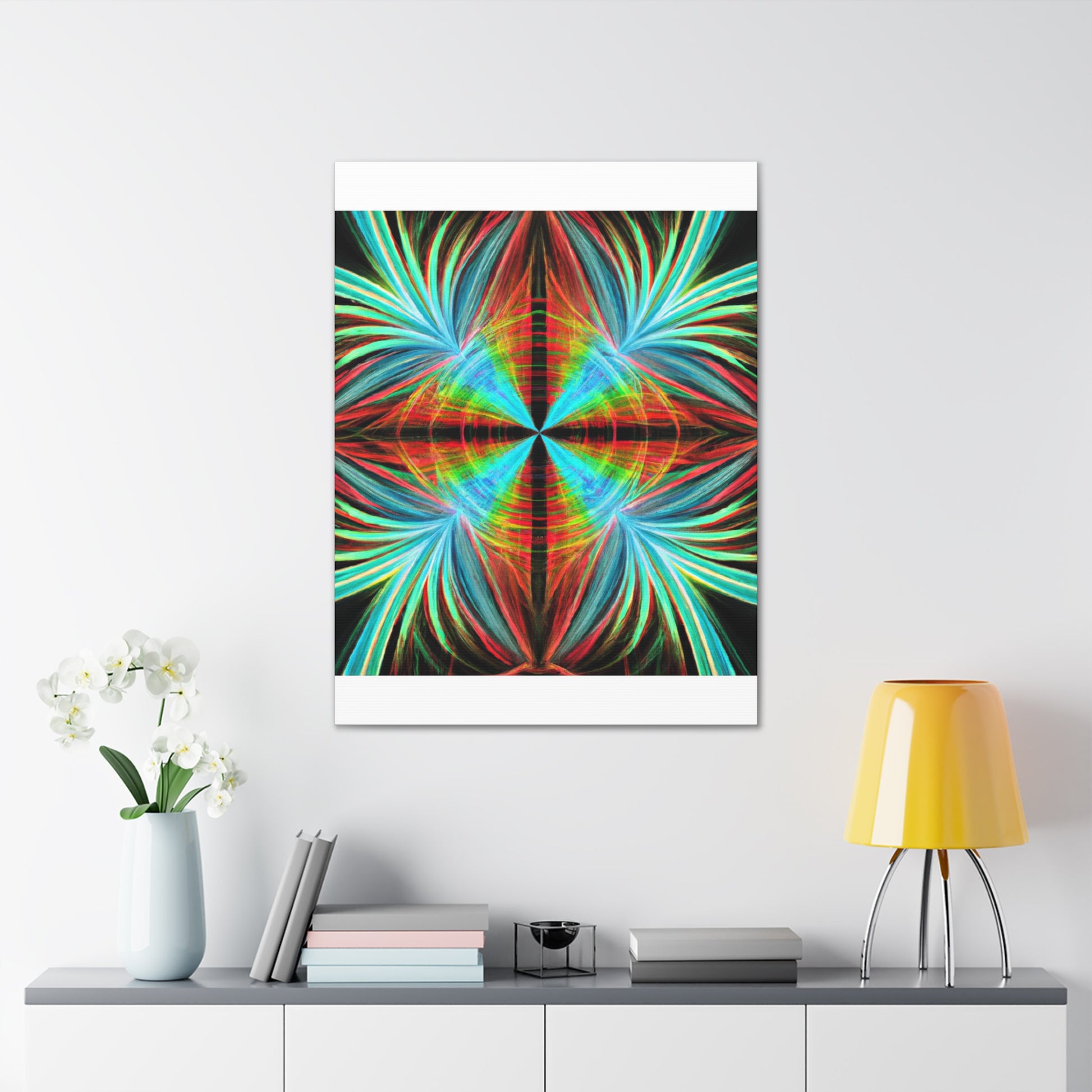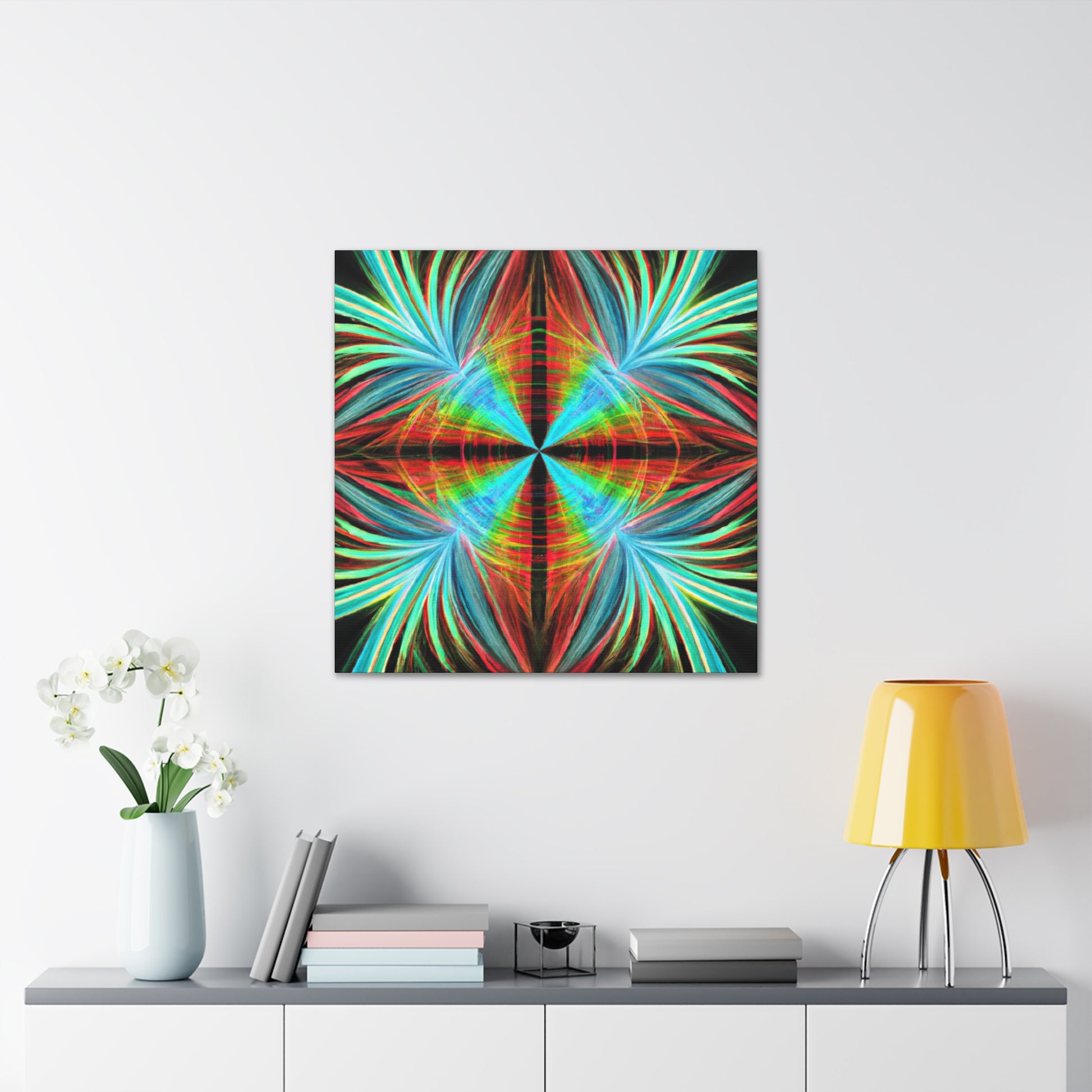 This vibrantly stunning wall art canvas showcases a mesmerizing array of multicoloured abstracted shapes and lines. From 3D spirals to kaleidoscopic palm leaves, this digital artwork features psychedelic trippy geometric elements and bold, colourful fractals. Featuring vivid digital art and a captivatingly vibrant colour palette, this art piece is sure to bring life to any room. #AbstractArt #DigitalArt #FocusFractal #CanvasArt #3DFractal #Colorful #Kaleidoscope #PalmLeaves #MoodInspiration #VividColors #Psychedelic #FractalDesign #Trippy #Geometric #Mesmerizing #Modern #Vibrant #WallArt #ArtisticDesign #Decoration #GraphicDesign #VisualSensation #FractalVibes #PsychedelicVisuals #Mystical #Aesthetic #PalettePainting #RoomDecor #LuxuryArt #HomeDecor and #ModernArt