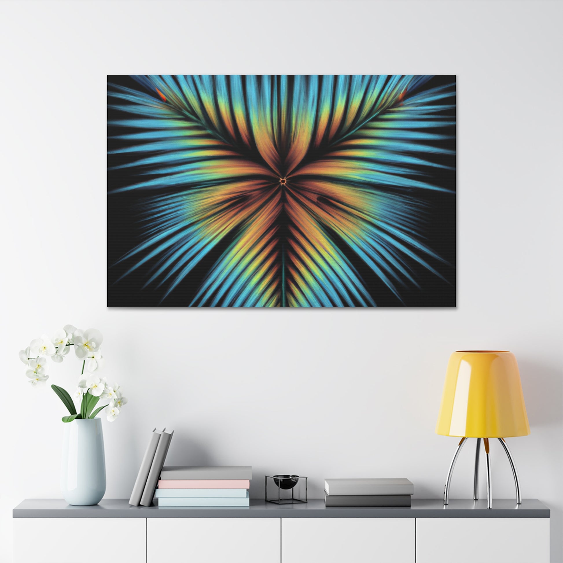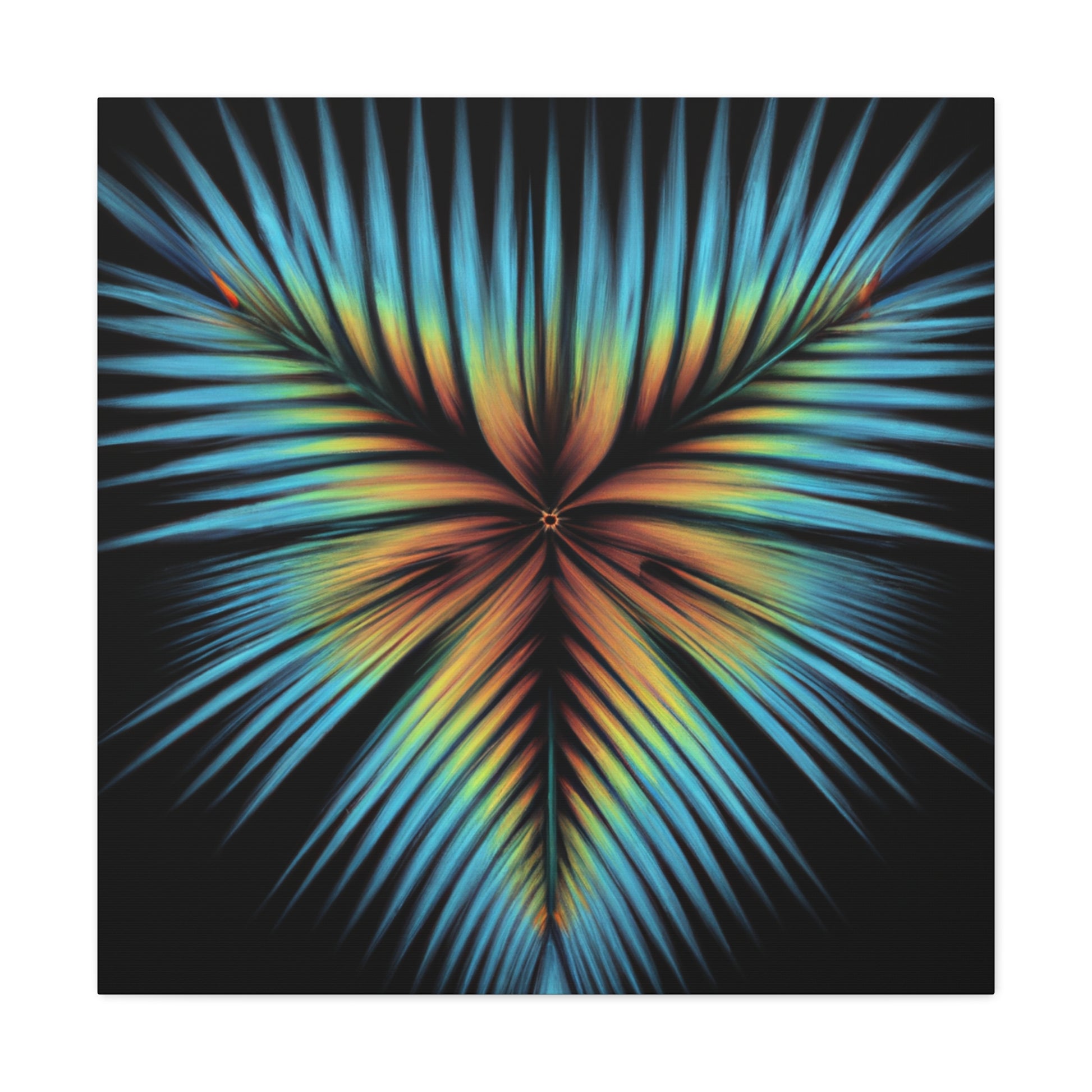 This canvas of Trippy Geometric Palm Leaves is a stunning combination of kaleidoscope, abstract, digital art, and vibrant colors. Its 3D lines and fractal create a captivating visual dimension and movement that sets it apart. A brilliant piece for your walls, it will act as a talking piece in the conversation of your home decor. #WallArt #Canvas #HomeDecor #AbstractArt #Kaleidoscope #Geometric #DigitalArt #VibrantColors #3DLines #Fractal #TrippyPalmLeaves