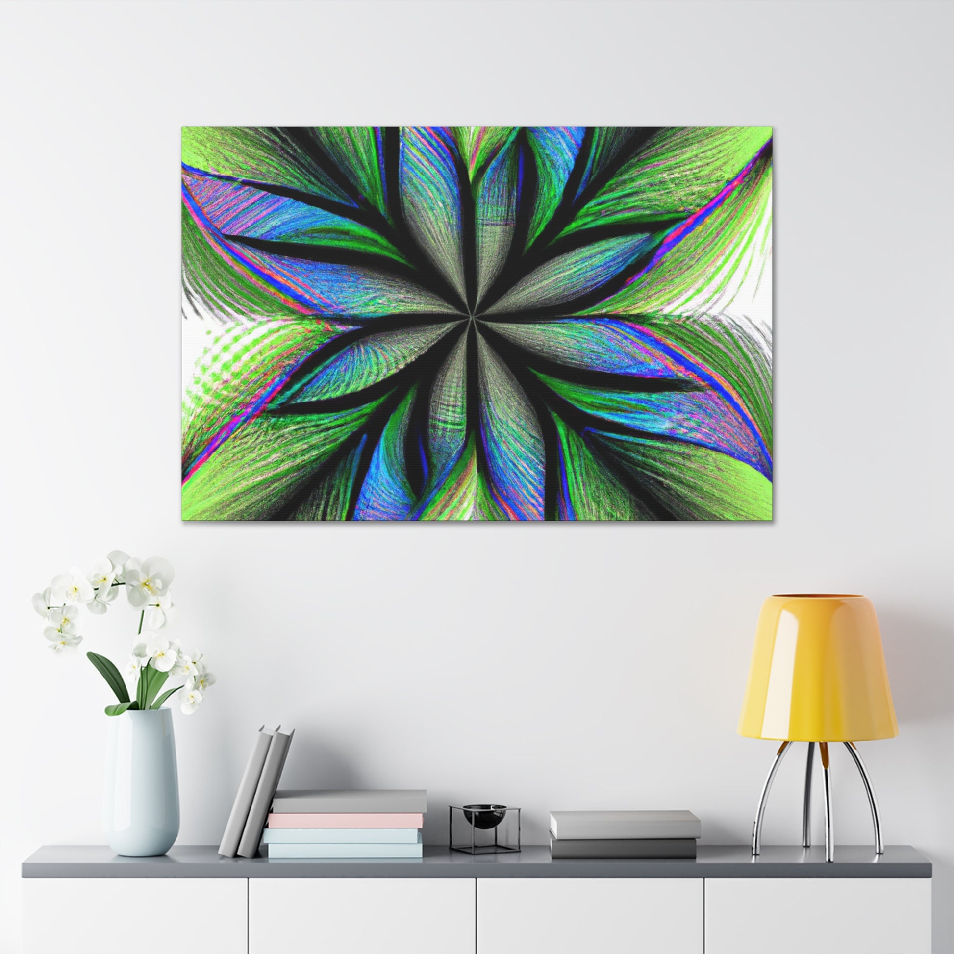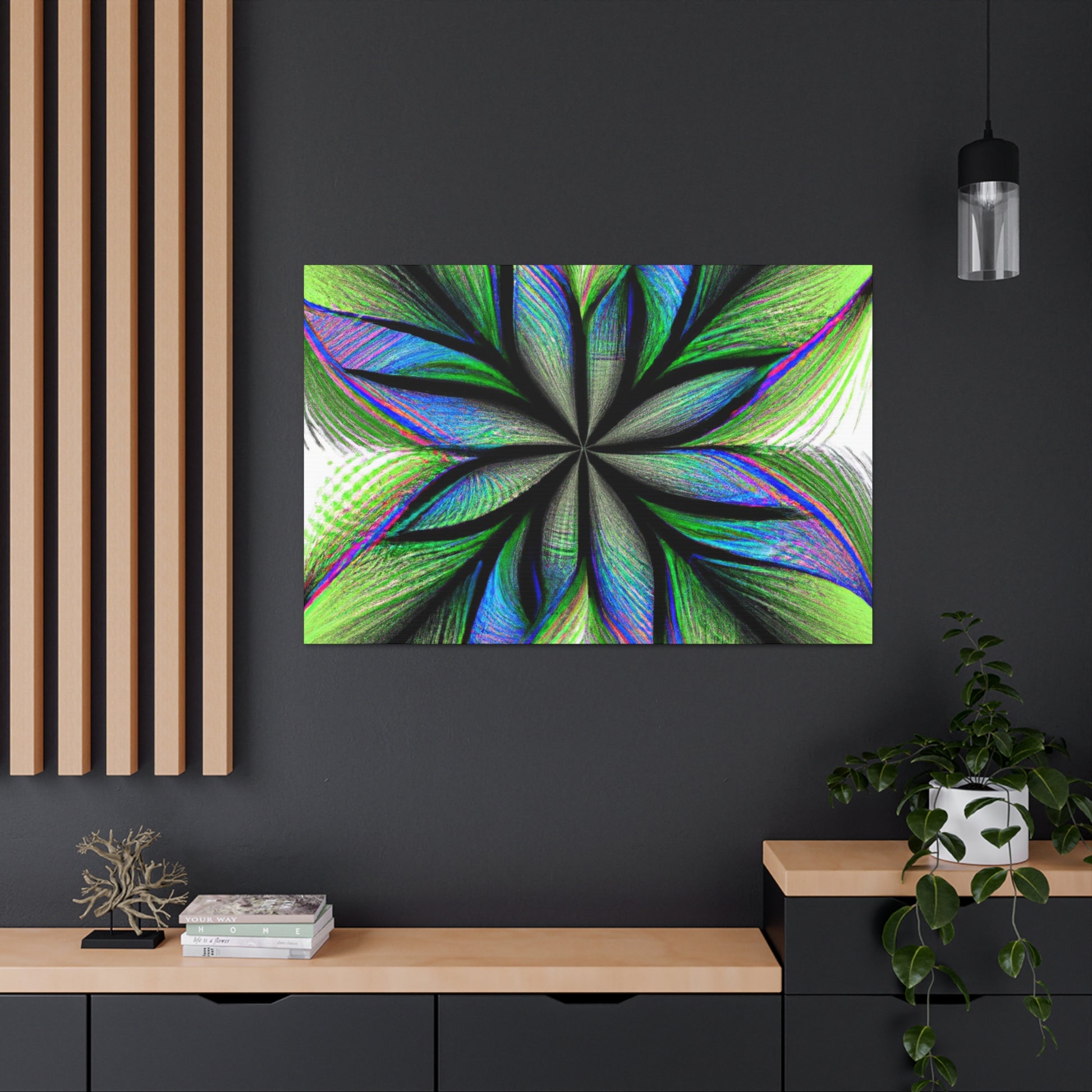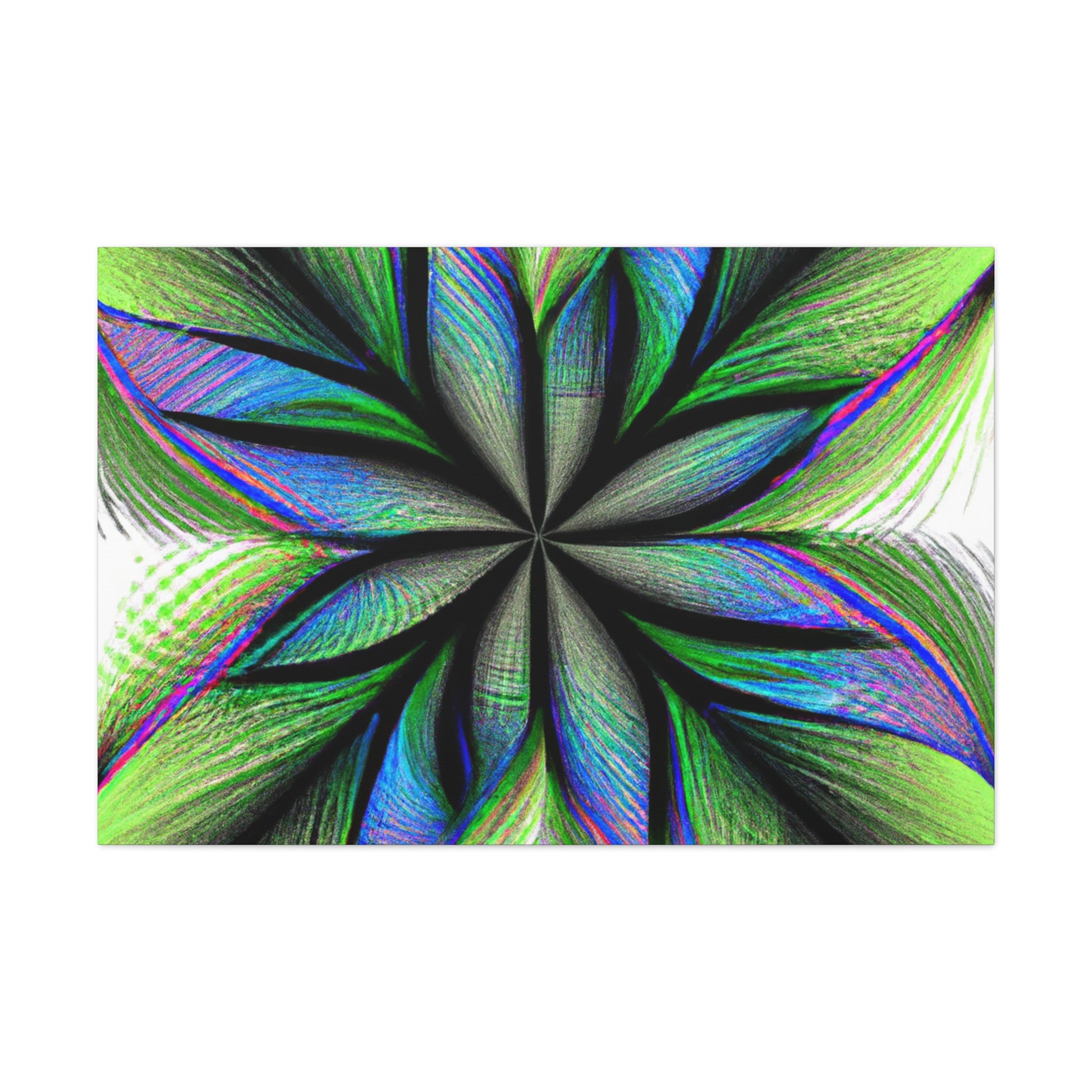 This canvas of Trippy Geometric Palm Leaves is sure to capture your imagination with its feast of kaleidoscope, abstract, digital art, vibrant colors, 3D lines and fractal. Enjoy the intricate details and depth of this extraordinary artwork as you stare at its mesmerising beauty. Let this piece transport you to a mysterious, far away destination! #GeometricArt #AbstractArt #PalmLeaves #Kaleidoscope #DigitalArt #VibrantColors #3DLines #Fractal #Canvas #ModernArt #GraphicDesign