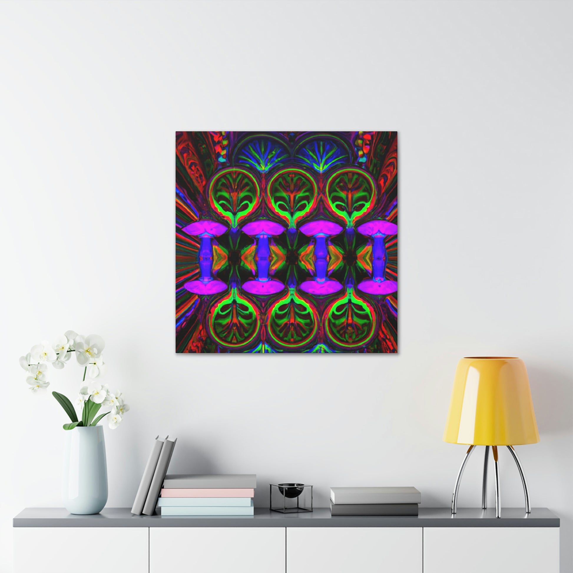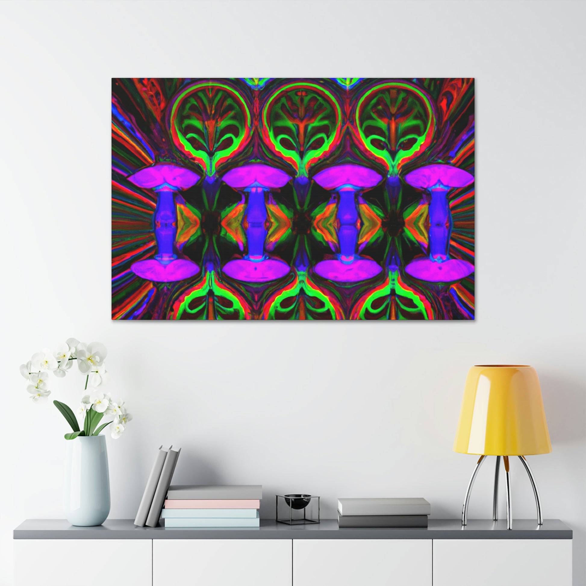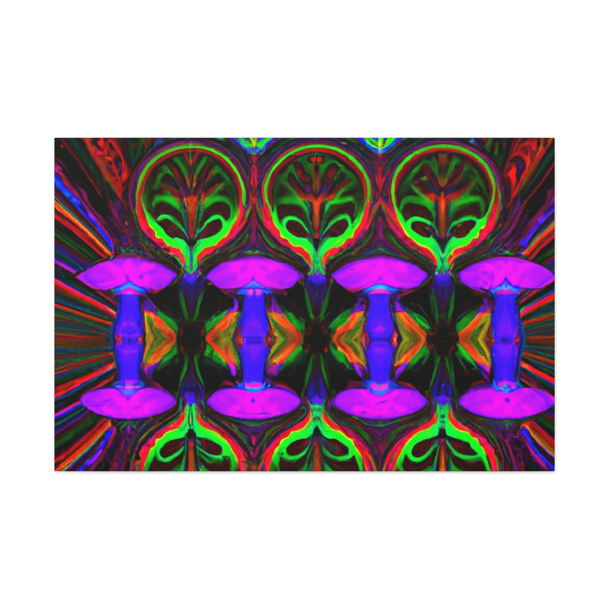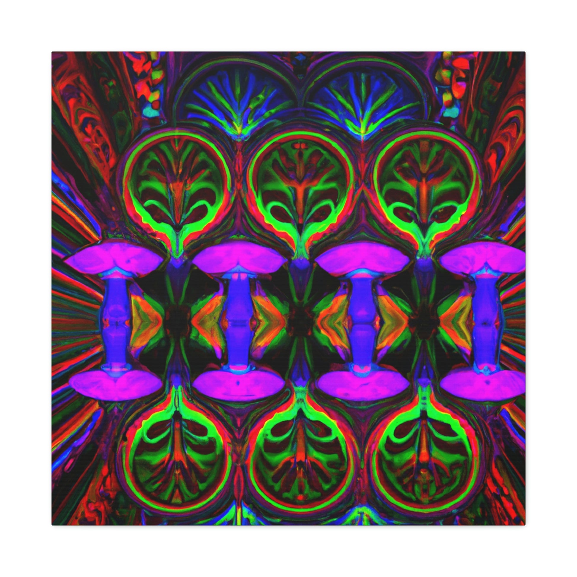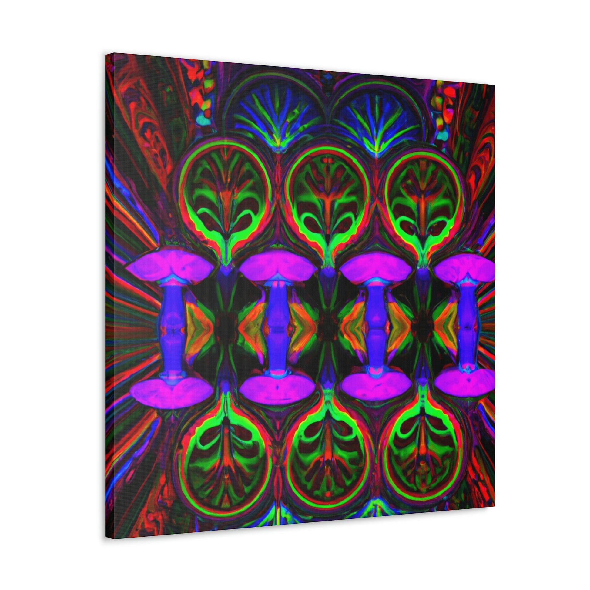 This stunning canvas print of Trippy Mushrooms is both captivating and thought-provoking. Featuring digitally designed kaleidoscope images of vibrant colors, abstract shapes, and 3D lines, it's sure to make a statement in any space. Brighten up your interior with this uniquely crafted art piece that adds a touch of energetic color and playfulness. #digitalart #trippyart #mushroomart #abstractart #vibrantcolors #kaleidoscope #canvasprint #abstractshapes #3Dlines # psychedelicart #interiordecor