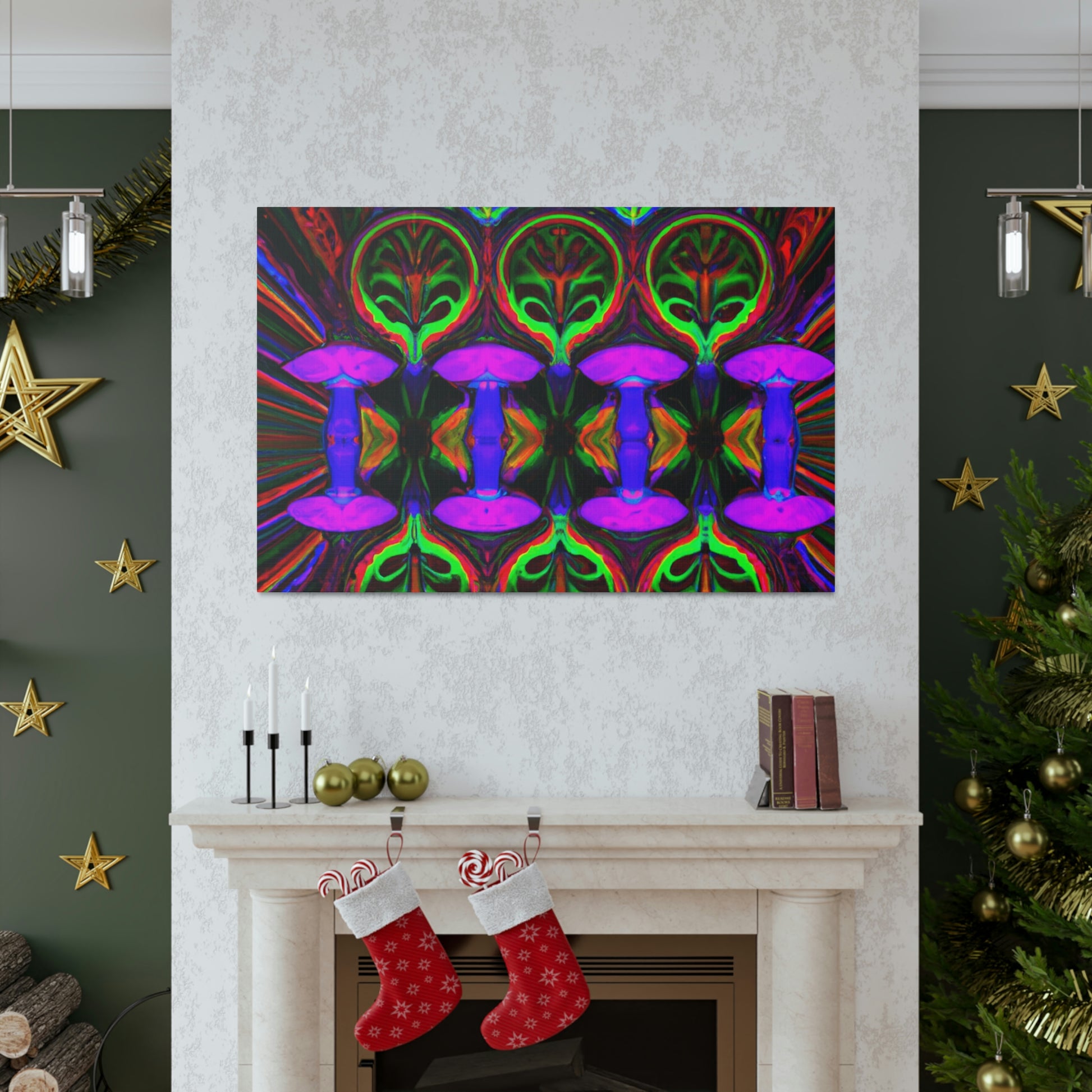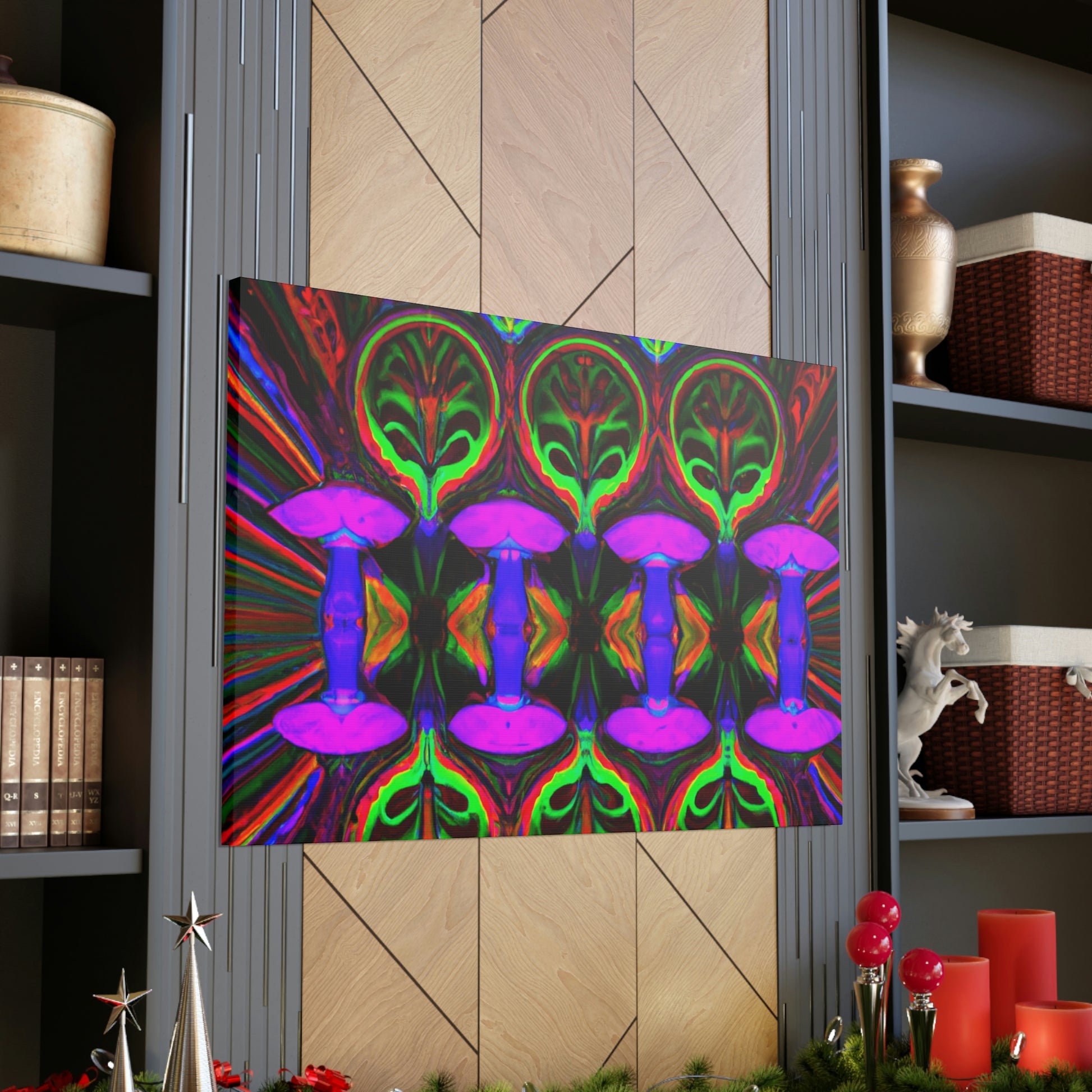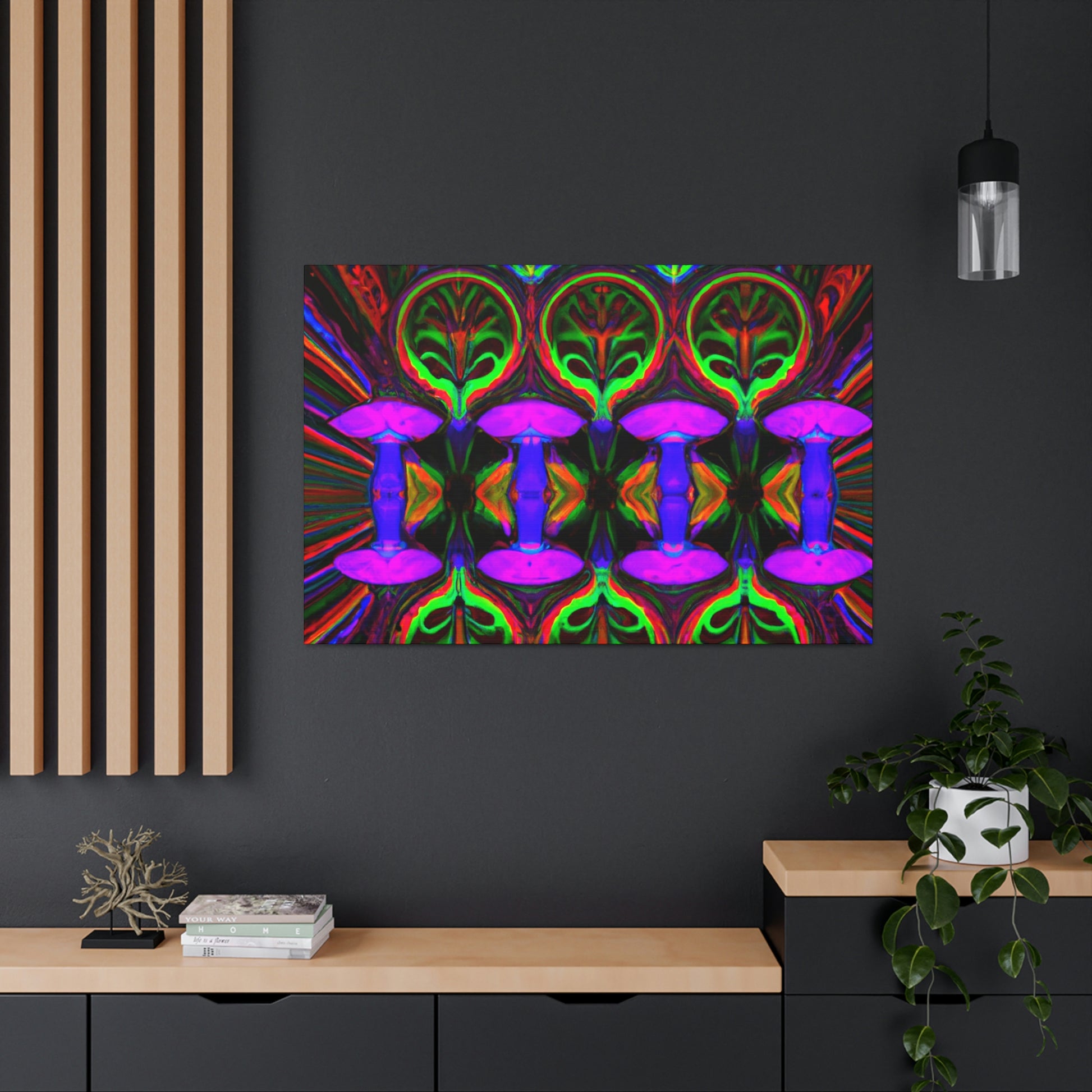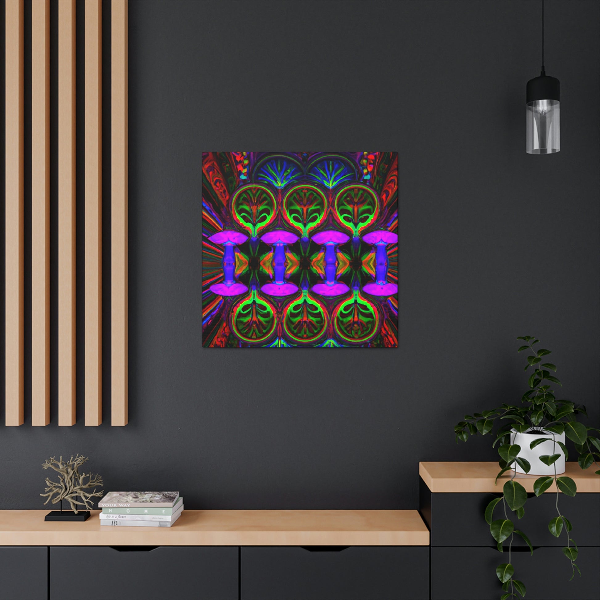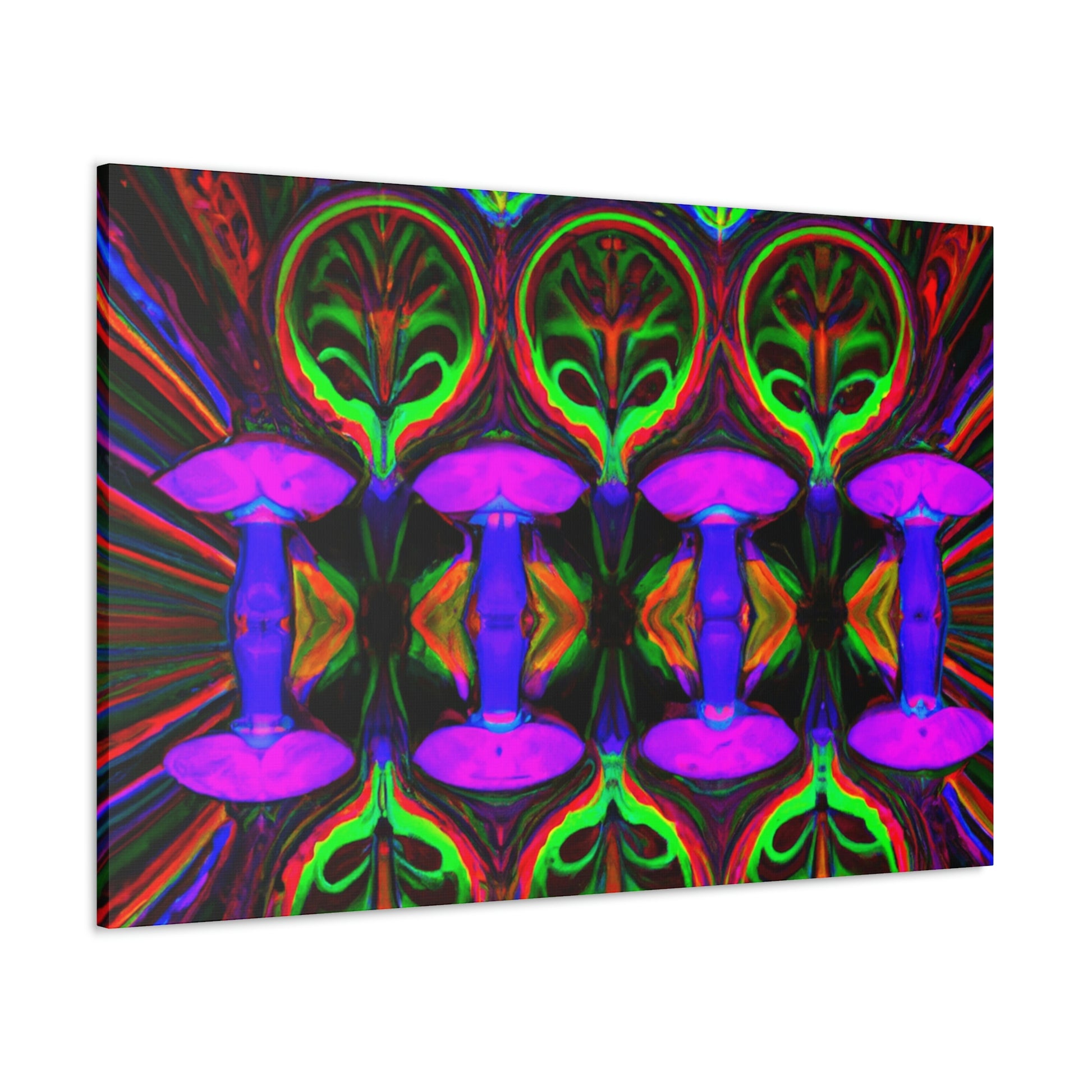 This stunning canvas print of Trippy Mushrooms is both captivating and thought-provoking. Featuring digitally designed kaleidoscope images of vibrant colors, abstract shapes, and 3D lines, it's sure to make a statement in any space. Brighten up your interior with this uniquely crafted art piece that adds a touch of energetic color and playfulness. #digitalart #trippyart #mushroomart #abstractart #vibrantcolors #kaleidoscope #canvasprint #abstractshapes #3Dlines # psychedelicart #interiordecor