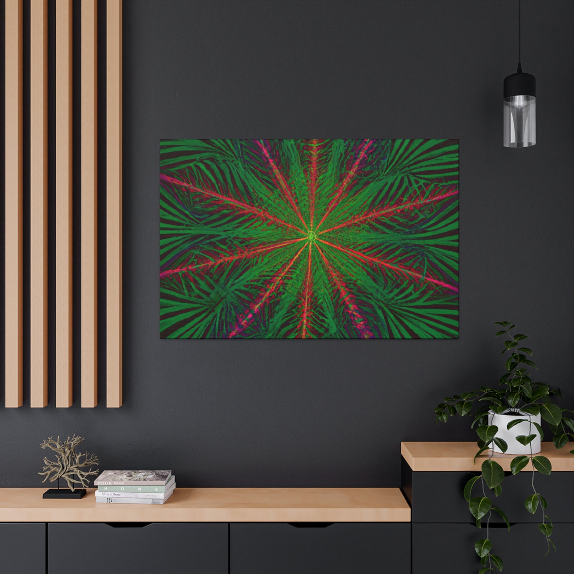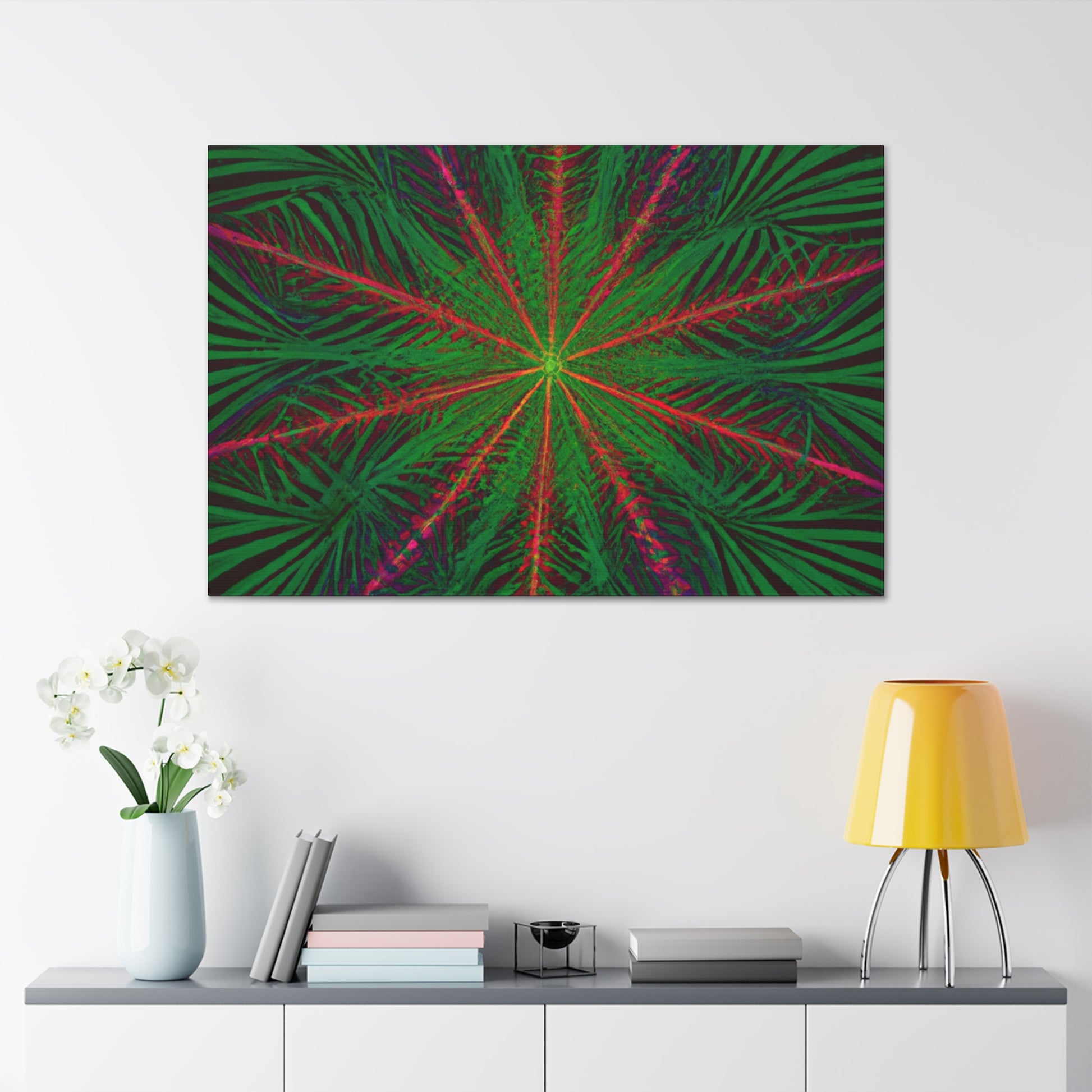 This eye-catching canvas features a mesmerizing blend of abstract digital art elements. Featuring vibrant colors, 3D lines, Trippy geometric palm leaves, and kaleidoscope fractals, this dynamic wall art will add a unique touch to any room. Hang it up and let your walls come to life with this captivating art piece. #DigitalArt #AbstractArt #Canvas #Art #TrippyArt #PalmLeaves #Kaleidoscope #Fractal #VibrantColors #3DLines #GeometricArt