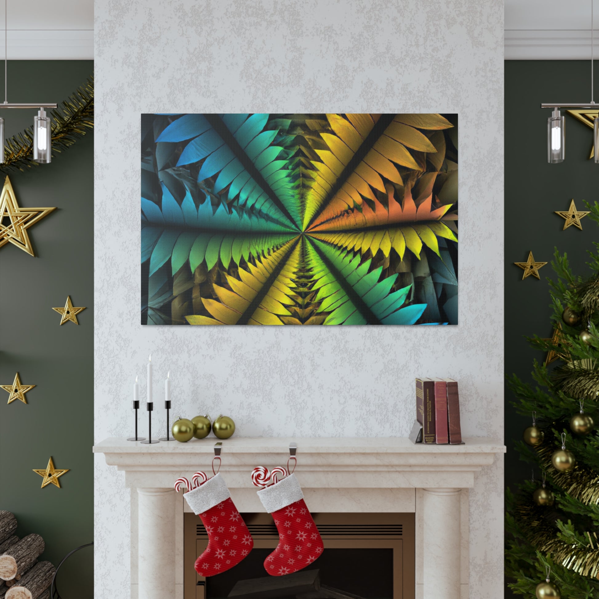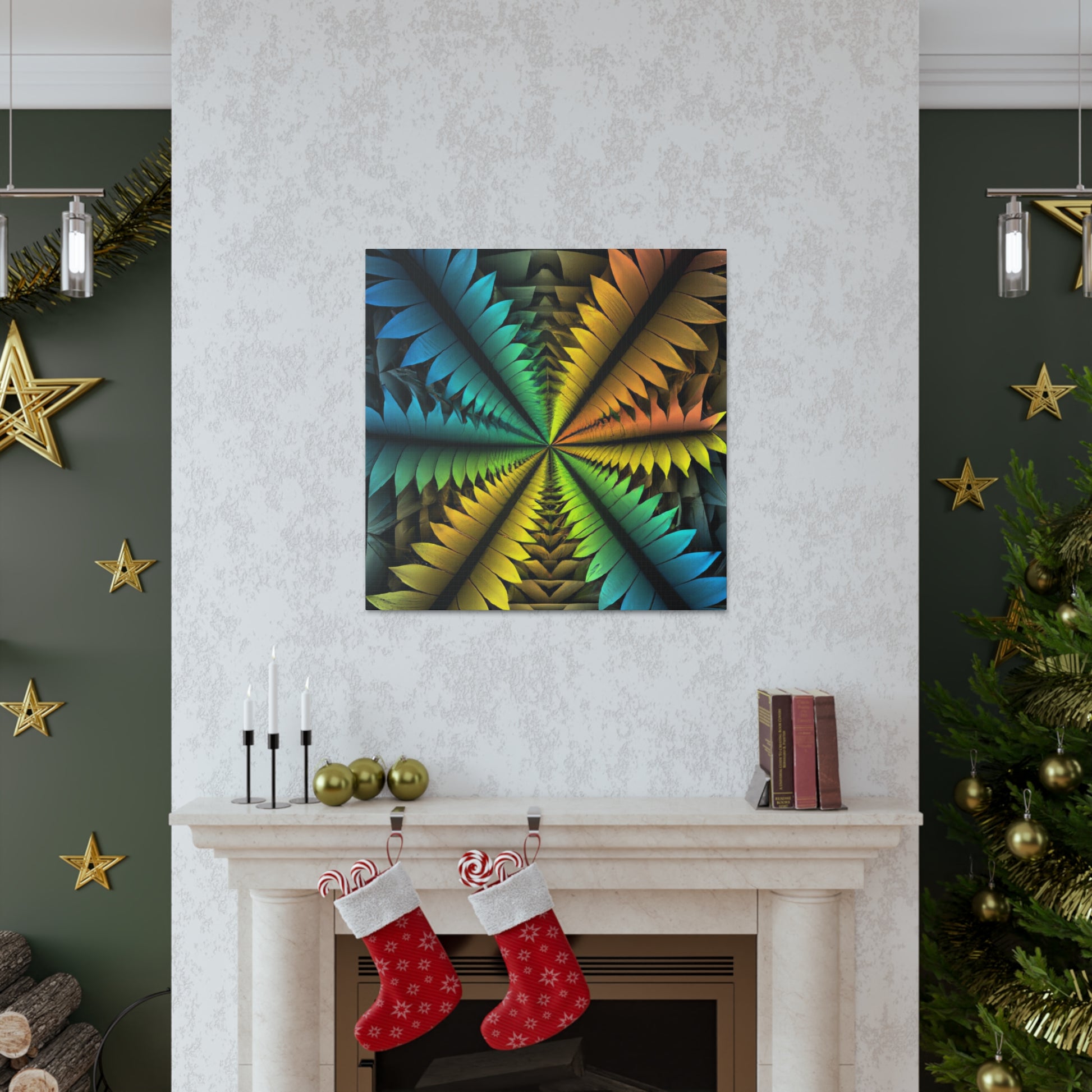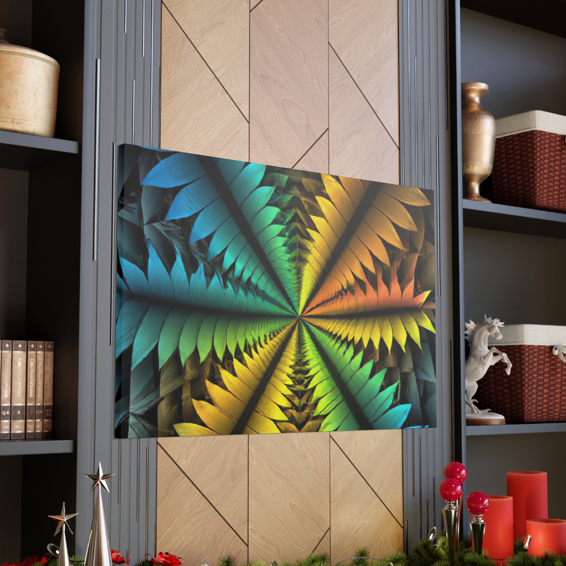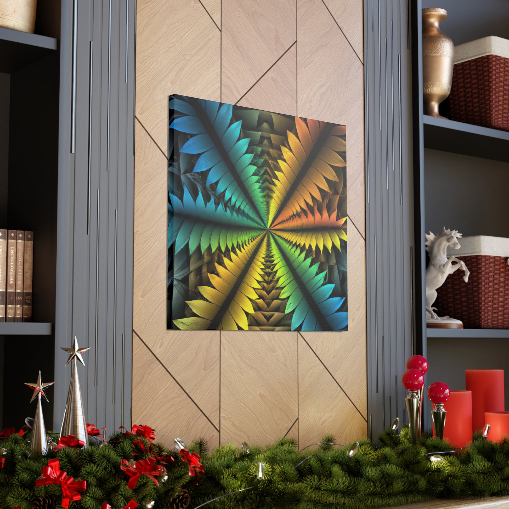 This canvas features a stunning mix of abstract techniques and colors, resulting in a kaleidoscopic work of art that will bring a unique, artistic element to your home. The image features trippy geometric palm leaves, vibrant colors, 3D lines, fractals, and digital art, all of which is sure to have your guests in awe. Get this one-of-a-kind piece of art today and bring an intriguing visual element into your home! #ArtCanvas #DigitalArt #UniqueArt #Geometric #AbstractArt #Kaleidoscope #Fractal #VisualArt #PalmLeaves #VibrantColors #3DLines