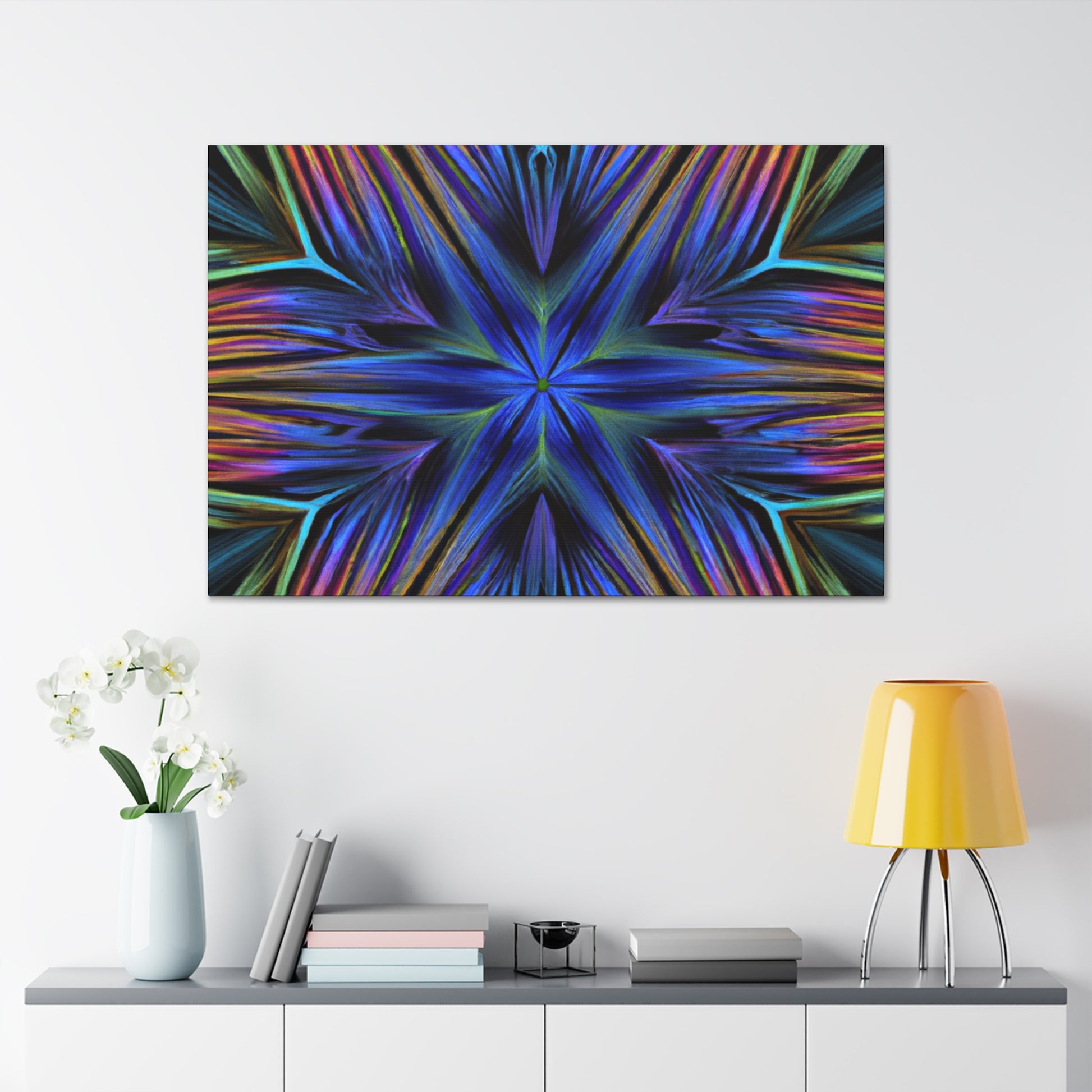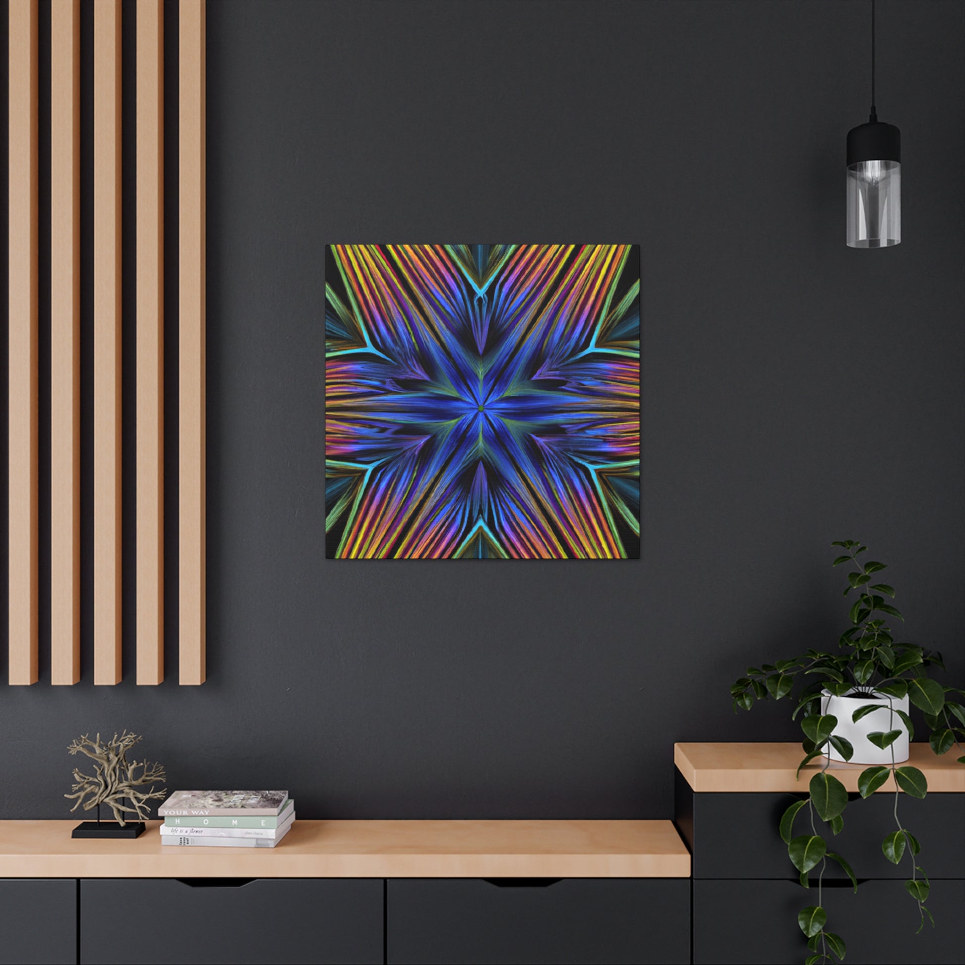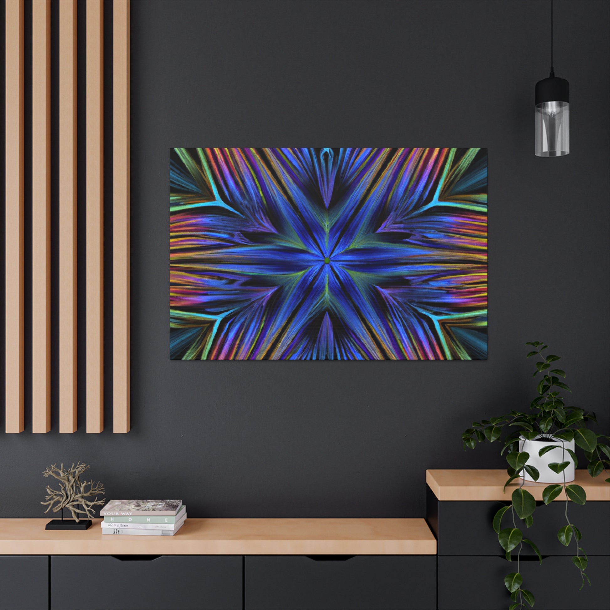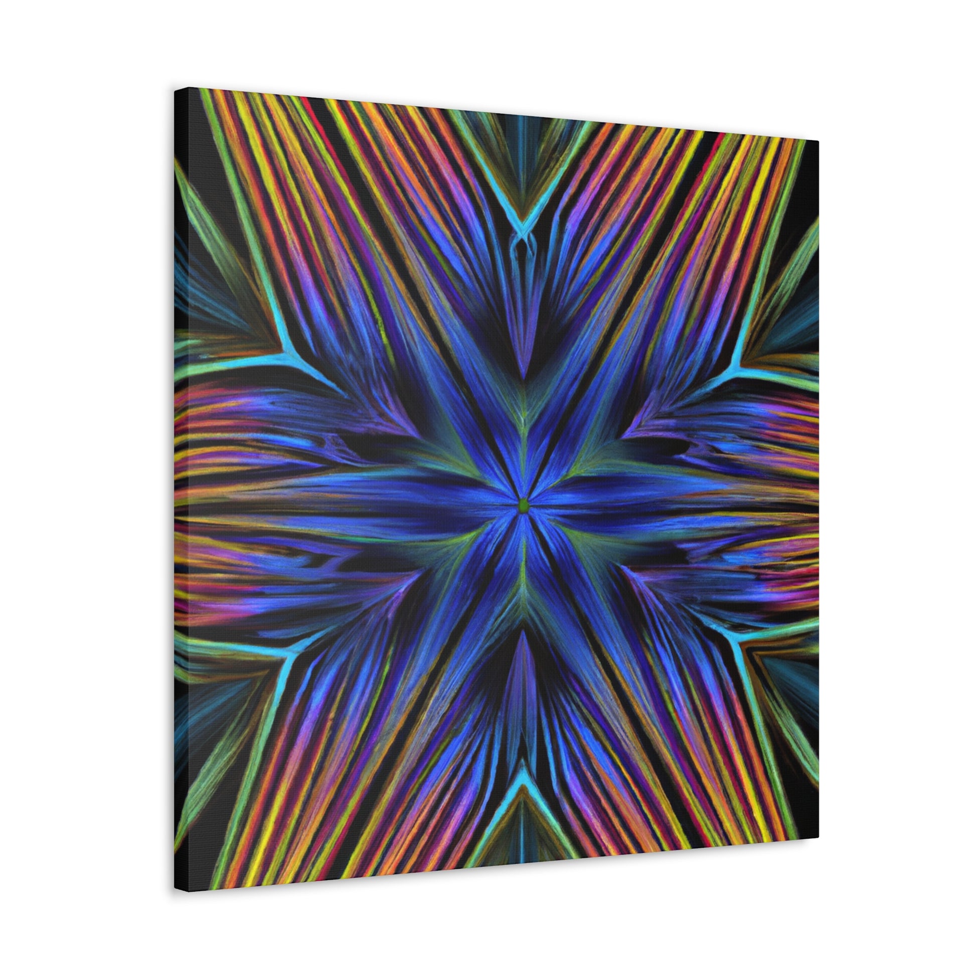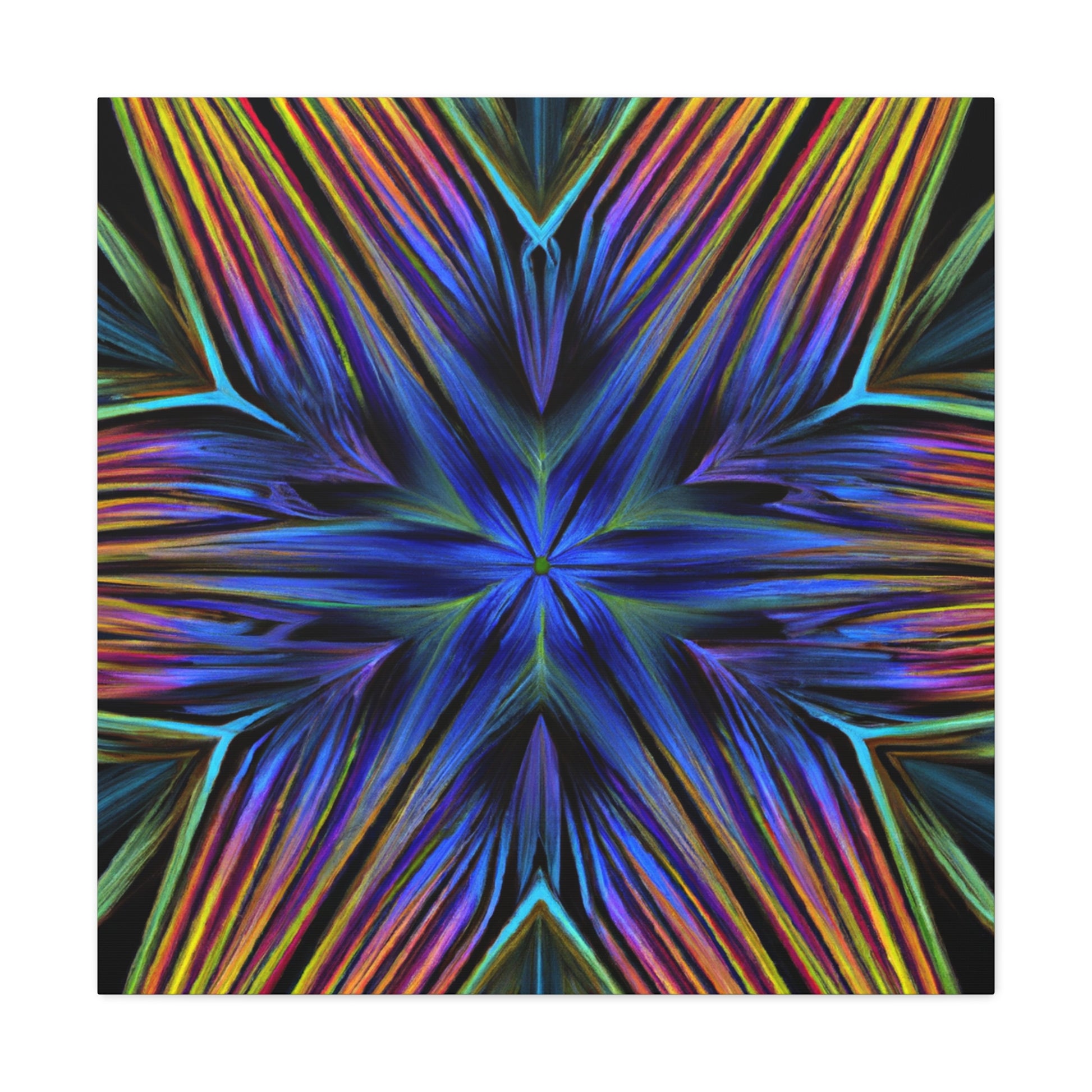 This vibrant and eye-catching canvas is perfect to spruce up any room! It features bold 3D lines, Trippy Geometric Palm leaves, abstract fractal designs and kaleidoscope forms with bold colors. Add a statement piece of art to your walls with this one of a kind abstract canvas. #AbstractArt #3DLines #TrippyGeometricPalmLeaves #Kaleidoscope #DigitalArt #Fractals #VibrantColors #Canvas #ArtDecor #Decorations #3DArt