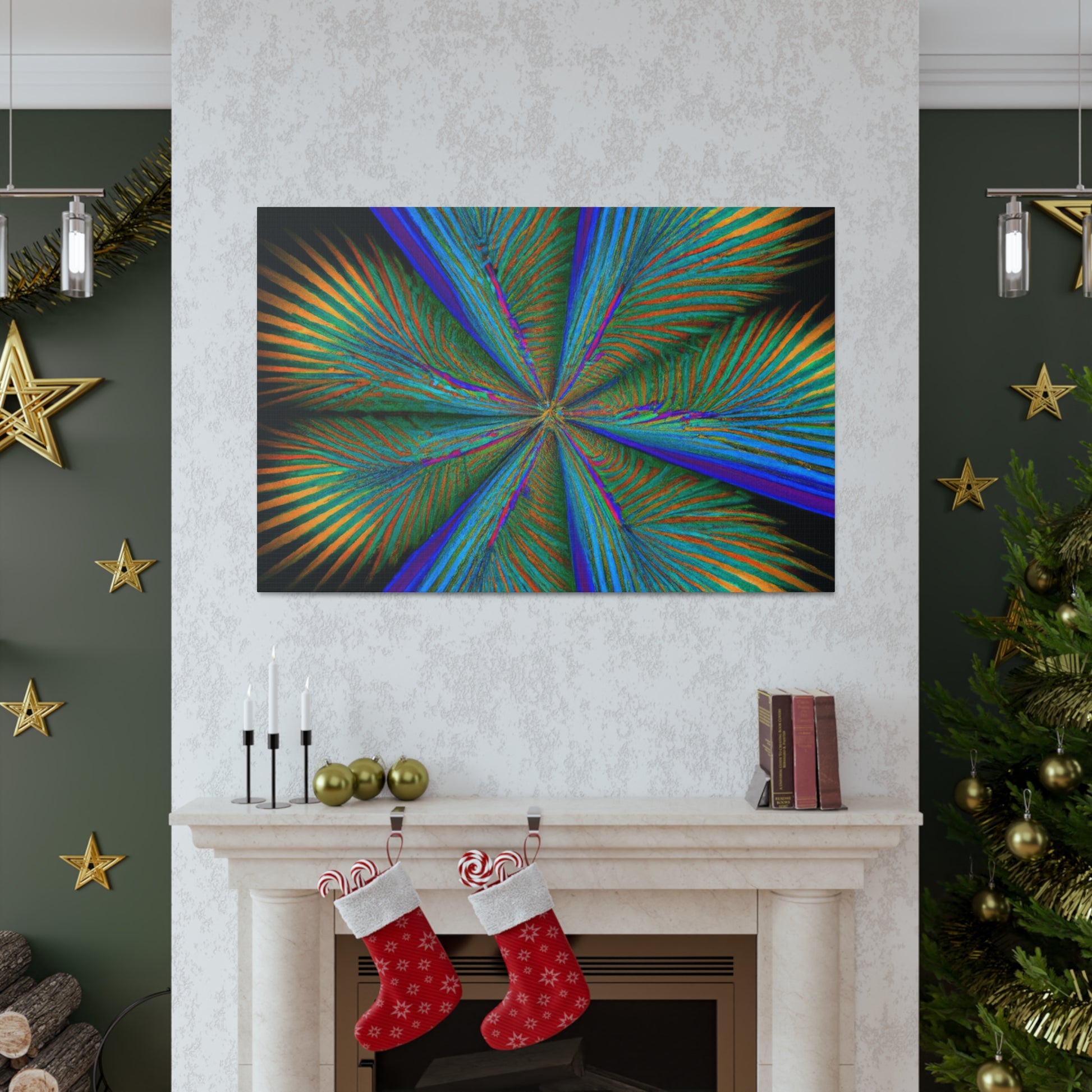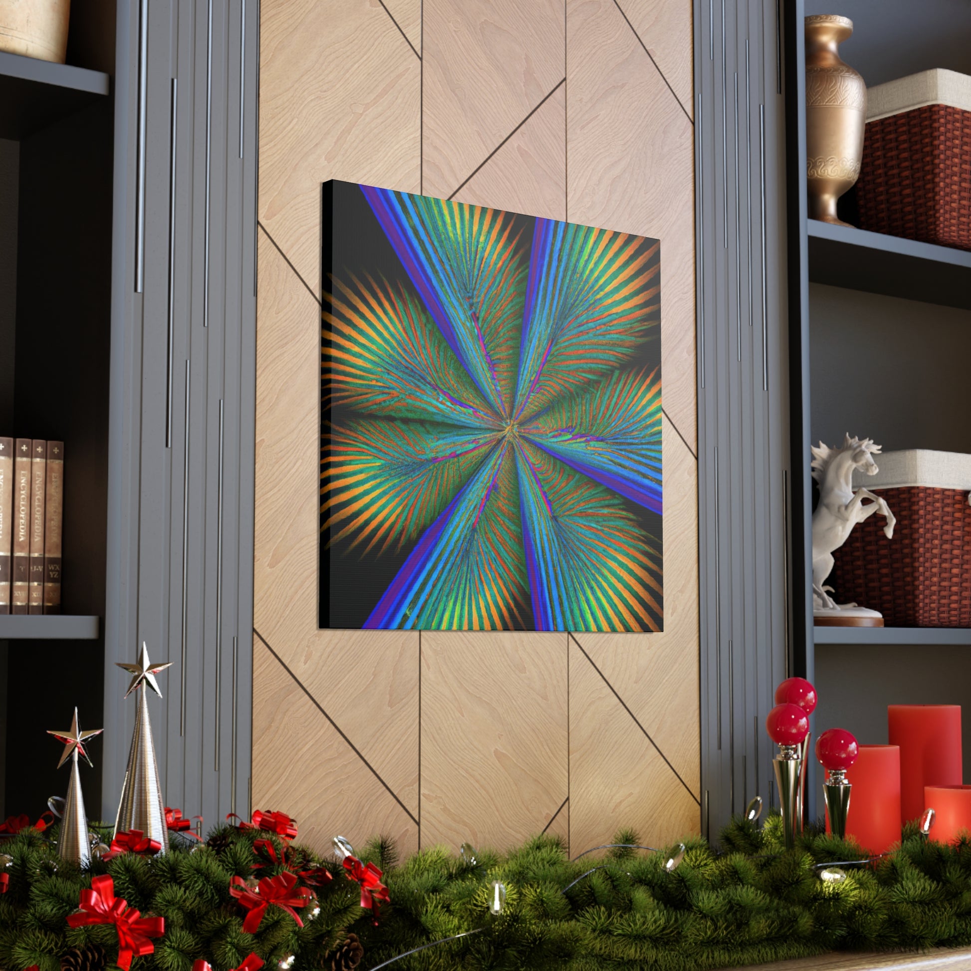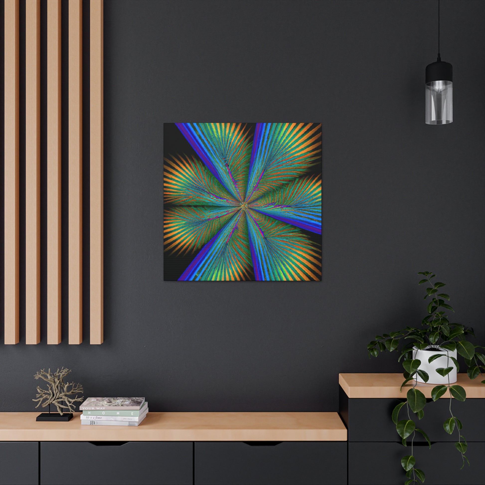 This bright and unique canvas captures an array of mesmerizing geometric patterns and elements in vibrant shades! Featuring a kaleidoscope of abstract, digital art including 3D lines, fractals and trippy palm leaves, this art will be a showstopper on your wall. Add a spark of energy to your home with this one-of-a-kind piece! #geometriccanvas #digitalart #3Dlines #fractals #trippycanvas #abstractcanvas #kaleidoscopeart #dynamicart #canvasart #vibrantcolours #energyart
