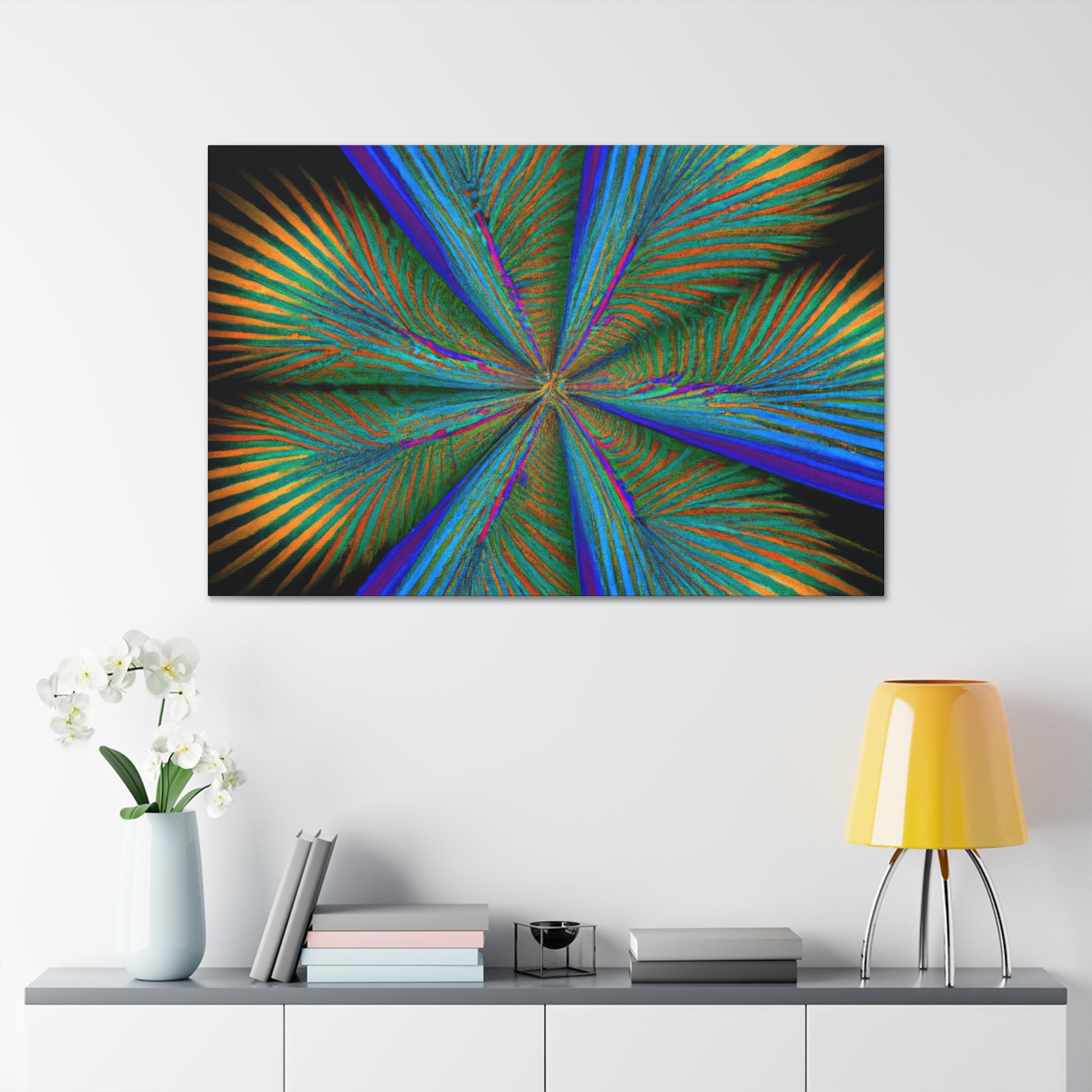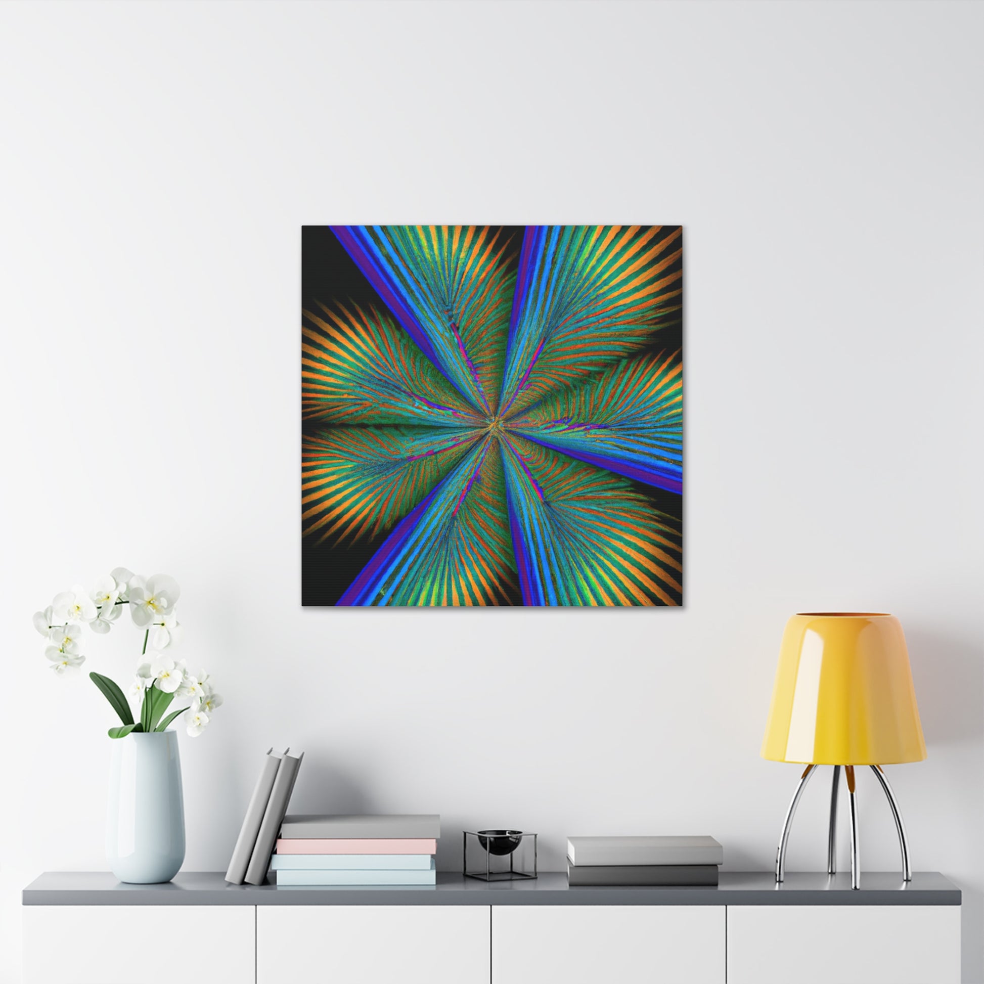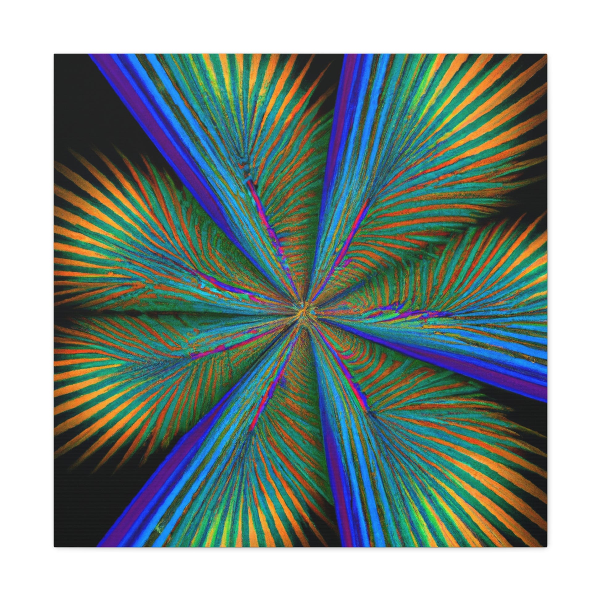 This bright and unique canvas captures an array of mesmerizing geometric patterns and elements in vibrant shades! Featuring a kaleidoscope of abstract, digital art including 3D lines, fractals and trippy palm leaves, this art will be a showstopper on your wall. Add a spark of energy to your home with this one-of-a-kind piece! #geometriccanvas #digitalart #3Dlines #fractals #trippycanvas #abstractcanvas #kaleidoscopeart #dynamicart #canvasart #vibrantcolours #energyart