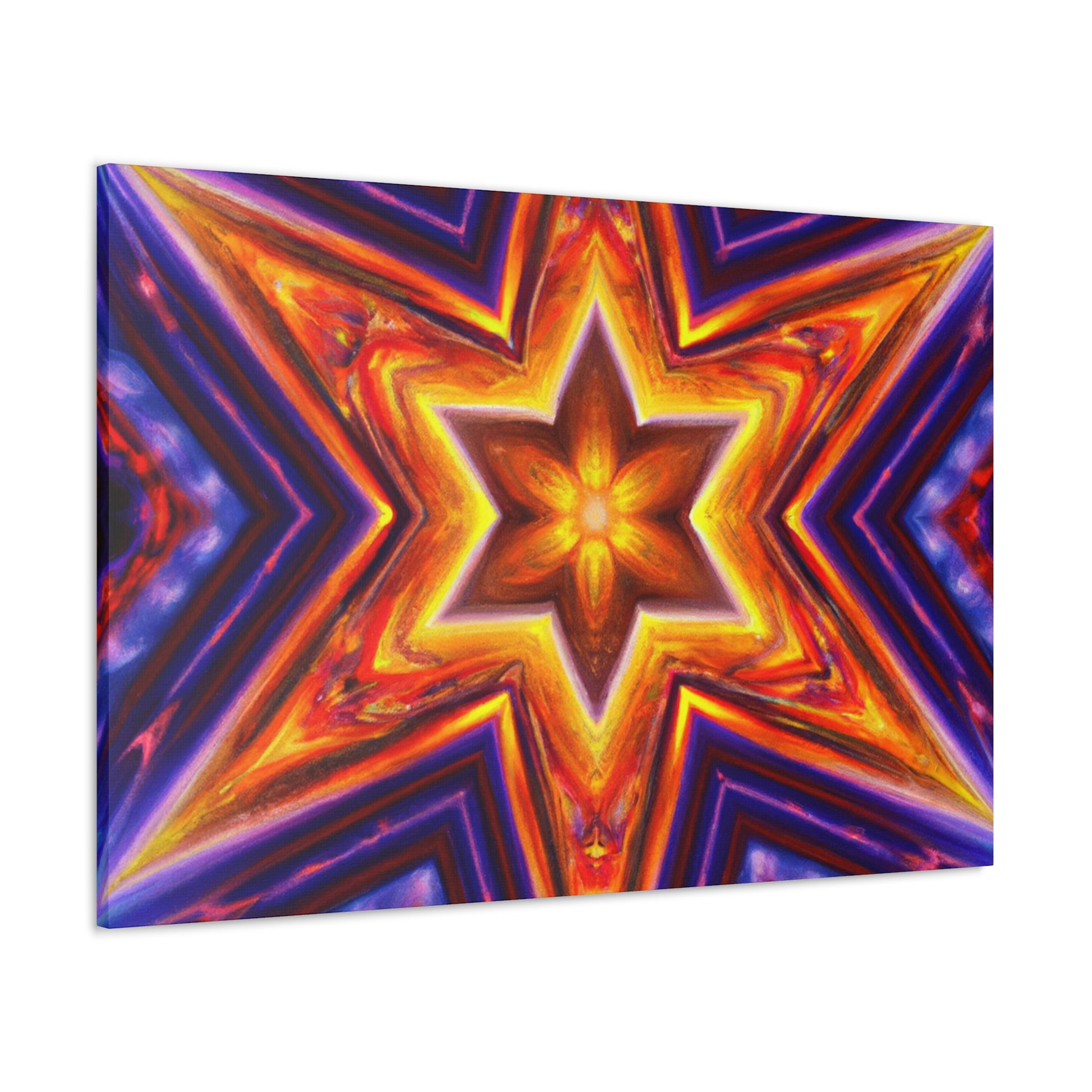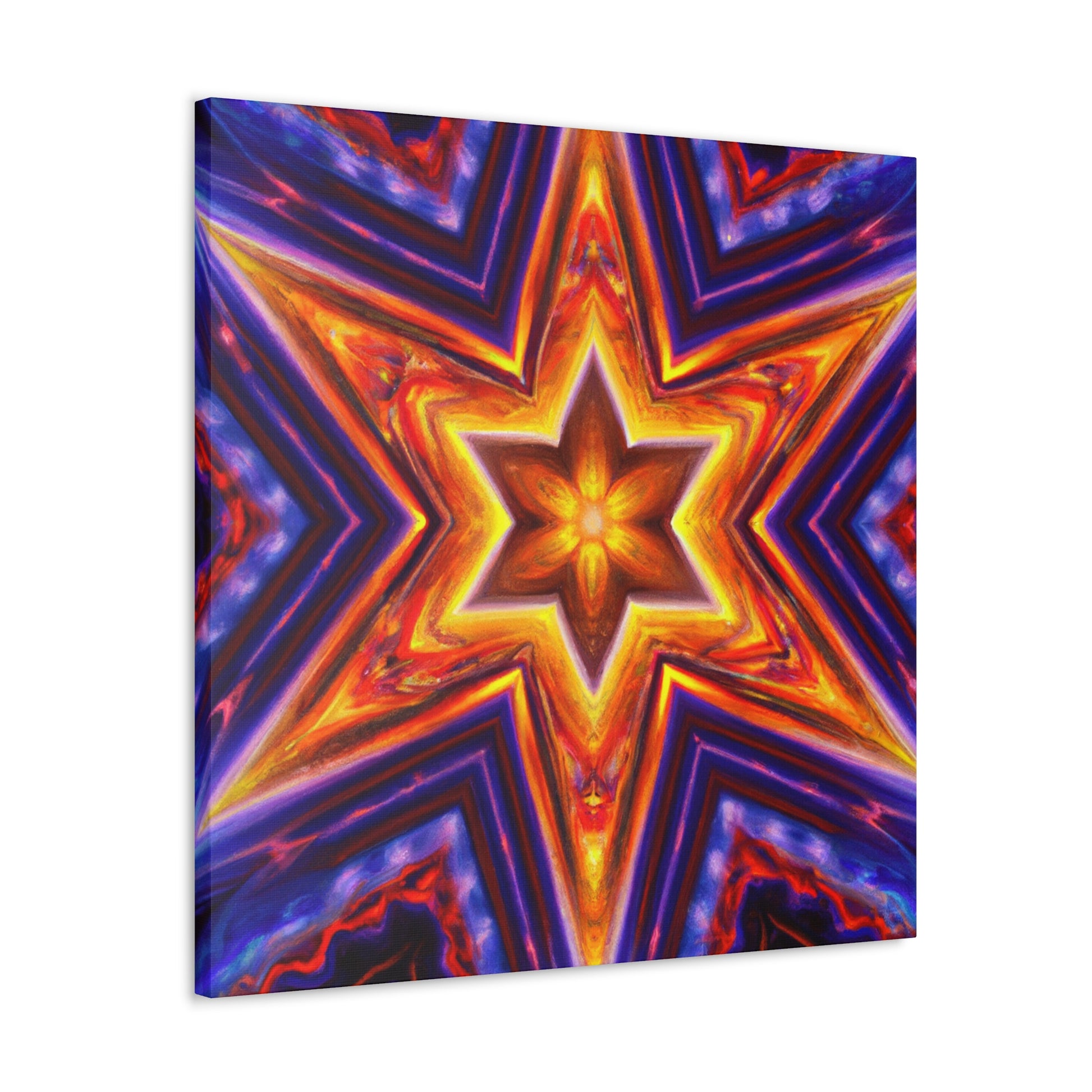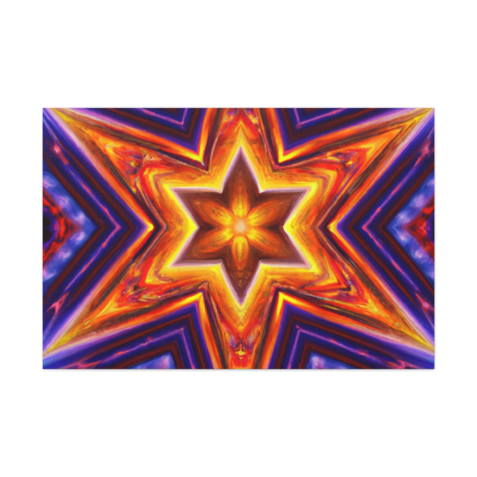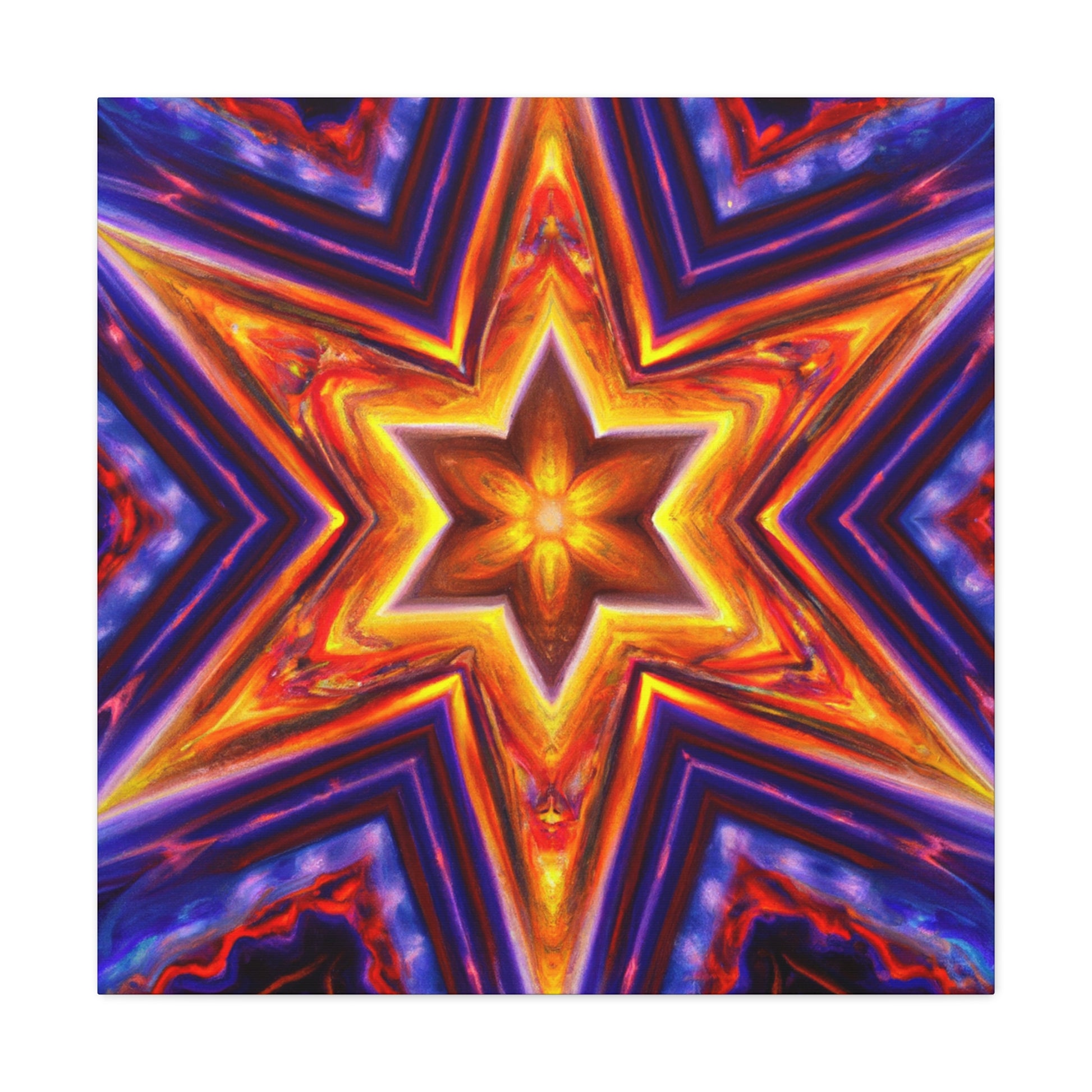 This canvas of vibrant, abstract digital art features kaleidoscope, trippy stars, and rich symmetrical design in HD. Get a stunning art piece like no other with this vivid colors and high-definition. Transform any space into a modern art gallery with this truly unique canvas. #abstractart #trippystars #kaleidoscope #digitalart #vibrantcolors #HD #symmetrical #canvas #modernart #vividcolors #highdefinition