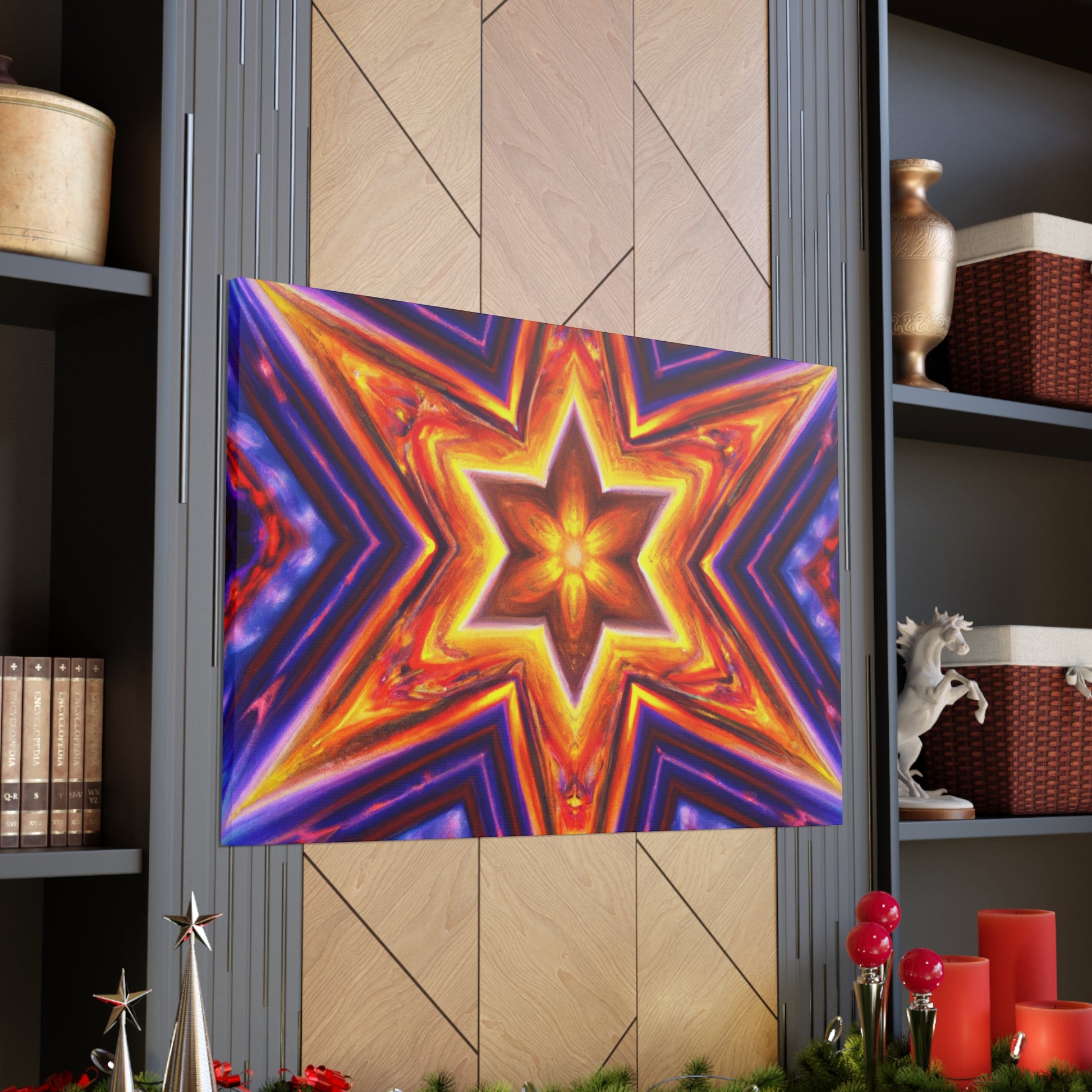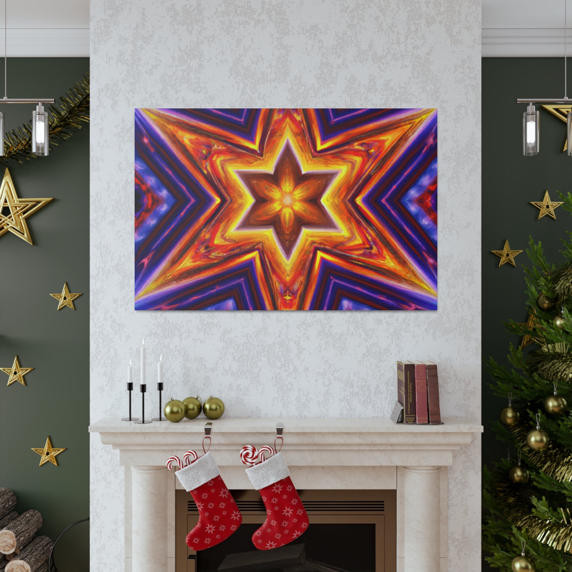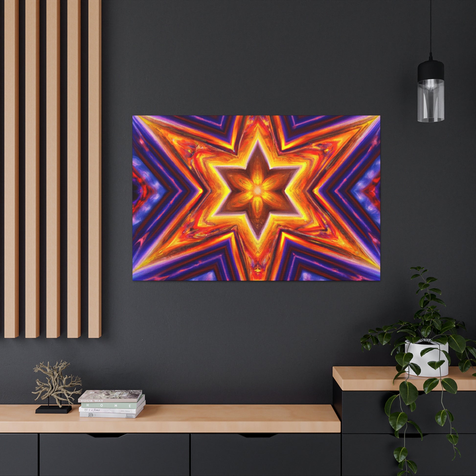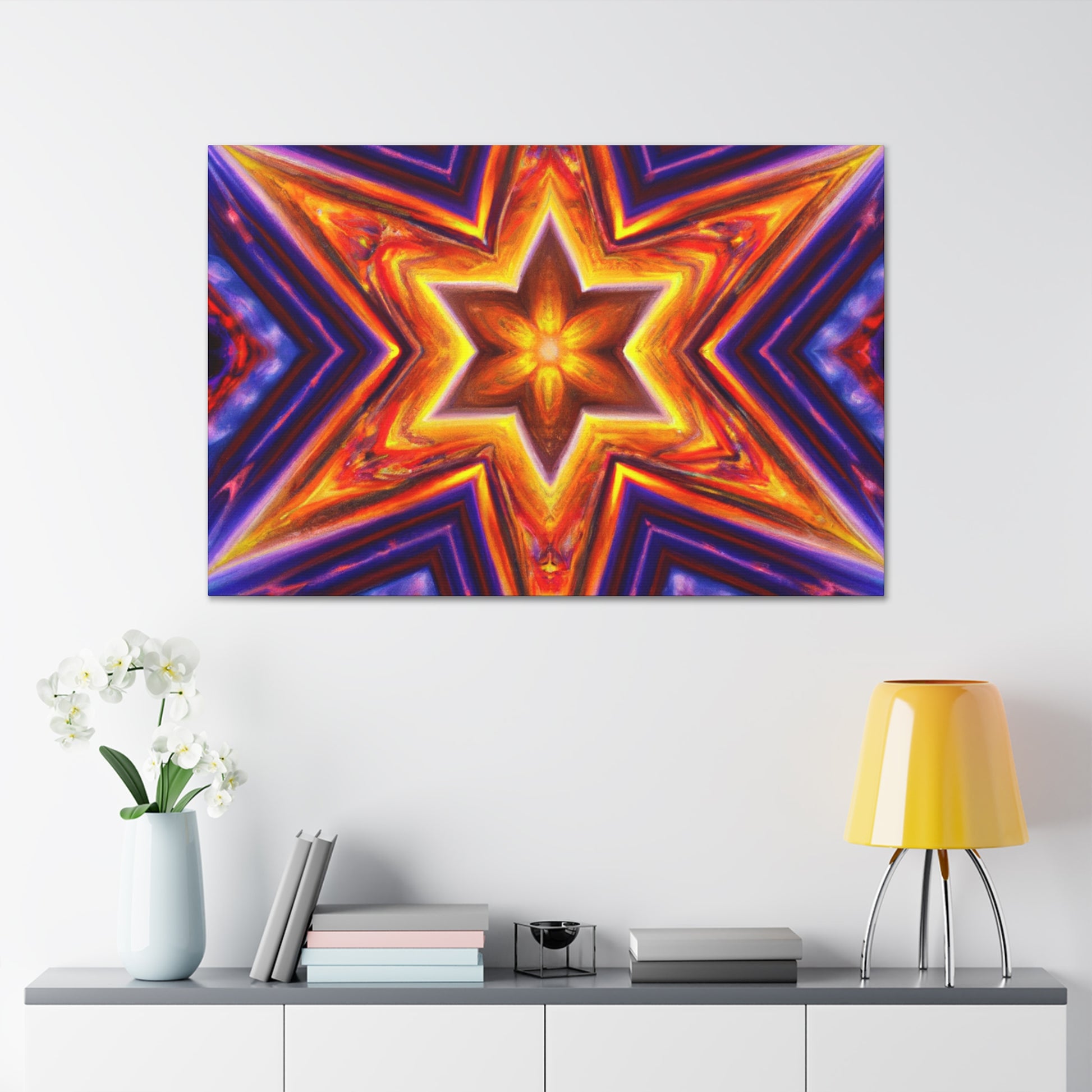 This canvas of vibrant, abstract digital art features kaleidoscope, trippy stars, and rich symmetrical design in HD. Get a stunning art piece like no other with this vivid colors and high-definition. Transform any space into a modern art gallery with this truly unique canvas. #abstractart #trippystars #kaleidoscope #digitalart #vibrantcolors #HD #symmetrical #canvas #modernart #vividcolors #highdefinition