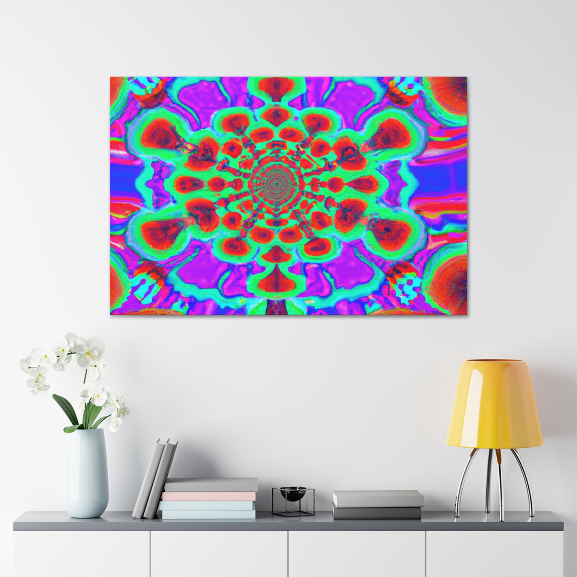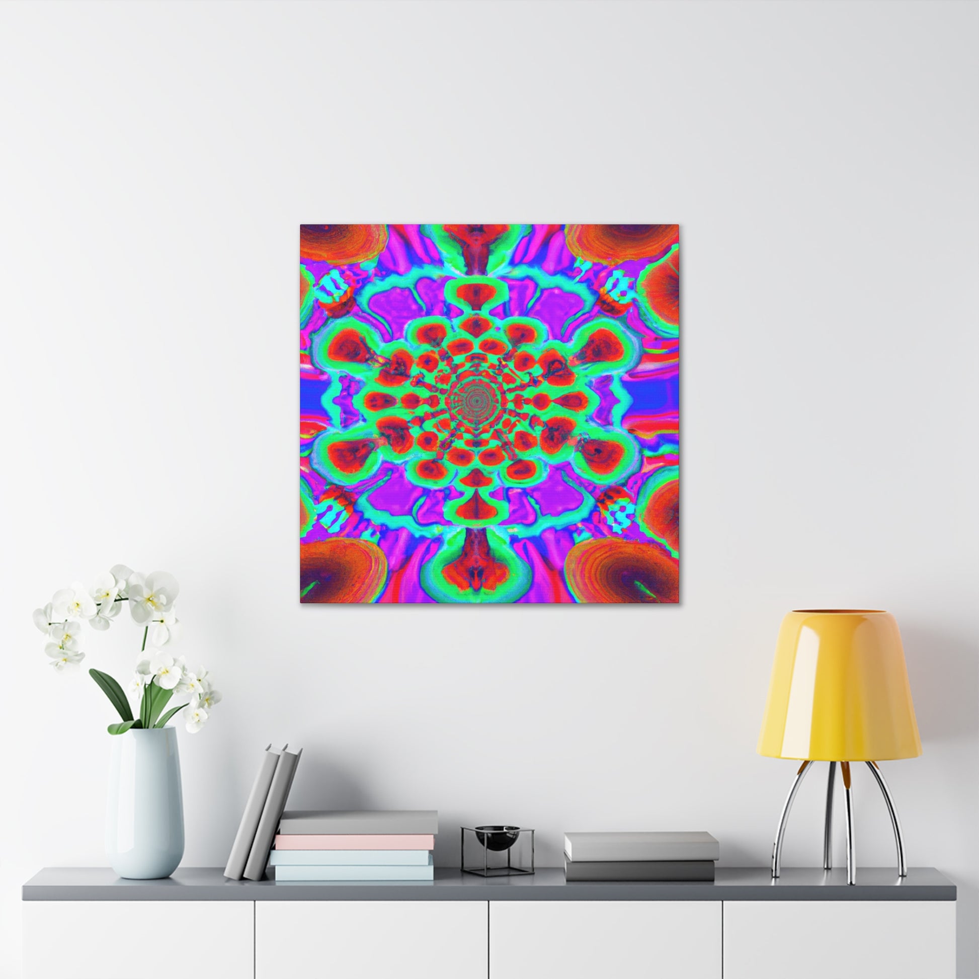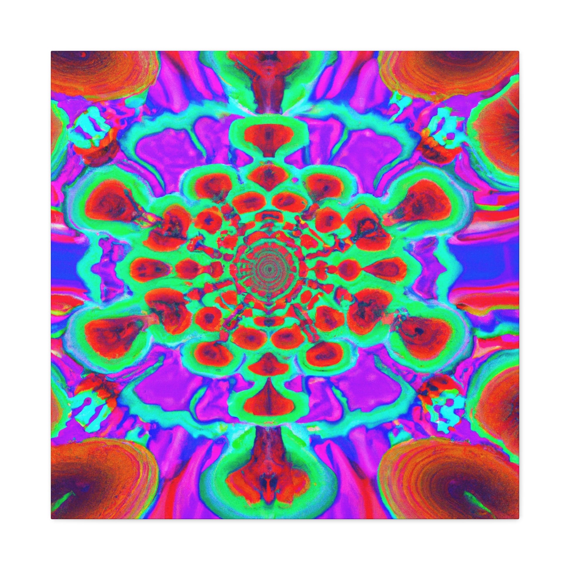 This gorgeous abstract digital art features the bright colors of trippy mushrooms, kaleidoscopic shapes and lines, and 3D design all in one canvas. Perfect for any room, this unique art will liven up any space and add a unique touch of vibrancy to any wall. #AbstractArt #DigitalArt #3DLines #TrippyMushrooms #Kaleidoscope #VibrantColors #UniqueArt #CanvasArt #ArtDeco #ColorfulArt #WallDecor