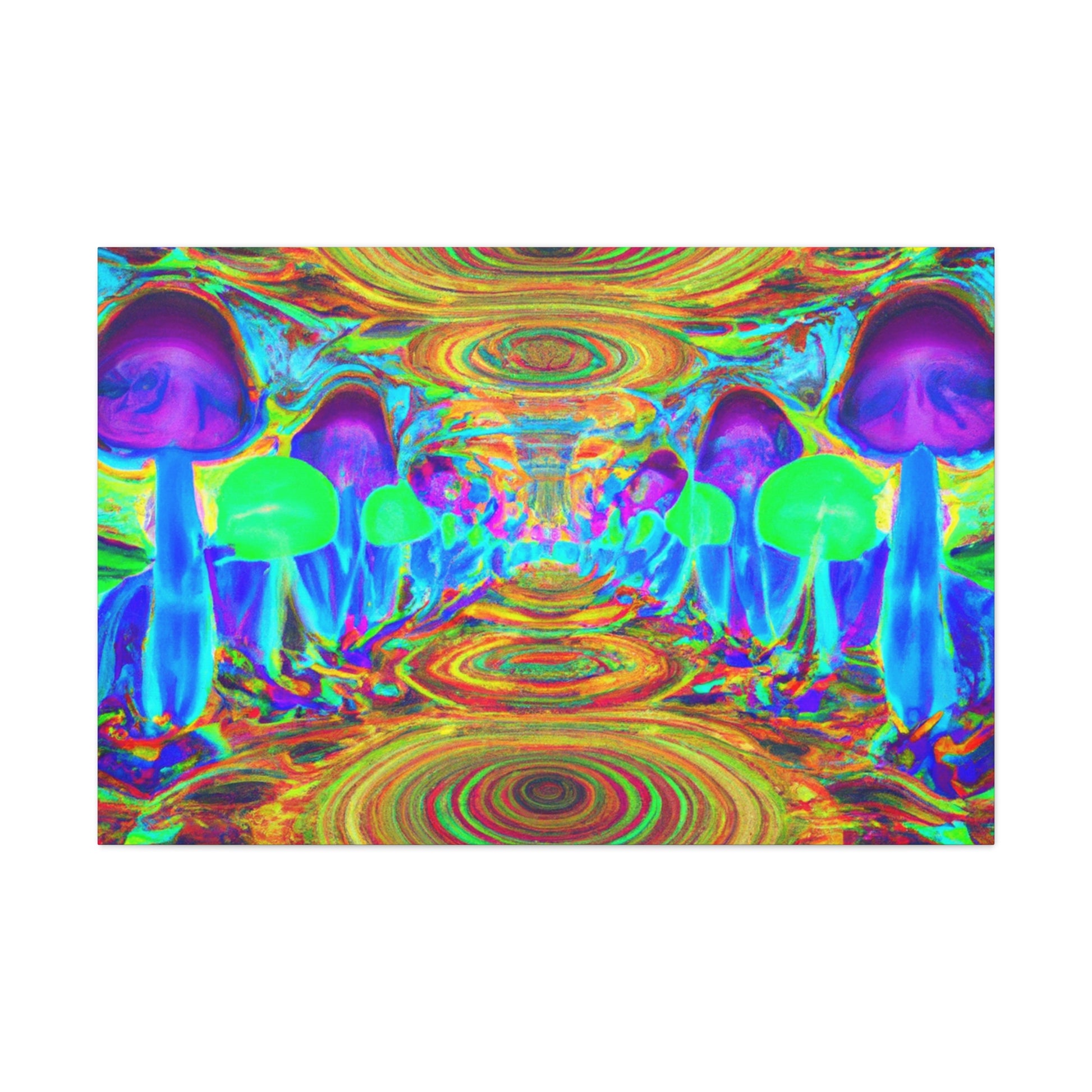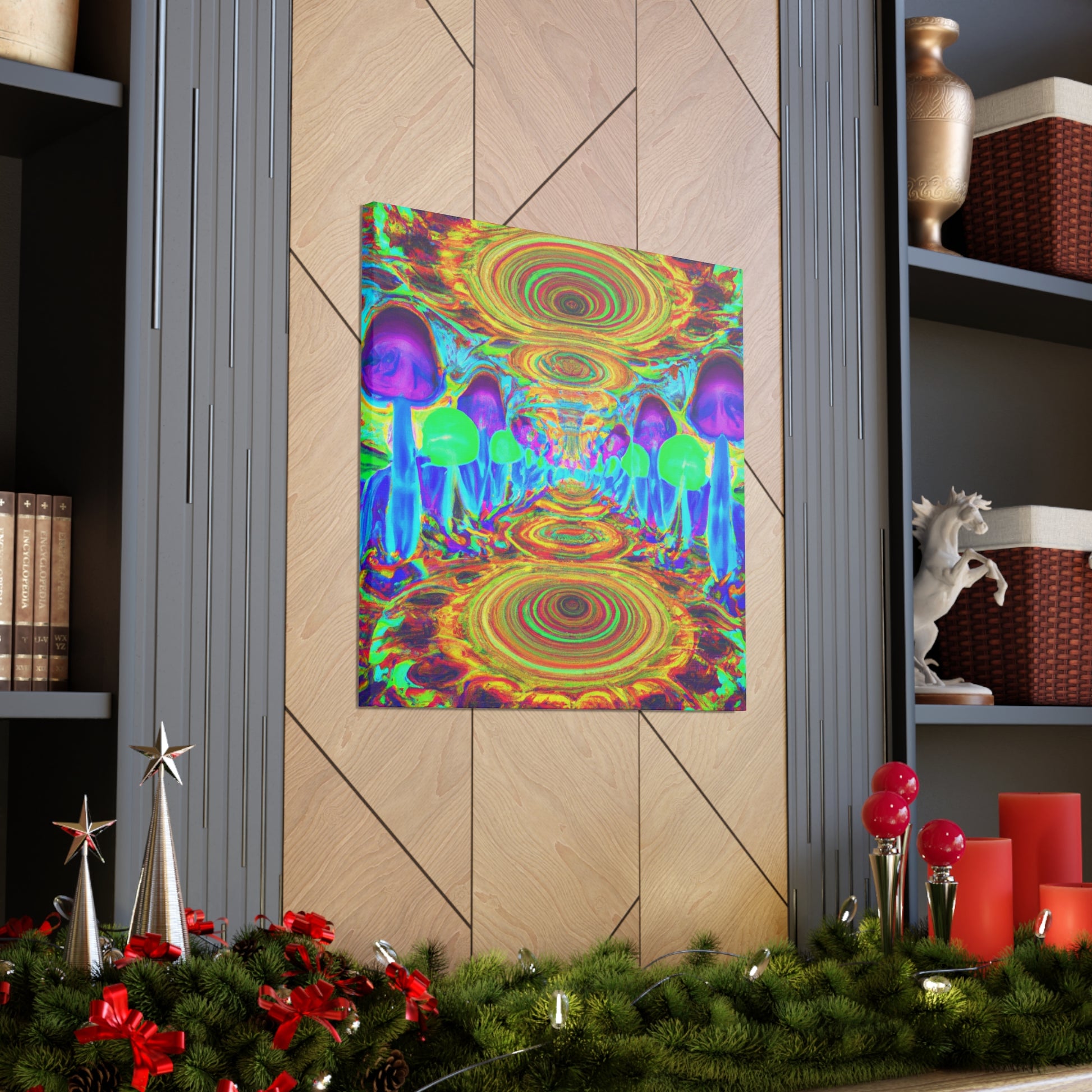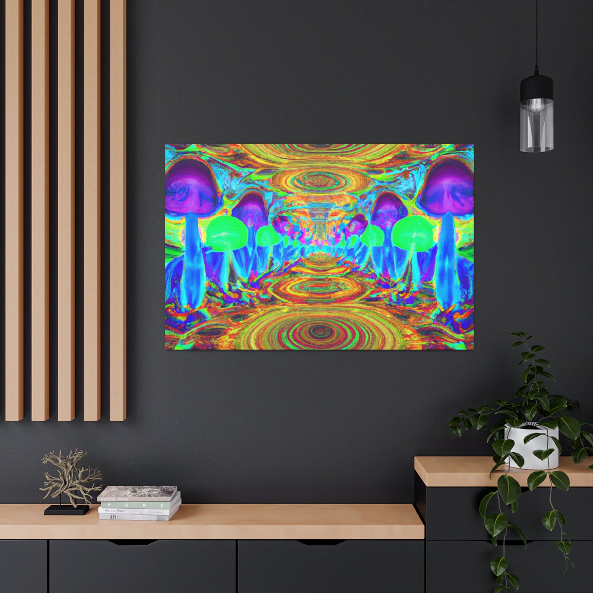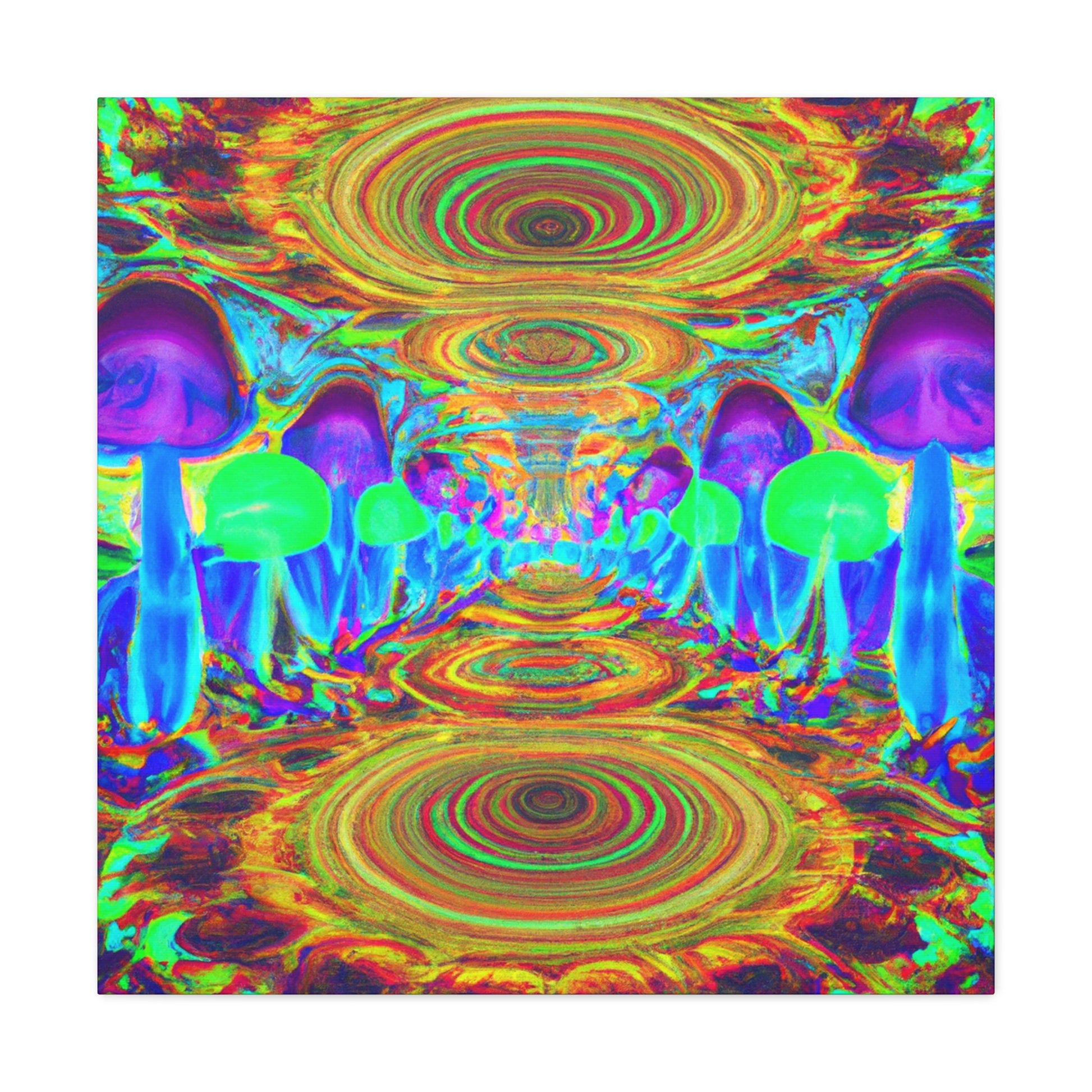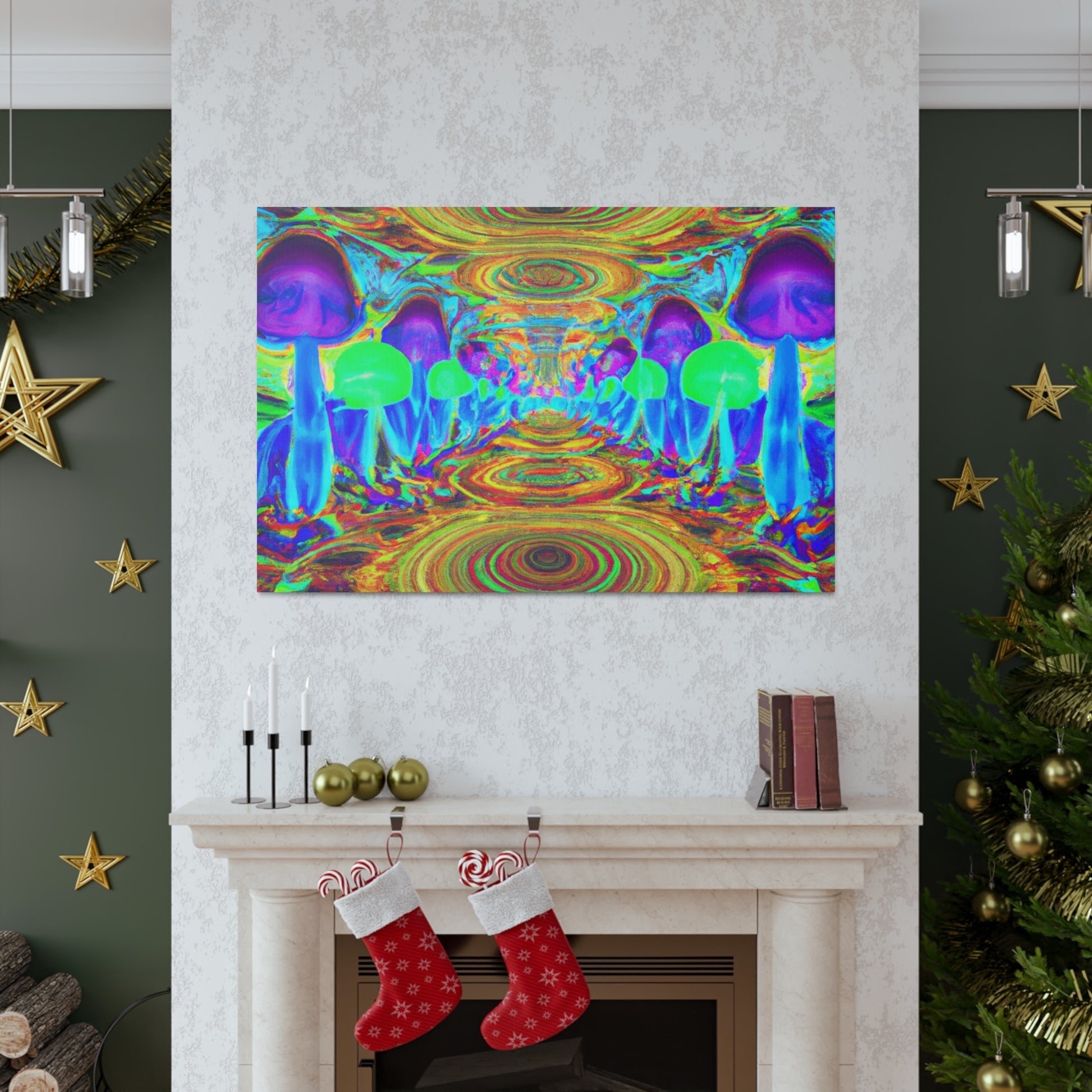 This visually stunning art piece will add a kaleidoscopic, trippy twist to any room you hang it in. Our canvas features digital art with abstract shapes, vibrant colors and 3D lines. The captivating colors and surrealistic design are sure to draw the eye and give your decor an unique and captivating touch. #art #canvas #3dlines #kaleidoscope #vibrantcolors #abstract #trippy #mushrooms #digitalart #surrealistic #decor
