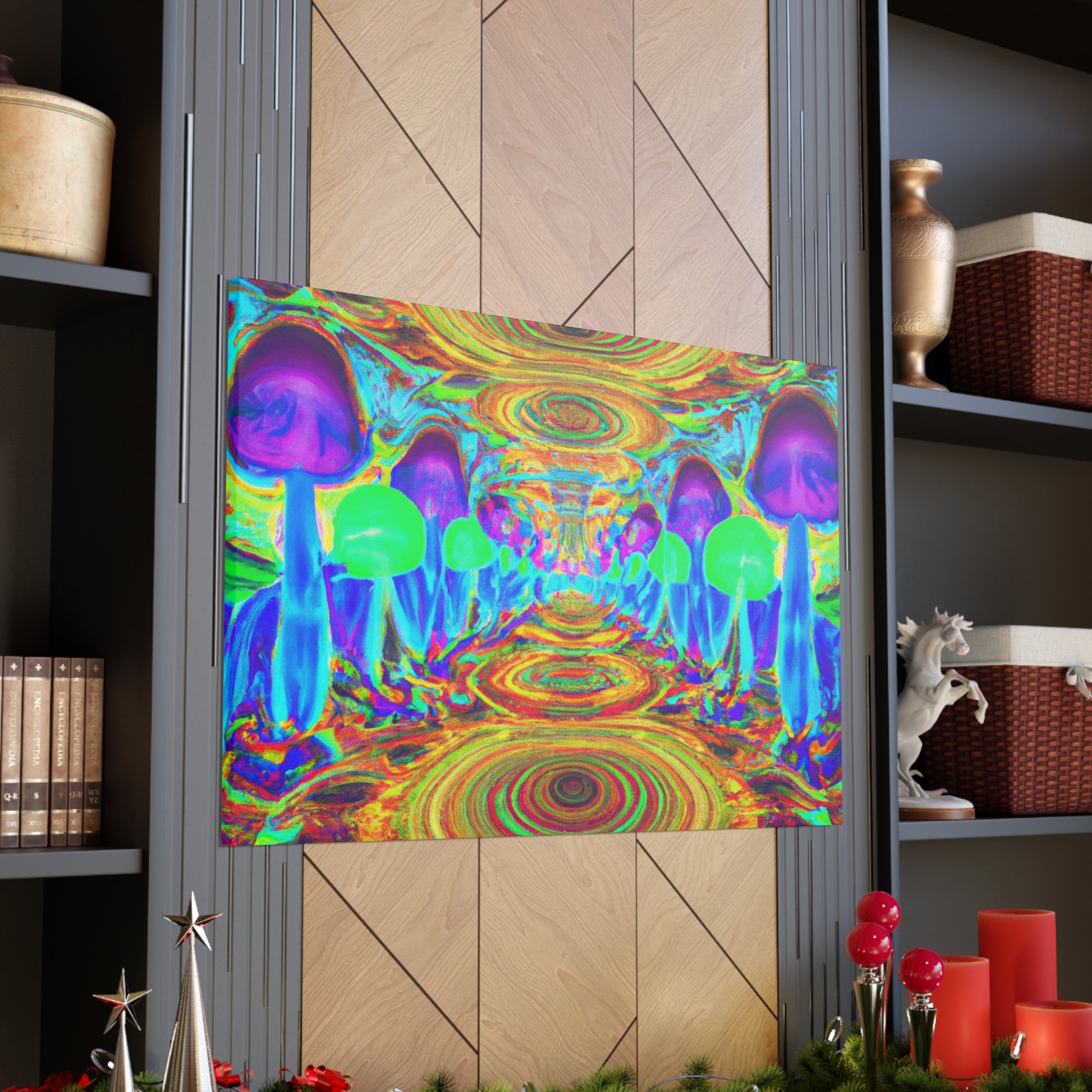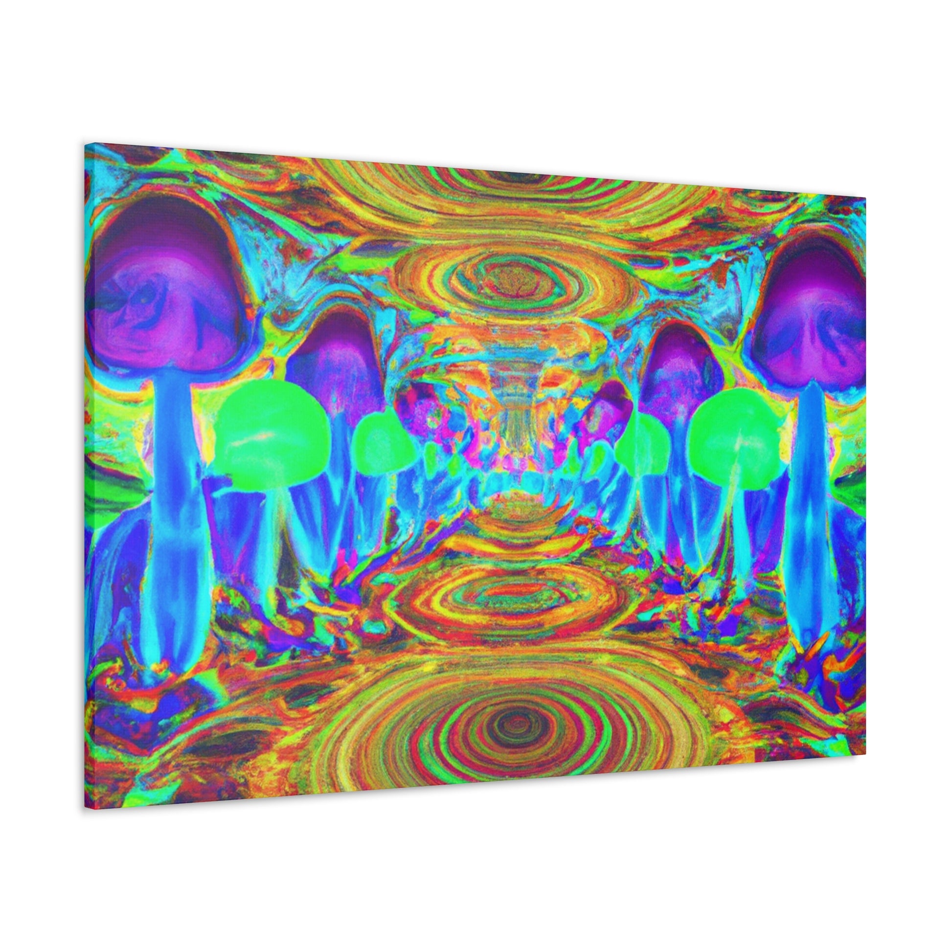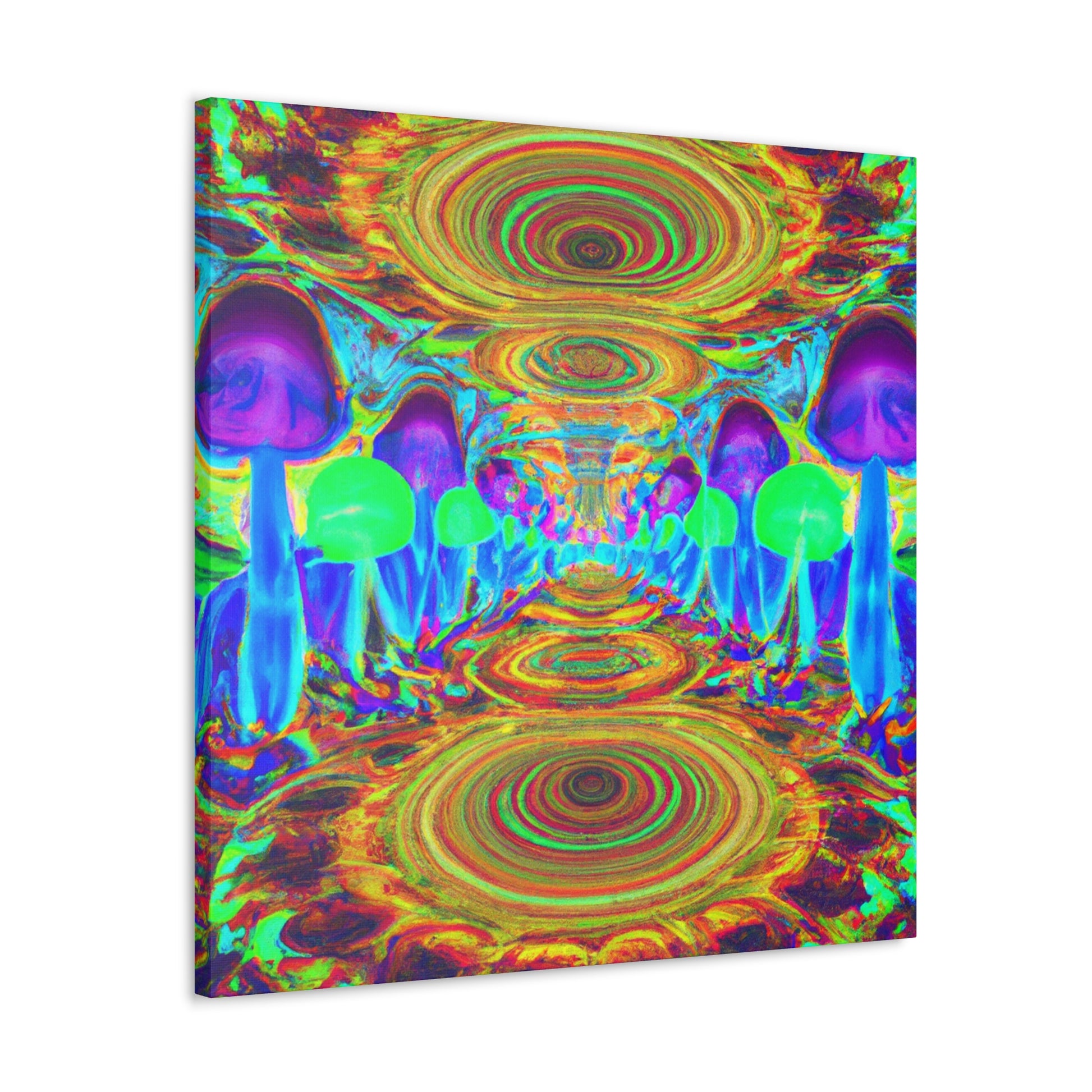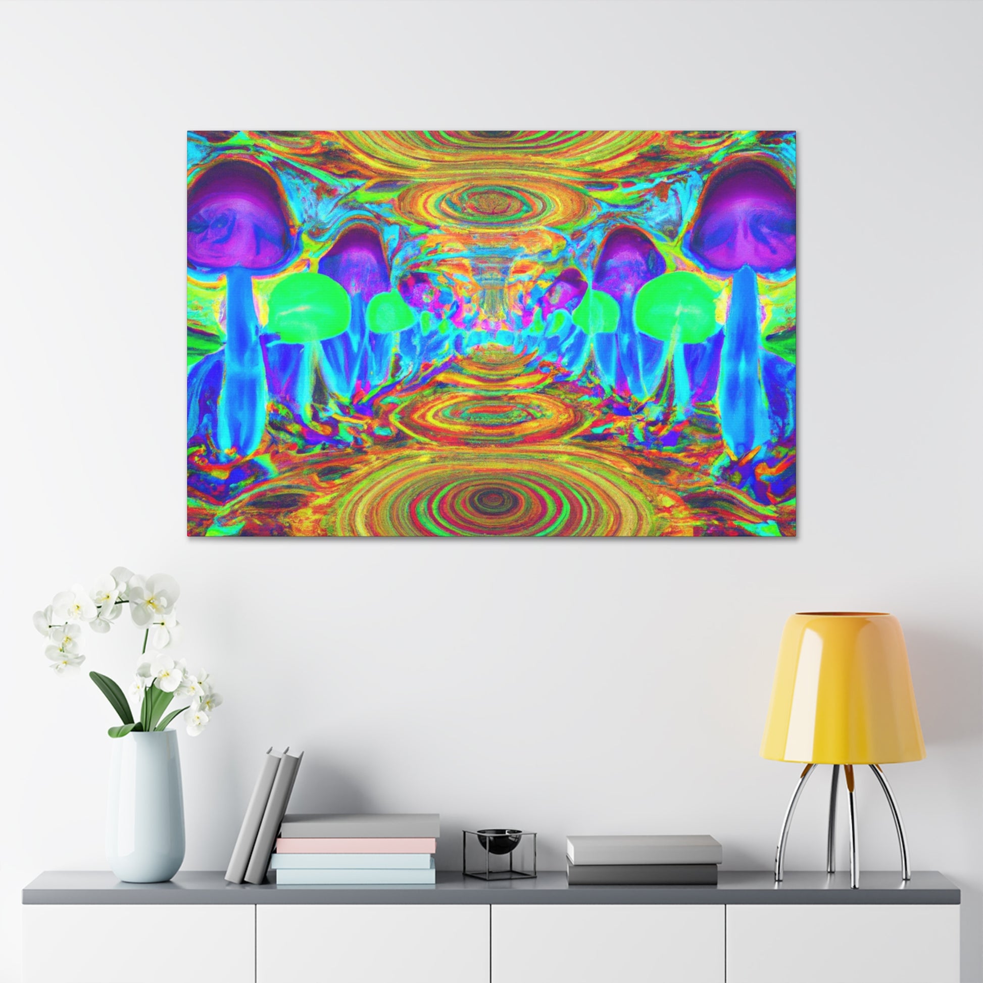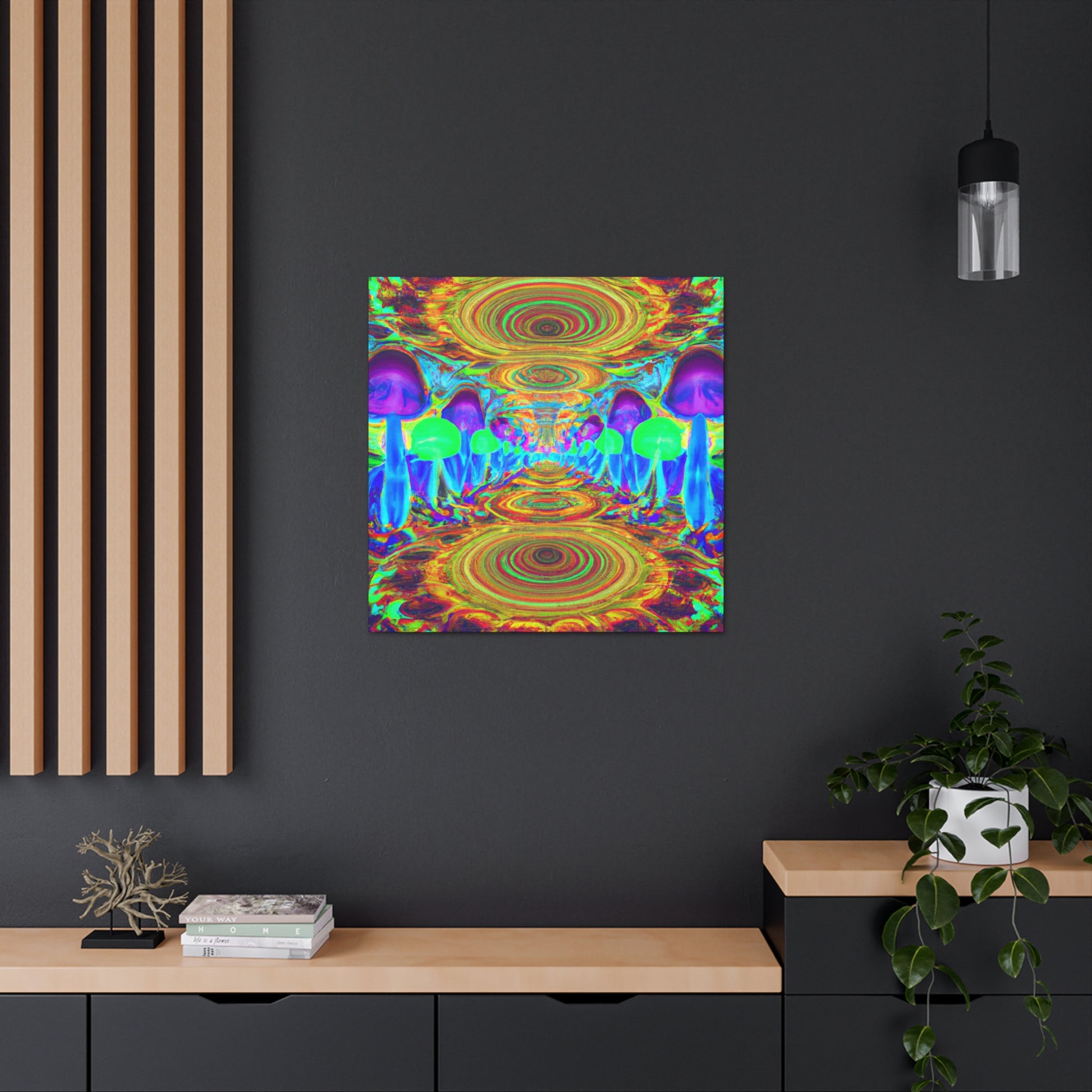 This visually stunning art piece will add a kaleidoscopic, trippy twist to any room you hang it in. Our canvas features digital art with abstract shapes, vibrant colors and 3D lines. The captivating colors and surrealistic design are sure to draw the eye and give your decor an unique and captivating touch. #art #canvas #3dlines #kaleidoscope #vibrantcolors #abstract #trippy #mushrooms #digitalart #surrealistic #decor