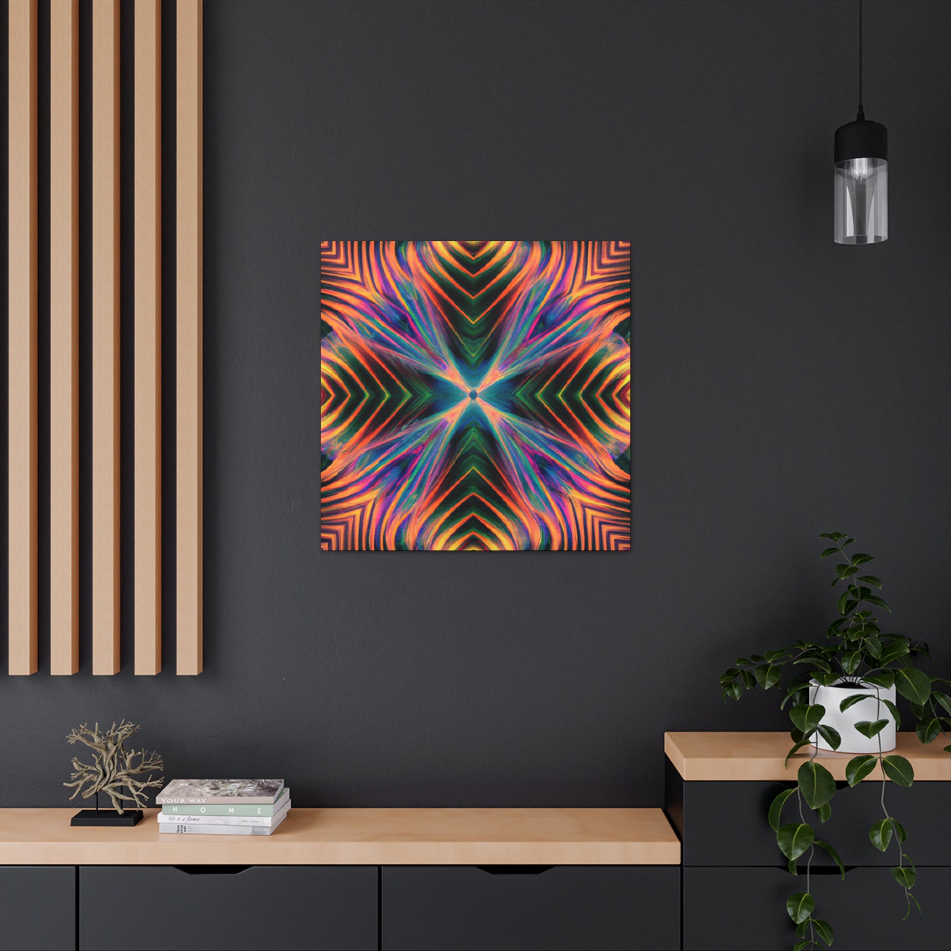 Add a brush of vibrancy to your home with this captivating canvas art! This canvas showcases a unique blend of bold and vibrant colors, abstract 3D lines, and vivid kaleidoscope of trippy geometric palm leaves. Digitally created in a fractal-like pattern, this canvas will certainly bring a colorful and eye-catching touch to your room. #trippy #palmleaves #kaleidoscope #digitalart #abstractart #vibrantcolors #3Dlines #fractal #canvasart #homeart #statementpiece