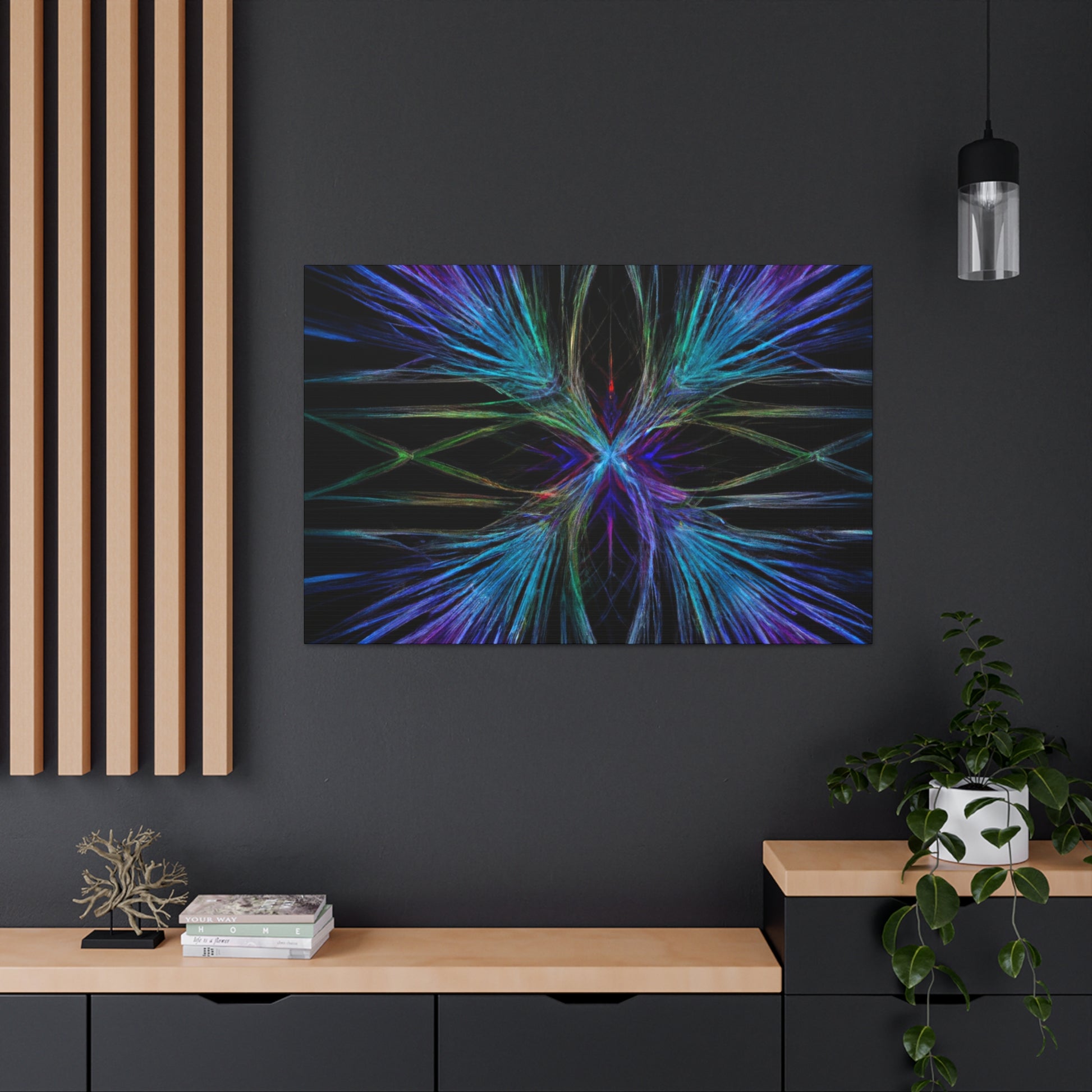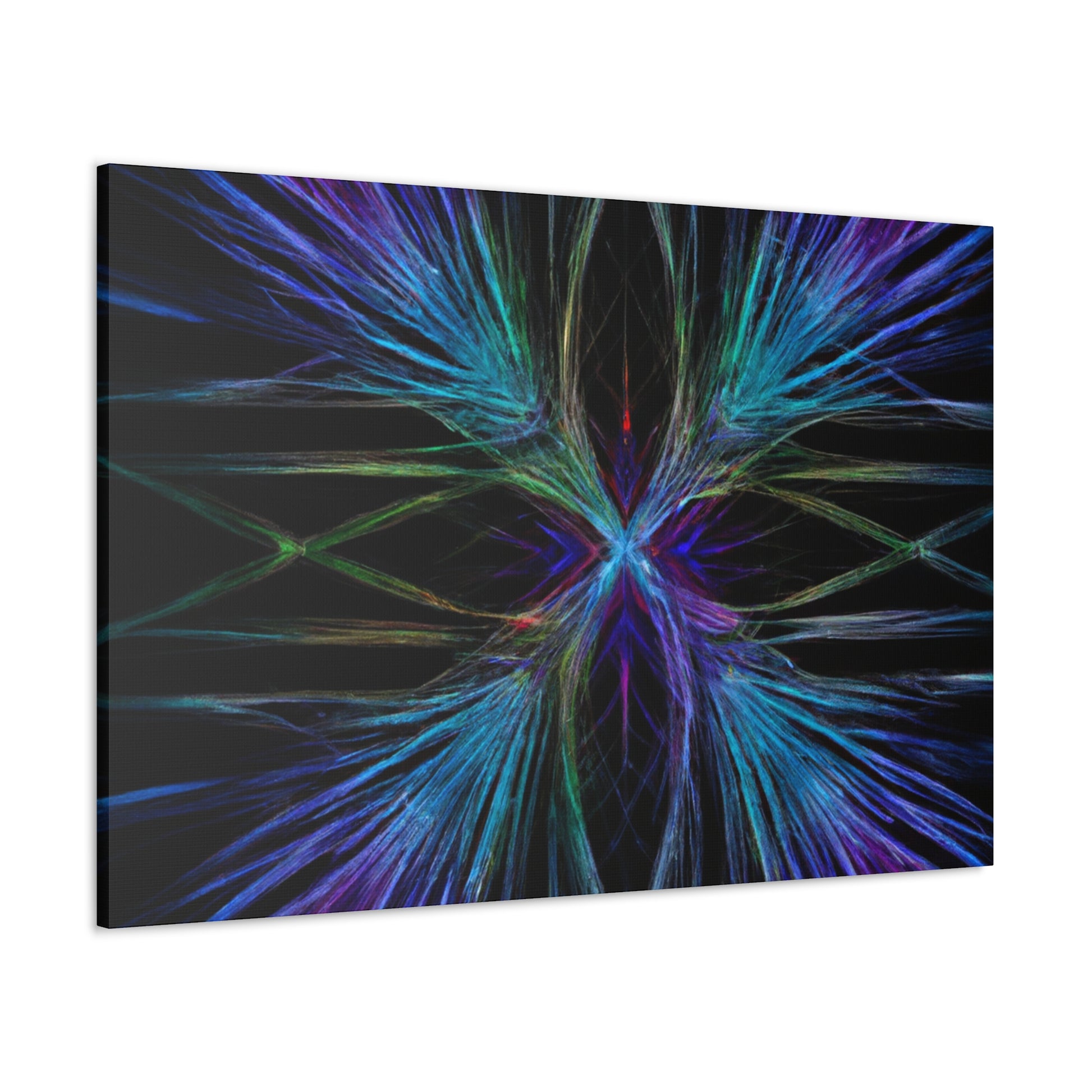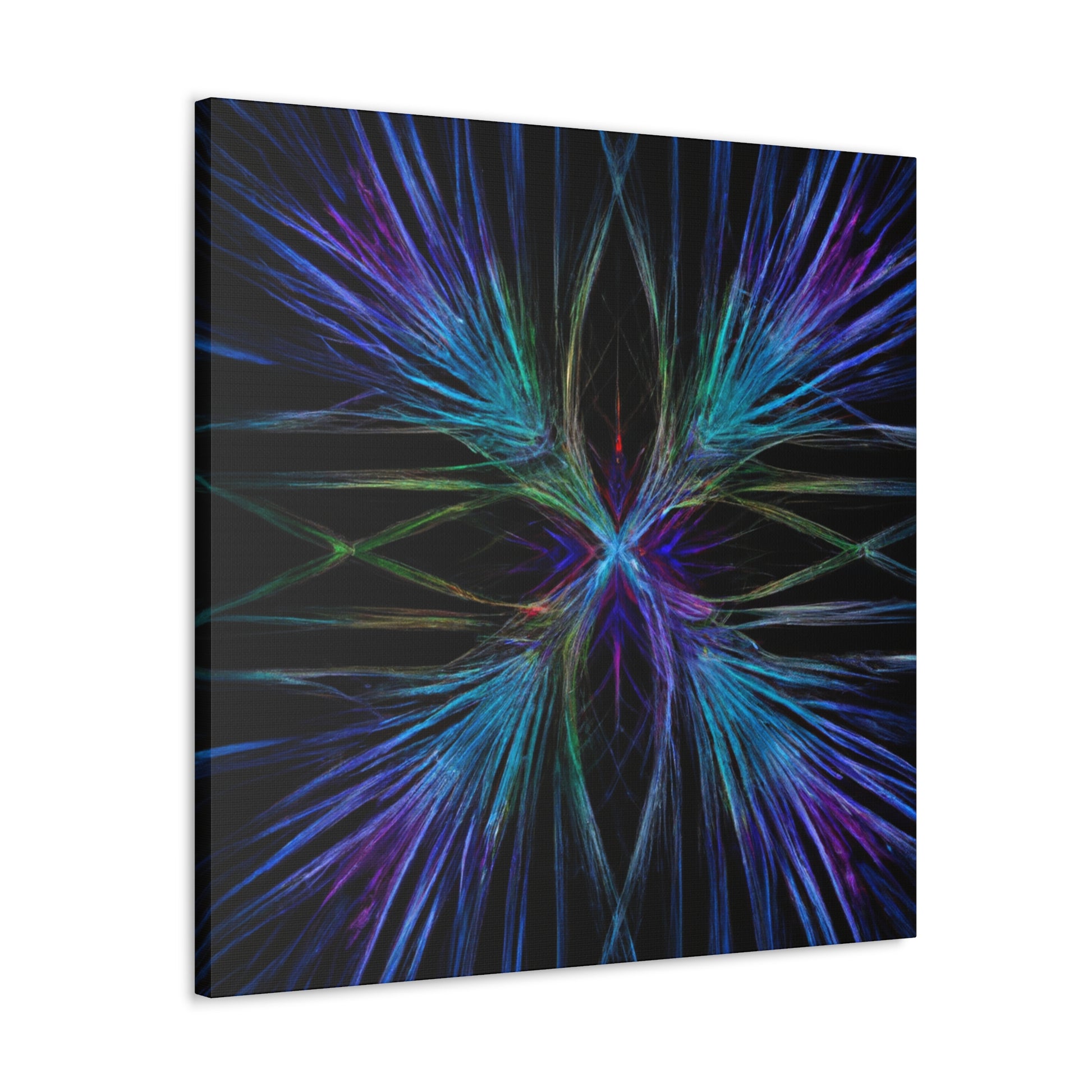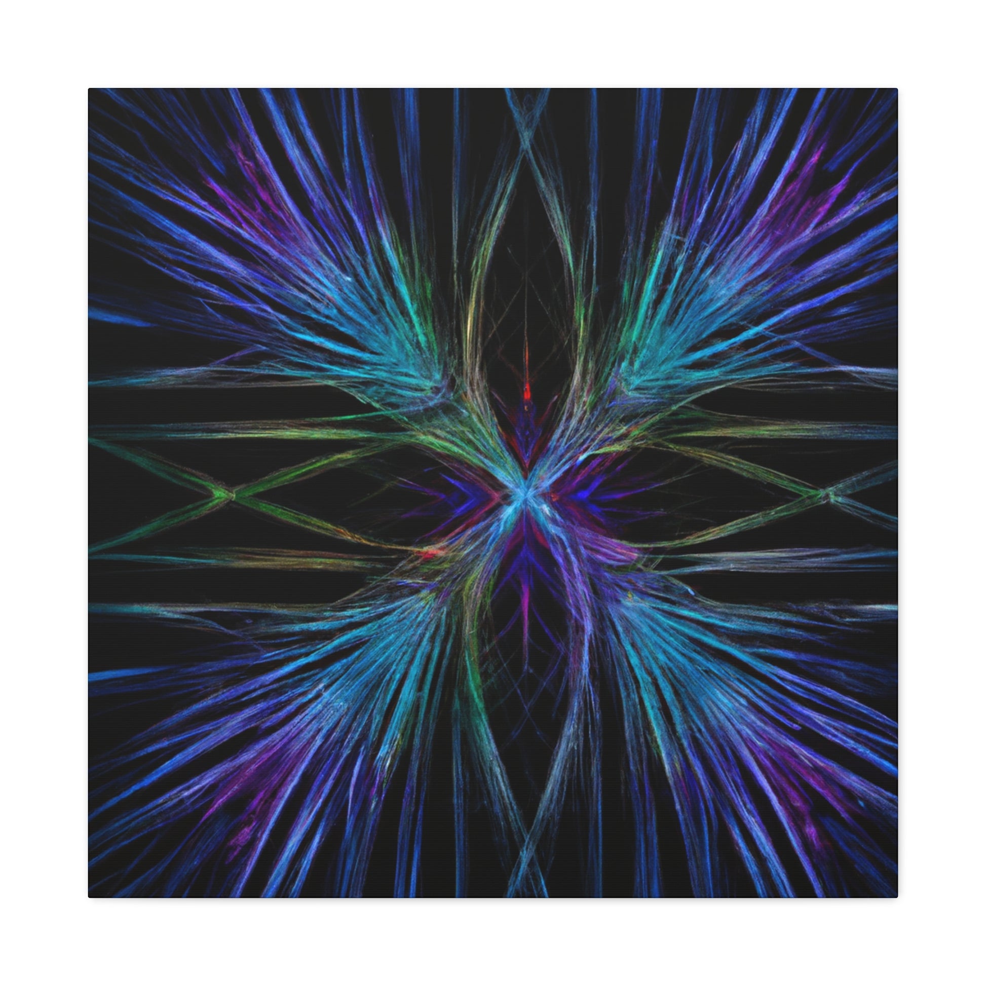 This stunningly vibrant canvas of Trippy Geometric Palm Leaves will add character to any room! Featuring kaleidoscope, abstract, digital art, rich 3D lines and the latest in fractal technology, get lost exploring this mesmerizing piece of artwork. With bright and captivating colors, your walls will thank you for such a unique and eye-catching decoration. #3Dart #abstractart #DigitalArt #Fractal #canvasart #VibrantColors #TrippyGeometricPalmLeaves #KaleidoscopeArt #AbstractDesign #3DLines #FractalArt