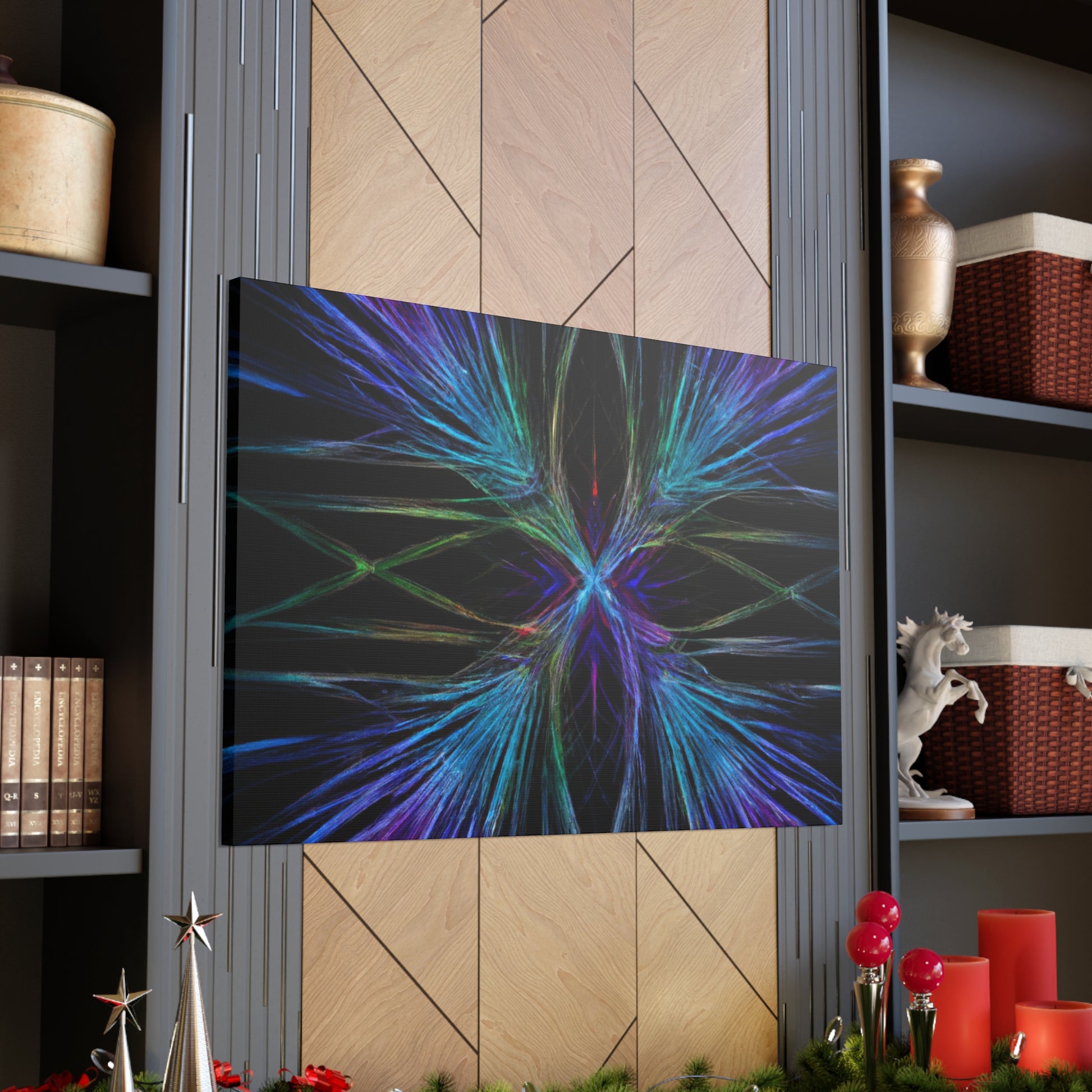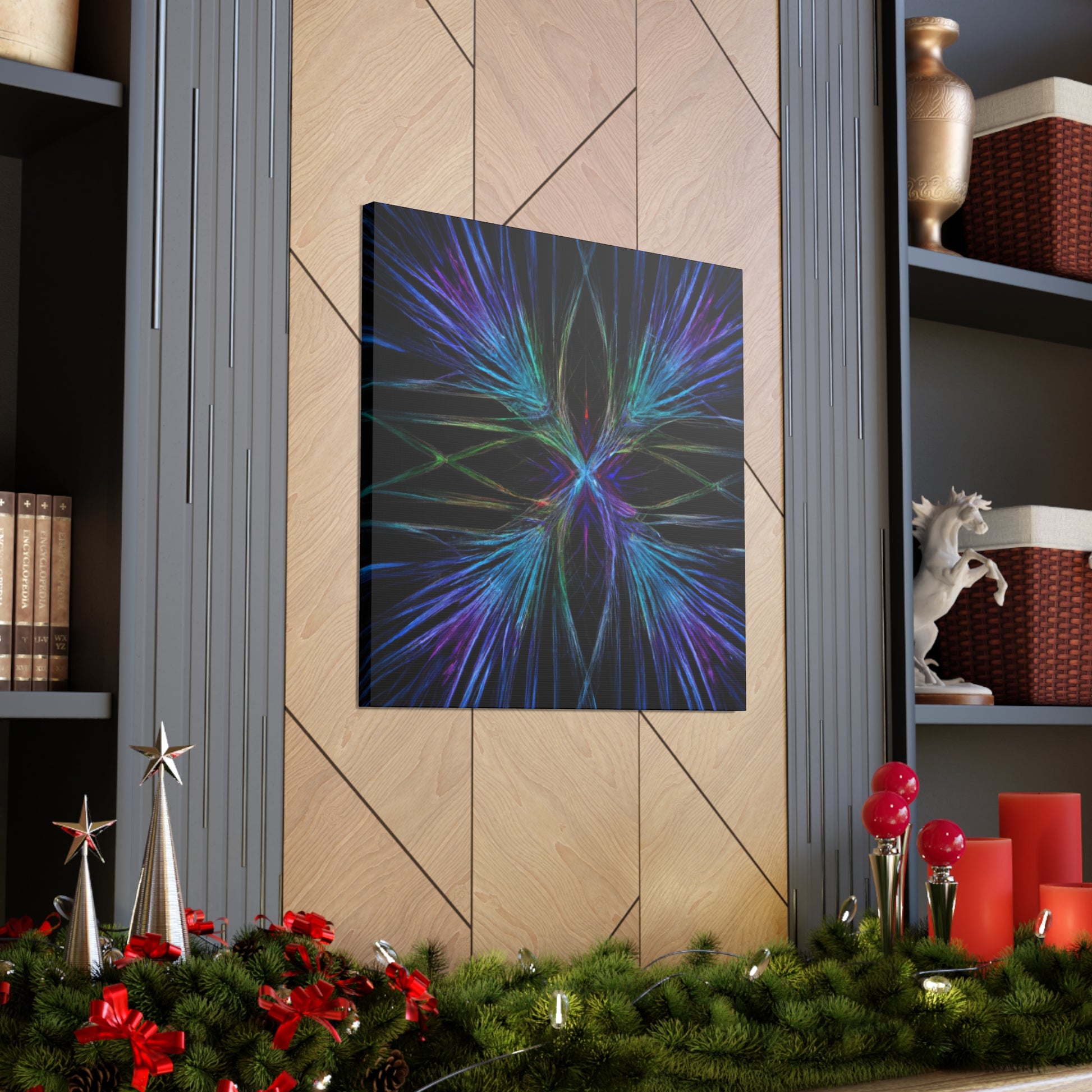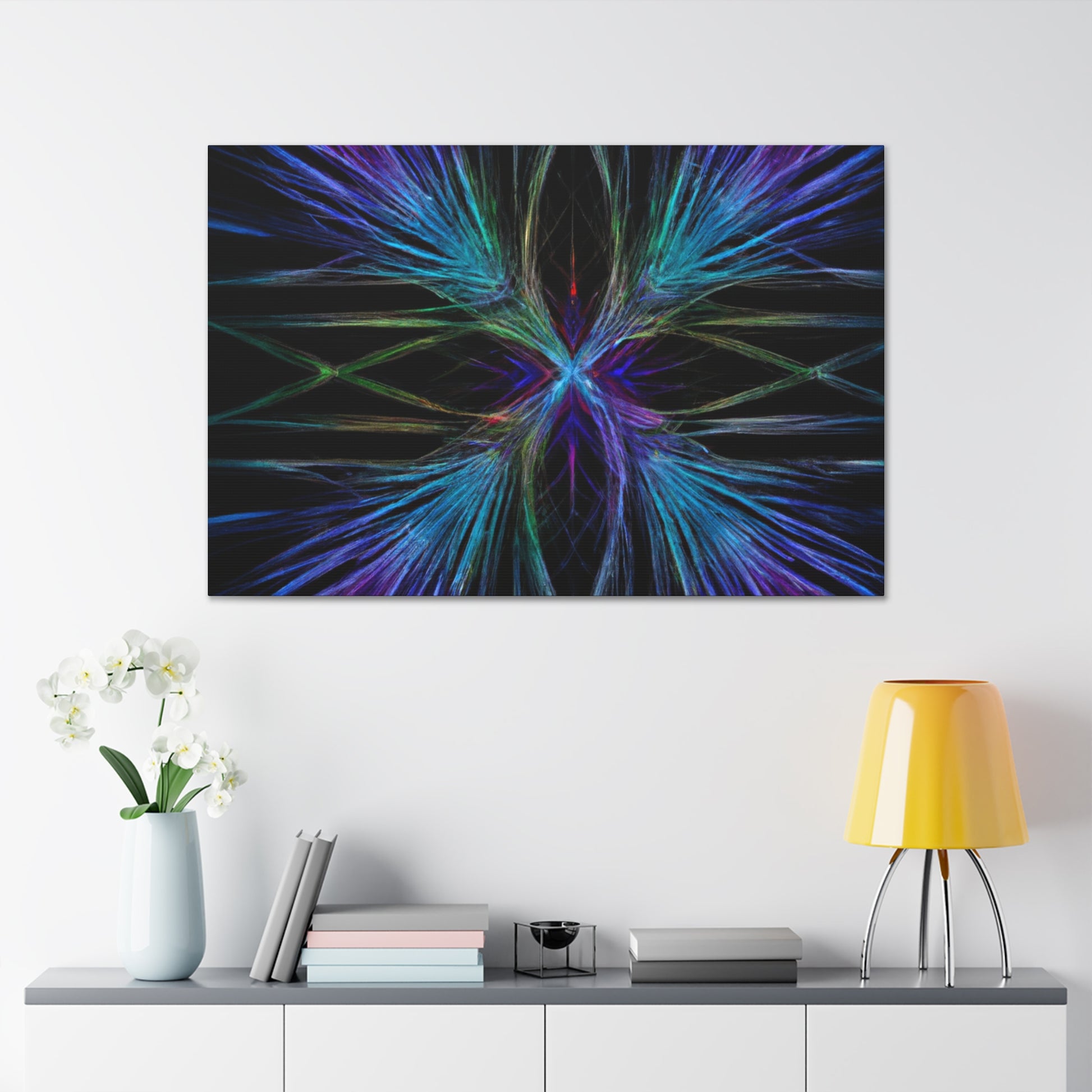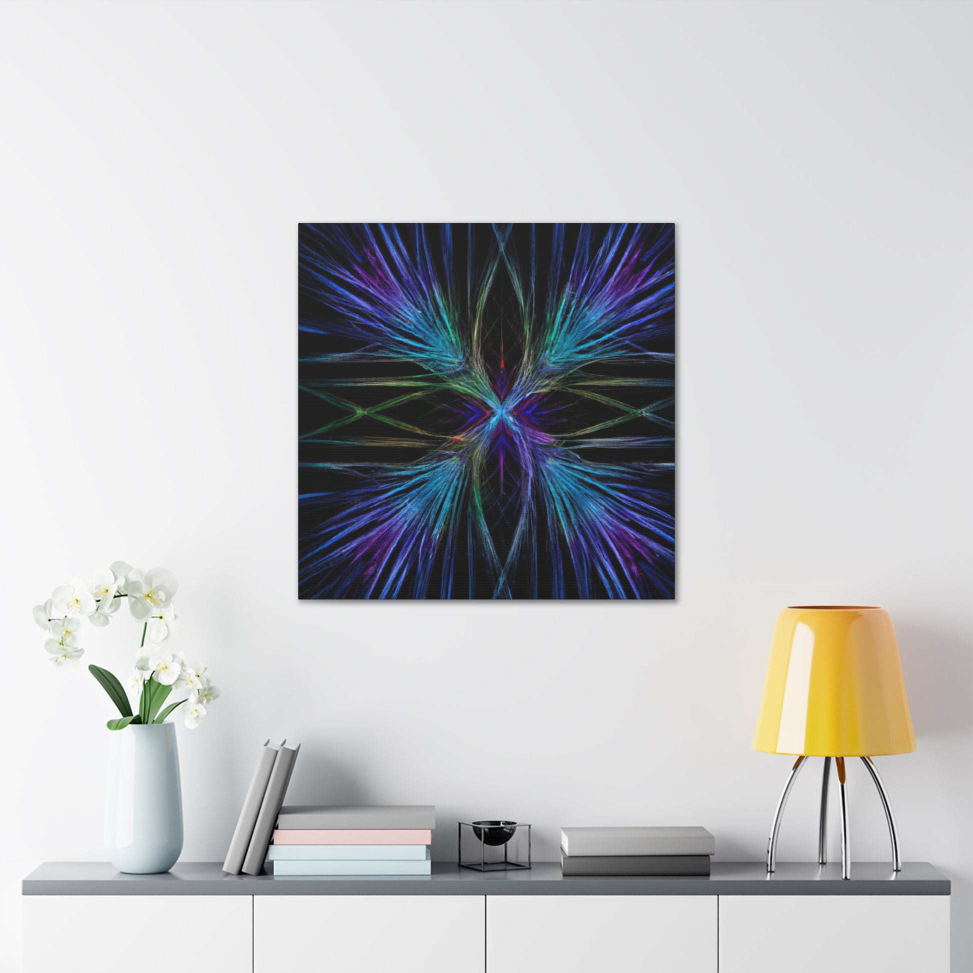 This stunningly vibrant canvas of Trippy Geometric Palm Leaves will add character to any room! Featuring kaleidoscope, abstract, digital art, rich 3D lines and the latest in fractal technology, get lost exploring this mesmerizing piece of artwork. With bright and captivating colors, your walls will thank you for such a unique and eye-catching decoration. #3Dart #abstractart #DigitalArt #Fractal #canvasart #VibrantColors #TrippyGeometricPalmLeaves #KaleidoscopeArt #AbstractDesign #3DLines #FractalArt