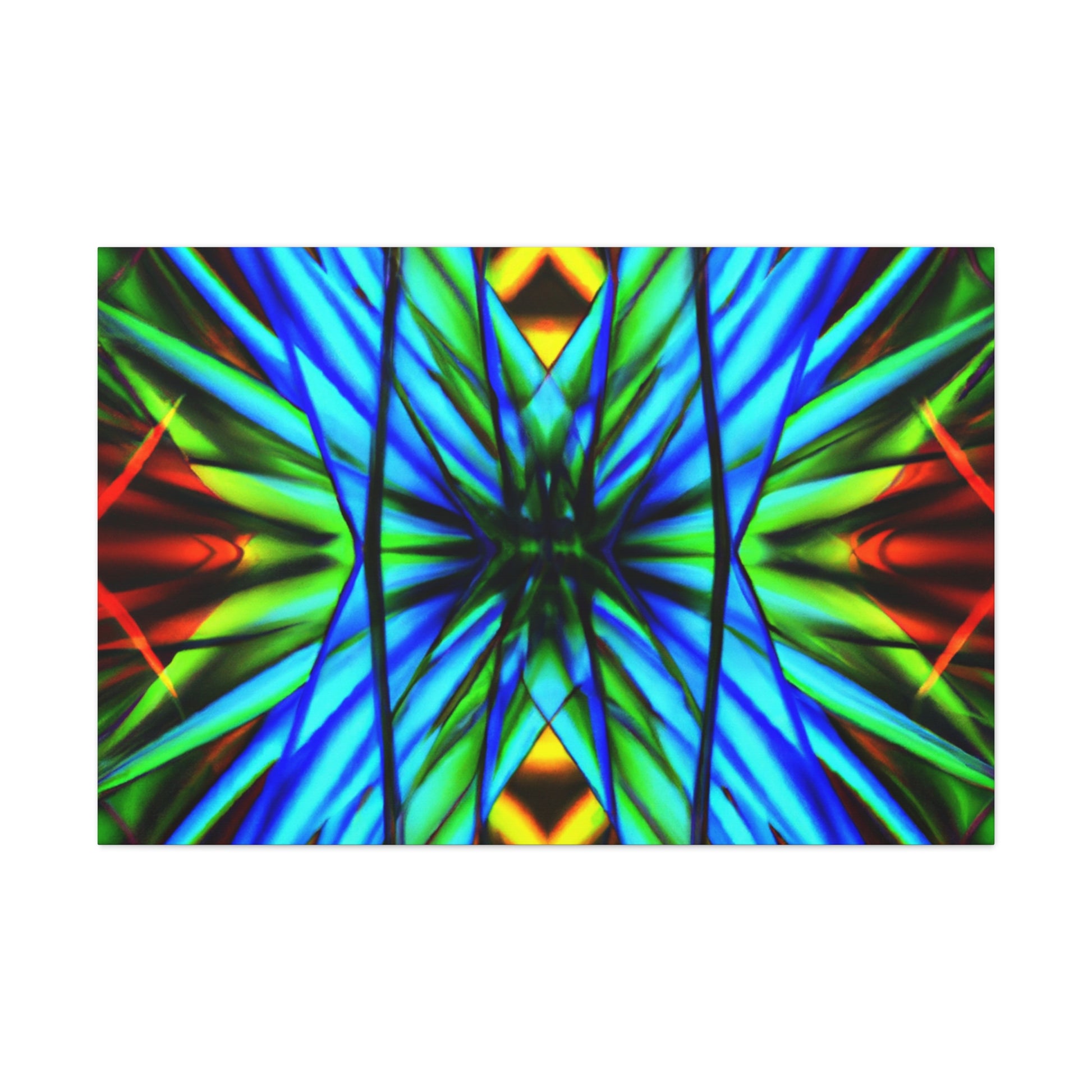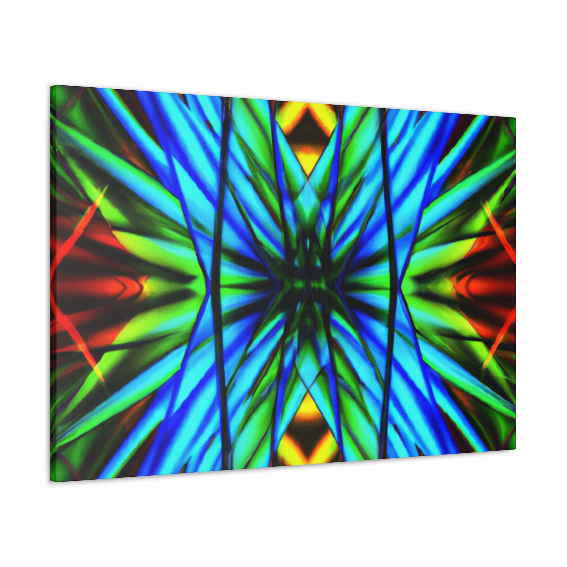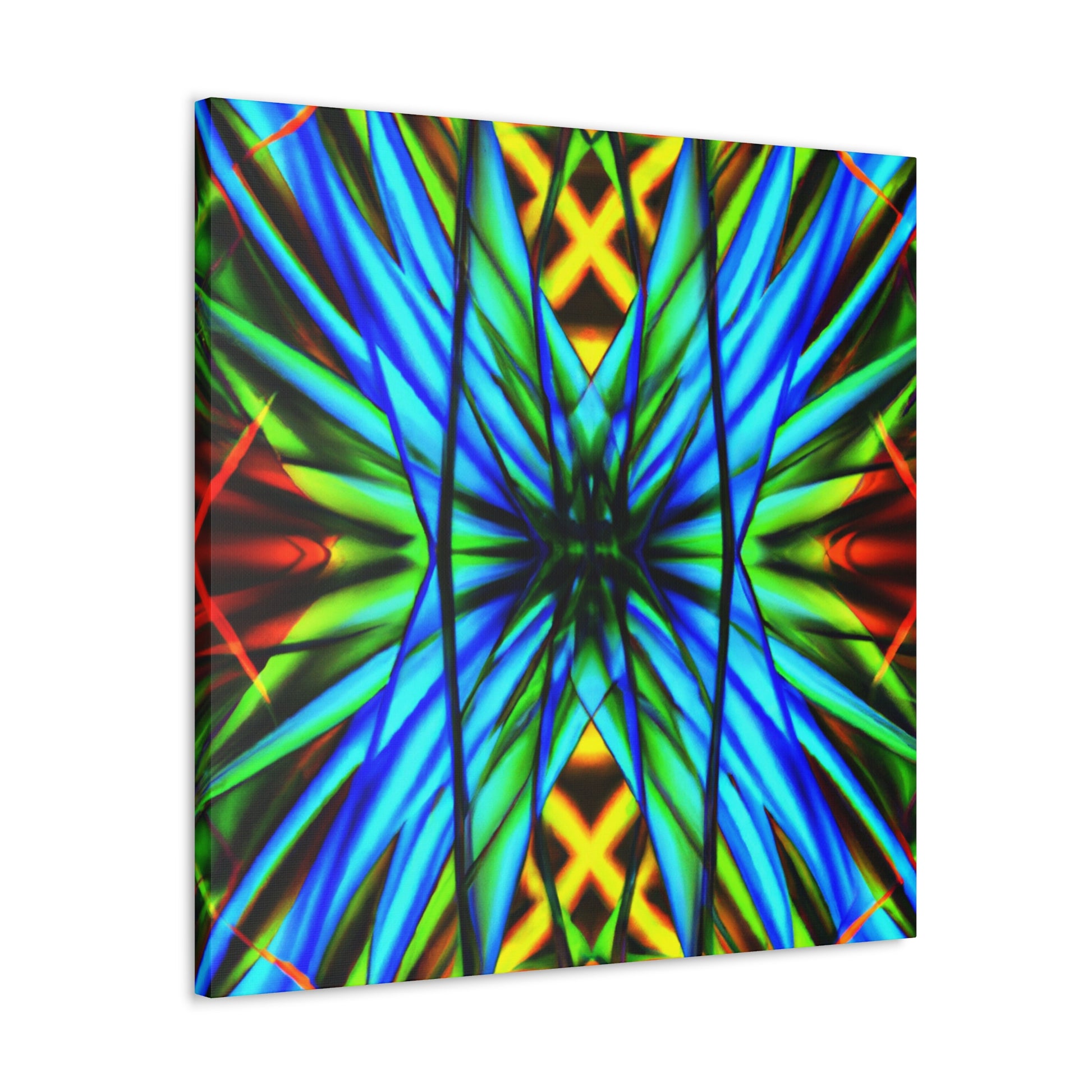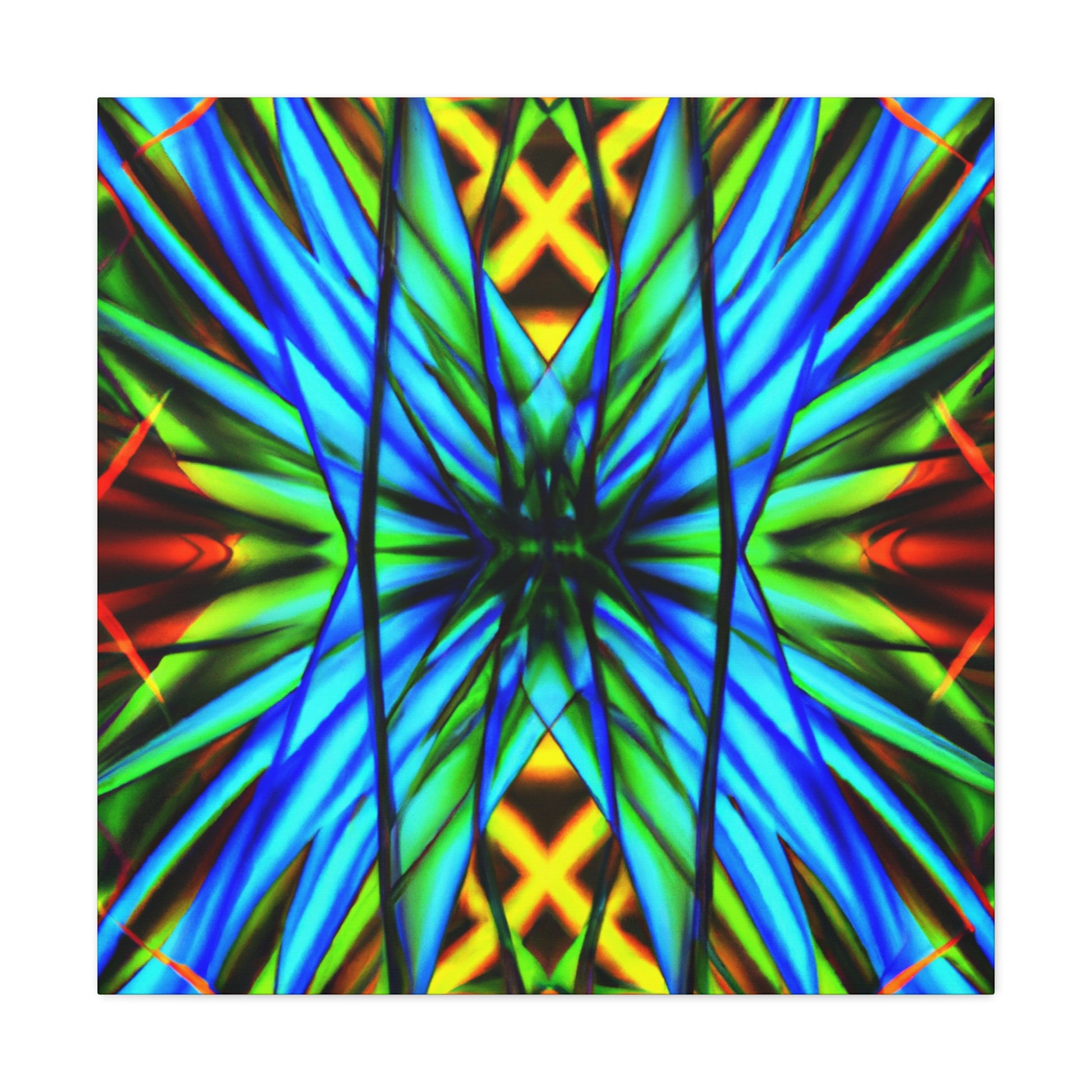This canvas is a great addition to any home. It features a Trippy Geometric Palm Leaves, Kaleidoscope, Abstract, Digital Art, Vibrant Colors, 3D Lines, and Fractal, creating a visually stimulating effect. Whether it's in the bedroom, living room, office, or any other space, it will add an interesting and unique layer to any decor. #trippy #geometric #palmleaves #kaleidscope #abstract #digitalart #vibrantcolors #3Dlines #fractal #canvasart #homeart
