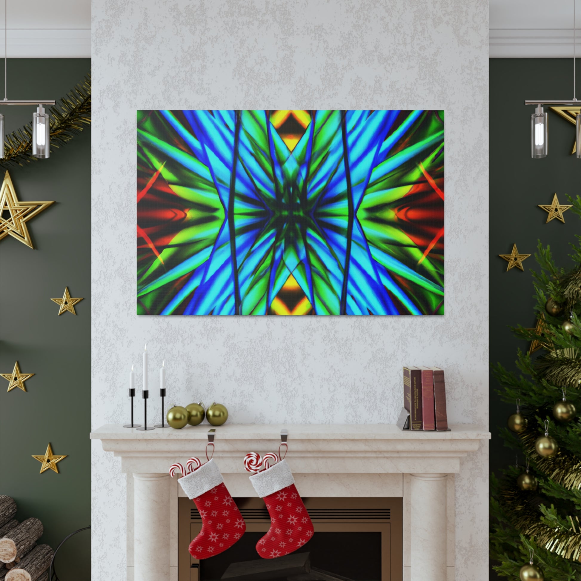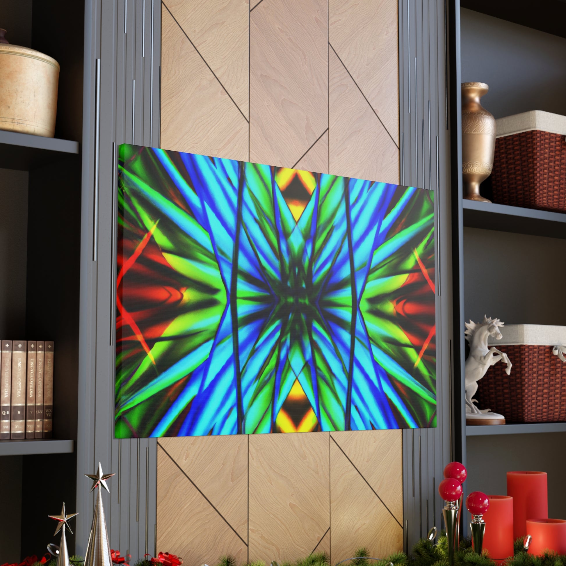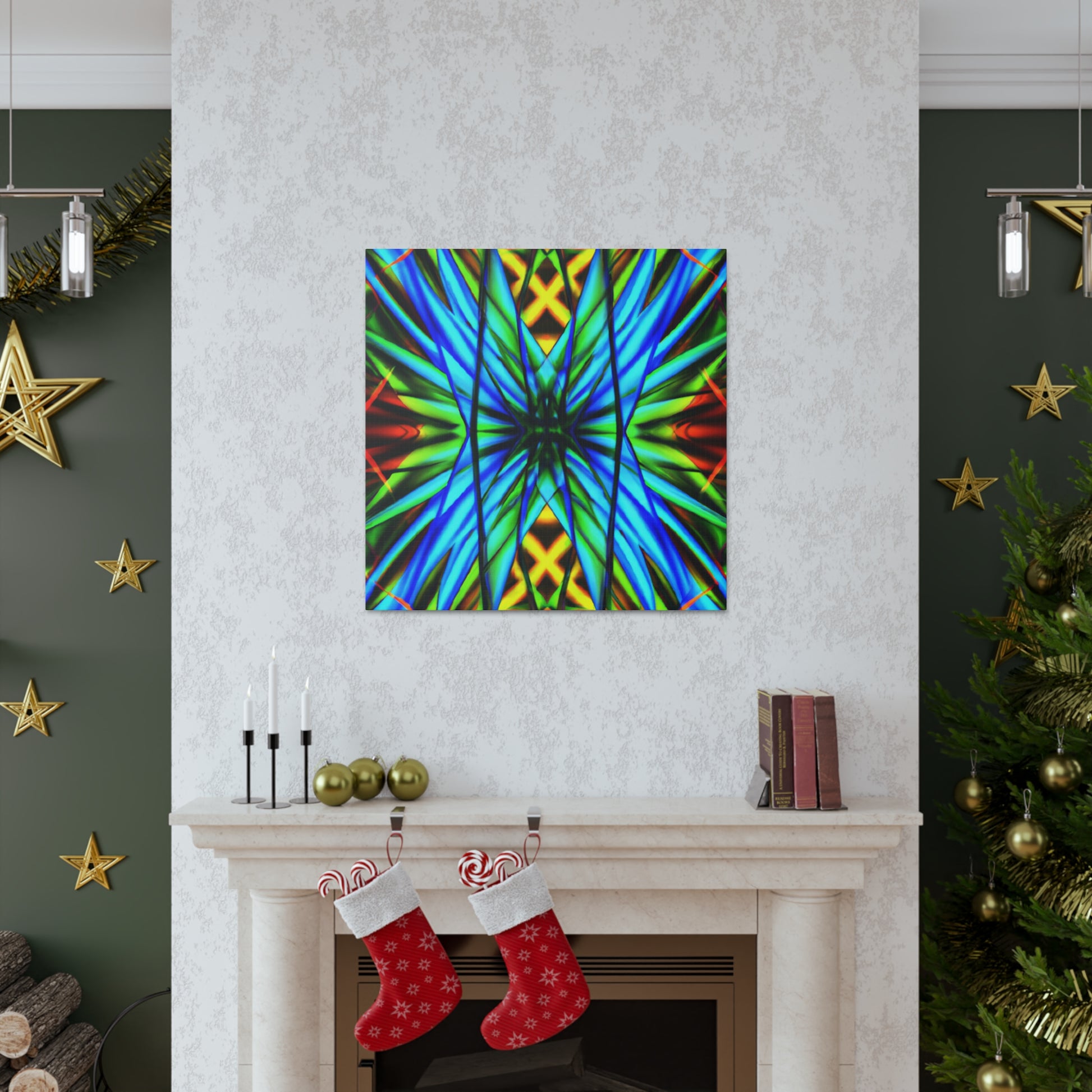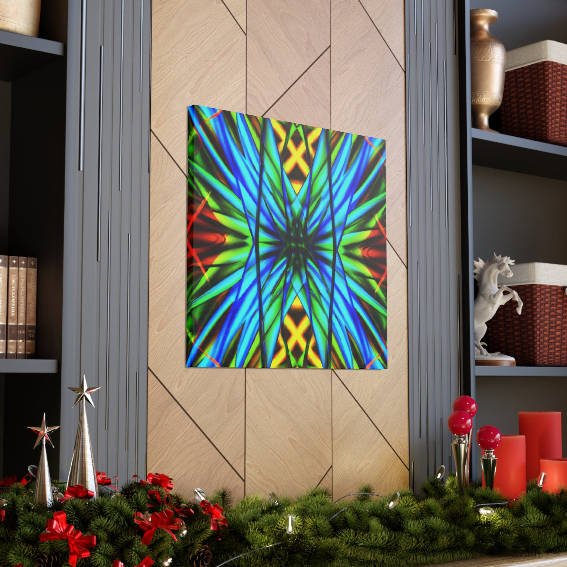 This canvas is a great addition to any home. It features a Trippy Geometric Palm Leaves, Kaleidoscope, Abstract, Digital Art, Vibrant Colors, 3D Lines, and Fractal, creating a visually stimulating effect. Whether it's in the bedroom, living room, office, or any other space, it will add an interesting and unique layer to any decor. #trippy #geometric #palmleaves #kaleidscope #abstract #digitalart #vibrantcolors #3Dlines #fractal #canvasart #homeart