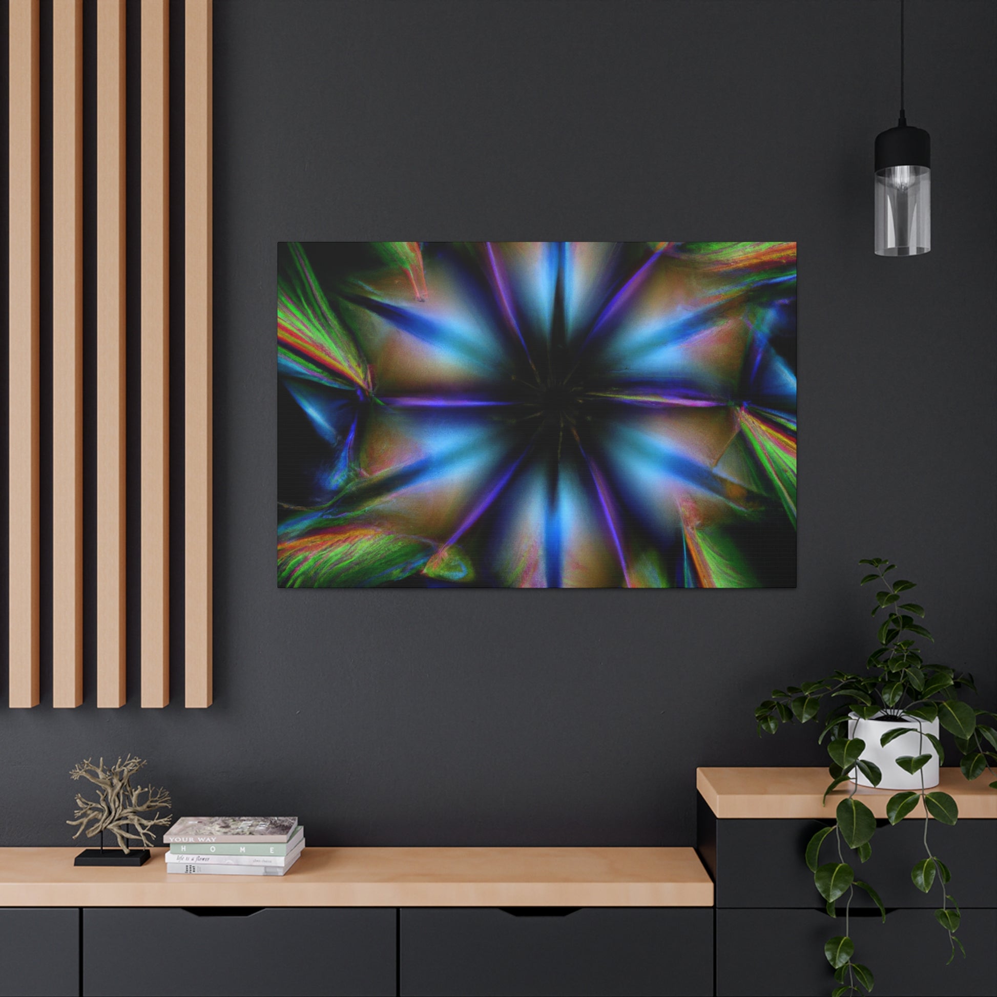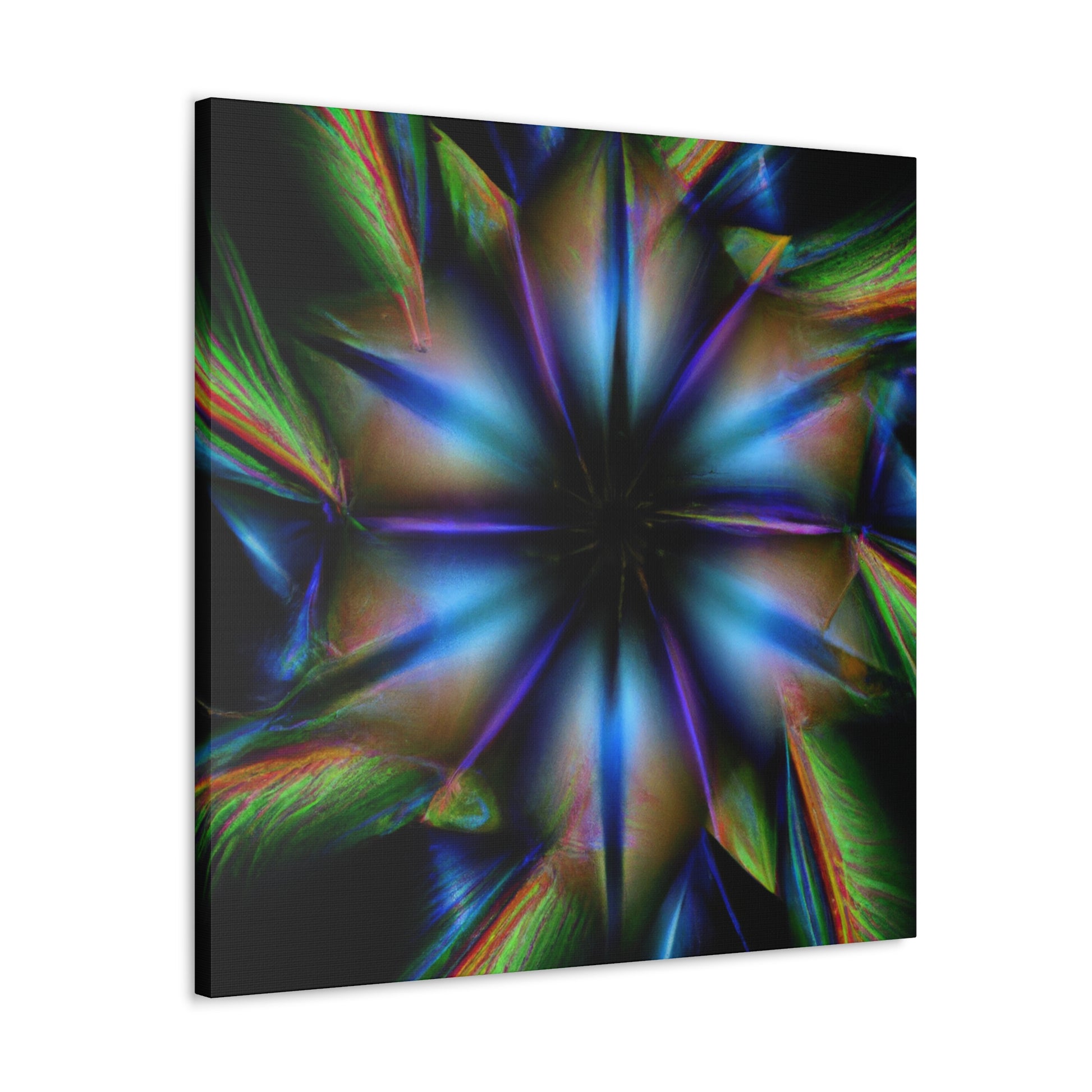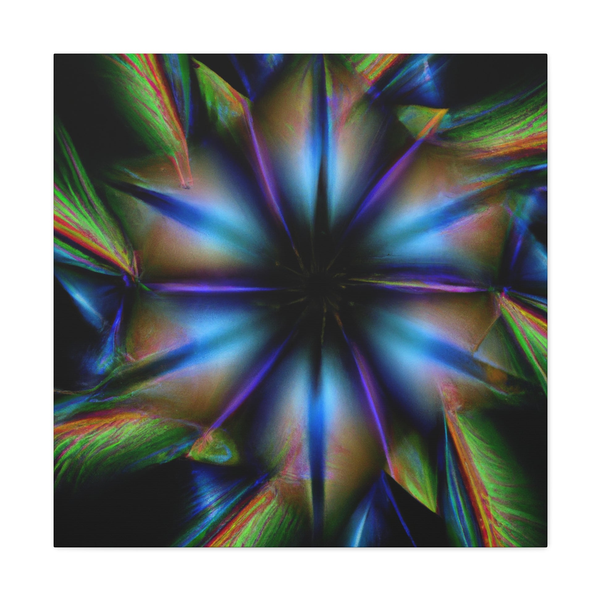 This canvas of iconic Trippy geometric palm leaves features a warm kaleidoscope of abstract, digital art, and vibrant colors. Seeing the 3D lines appear to move between each leaf makes it hard to look away! You'll love this captivating fractal design. Add a trendy style to your home decor! #trippyvibes #geometricpalmleaves #kaleidoscopeart #abstractart #digitalart #vibrantcolors #3Dlines #fractalart #trippydecor #homedecor #canvasart
