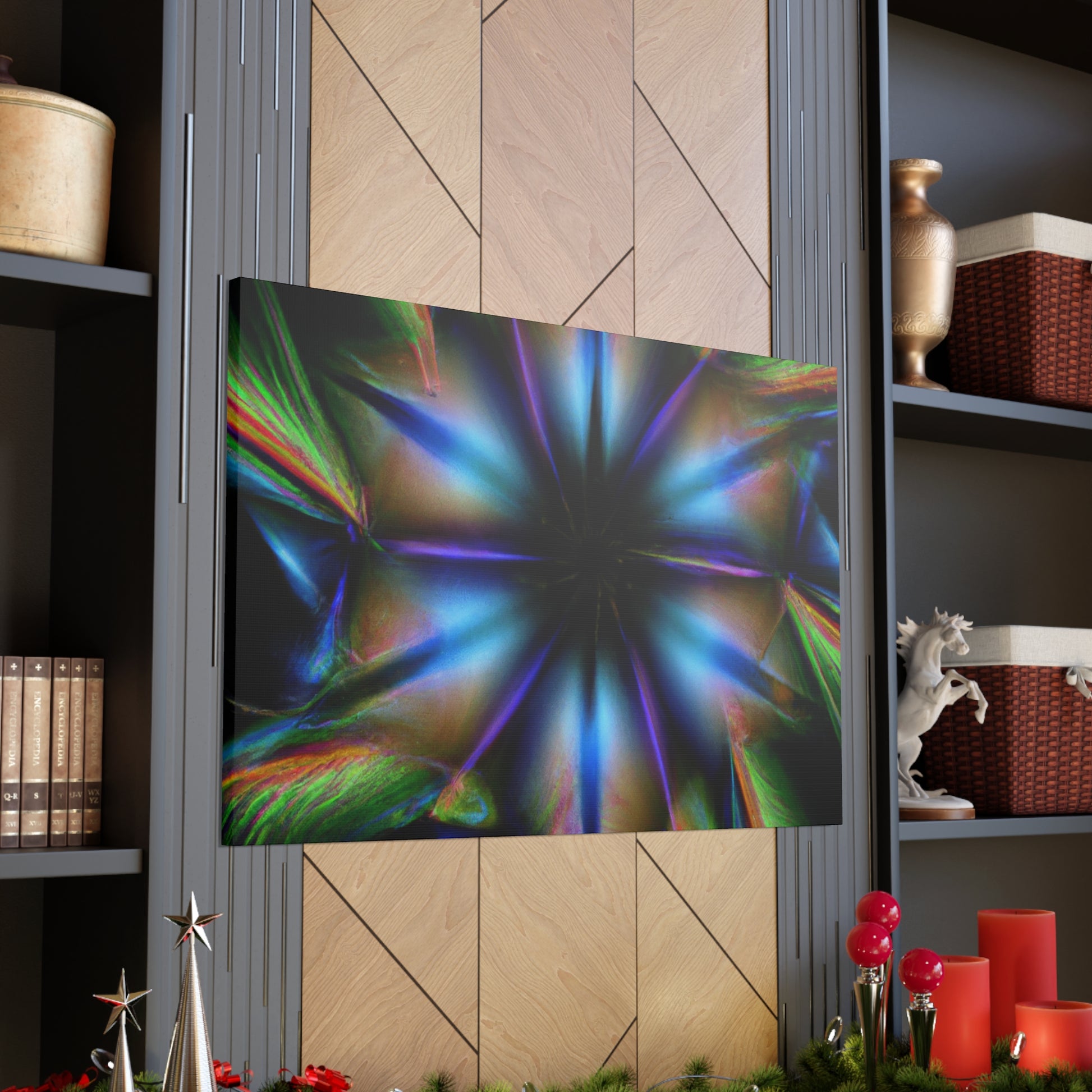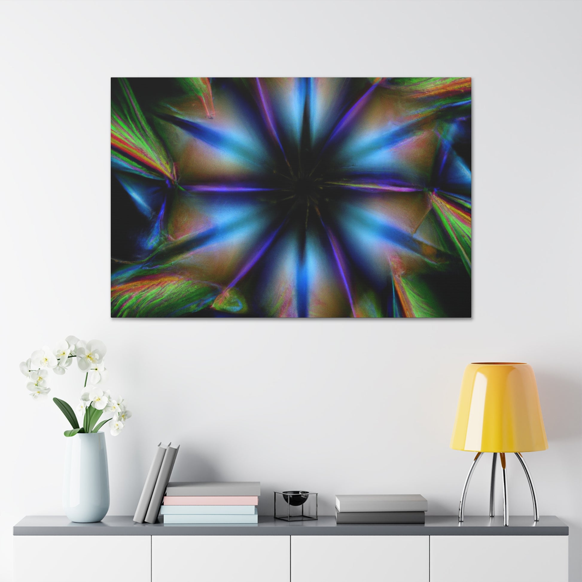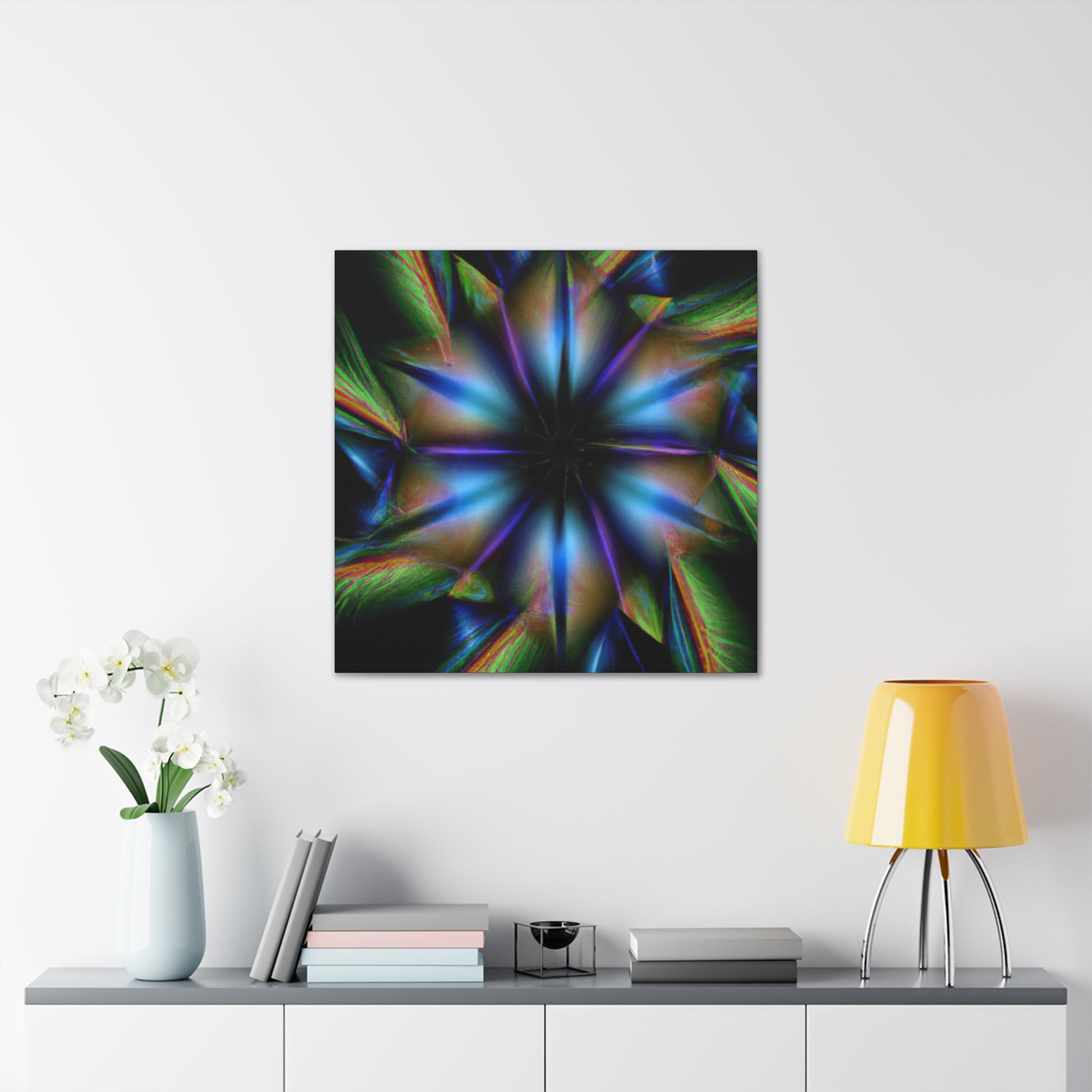 This canvas of iconic Trippy geometric palm leaves features a warm kaleidoscope of abstract, digital art, and vibrant colors. Seeing the 3D lines appear to move between each leaf makes it hard to look away! You'll love this captivating fractal design. Add a trendy style to your home decor! #trippyvibes #geometricpalmleaves #kaleidoscopeart #abstractart #digitalart #vibrantcolors #3Dlines #fractalart #trippydecor #homedecor #canvasart