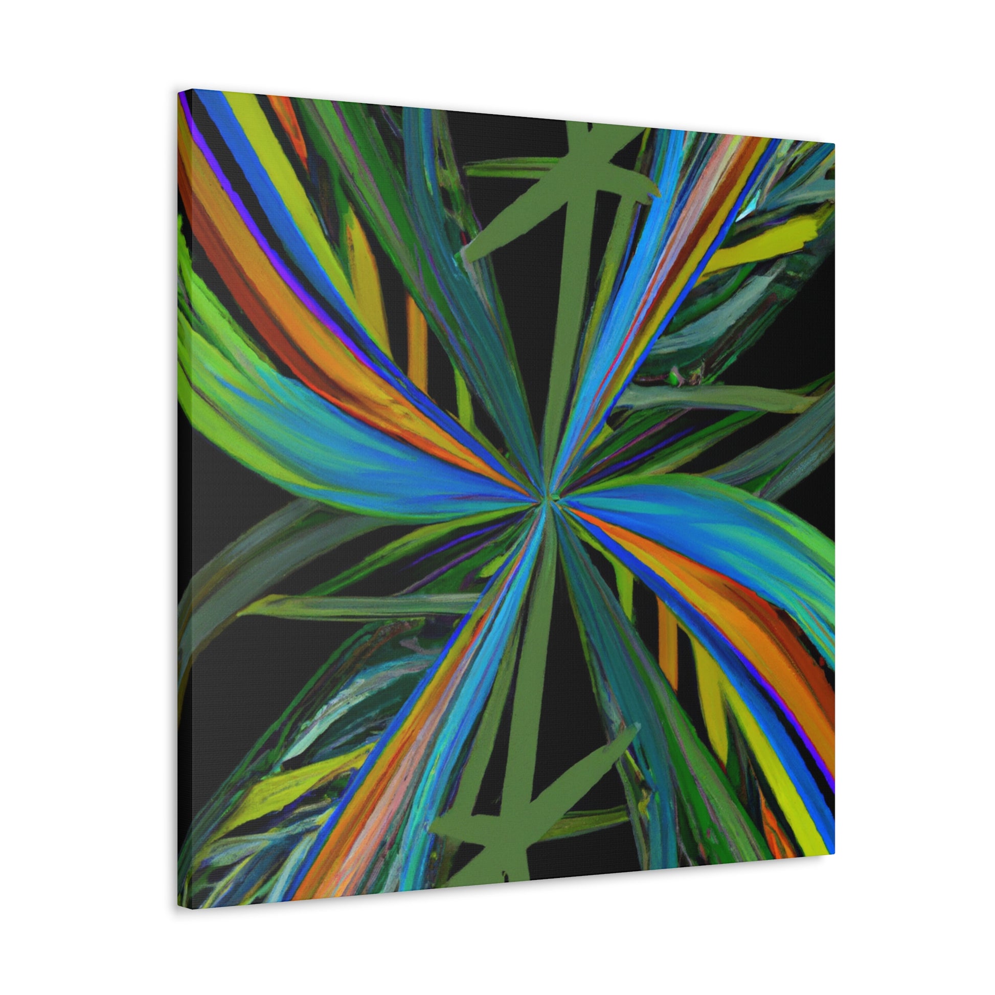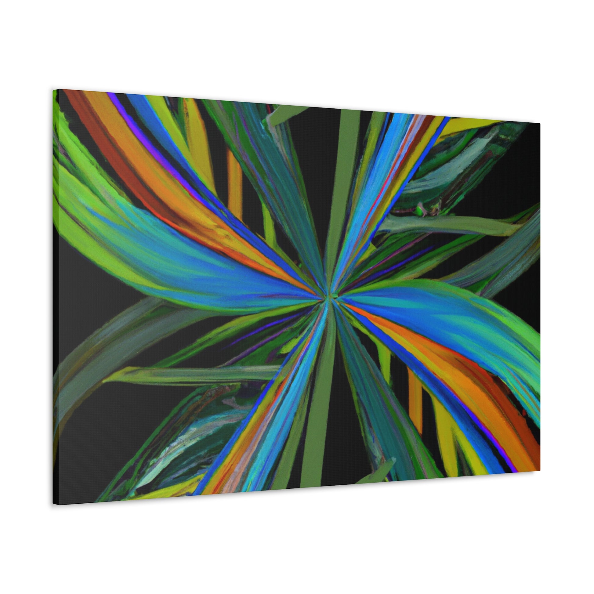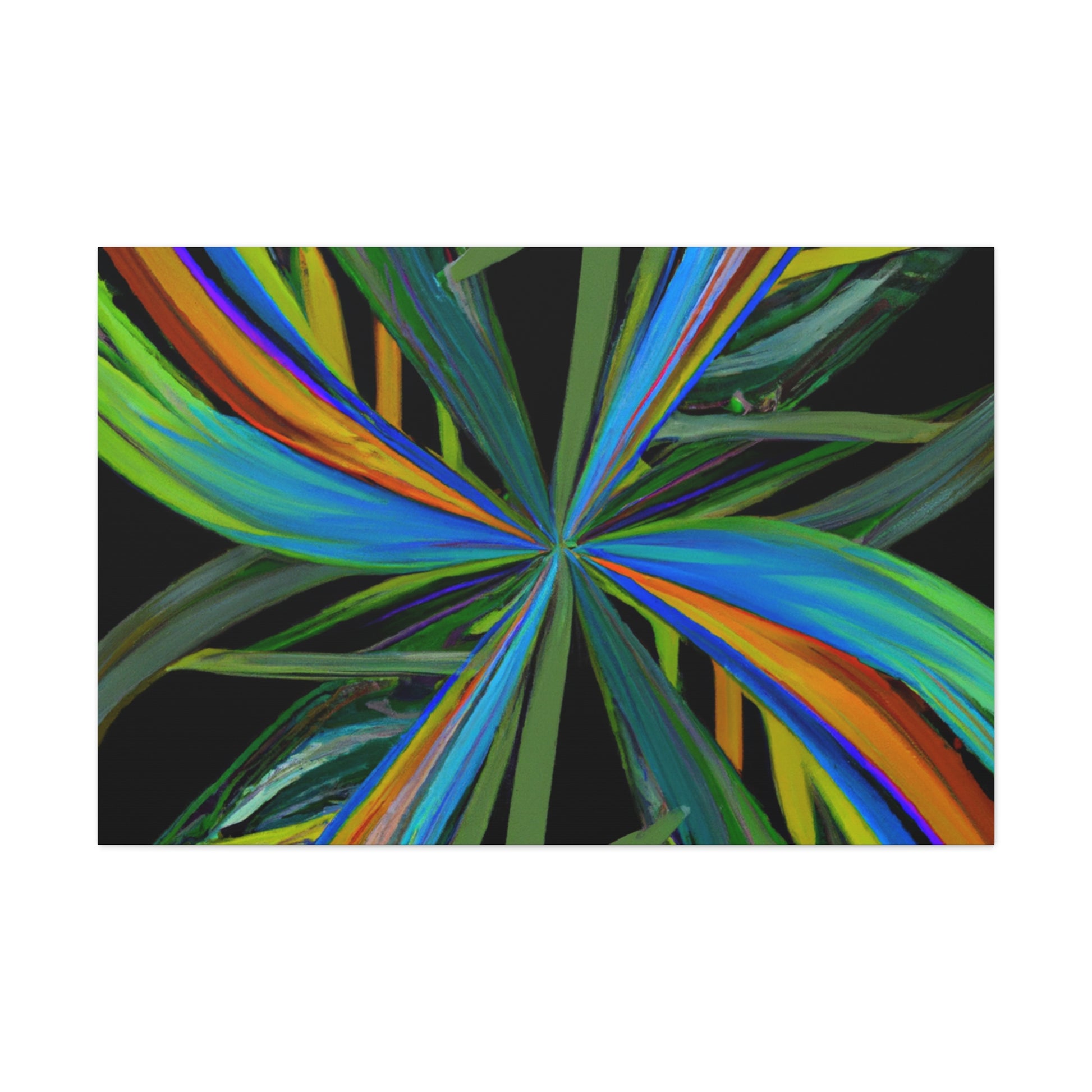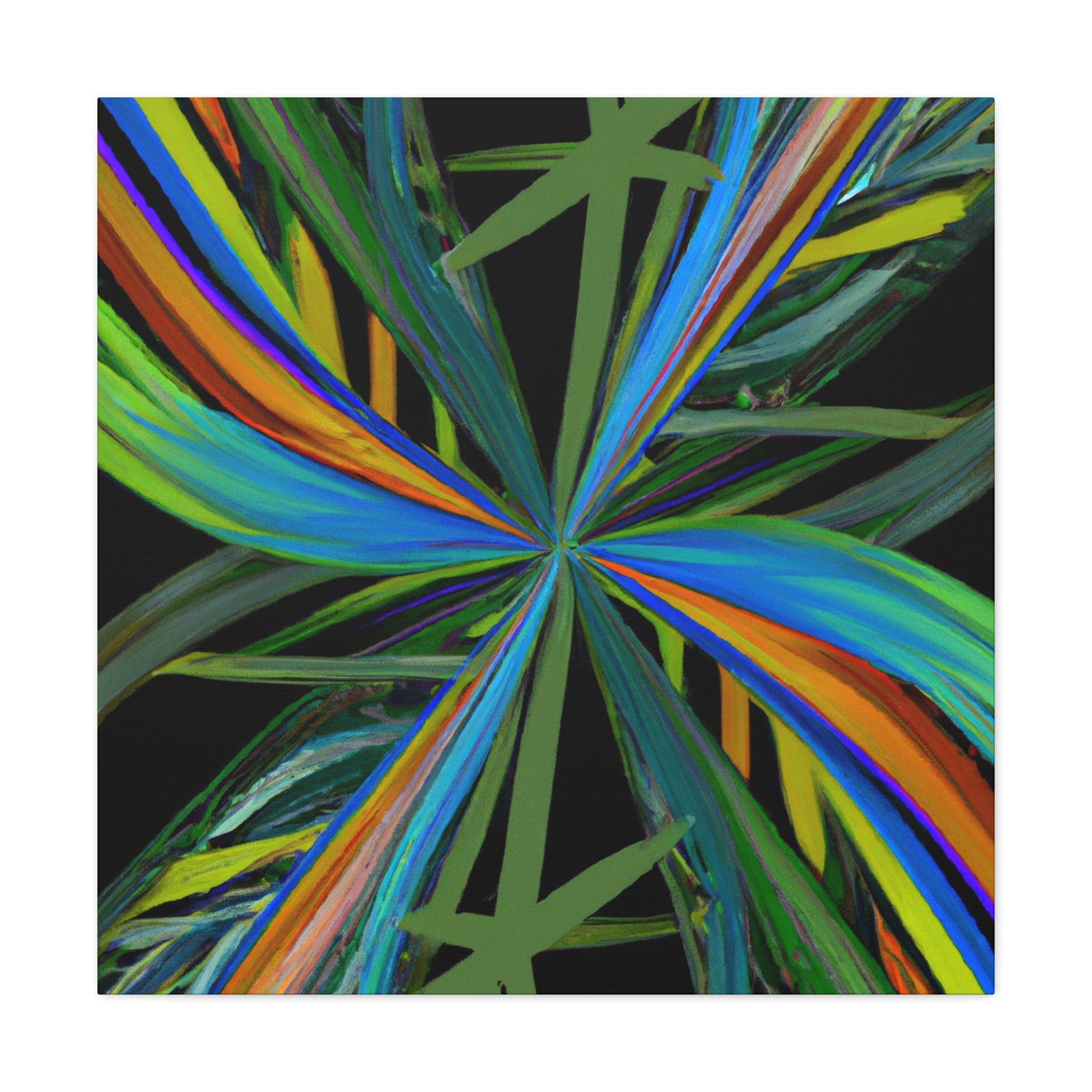 Welcome to the mysterious world of this vibrant art piece! This canvas features trippy geometric palm leaves, kaleidoscope, abstract and digital art that come together to create an eye-catching artwork. The colors are intense, the 3D lines mesmerizing and the fractal pattern is one of a kind. With its hypnotic and captivating beauty, this art piece will surely be the perfect showstopper in any room. #Kaleidoscope #AbstractArt #DigitalArt #GeometricArt #TrippyArt #Palmercement #FractalArt #VibrantArt #3DArt #CanvasArt #ArtWall