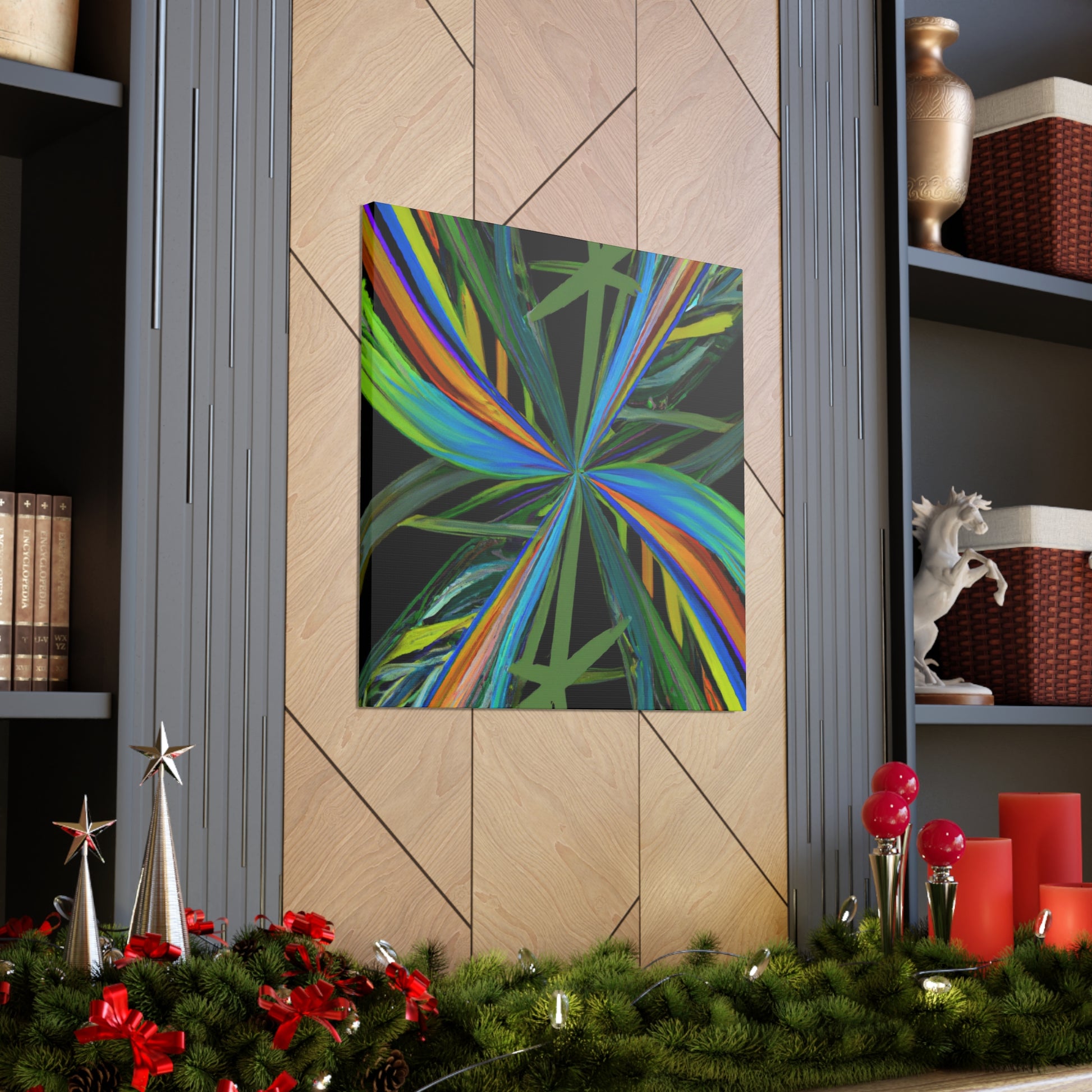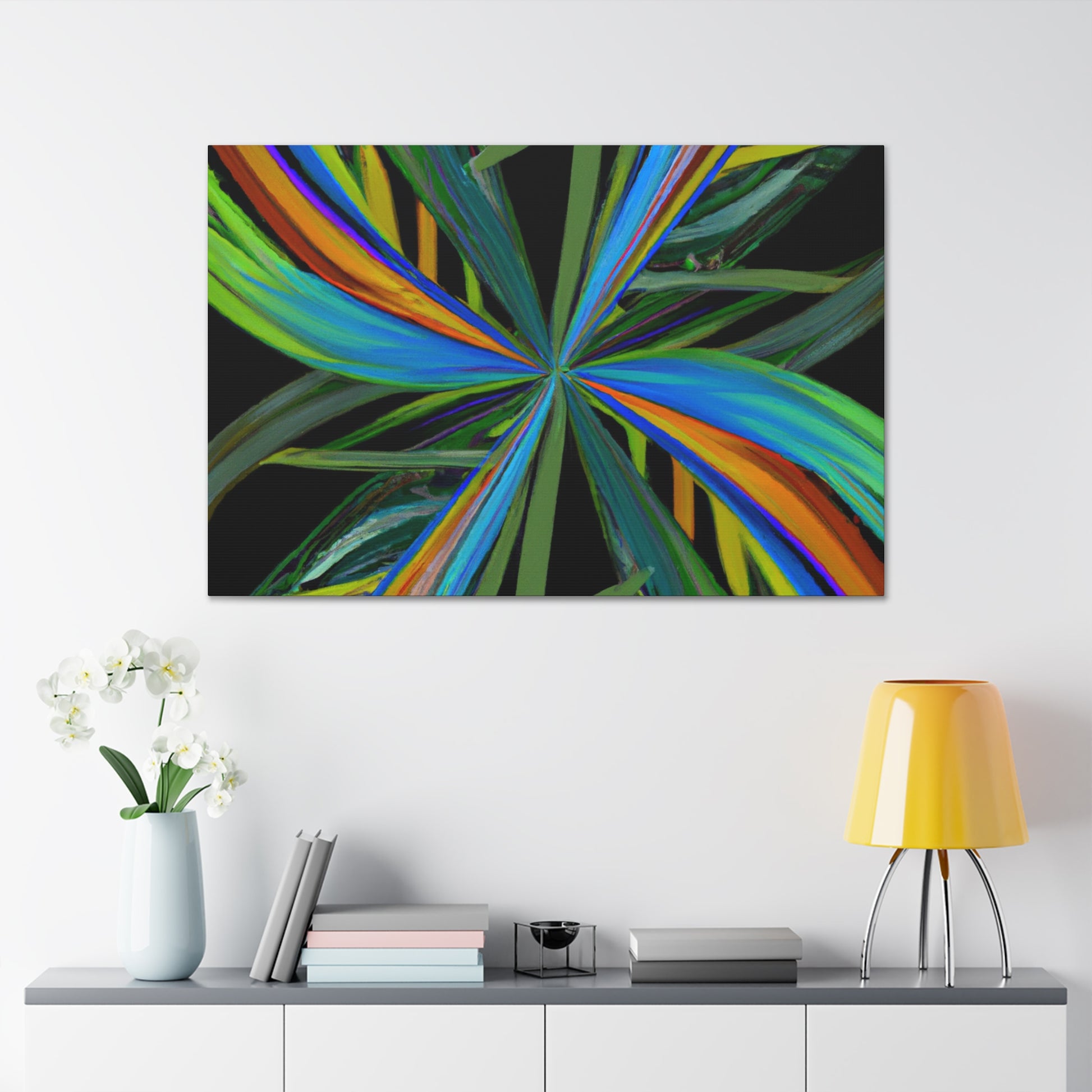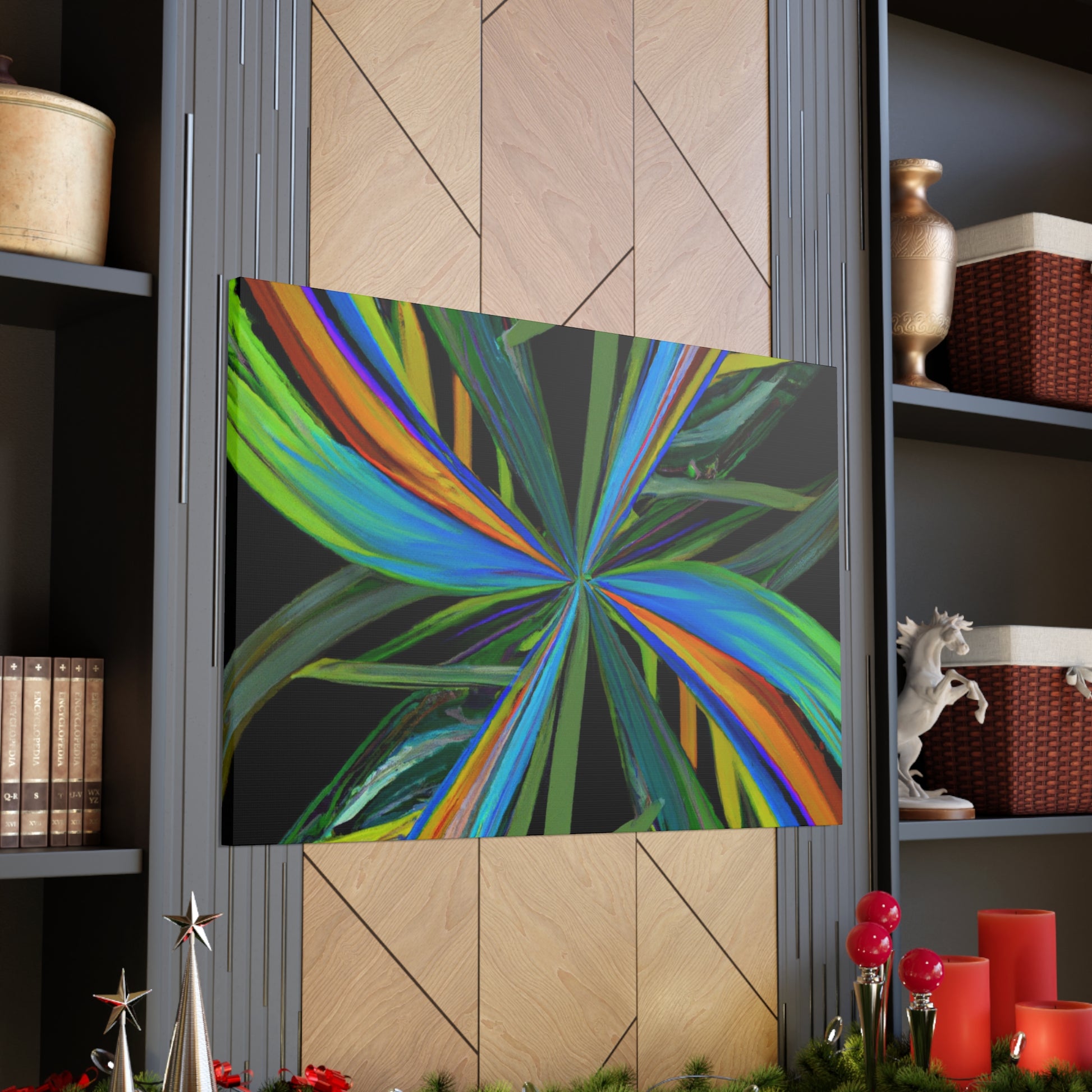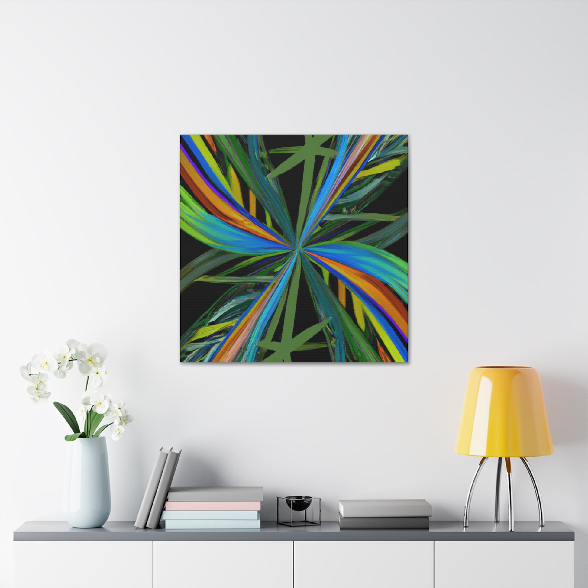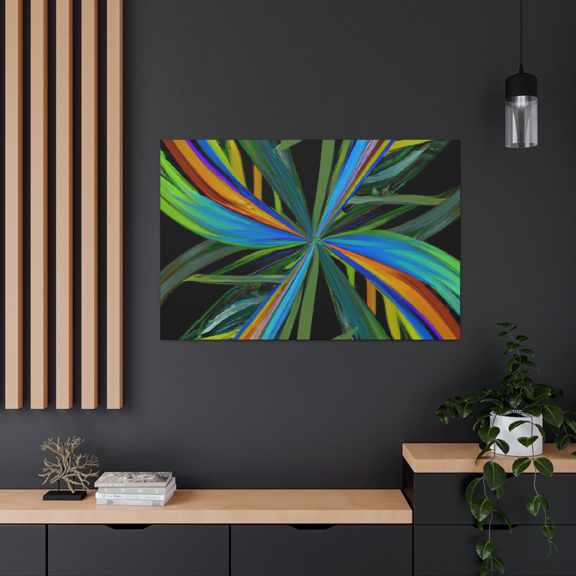Welcome to the mysterious world of this vibrant art piece! This canvas features trippy geometric palm leaves, kaleidoscope, abstract and digital art that come together to create an eye-catching artwork. The colors are intense, the 3D lines mesmerizing and the fractal pattern is one of a kind. With its hypnotic and captivating beauty, this art piece will surely be the perfect showstopper in any room. #Kaleidoscope #AbstractArt #DigitalArt #GeometricArt #TrippyArt #Palmercement #FractalArt #VibrantArt #3DArt #CanvasArt #ArtWall