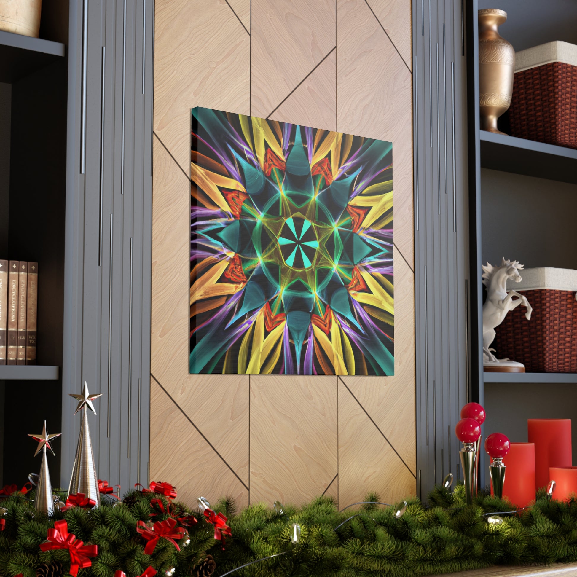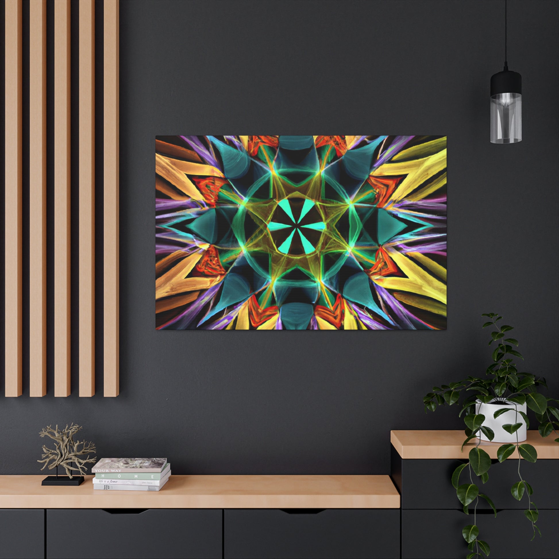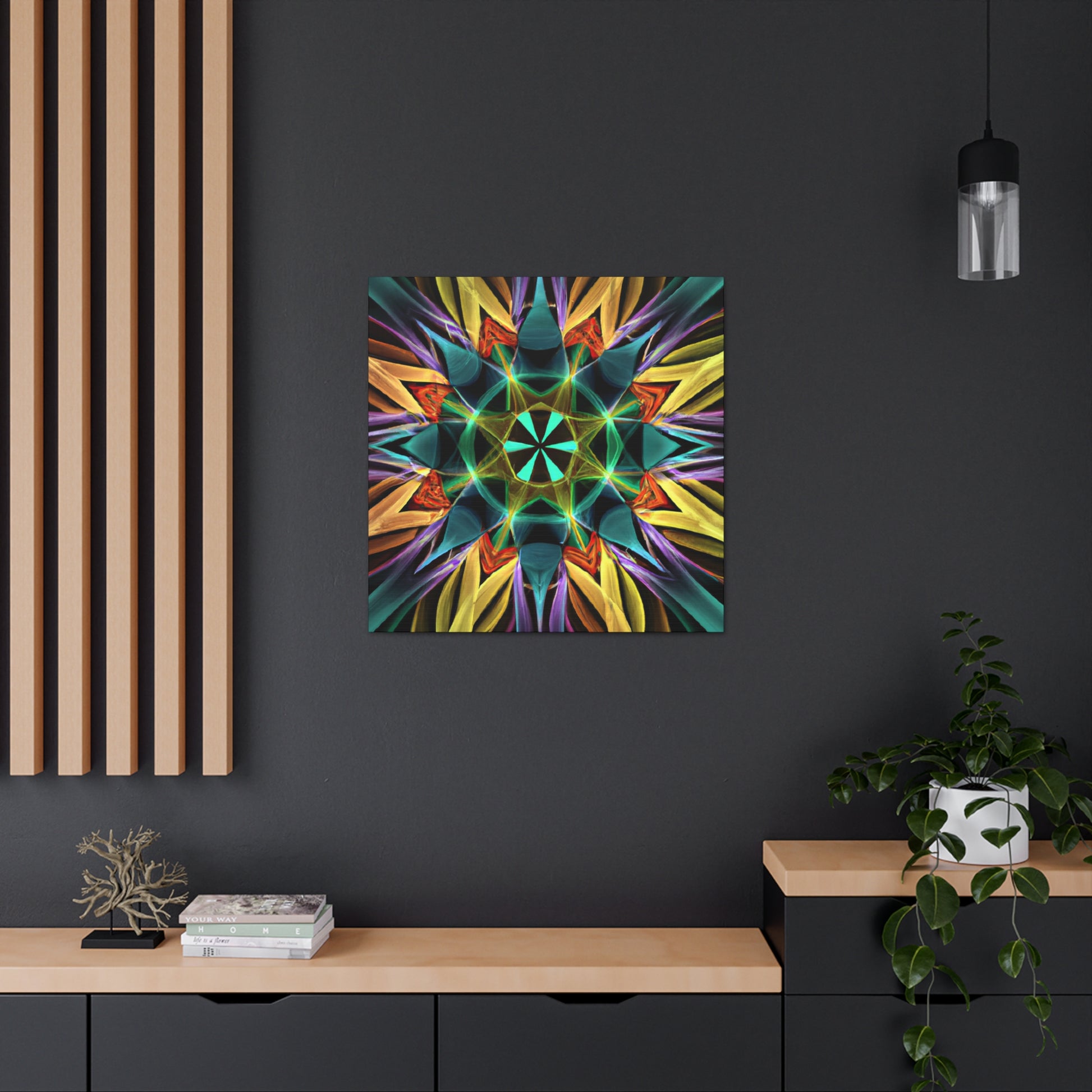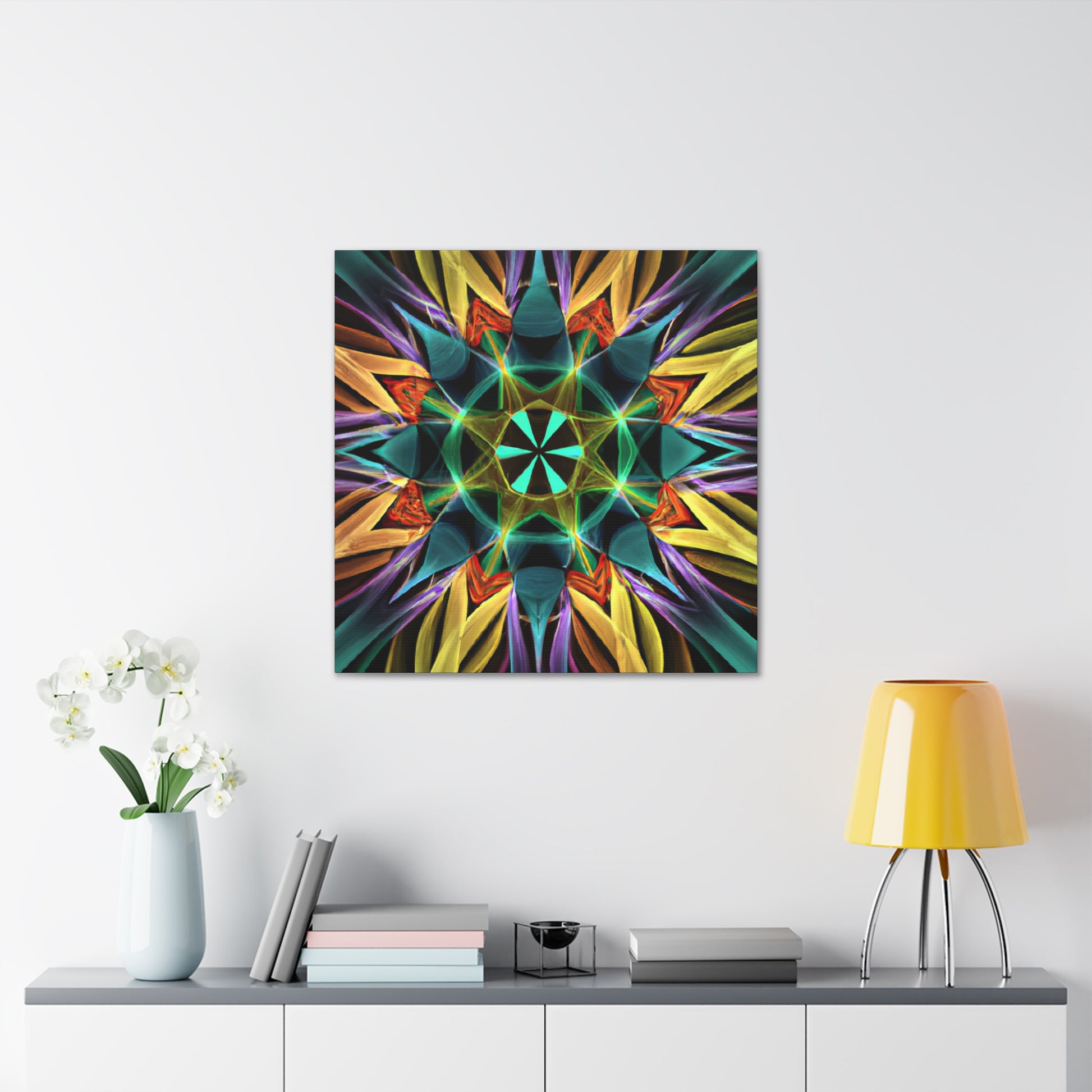 This beautiful canvas offers an electric combination of trippy geometric palm leaves, kaleidoscope, abstract, digital art, vibrant colors, 3D lines, and fractal. Blending mesmerizing elements into a captivating composition, this piece of art is sure to captivate guests and refresh any interior. Brightening up any room with its vibrant color, the canvas is perfect for a living room or bedroom. #Art #Canvas #InteriorDesign #3DLines #Fractal #VibrantColor #Kaleidoscope #DigitalArt #Abstract #GeometricPalmLeaves #Trippy