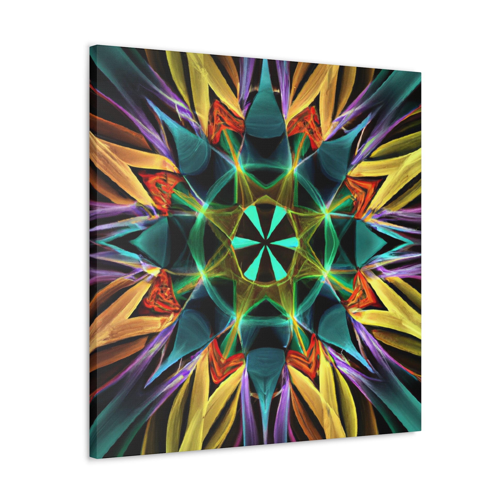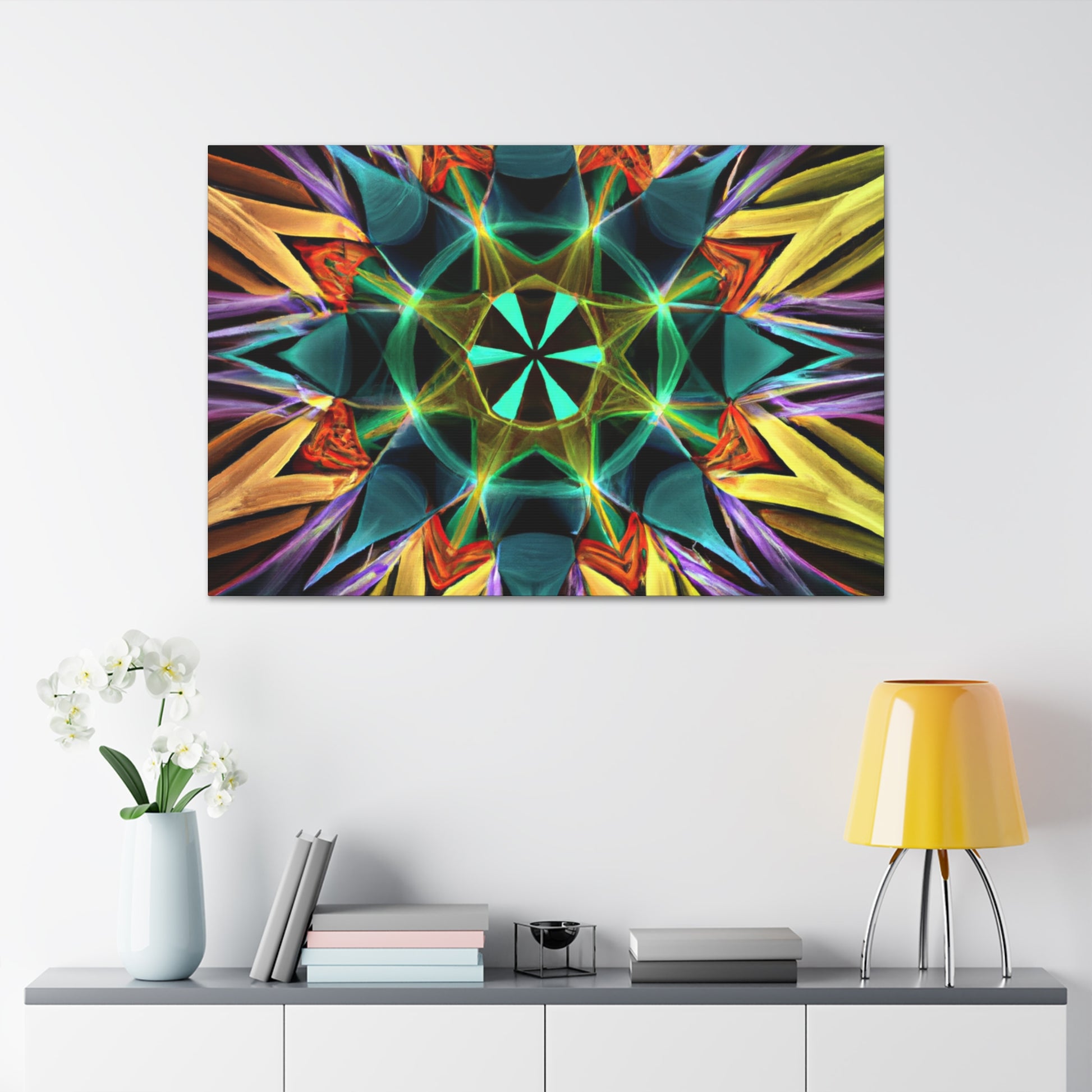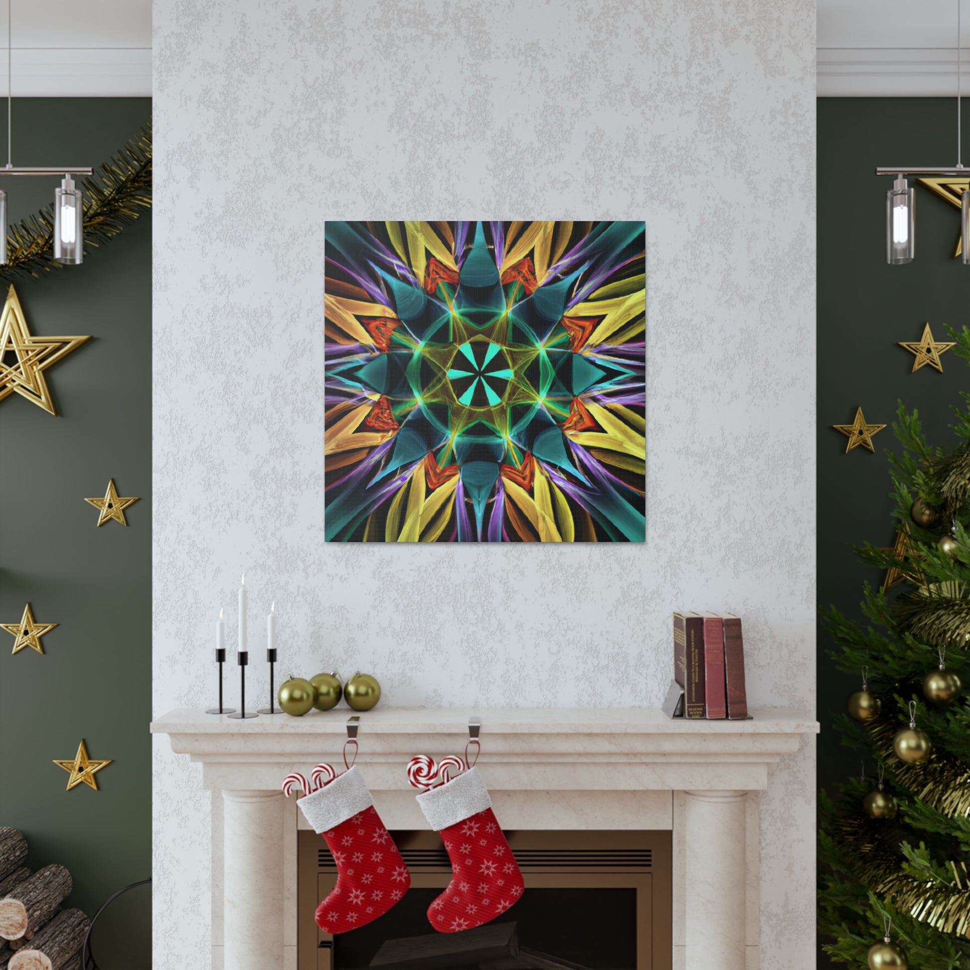 This beautiful canvas offers an electric combination of trippy geometric palm leaves, kaleidoscope, abstract, digital art, vibrant colors, 3D lines, and fractal. Blending mesmerizing elements into a captivating composition, this piece of art is sure to captivate guests and refresh any interior. Brightening up any room with its vibrant color, the canvas is perfect for a living room or bedroom. #Art #Canvas #InteriorDesign #3DLines #Fractal #VibrantColor #Kaleidoscope #DigitalArt #Abstract #GeometricPalmLeaves #Trippy