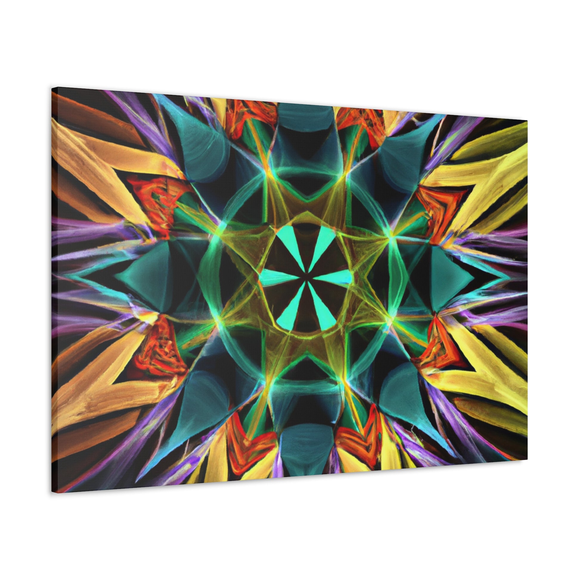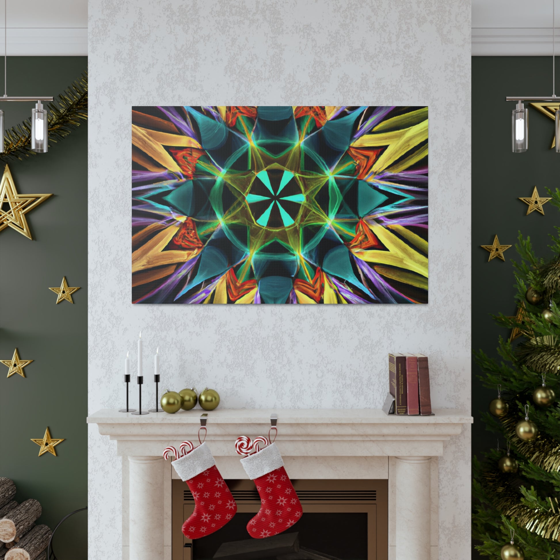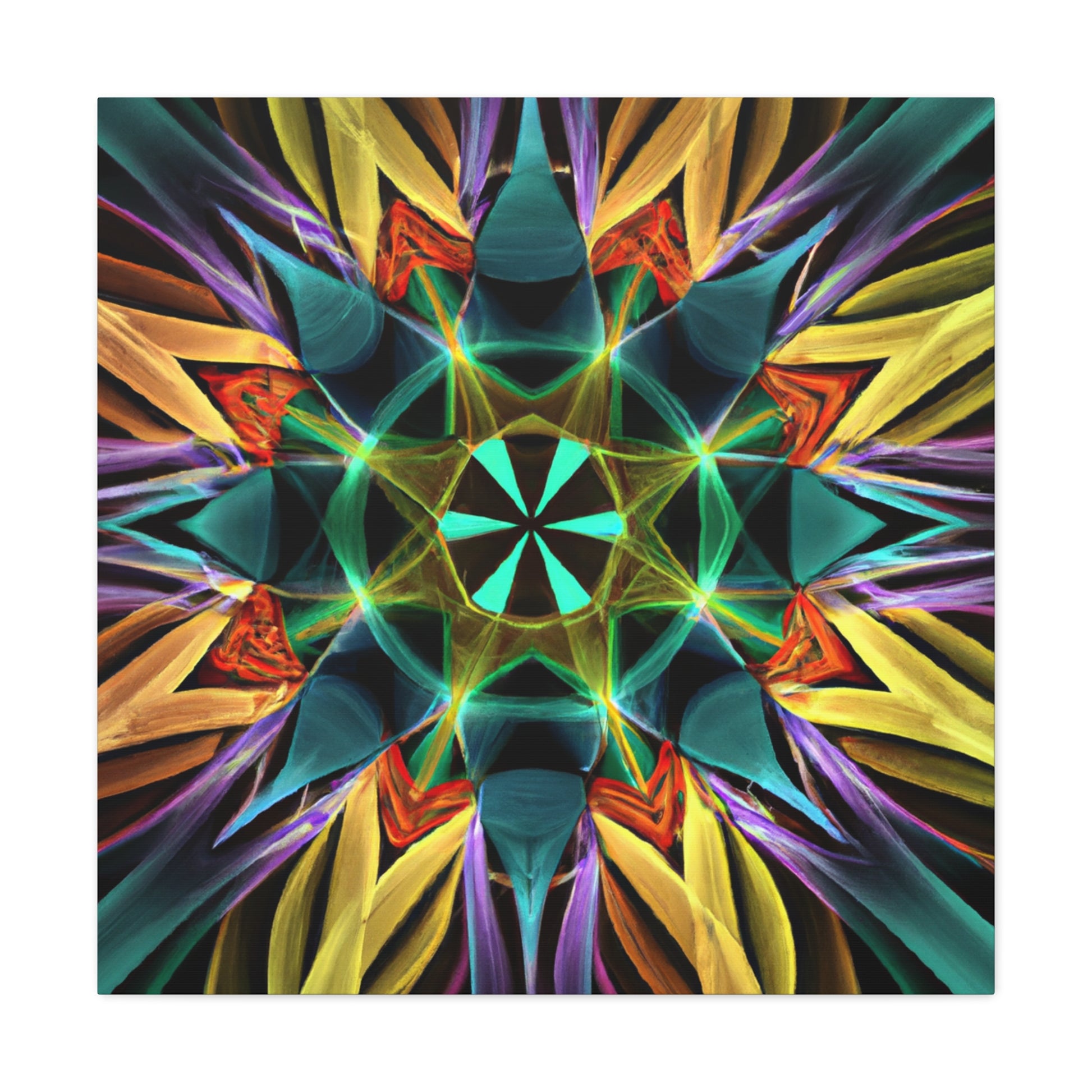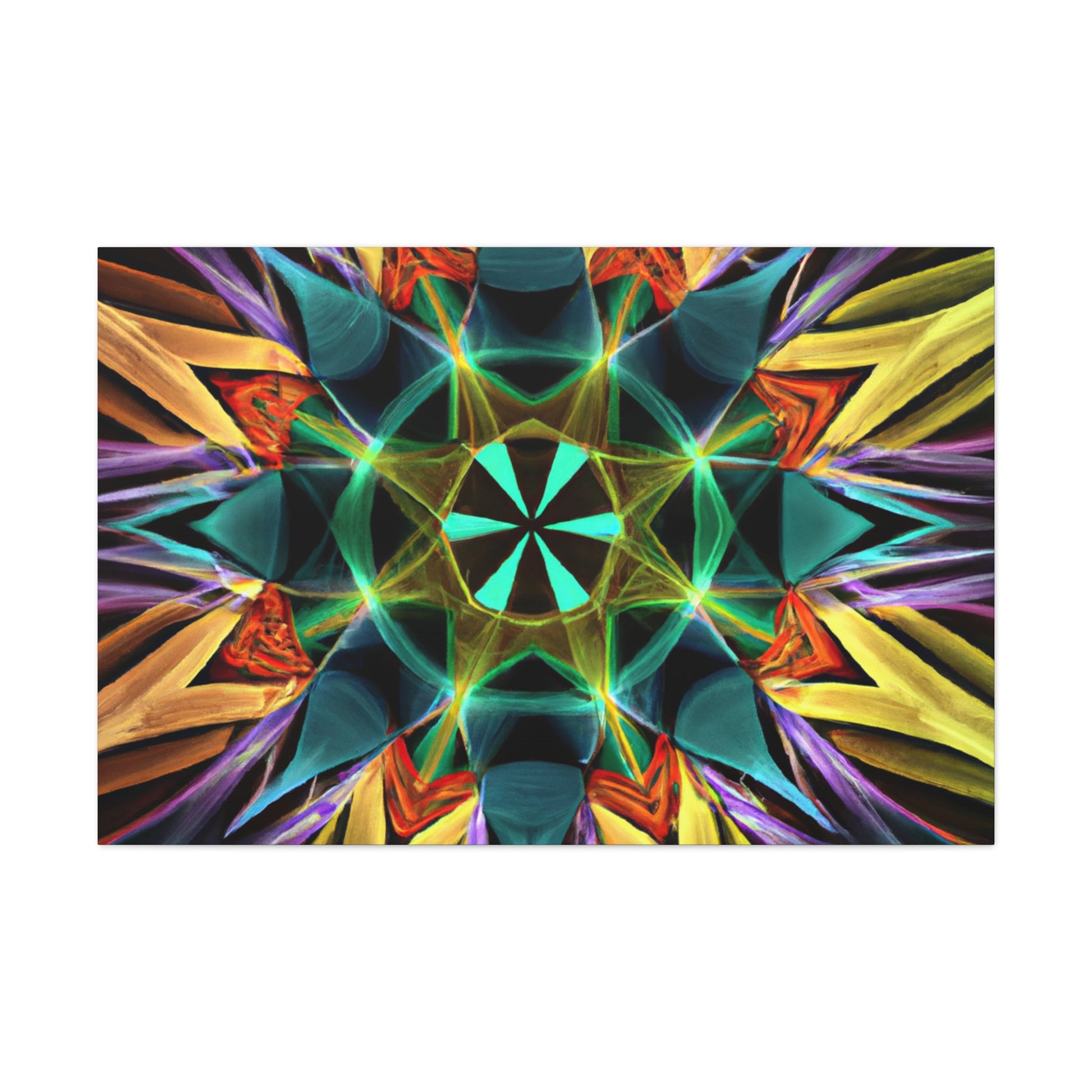 This beautiful canvas offers an electric combination of trippy geometric palm leaves, kaleidoscope, abstract, digital art, vibrant colors, 3D lines, and fractal. Blending mesmerizing elements into a captivating composition, this piece of art is sure to captivate guests and refresh any interior. Brightening up any room with its vibrant color, the canvas is perfect for a living room or bedroom. #Art #Canvas #InteriorDesign #3DLines #Fractal #VibrantColor #Kaleidoscope #DigitalArt #Abstract #GeometricPalmLeaves #Trippy
