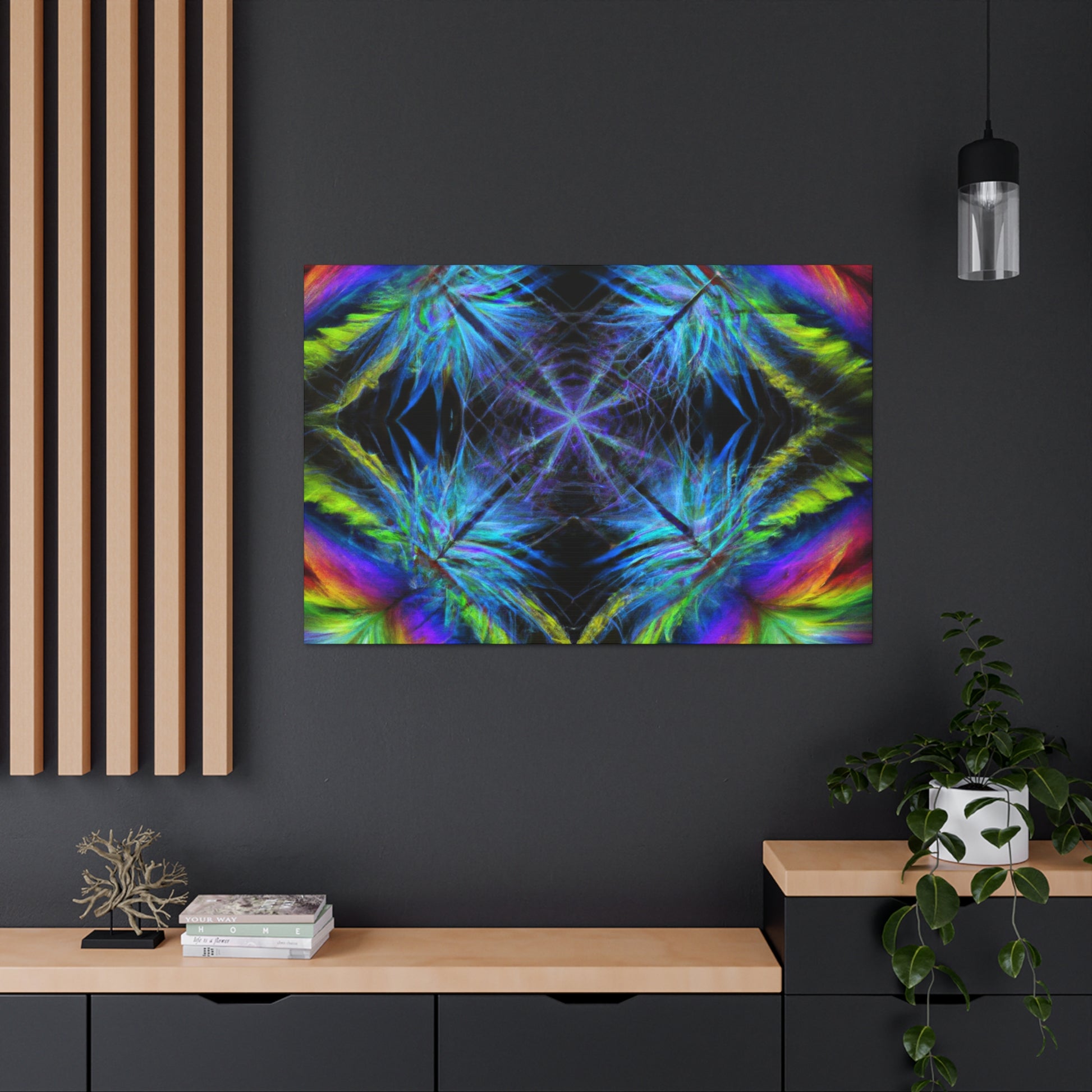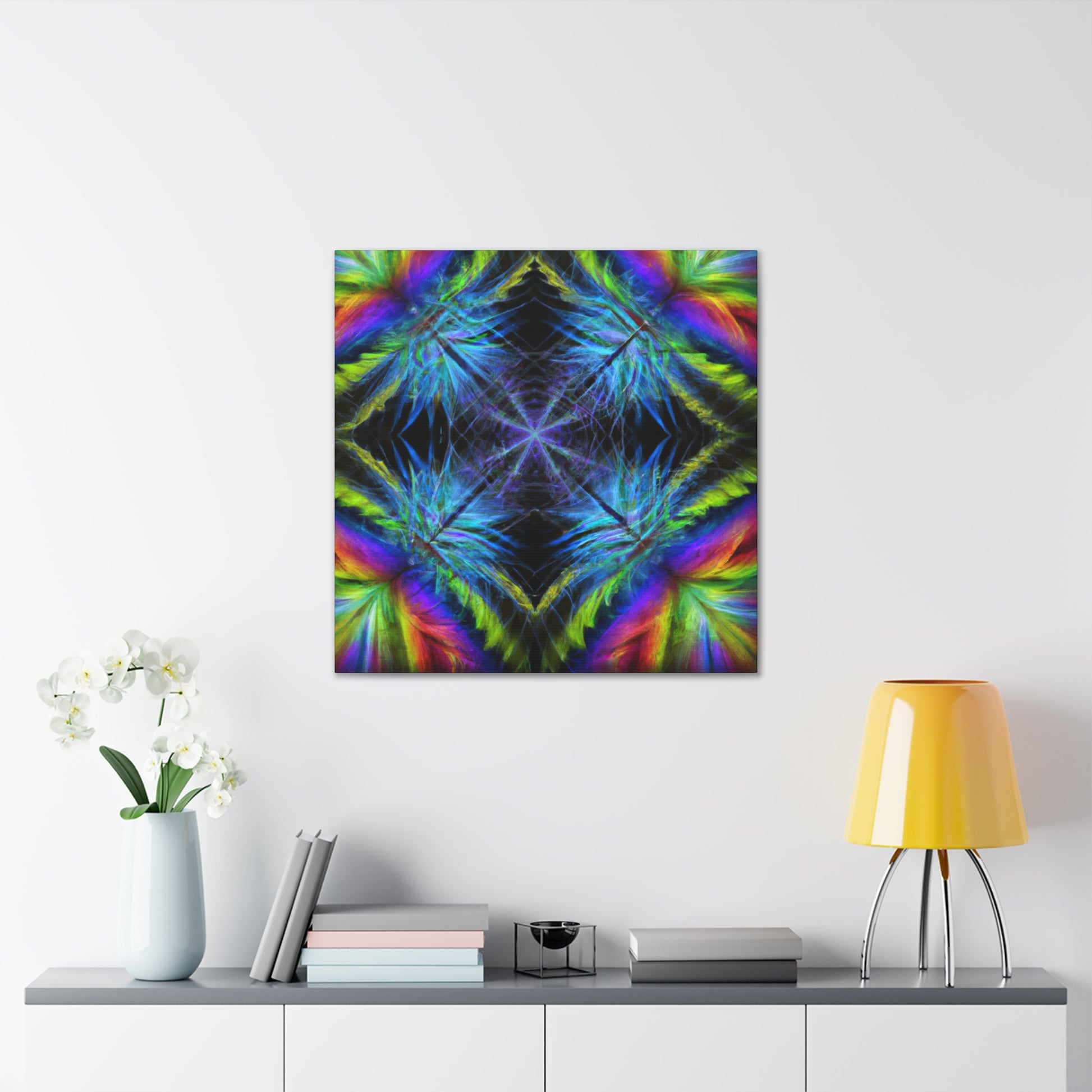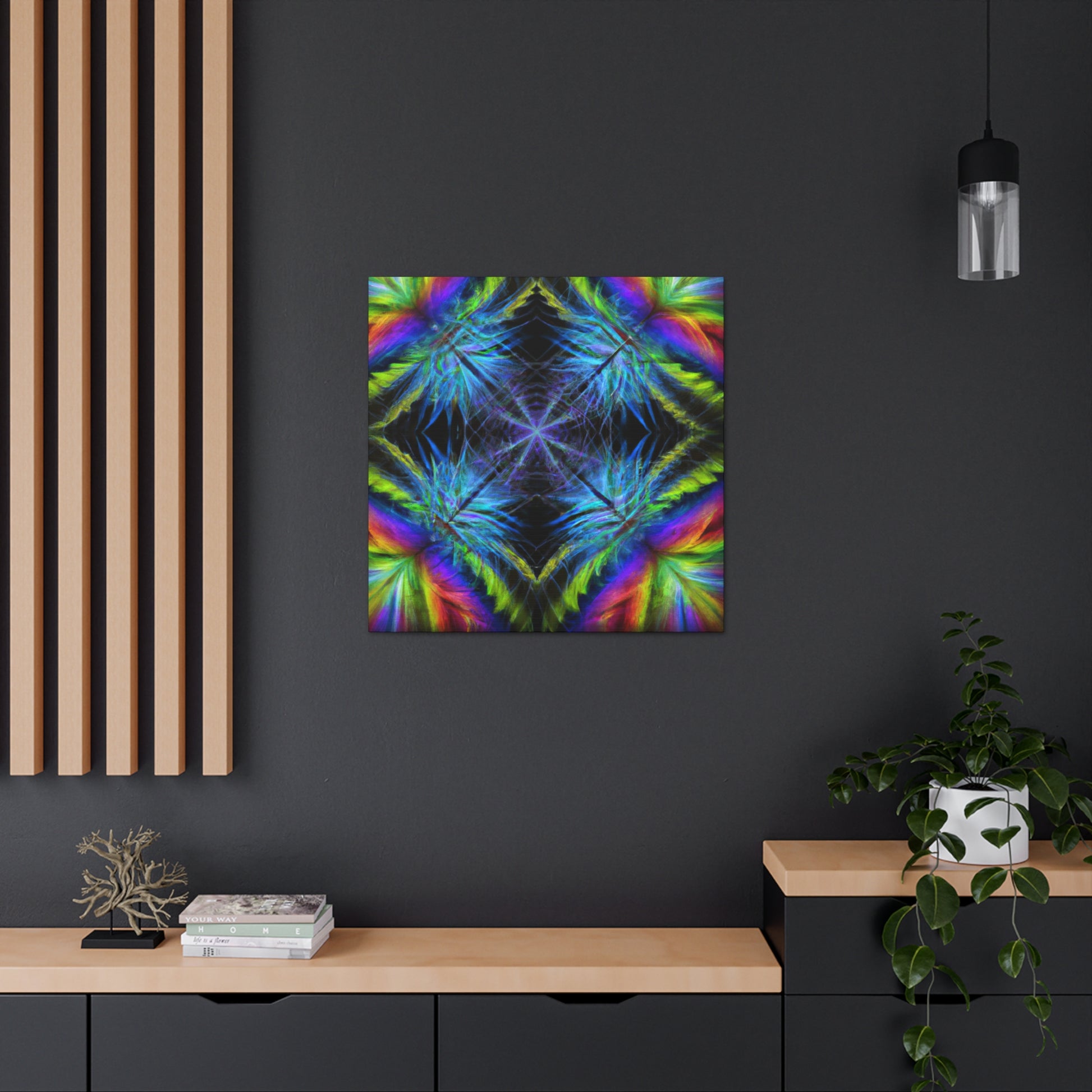 Featuring Trippy Geometric Palm Leaves, Kaleidoscope, Abstract, Digital Art, and Vibrant Colors, this digitally enhanced Canvas is the perfect addition to any space. With 3D Lines, Fractal, and a captivating pool of contrasting colors, this piece of modern art will add energy and life to your room. #modernart #contrastingcolors #vibrantcolors #trippyart #canvasart #abstractart #kaleidoscopeart #digitalart #fractal #3dlines #palmleaves