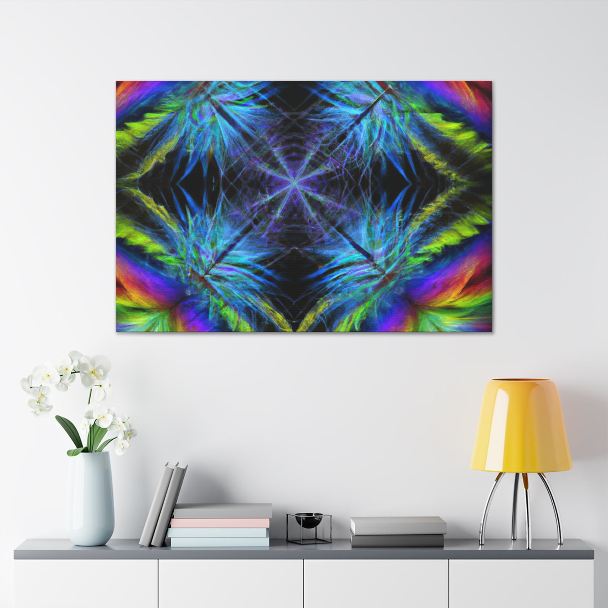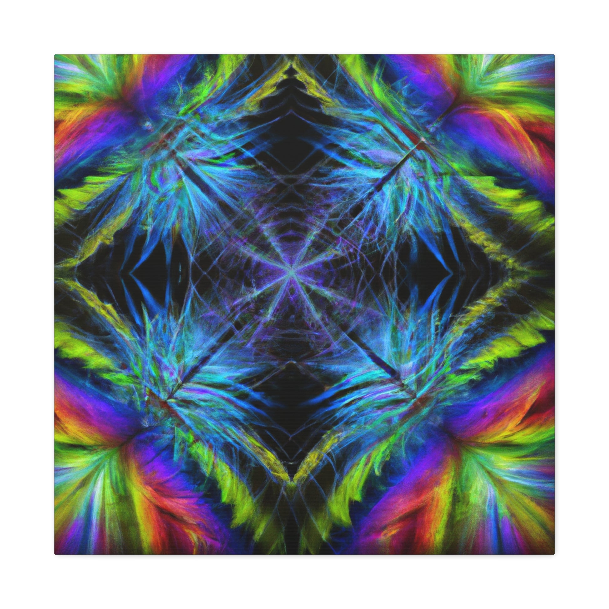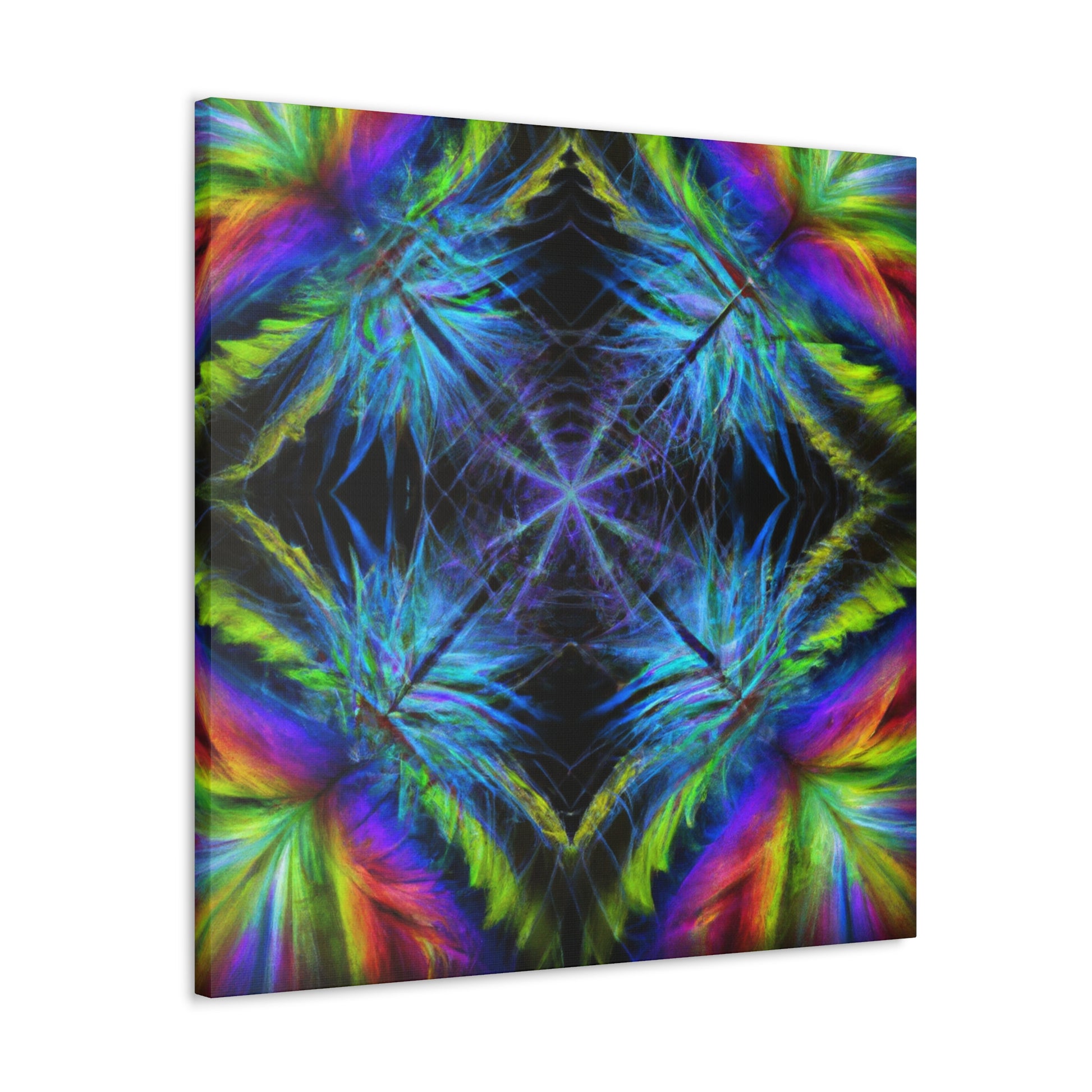 Featuring Trippy Geometric Palm Leaves, Kaleidoscope, Abstract, Digital Art, and Vibrant Colors, this digitally enhanced Canvas is the perfect addition to any space. With 3D Lines, Fractal, and a captivating pool of contrasting colors, this piece of modern art will add energy and life to your room. #modernart #contrastingcolors #vibrantcolors #trippyart #canvasart #abstractart #kaleidoscopeart #digitalart #fractal #3dlines #palmleaves