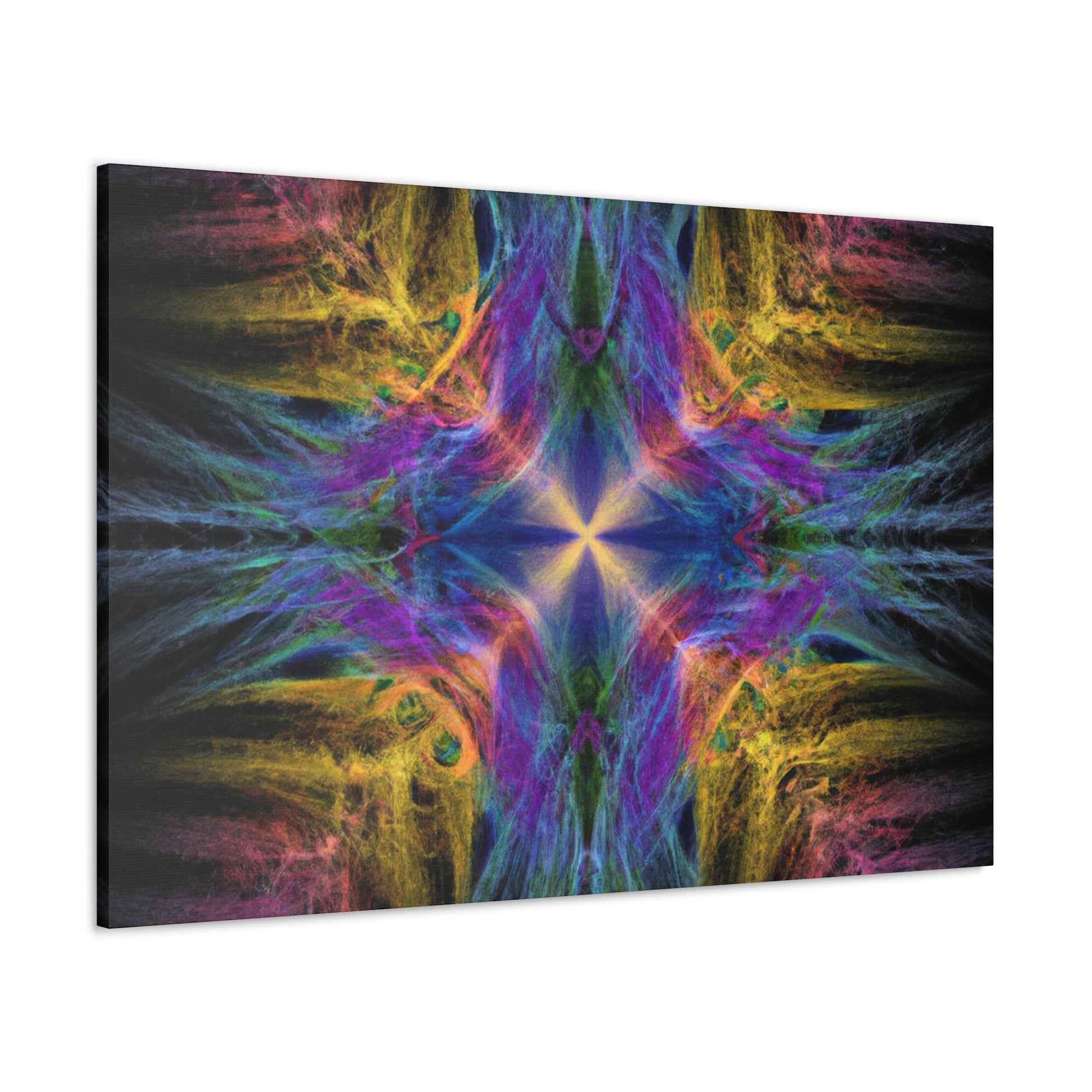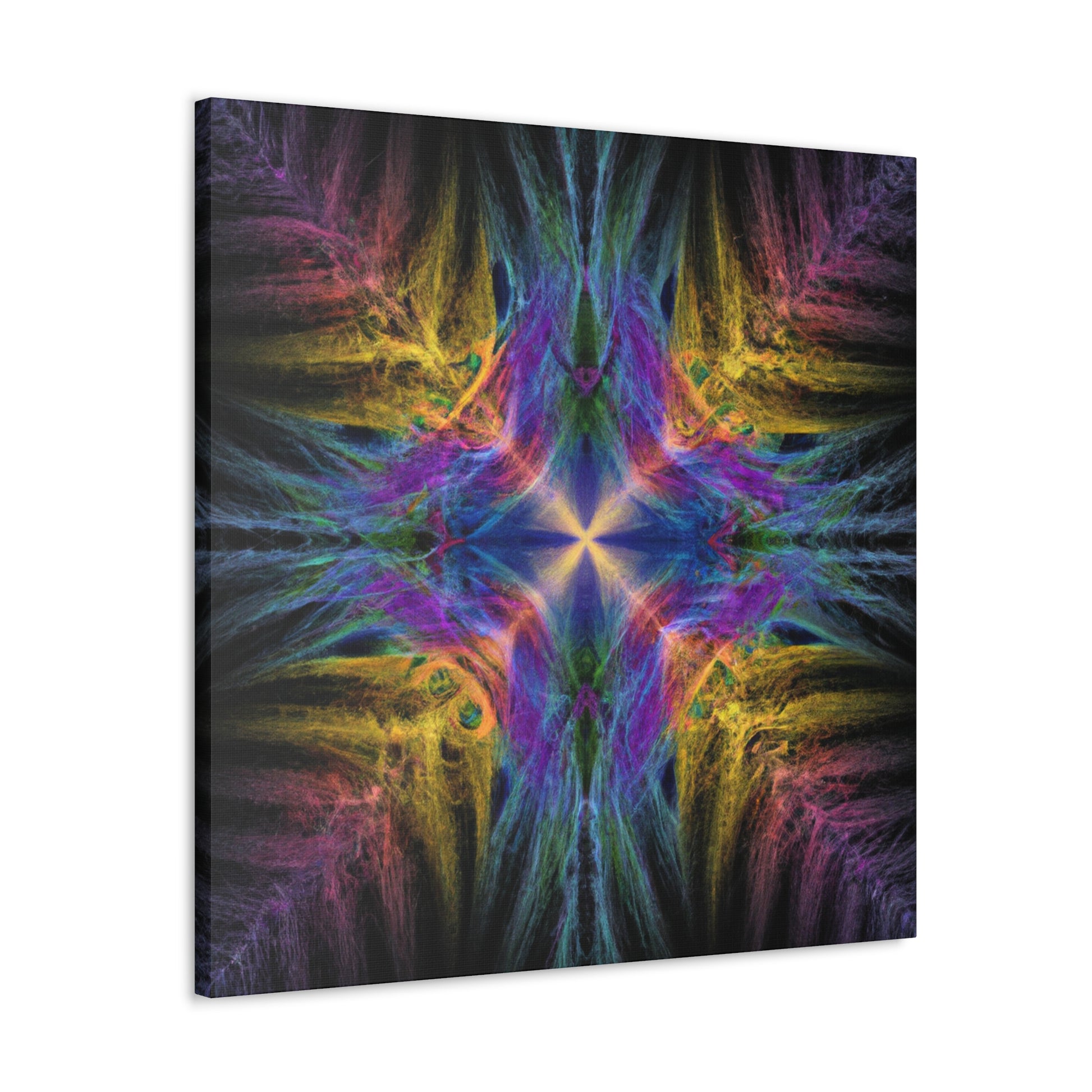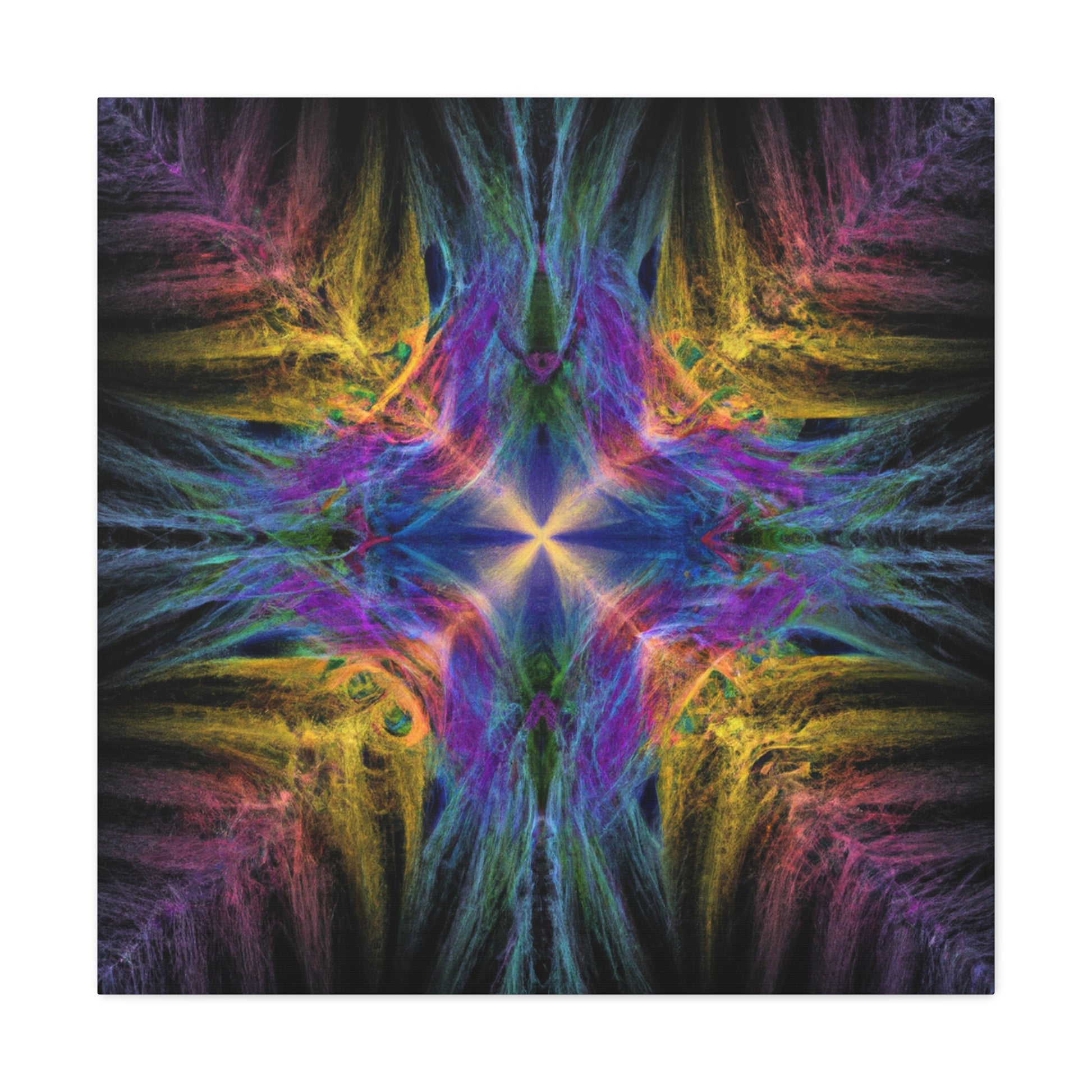 Introducing our one of a kind Trippy Geometric Palm Leaves canvas - an abstract, digital art featuring kaleidoscope shapes, vibrant colors, 3D lines and fractal patterns! Decorate any room in your home with this unique piece to add a modern ambience. Make sure to shine some light on this canvas to get the full effect of this eye-catching artwork! #artwork #canvas #palmleaves #kaleidoscope #abstract #3Dlines #fractal #digitalart #vibrantcolors #3D #modernart