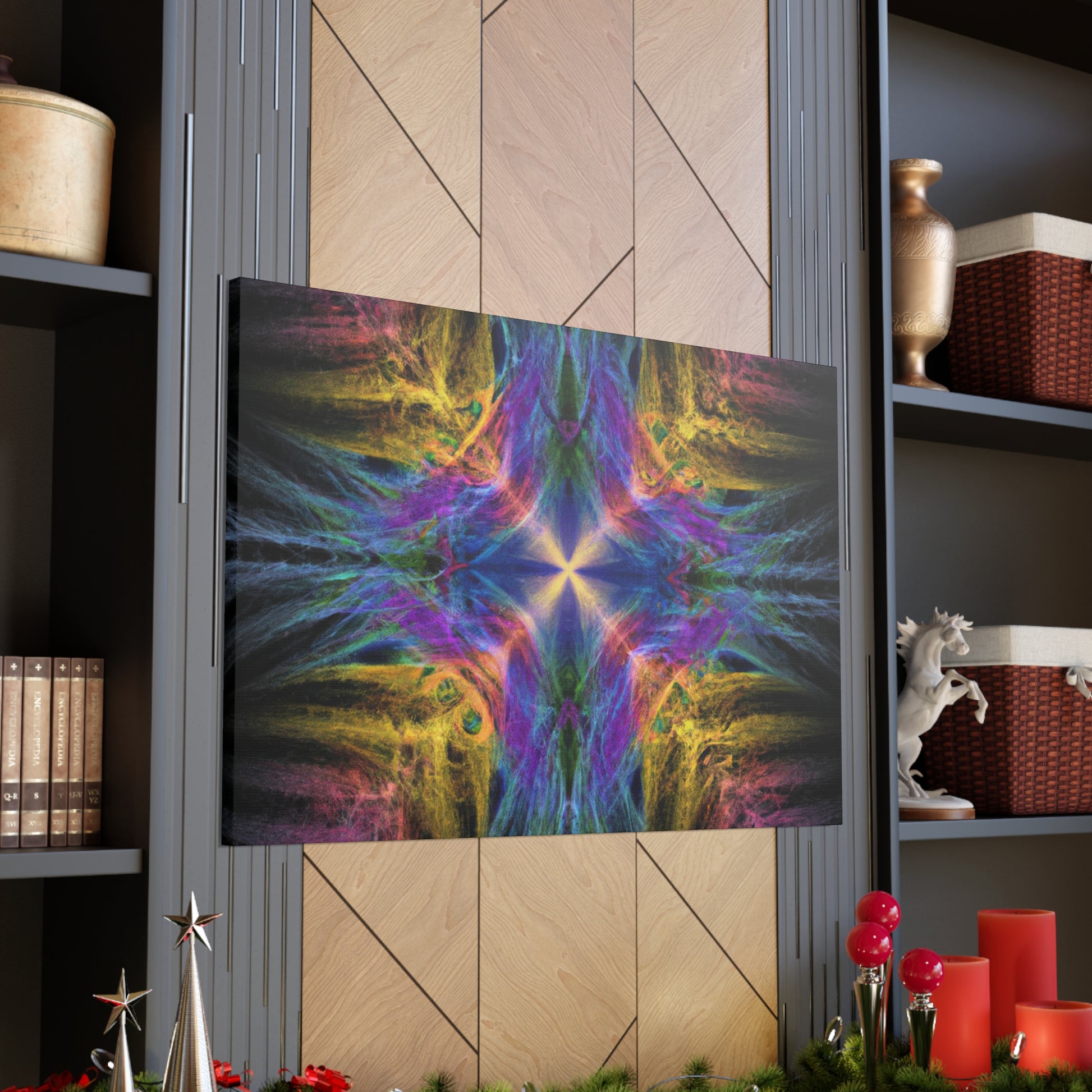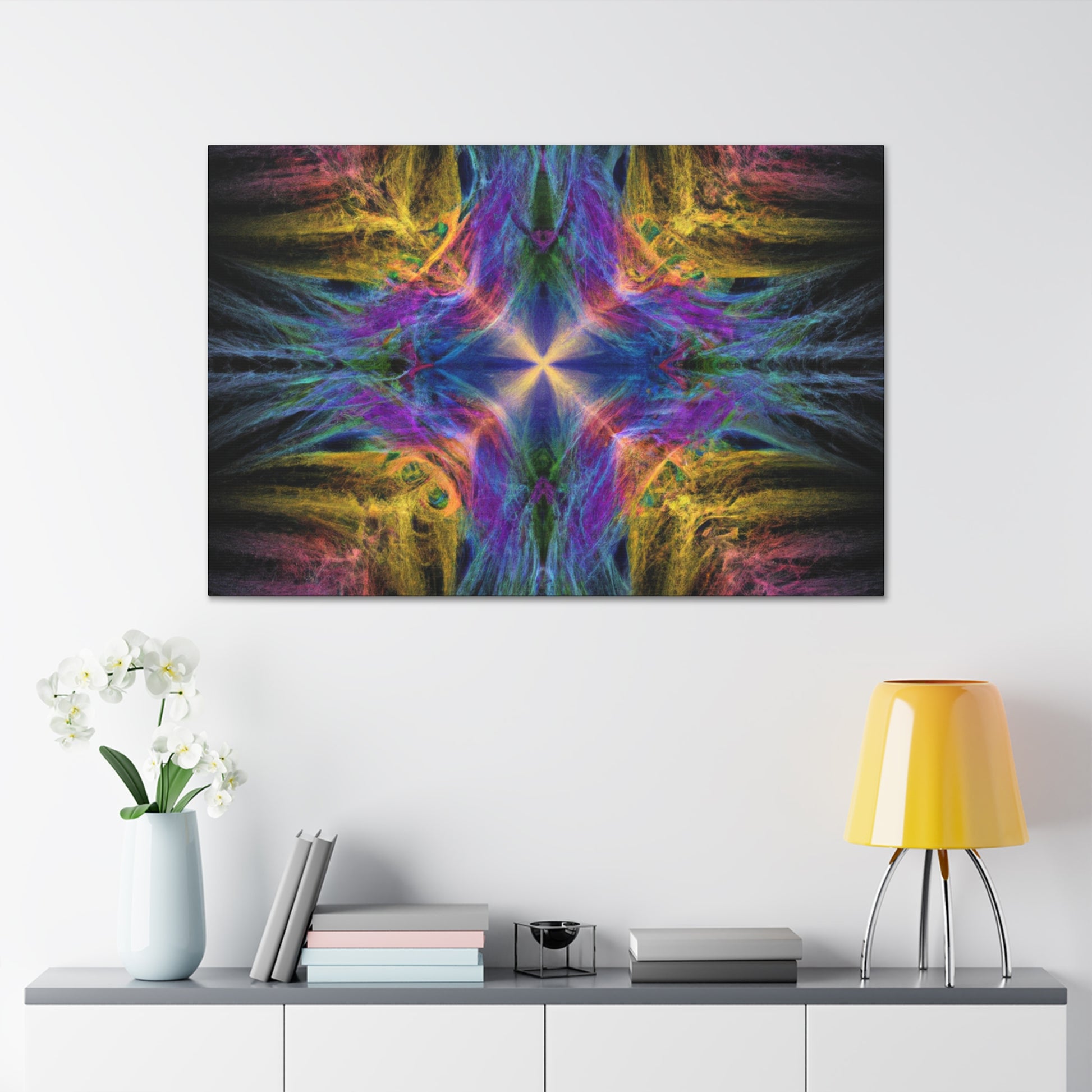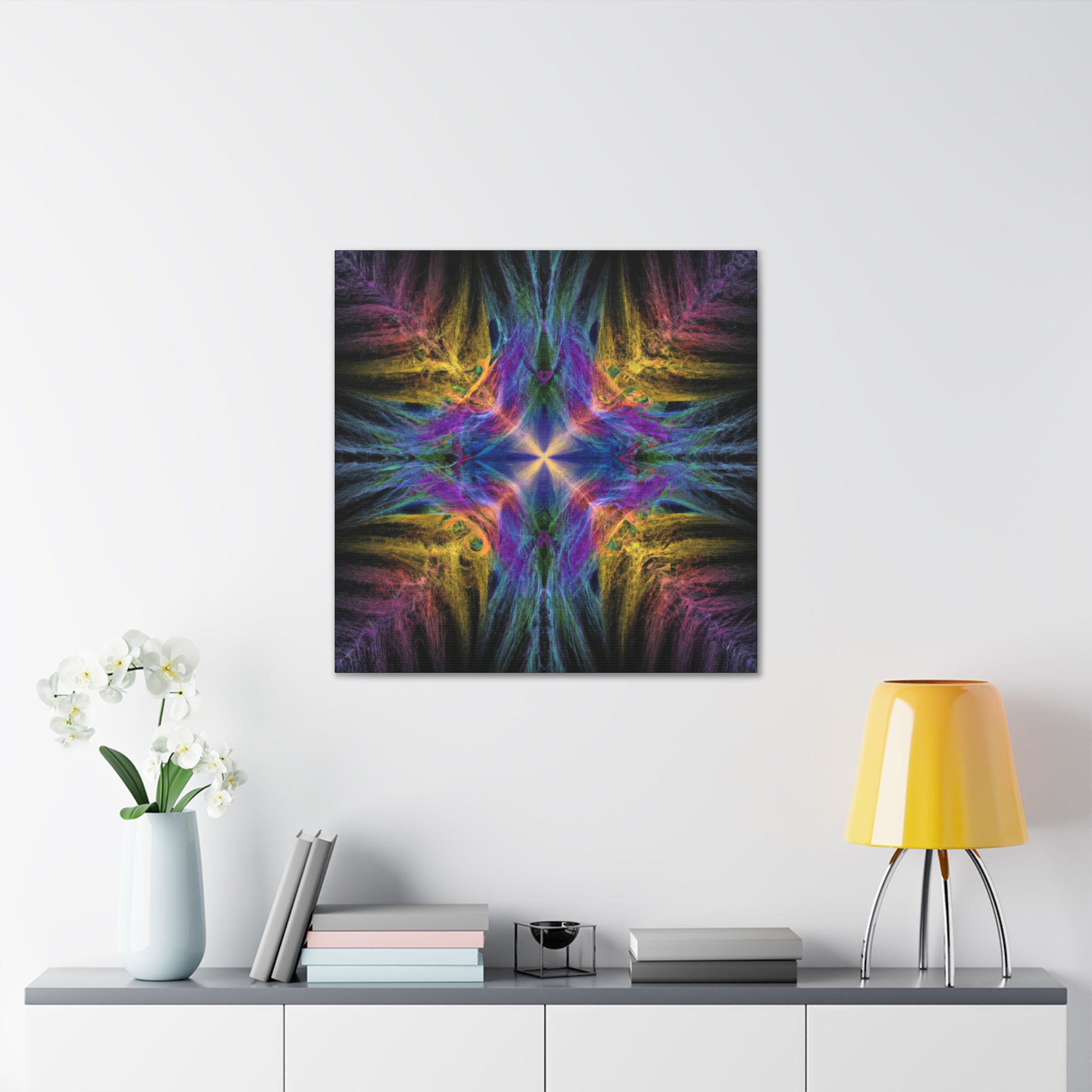 Introducing our one of a kind Trippy Geometric Palm Leaves canvas - an abstract, digital art featuring kaleidoscope shapes, vibrant colors, 3D lines and fractal patterns! Decorate any room in your home with this unique piece to add a modern ambience. Make sure to shine some light on this canvas to get the full effect of this eye-catching artwork! #artwork #canvas #palmleaves #kaleidoscope #abstract #3Dlines #fractal #digitalart #vibrantcolors #3D #modernart