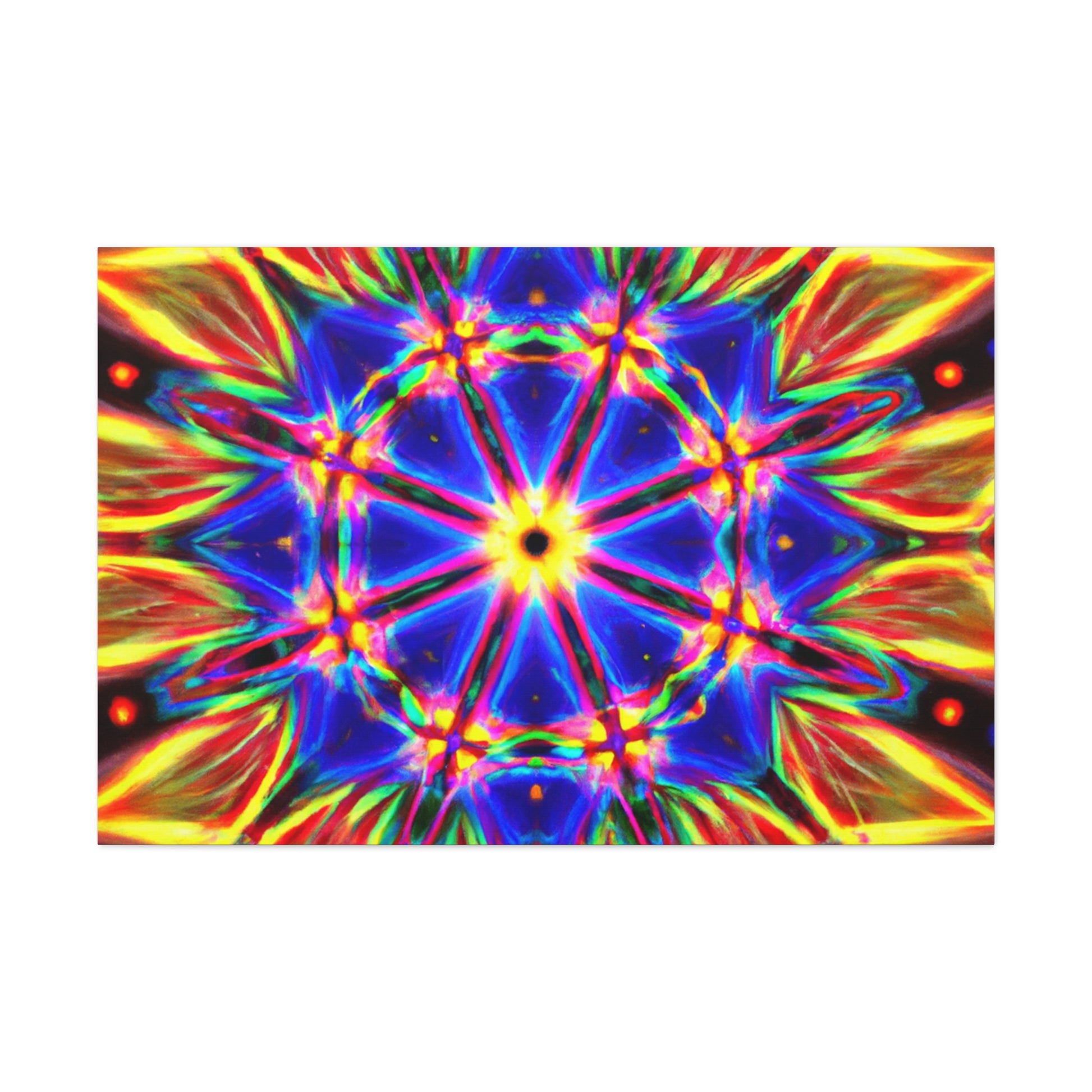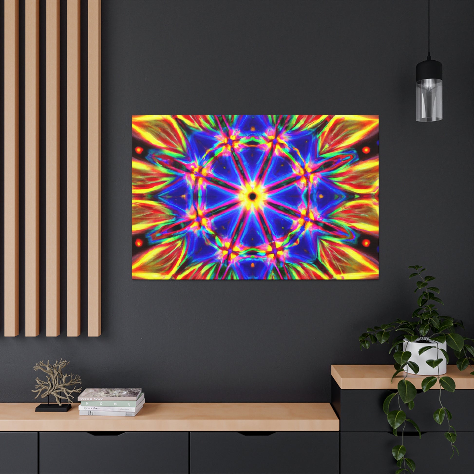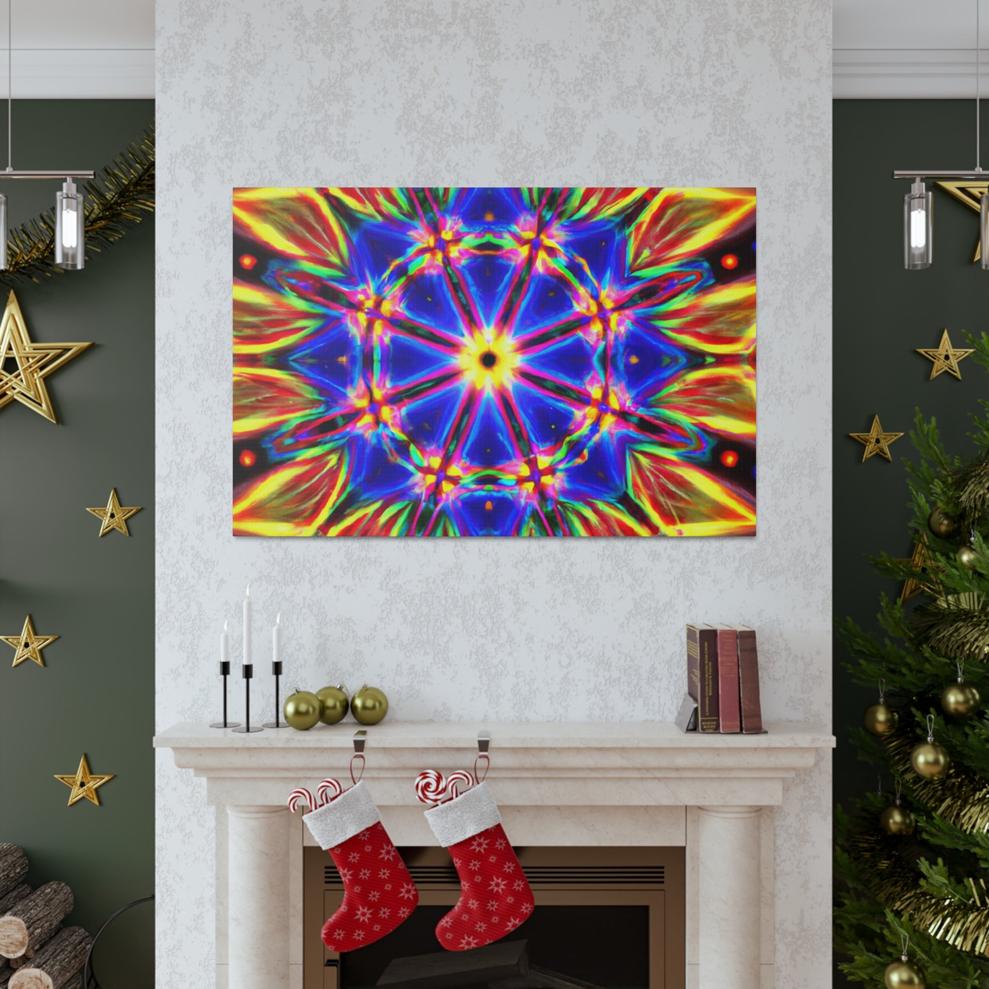 This canvas of trippy stars, kaleidoscope and abstract digital art contains vibrant colors and high definition resolution, creating a perfect centrepiece for any wall. The symmetrical yet random shapes of the art lend an intriguing look, and will bring a unique feel to any space. #digitalart #canvas #vibrantcolors #trippystars #kaleidoscope #abstractart #HD #symmetrical #wallpiece #centrepiece #ambiance