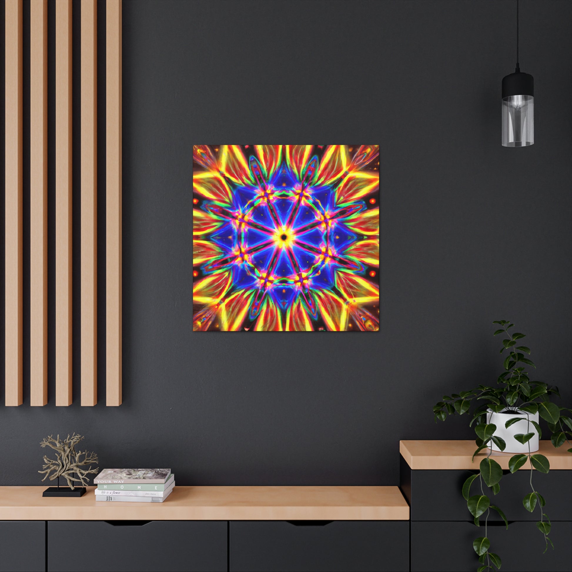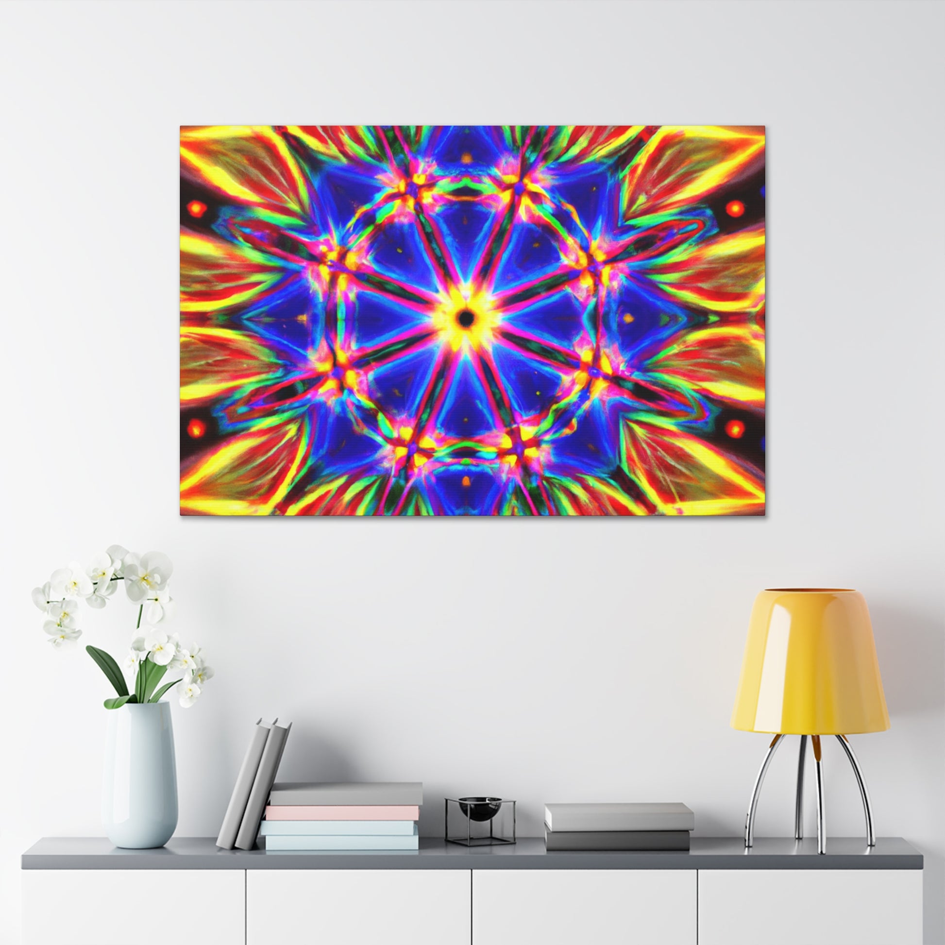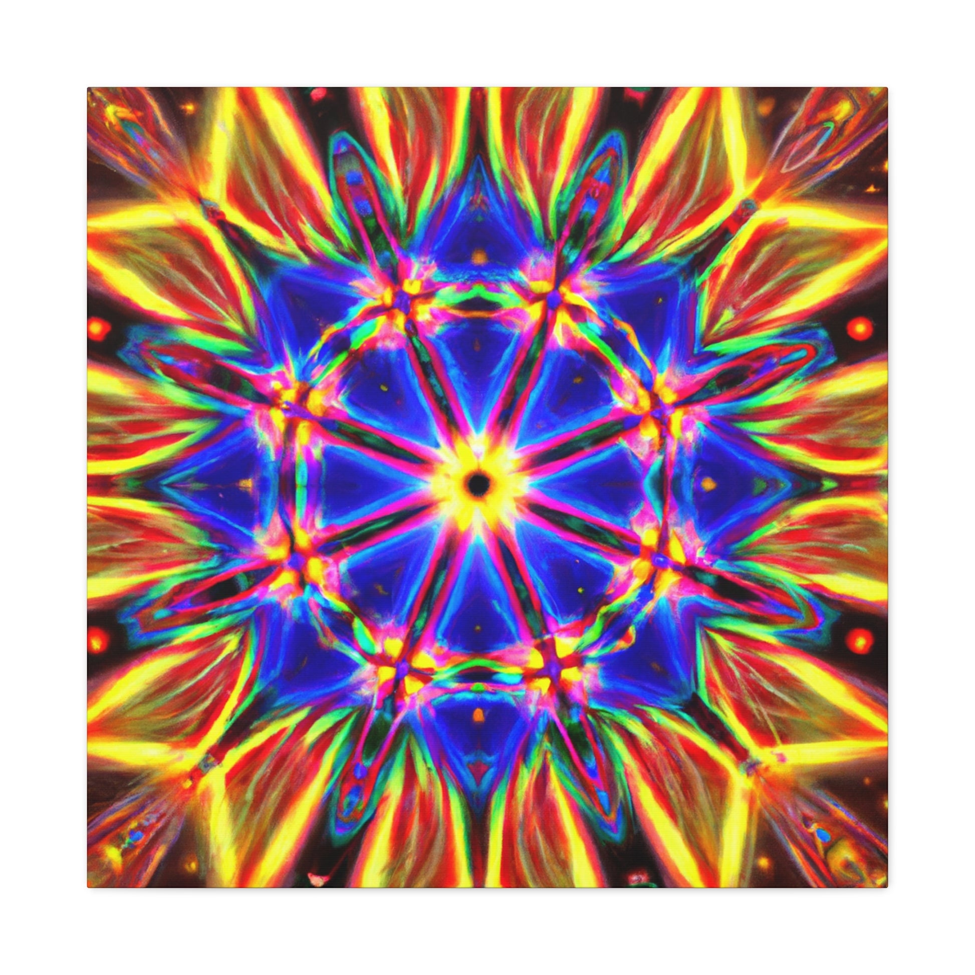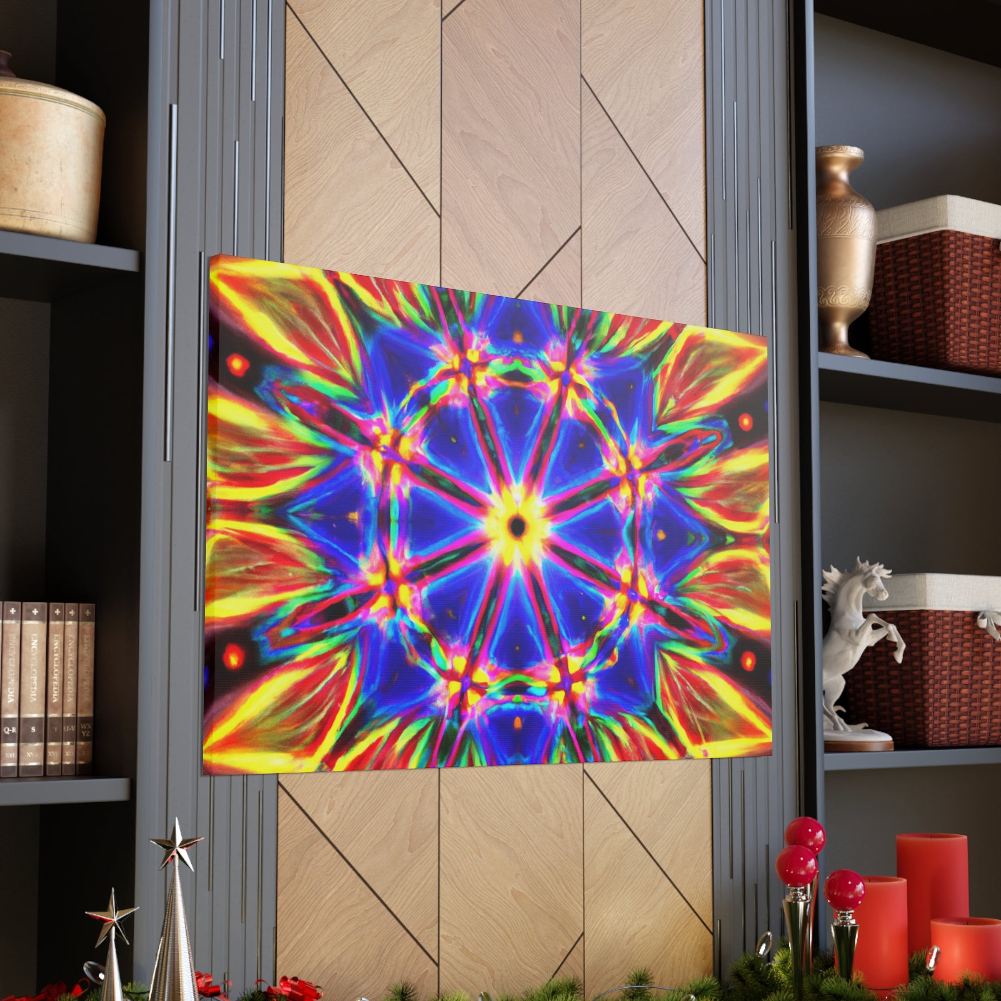 This canvas of trippy stars, kaleidoscope and abstract digital art contains vibrant colors and high definition resolution, creating a perfect centrepiece for any wall. The symmetrical yet random shapes of the art lend an intriguing look, and will bring a unique feel to any space. #digitalart #canvas #vibrantcolors #trippystars #kaleidoscope #abstractart #HD #symmetrical #wallpiece #centrepiece #ambiance
