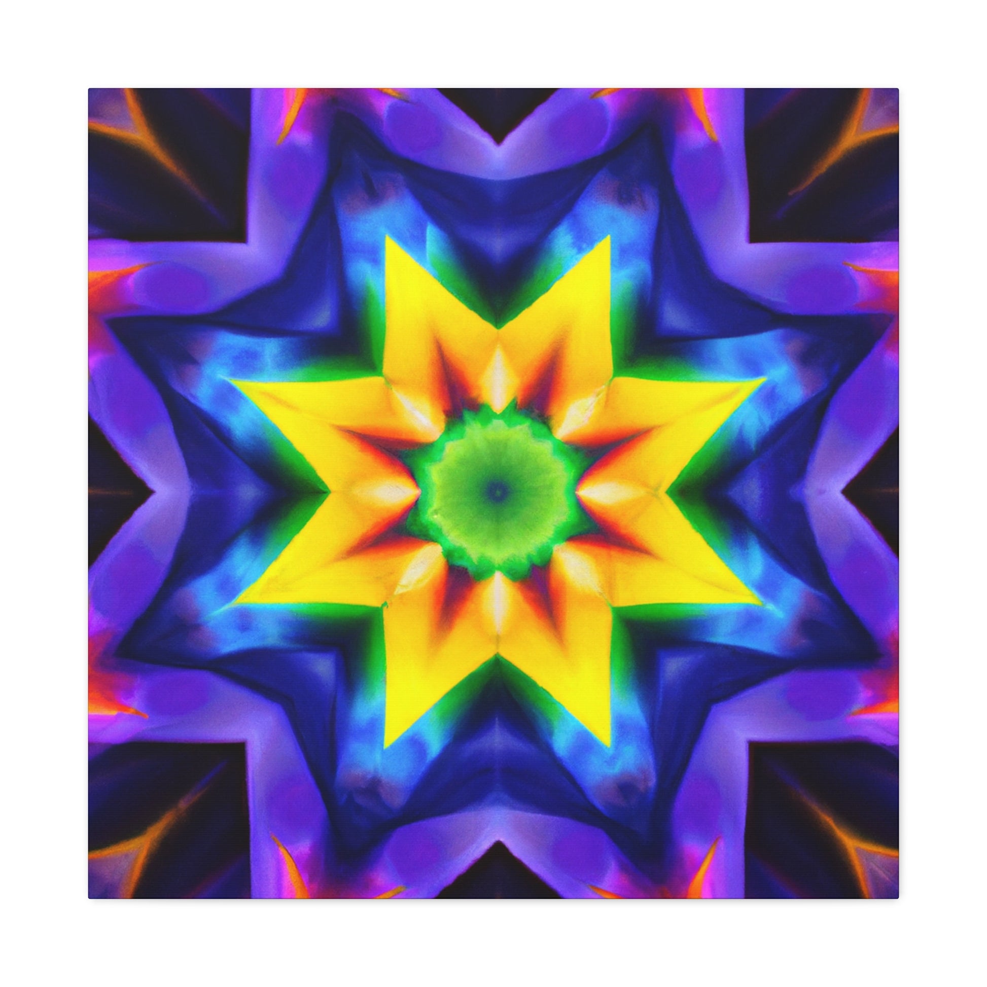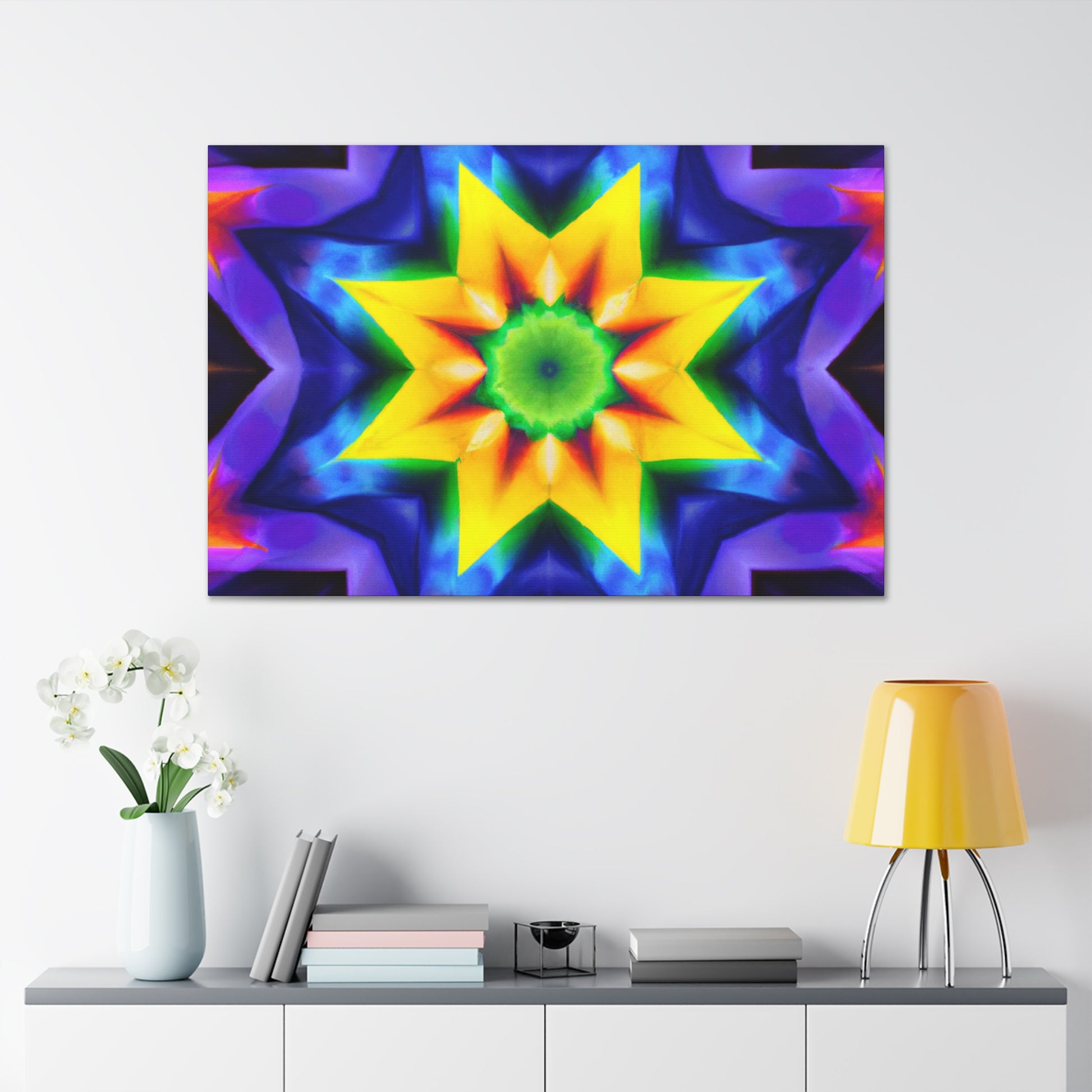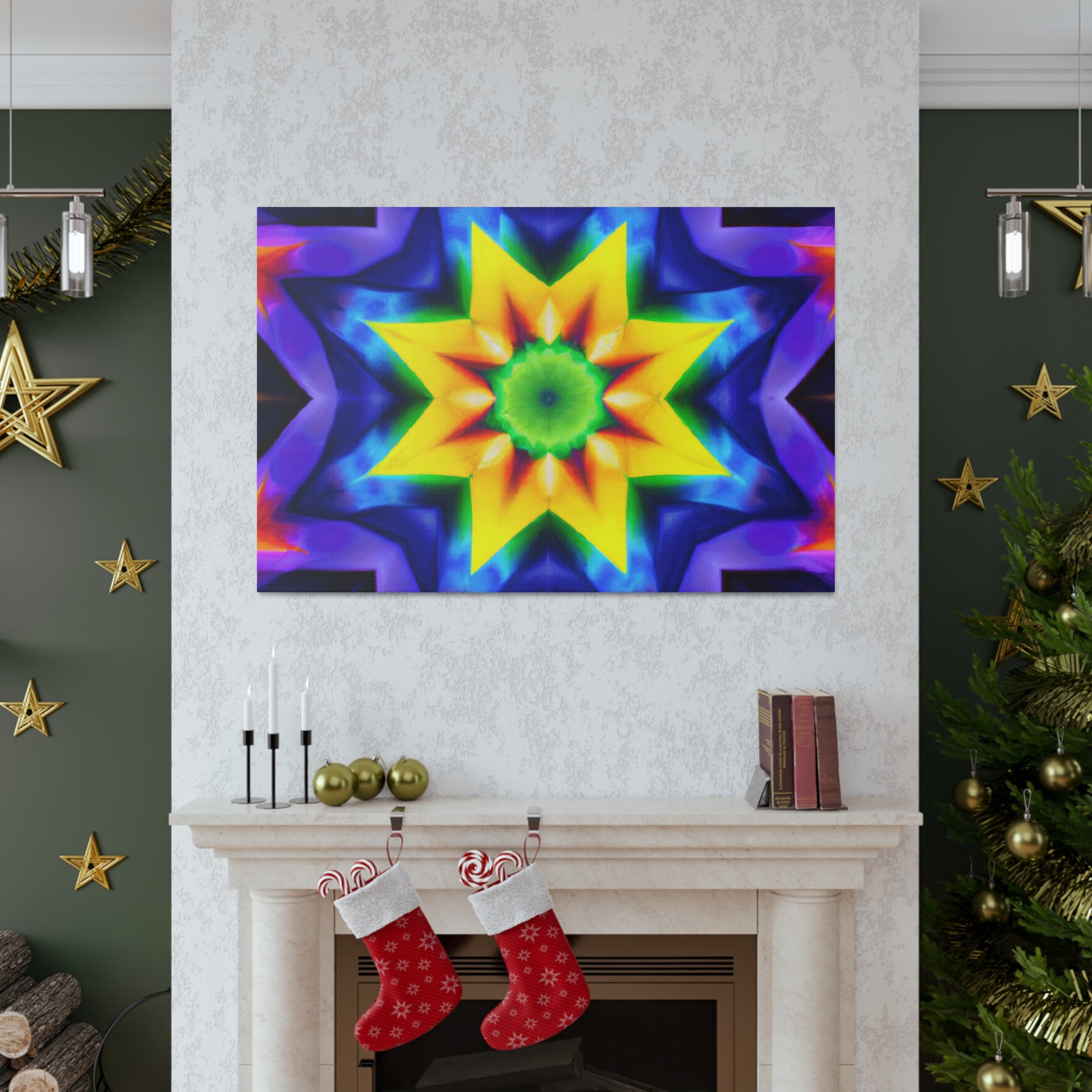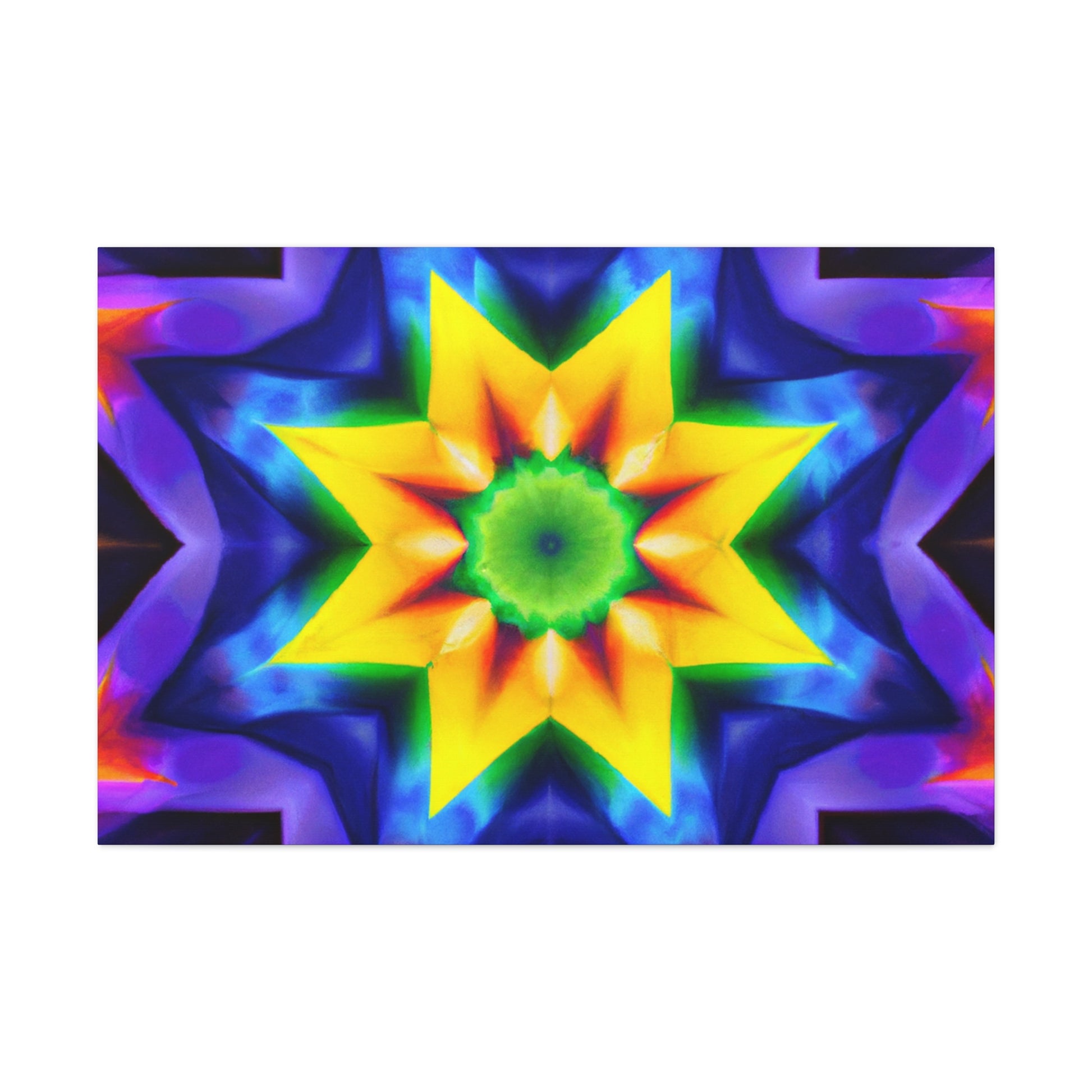 This vibrant digital canvas features a mesmerizing mix of abstract stars, kaleidoscope, and symmetrical shapes. Its high-definition print provides deeply saturated colors that are sure to draw the eye, bringing an eye-catching touch to any room. With its playful and unique quality, this canvas is guaranteed to add a conversation-starter to your space. #homedecor #art #abstractart #digitalart #kaleidoscope #vibrantcolors #HD #stars #symmetric #trippy #unique