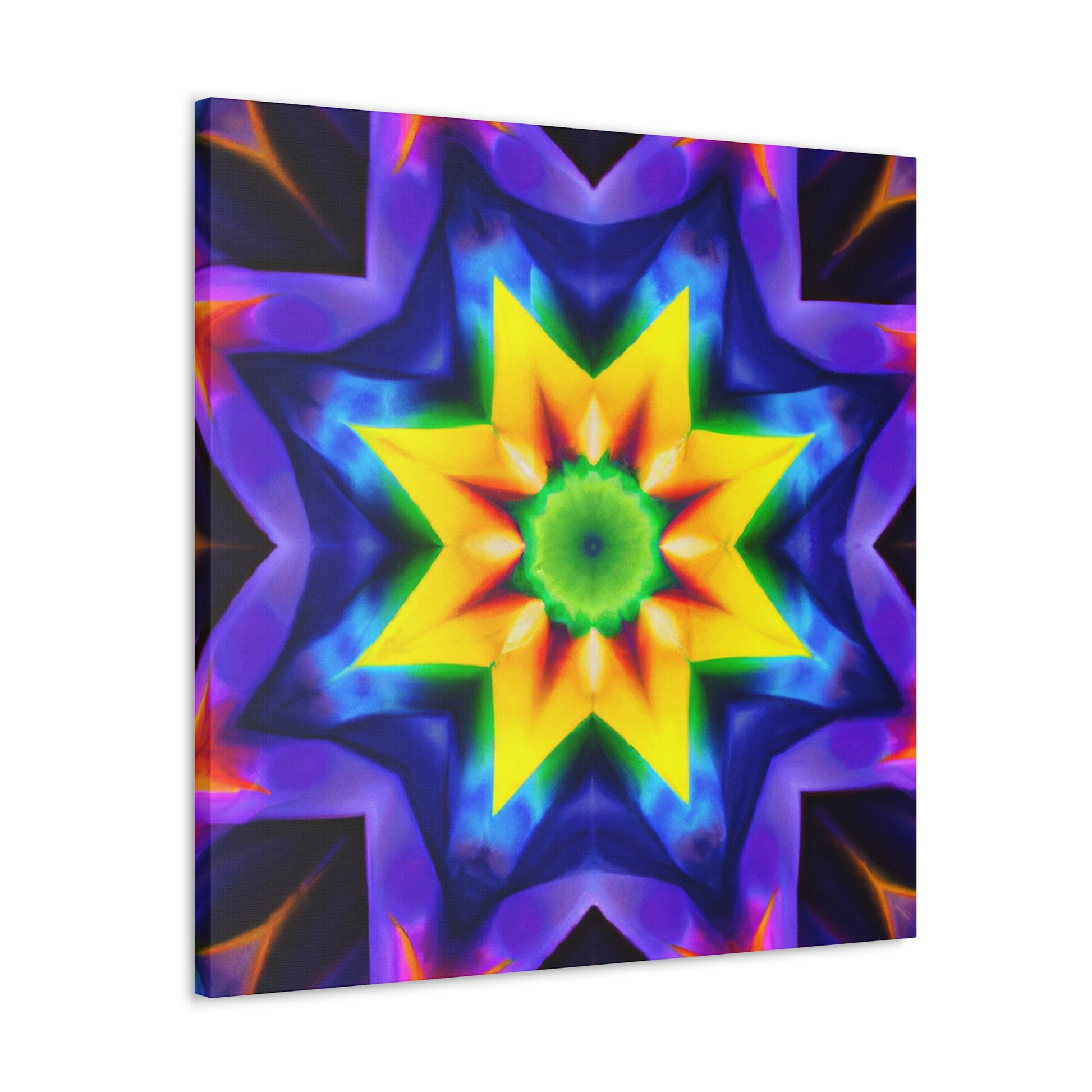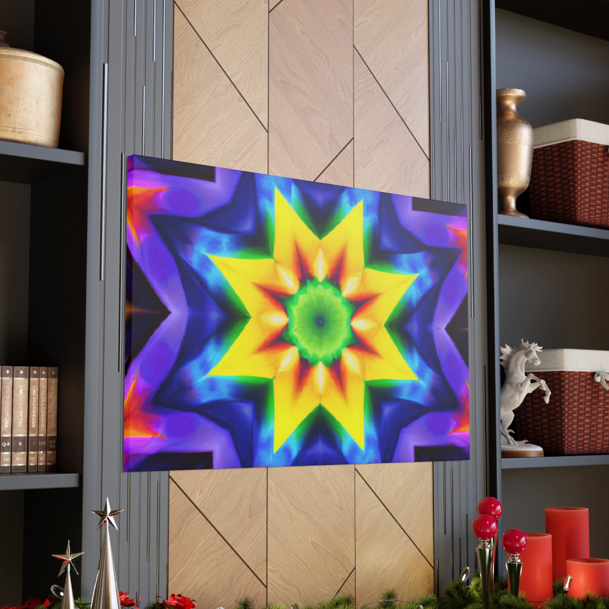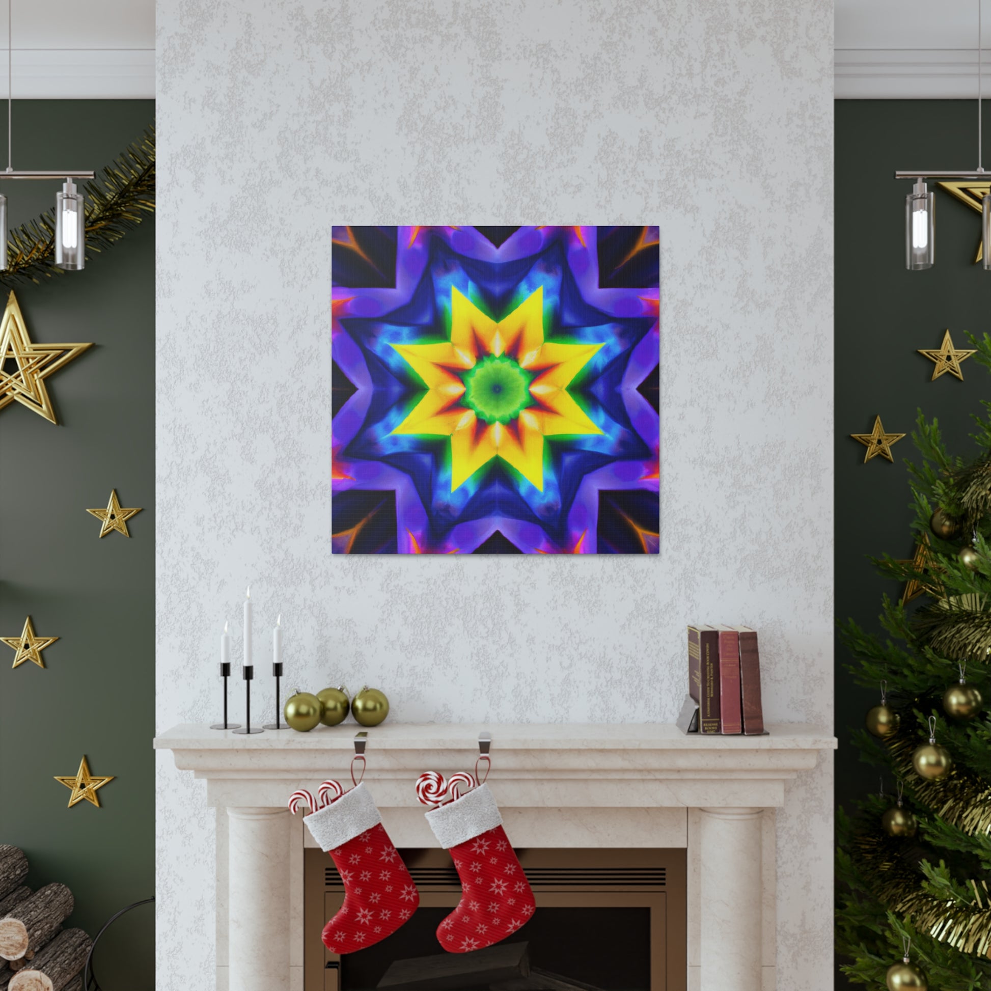 This vibrant digital canvas features a mesmerizing mix of abstract stars, kaleidoscope, and symmetrical shapes. Its high-definition print provides deeply saturated colors that are sure to draw the eye, bringing an eye-catching touch to any room. With its playful and unique quality, this canvas is guaranteed to add a conversation-starter to your space. #homedecor #art #abstractart #digitalart #kaleidoscope #vibrantcolors #HD #stars #symmetric #trippy #unique