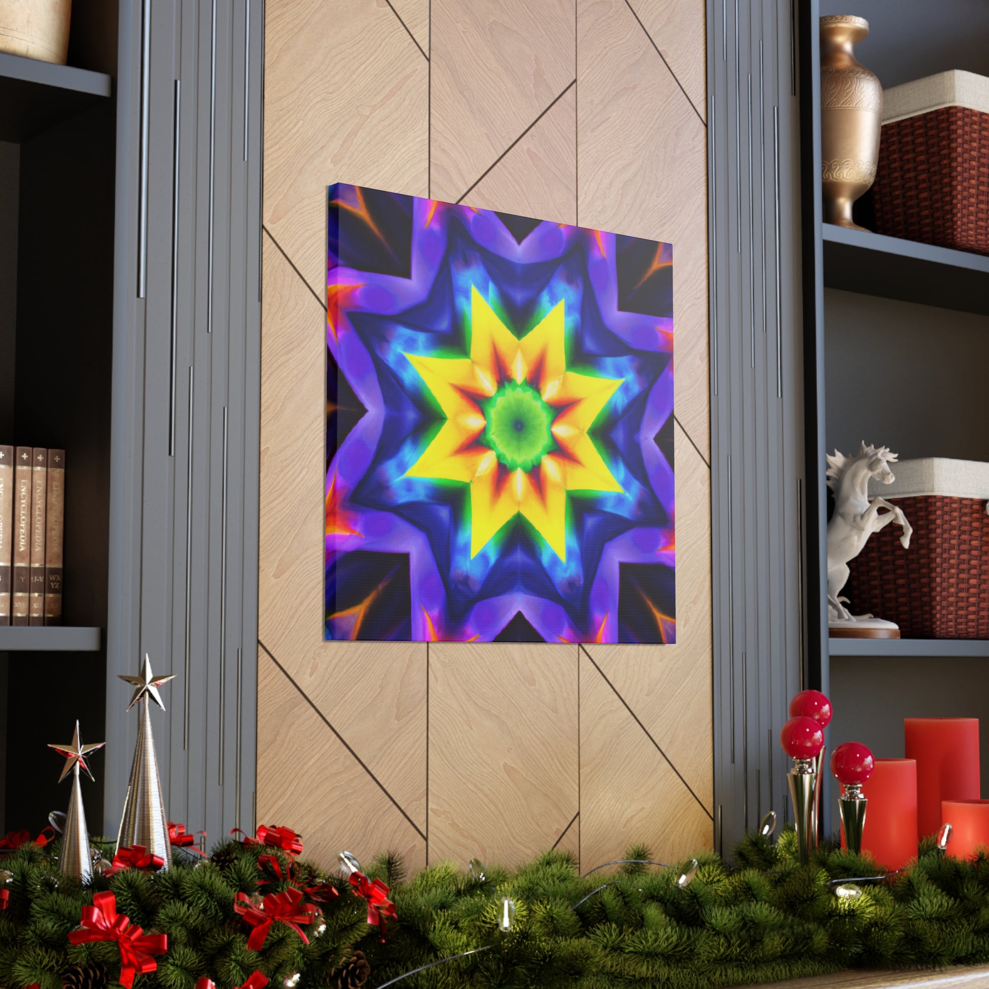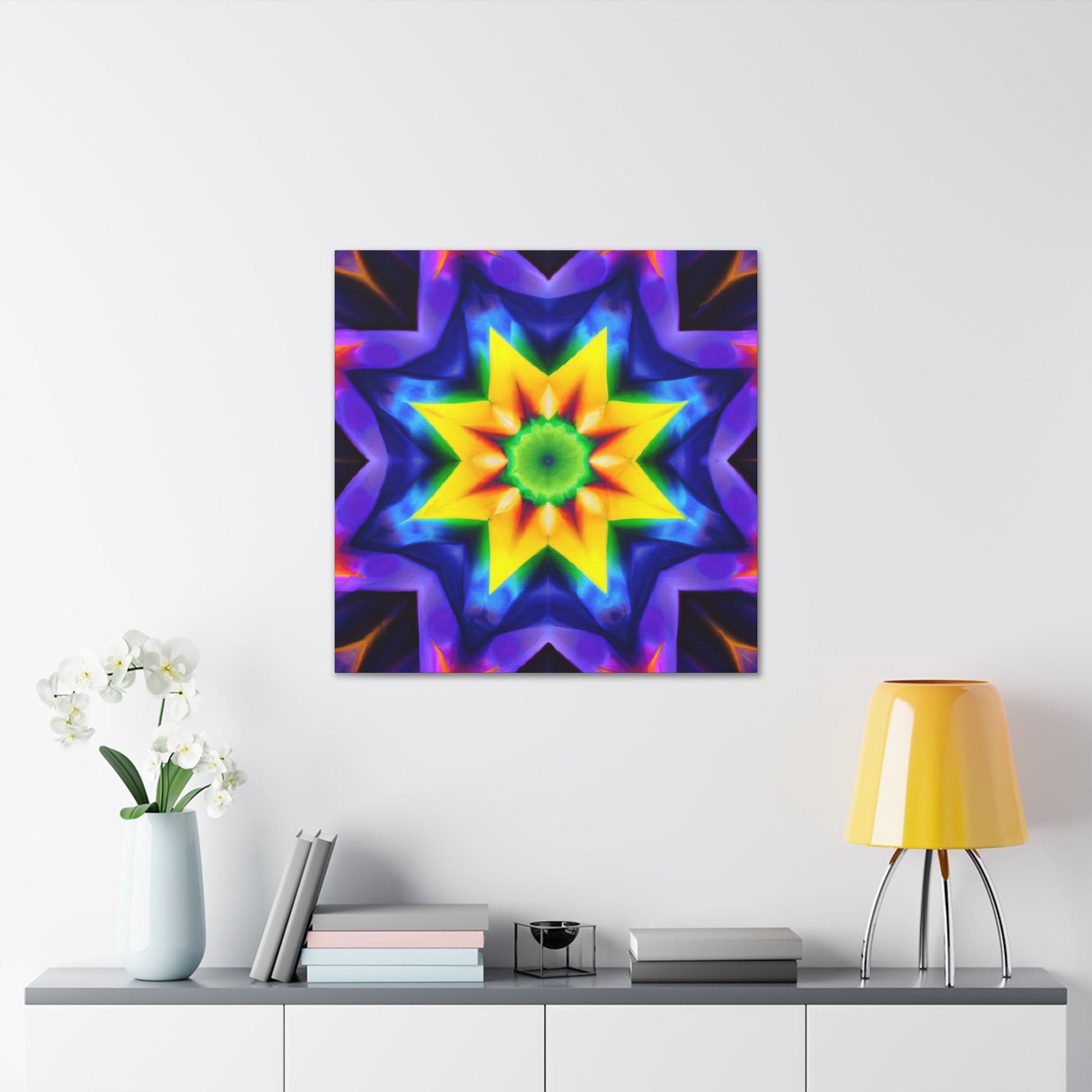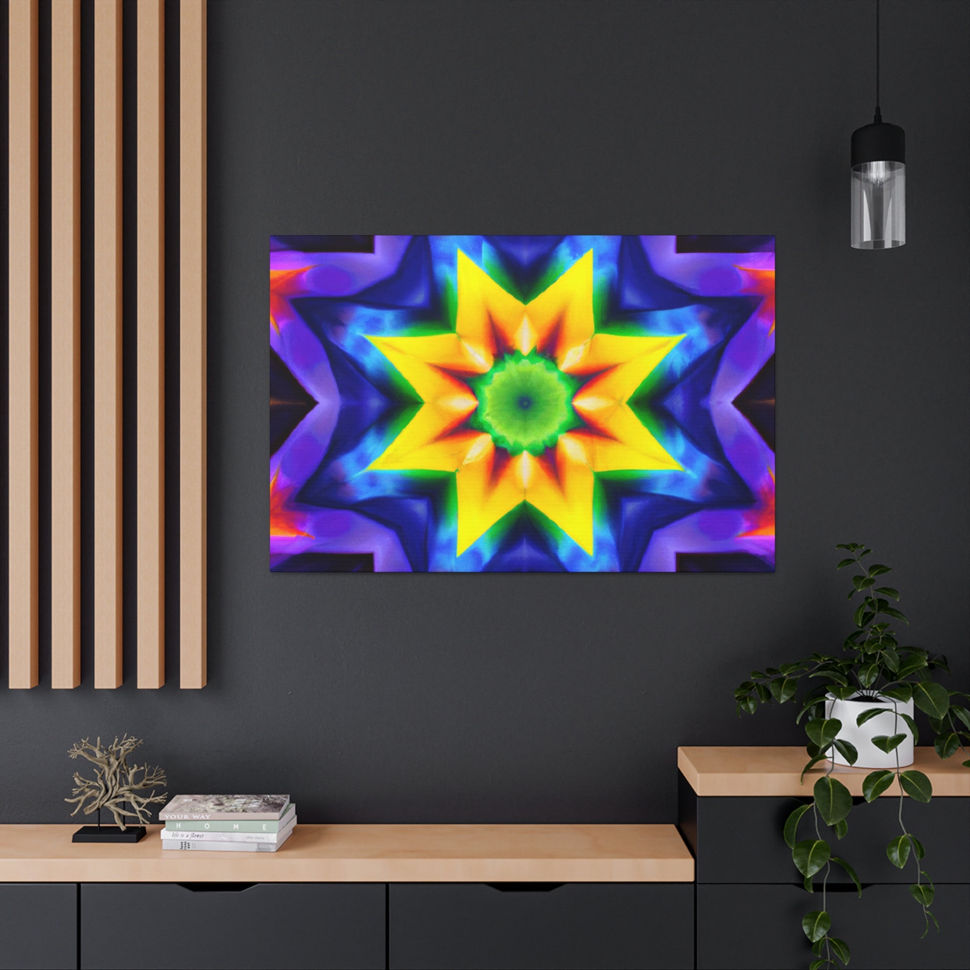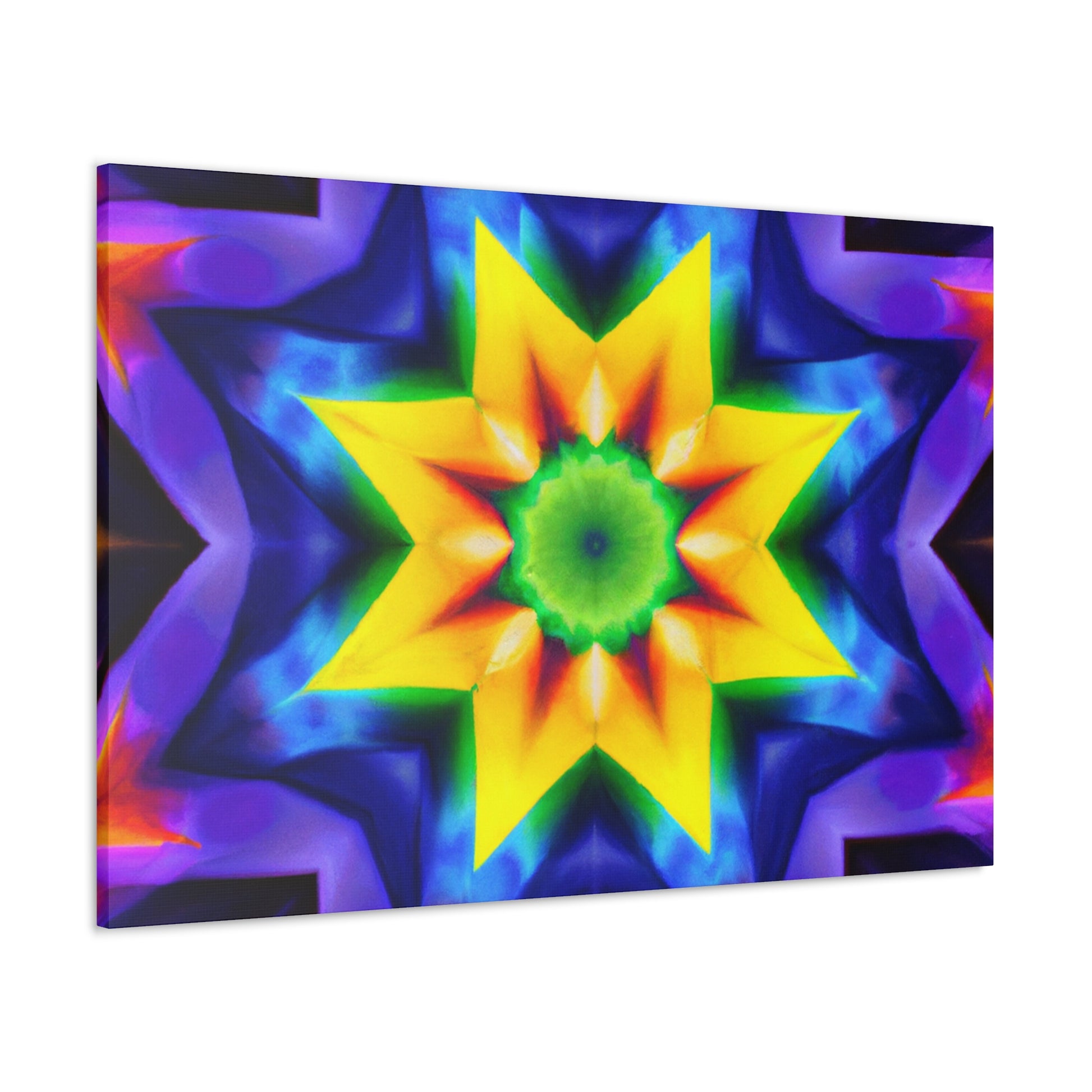 This vibrant digital canvas features a mesmerizing mix of abstract stars, kaleidoscope, and symmetrical shapes. Its high-definition print provides deeply saturated colors that are sure to draw the eye, bringing an eye-catching touch to any room. With its playful and unique quality, this canvas is guaranteed to add a conversation-starter to your space. #homedecor #art #abstractart #digitalart #kaleidoscope #vibrantcolors #HD #stars #symmetric #trippy #unique