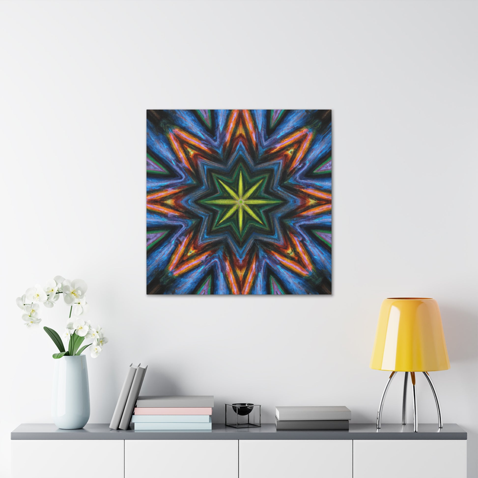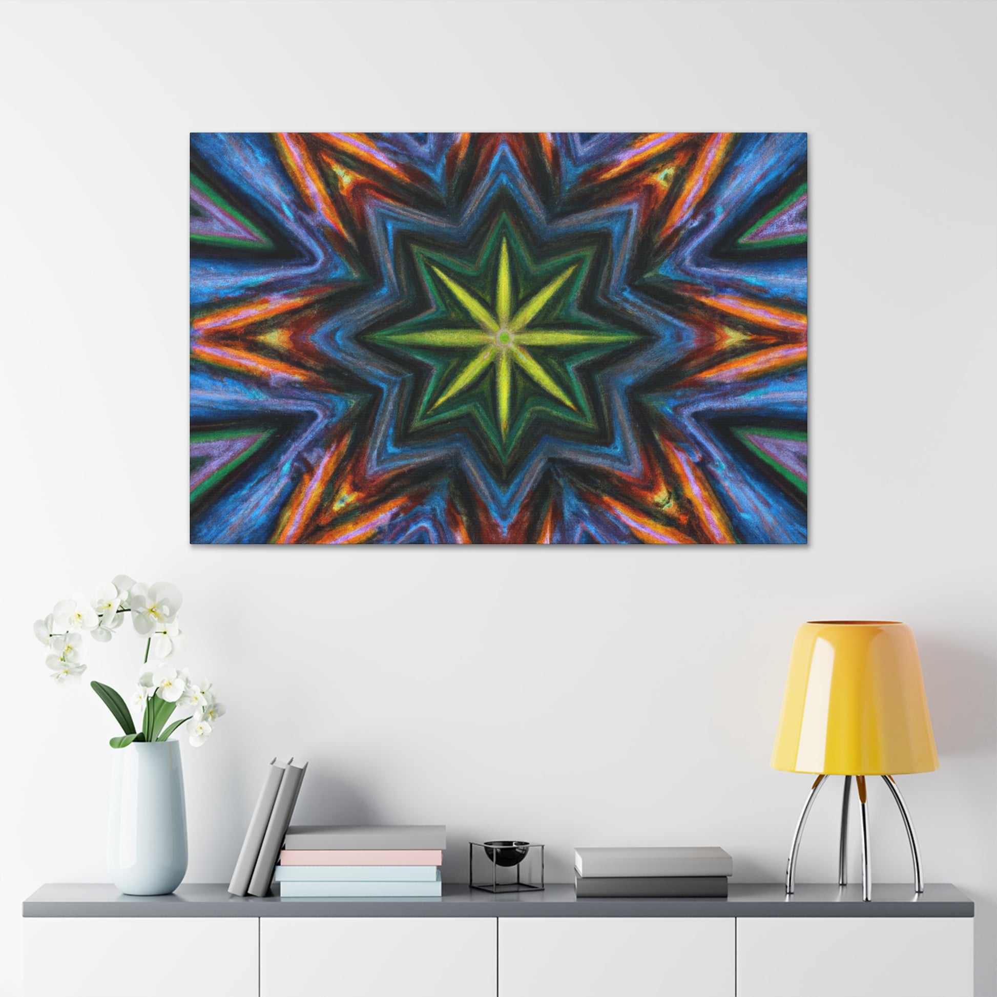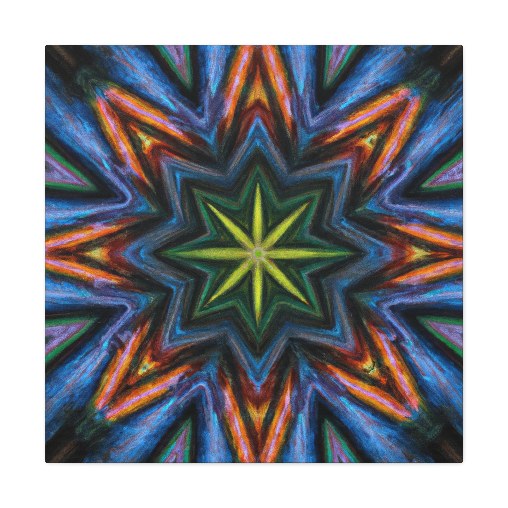 This eye-catching canvas of Trippy Stars, Kaleidoscope, Abstract and Digital Art will brighten up your room with vibrant colors and HD detail. Its symmetrical design will create a stunning focal point for any space. Make a statement and add a dramatic flair to your décor! #abstractart #vibrantcolors #hd #digitialart #symmetric #stars #kaleidoscope #canvas #art #trippy #statement