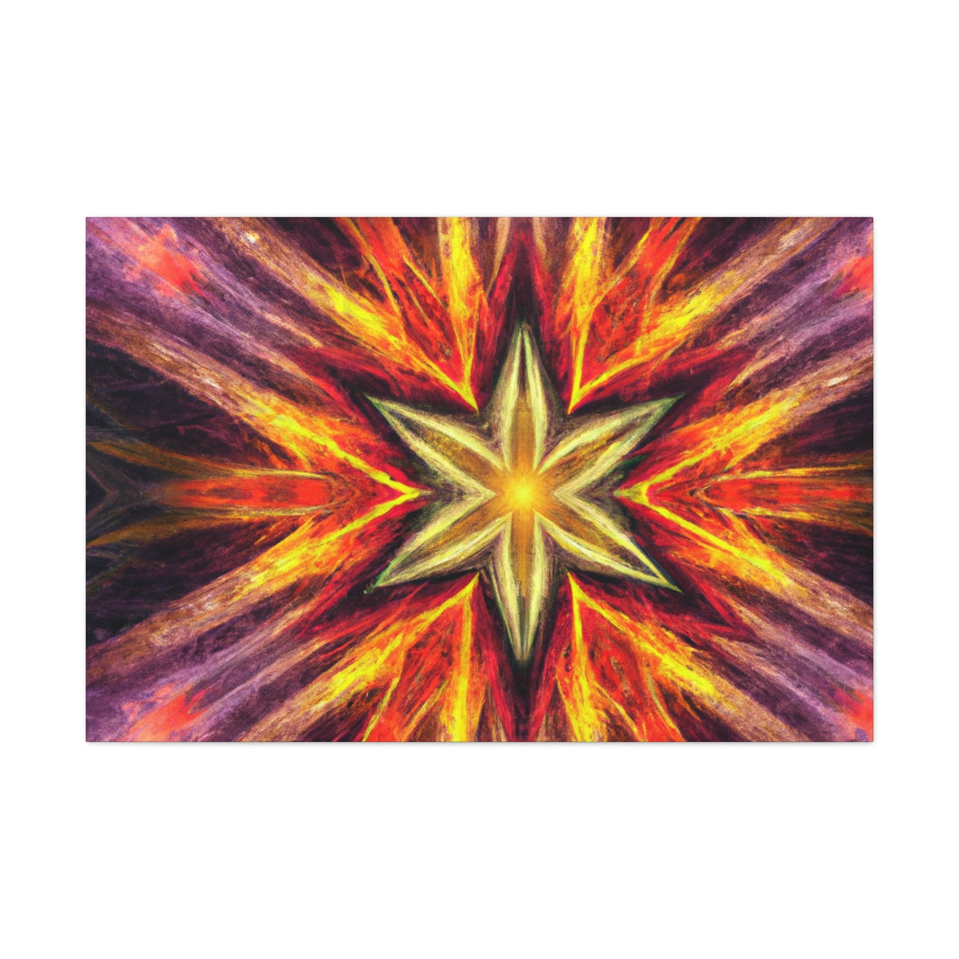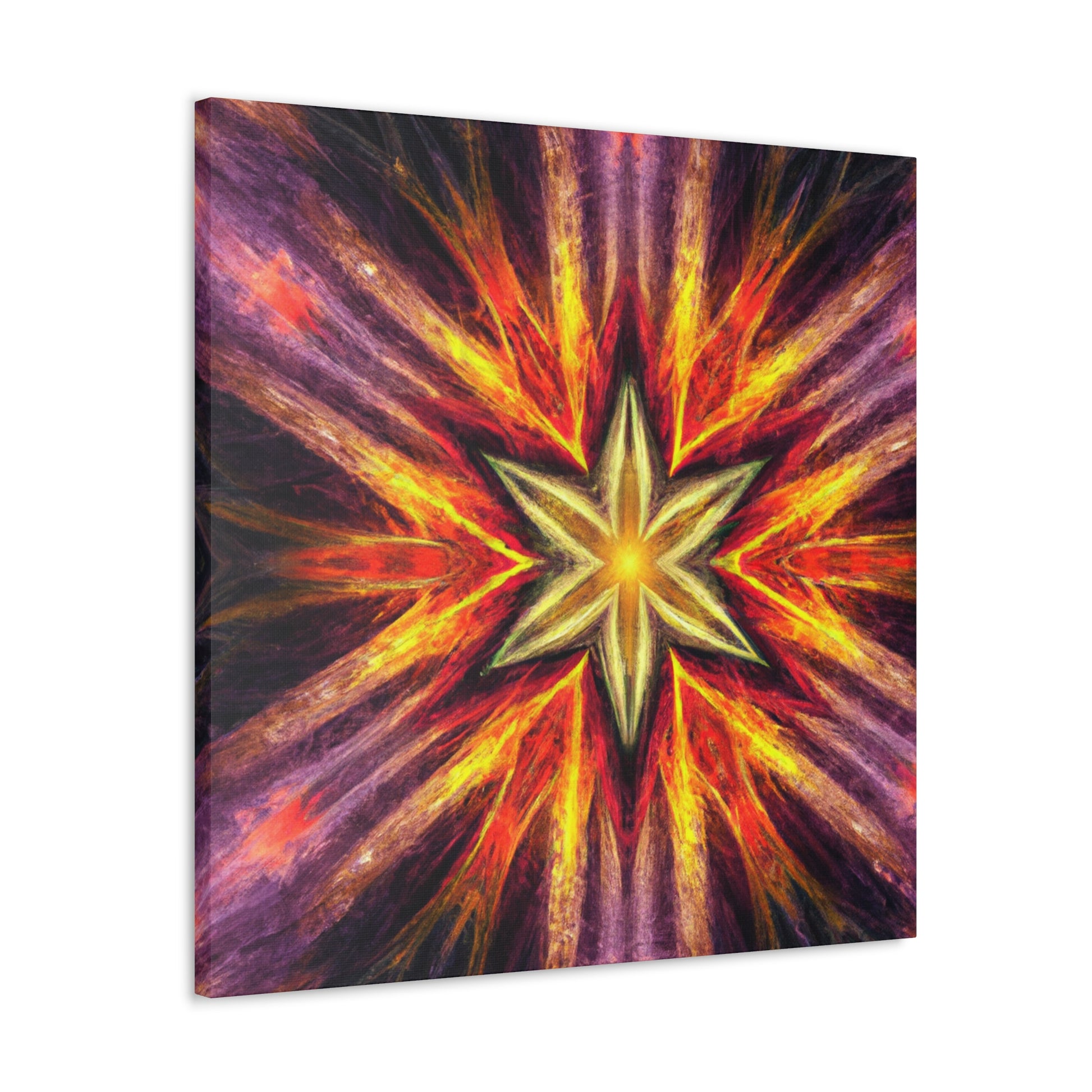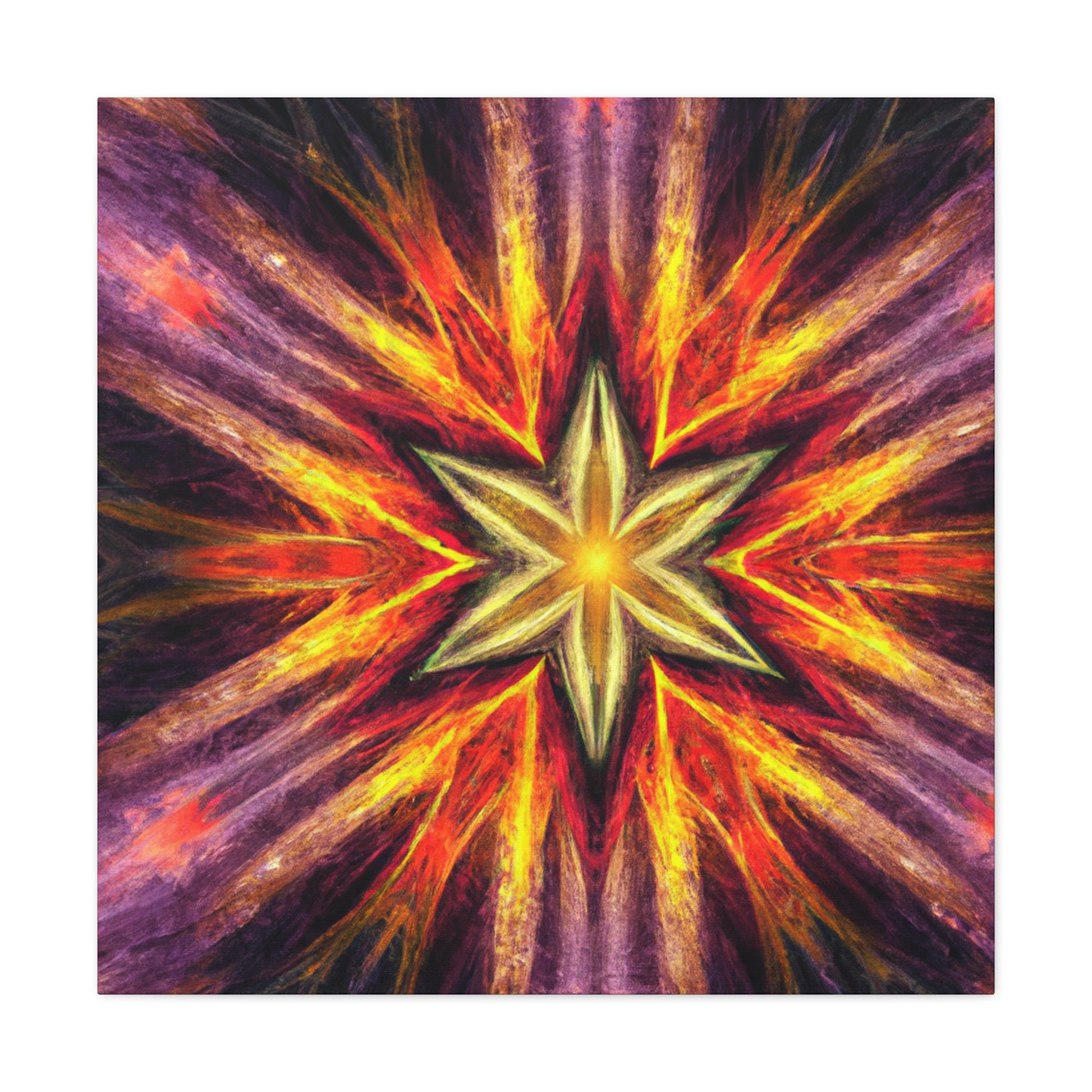 This canvas of trippy stars, kaleidoscope, abstract, digital art, and vibrant colors is sure to bring an energy burst to your space! Created in high-definition and with a centered, symmetrical design, this work of art is perfect to brighten up any wall. #TrippyStars #Kaleidoscope #Abstract #DigitalArt #VibrantColors #HD #Center #Symmetrical #Vibrance #UniqueArt #WallDecor