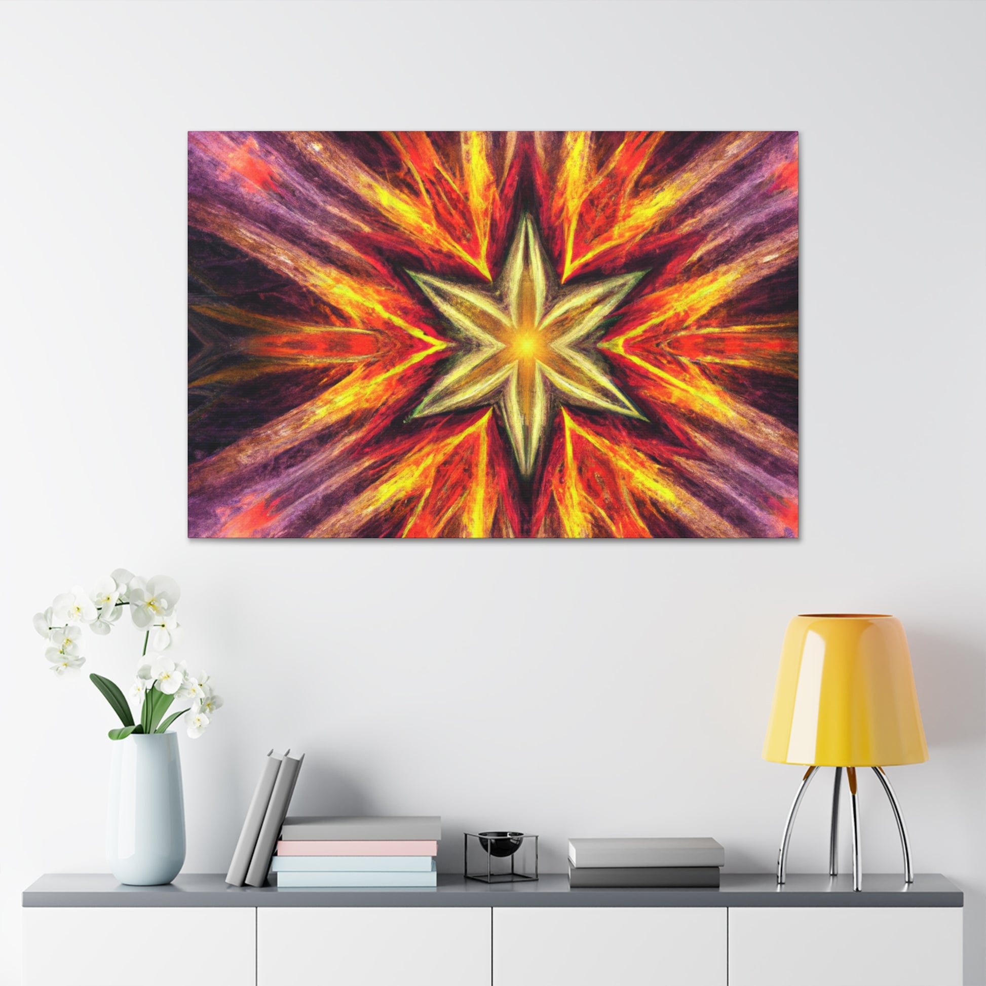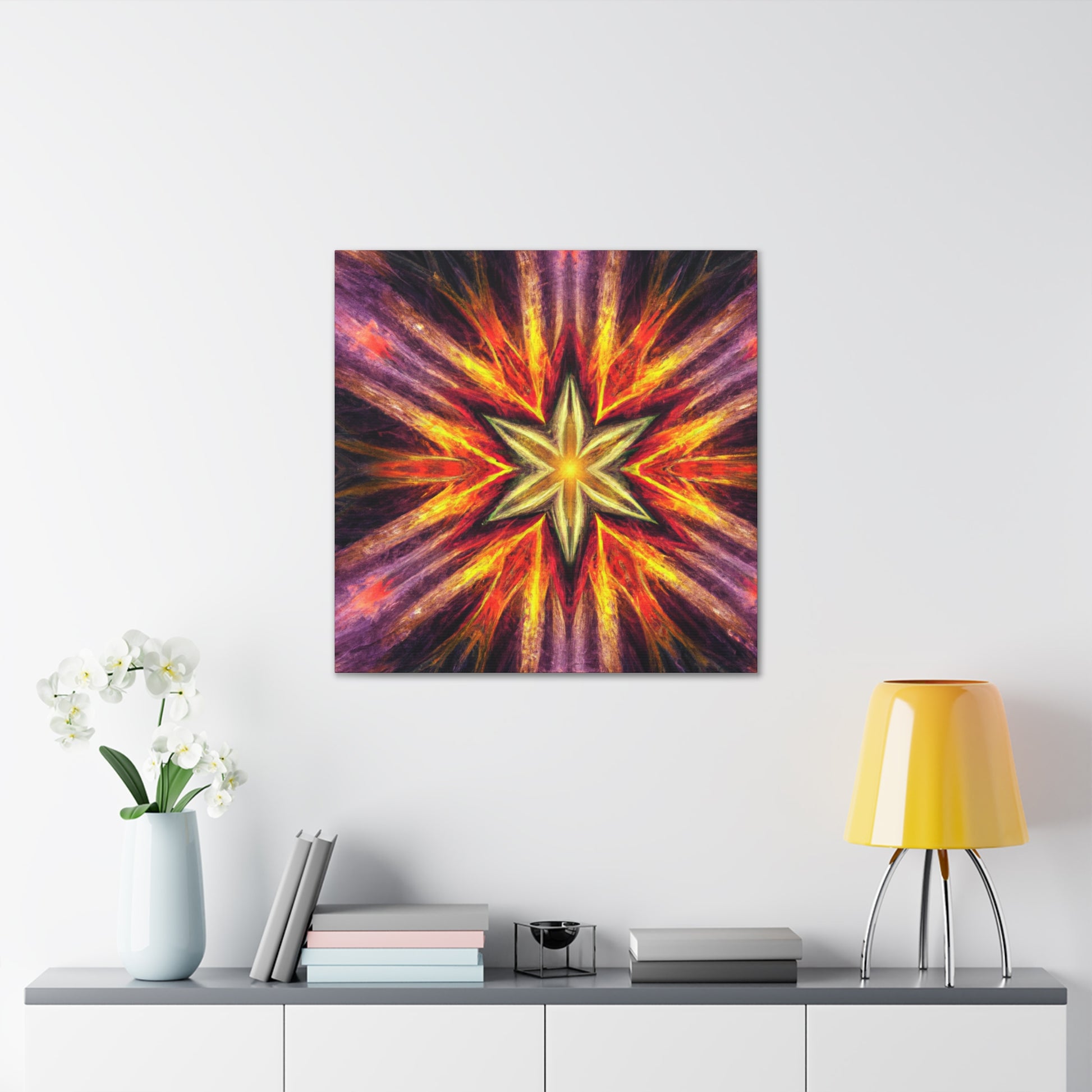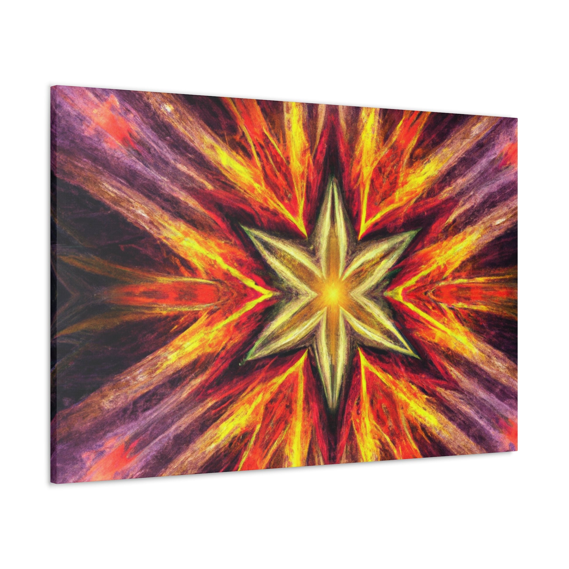 This canvas of trippy stars, kaleidoscope, abstract, digital art, and vibrant colors is sure to bring an energy burst to your space! Created in high-definition and with a centered, symmetrical design, this work of art is perfect to brighten up any wall. #TrippyStars #Kaleidoscope #Abstract #DigitalArt #VibrantColors #HD #Center #Symmetrical #Vibrance #UniqueArt #WallDecor