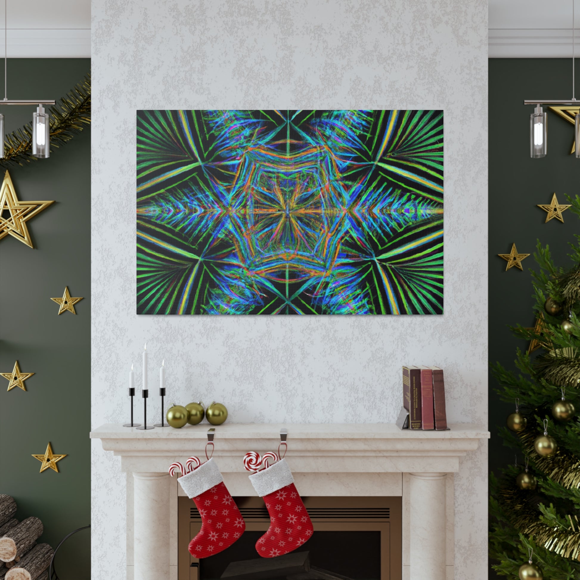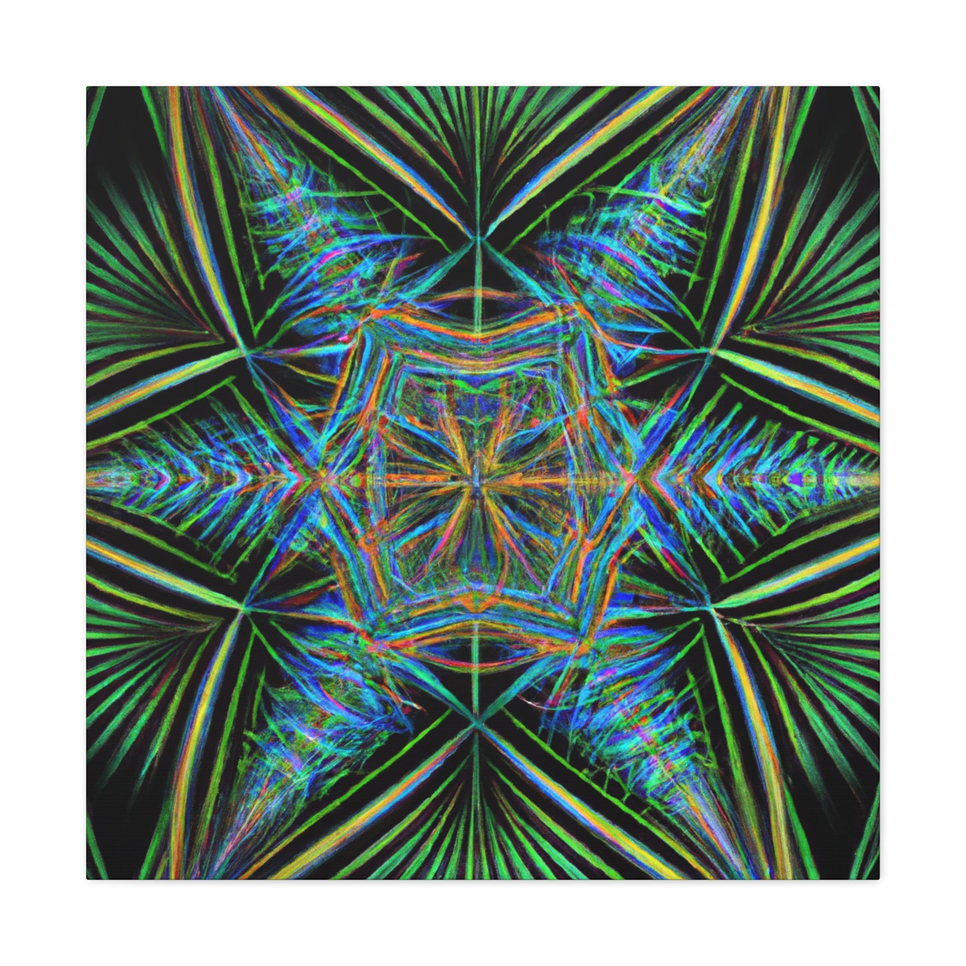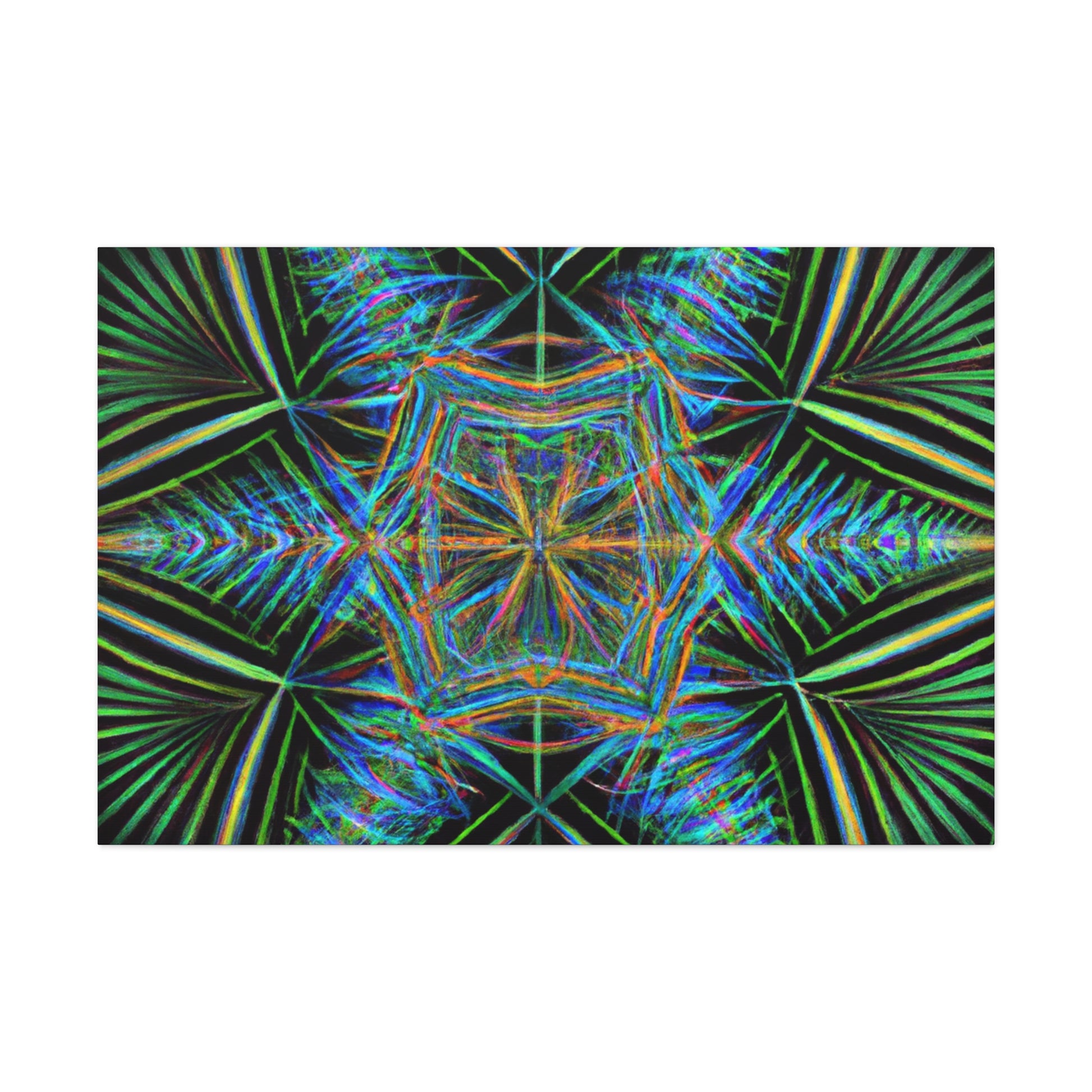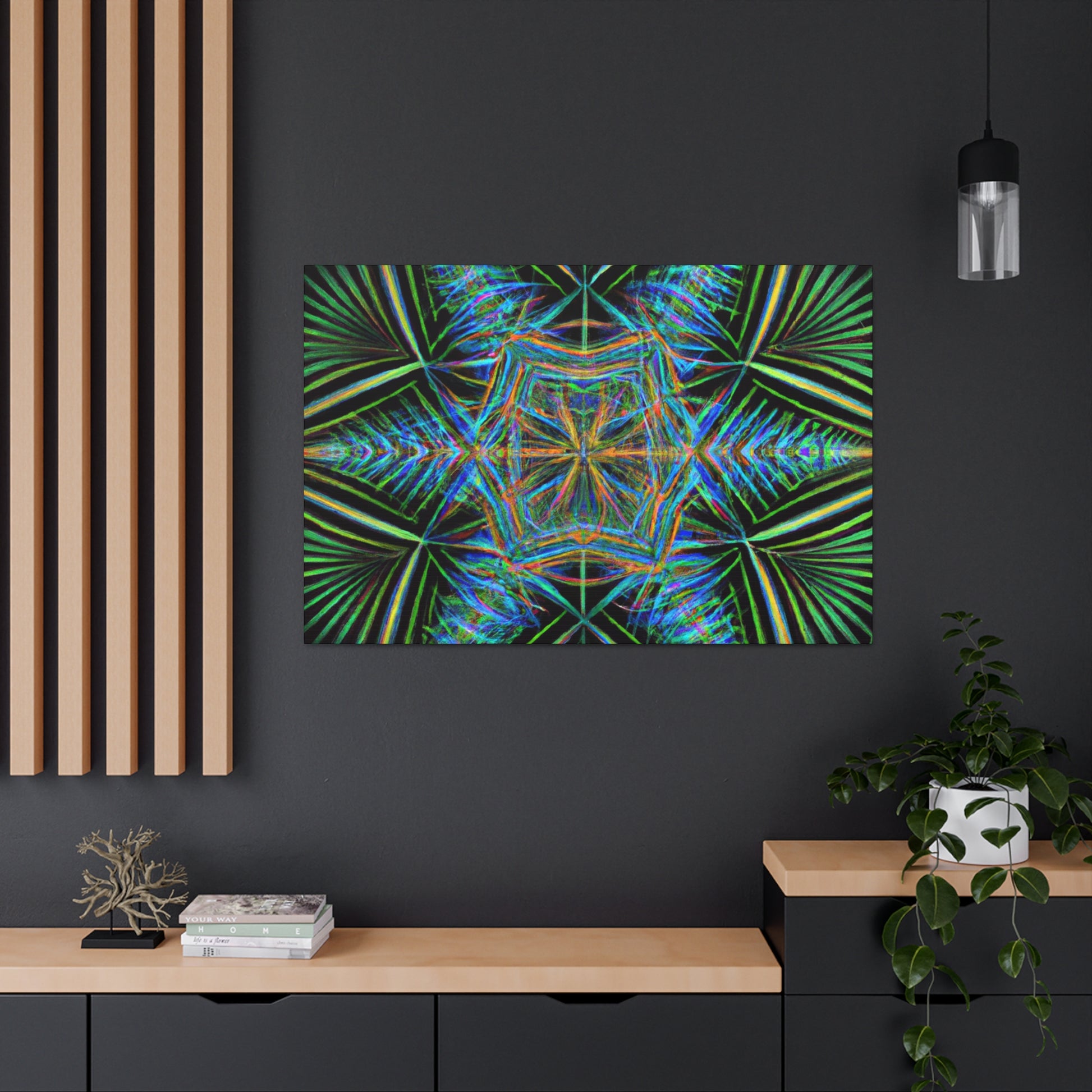 This vivid and one-of-a-kind canvas features Trippy Geometric Palm Leaves, Kaleidoscope, Abstract, Digital Art, Vibrant Colors, 3D Lines and a Fractal. The mix of these intricate designs come together in perfect harmony making this a truly stunning piece of art and eye-catching focal point of any room. #Trippy #Geometric #PalmLeaves #Kaleidoscope #Abstract #DigitalArt #VibrantColors #3DLines #Fractal #Art #WallDecor