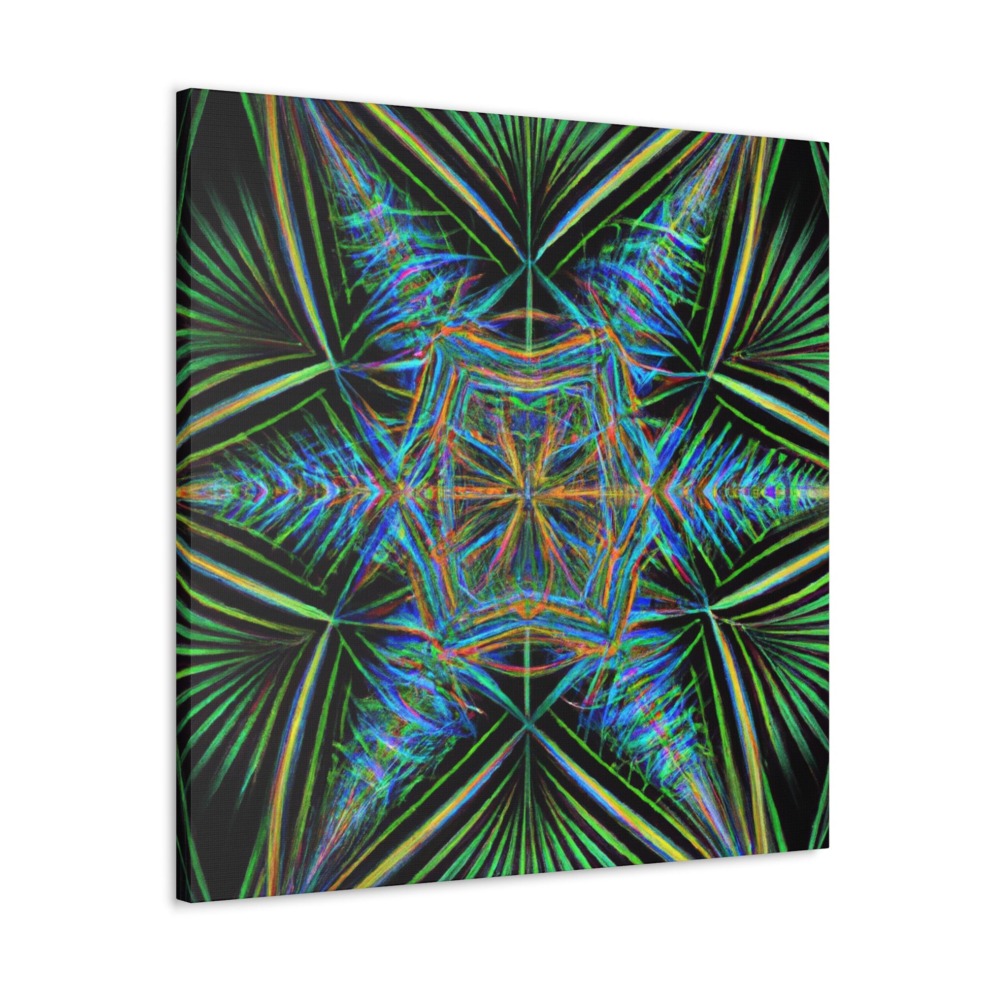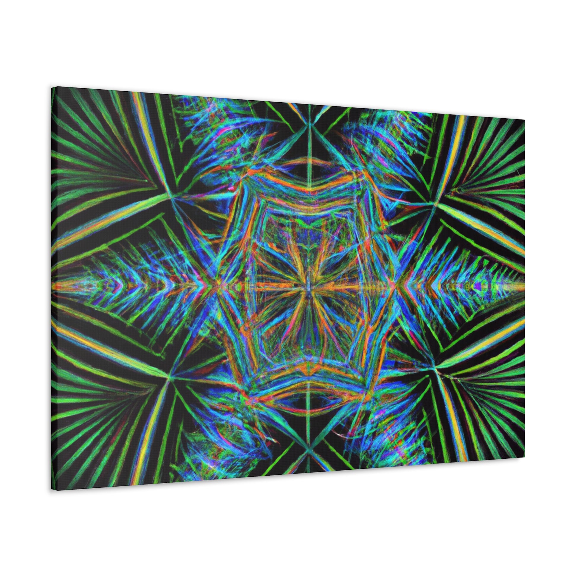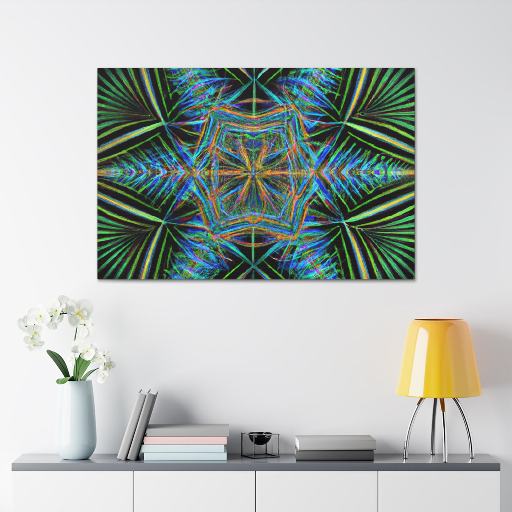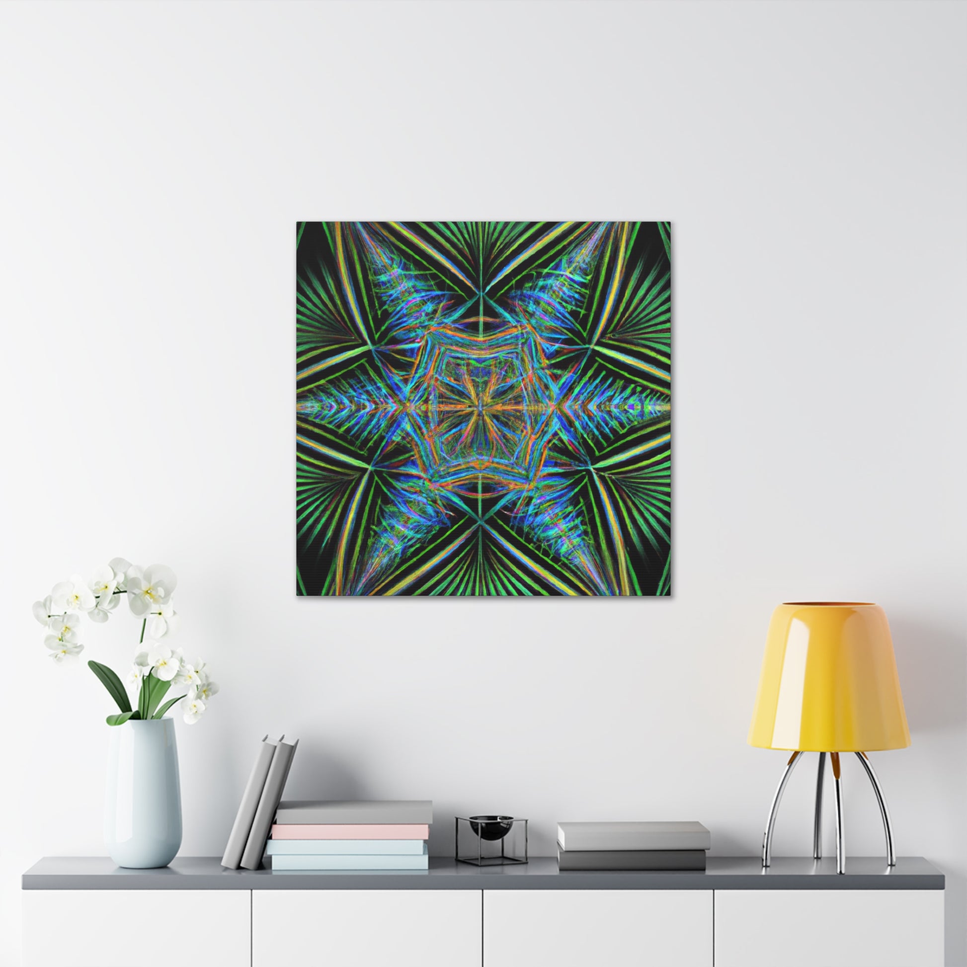 This vivid and one-of-a-kind canvas features Trippy Geometric Palm Leaves, Kaleidoscope, Abstract, Digital Art, Vibrant Colors, 3D Lines and a Fractal. The mix of these intricate designs come together in perfect harmony making this a truly stunning piece of art and eye-catching focal point of any room. #Trippy #Geometric #PalmLeaves #Kaleidoscope #Abstract #DigitalArt #VibrantColors #3DLines #Fractal #Art #WallDecor