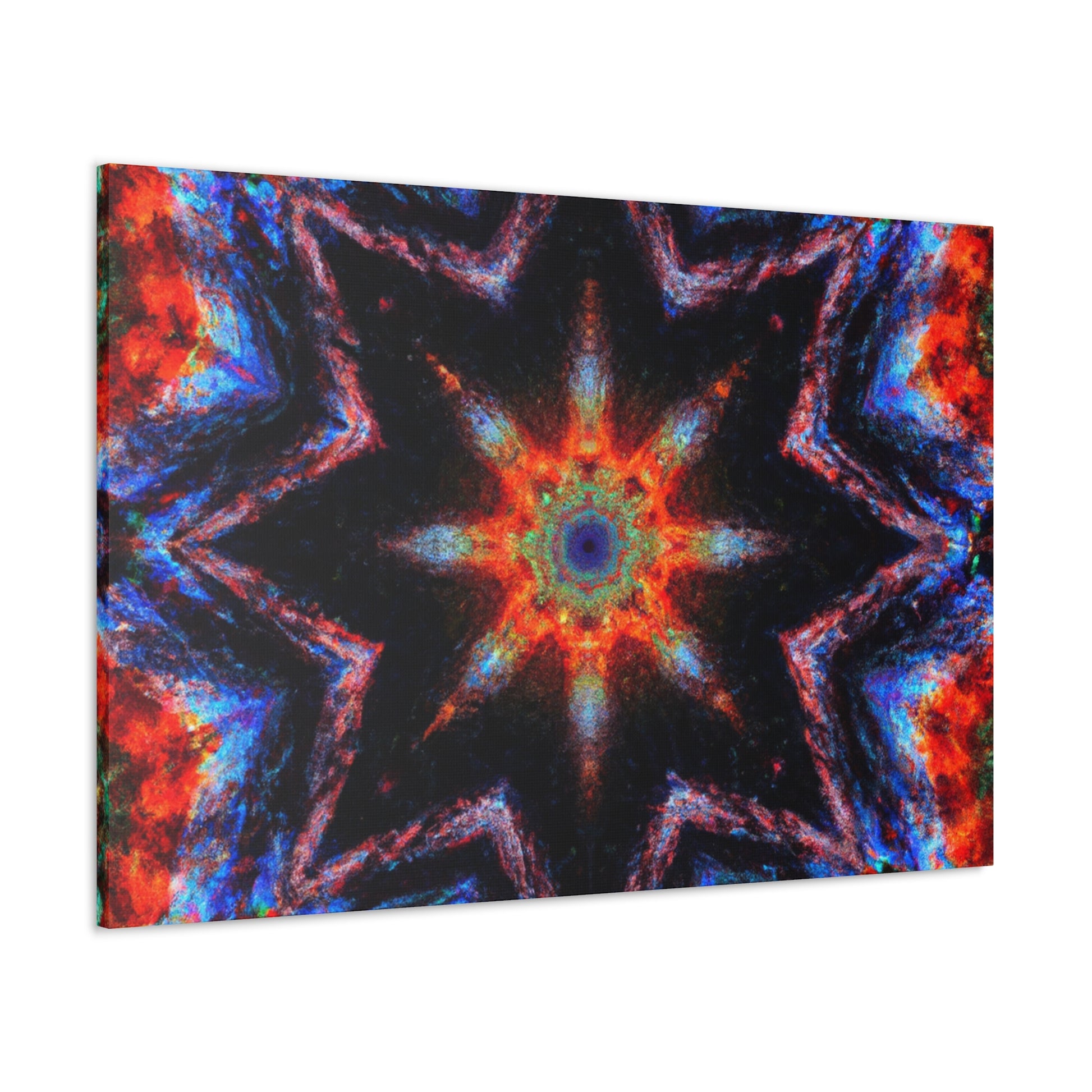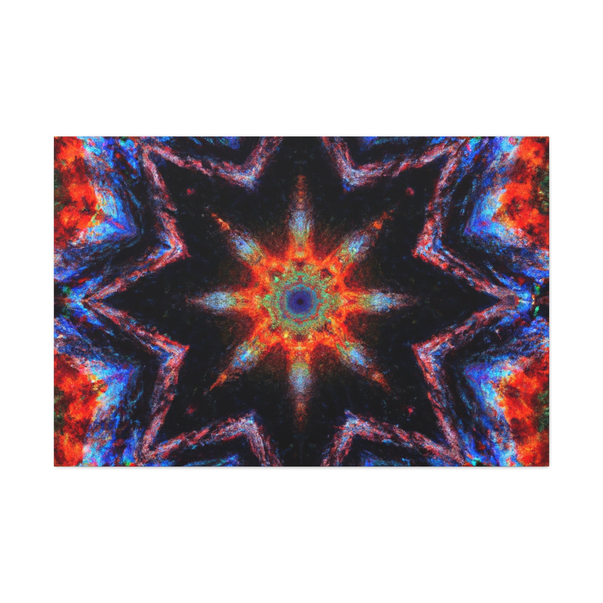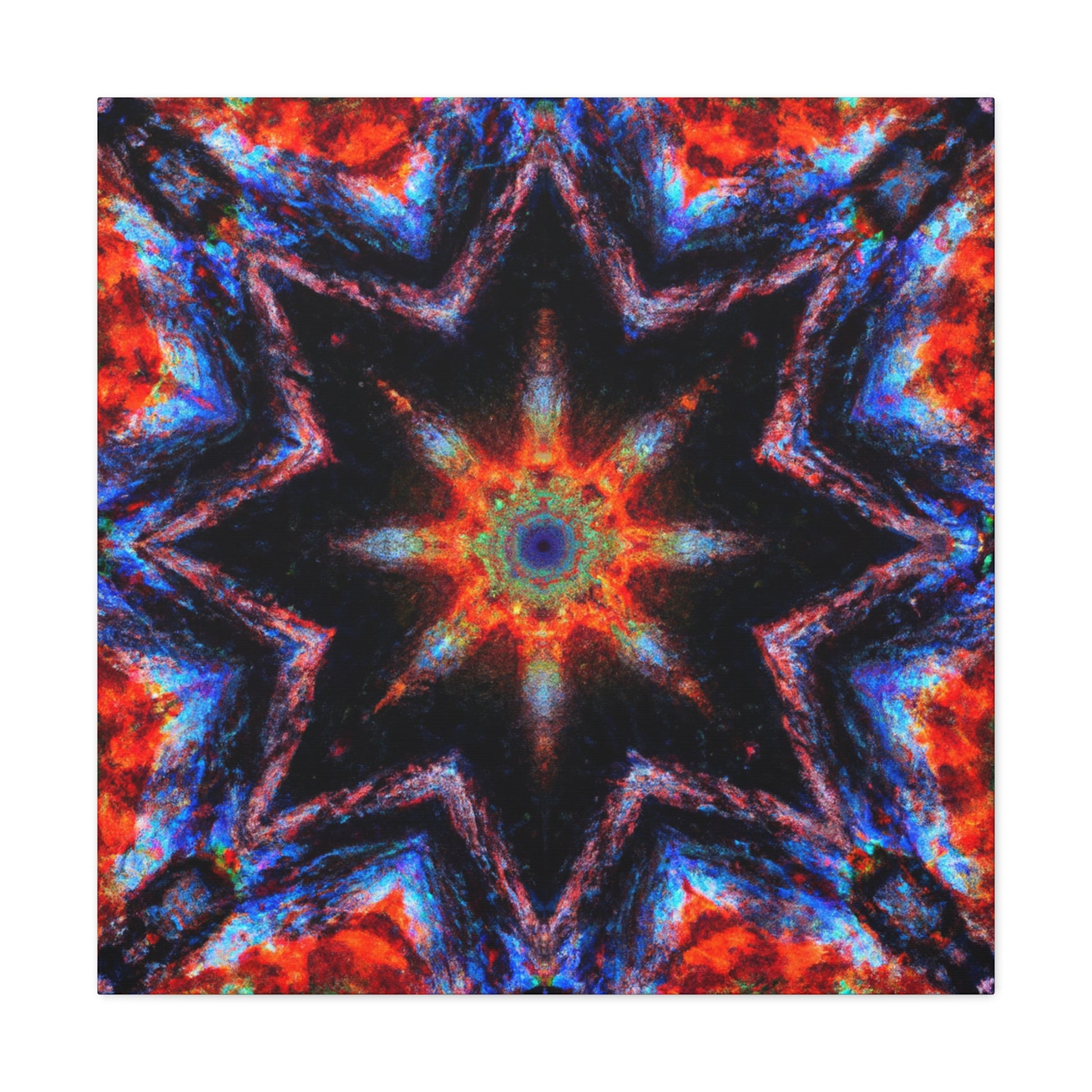 This unique canvas art is a blend of abstract digital art and kaleidoscope design with vibrant colors. The eye-catching symmetrical design is HD quality, making it perfect to hang up and give your room an instant makeover. Brighten up any space with this one-of-a-kind Trippy stars design! #trippystars #kaleidoscope #abstractart #digitalart #vividcolors #hdquality #symmetrical #canvasart #roomdecor #wallart #hdcanvas