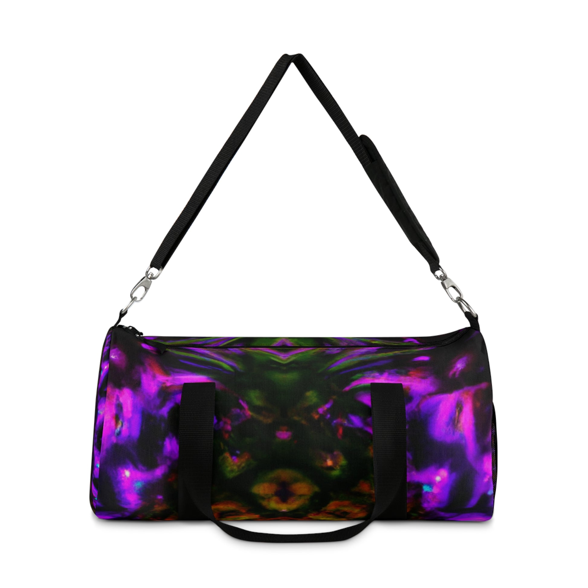 This dufflebag is colorful and bold! Featuring trippy pineapple, kaleidoscope, abstract, digital art, neon colors, and HD designs, it's sure to stand out from the crowd. The eye-catching patterns and vibrant neon colors will make you stand out from the crowd. #dufflebag #style #neon #fun #pineapple #kaleidoscope #abstract #digitalart #HD #artwork #vibrant #eye-catching #design #colorful #bold #trippy #fashion #tropical #statement piece #vivid #and #bright.