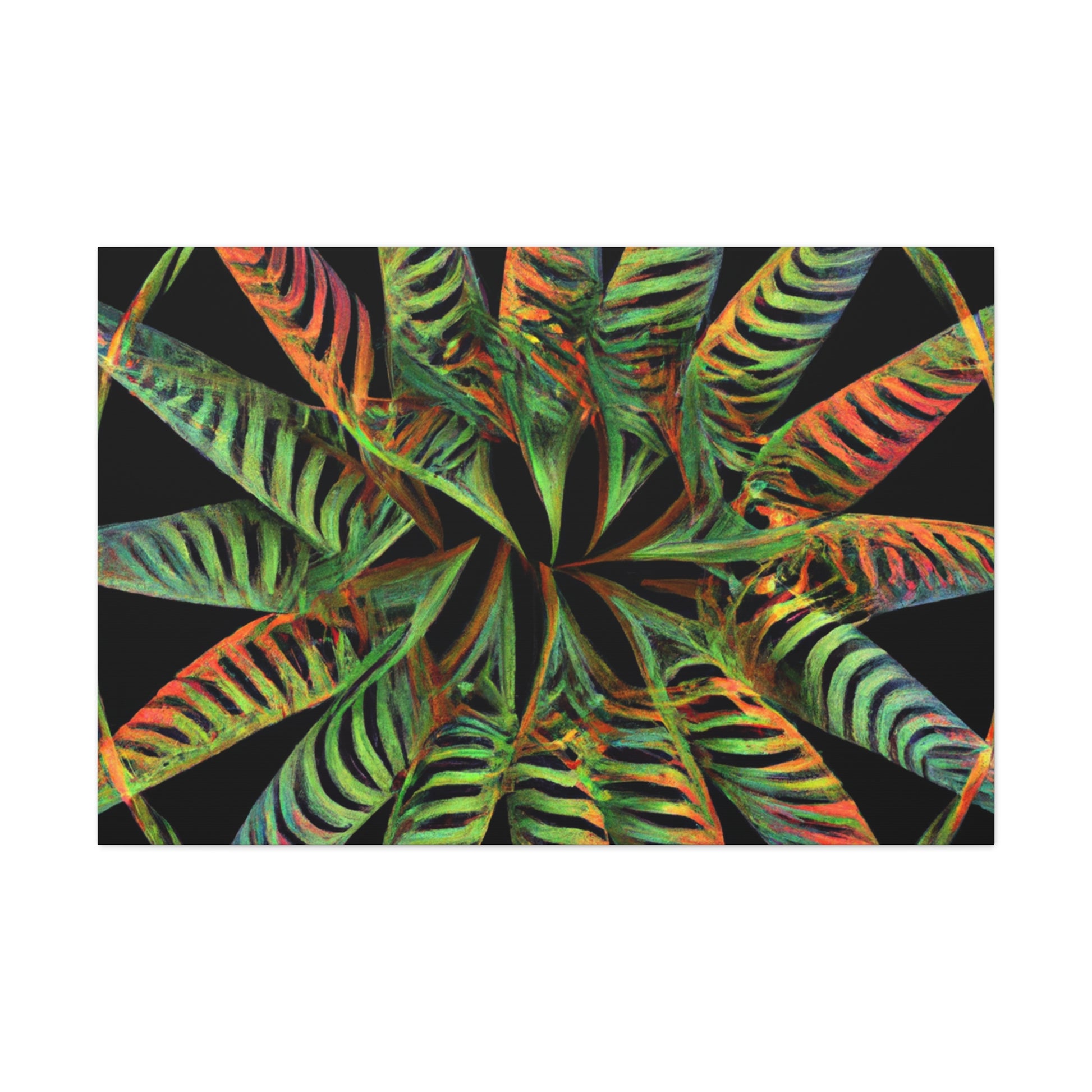 This bright, abstract and vibrant canvas art will bring pizzazz to any space! With its combination of trippy geometric palm leaves, kaleidoscope, 3D lines, and fractal design, this piece is sure to captivate viewers. High-quality canvas material gives the colors a smooth and sleek feel. Let this digital art bring life to your home or office and create beautiful energy! #abstractart #3Dlines #canvasart #fractaldesign #kaleidoscope #palmleaves #geometricart #vibrantcolors #digitallart #energy #decor