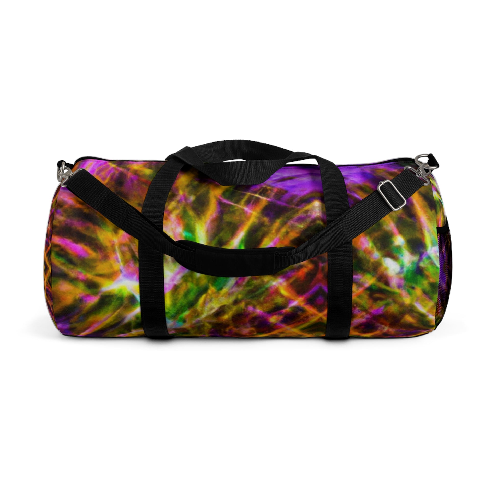 Stay stylish and stand out carrying this trippy dufflebag! It features abstract, kaleidescope, and digital art designs with HD neon colors. Have peace of mind with its durable material and convenient pockets. #dufflebag #trippy #pineapple #kaleidoscope #abstract #digitalart #neon #HD #designs #fashion #style #highquality #statementpiece #unique #durable #standout #convenient #brightandbold #vibrant #colourful #multicoloured #colourfulfashion #eyeappealing #colorfulart #colourfulneon #boldstatement #durablematerial #vivid #colourpop # fashionableaccessory